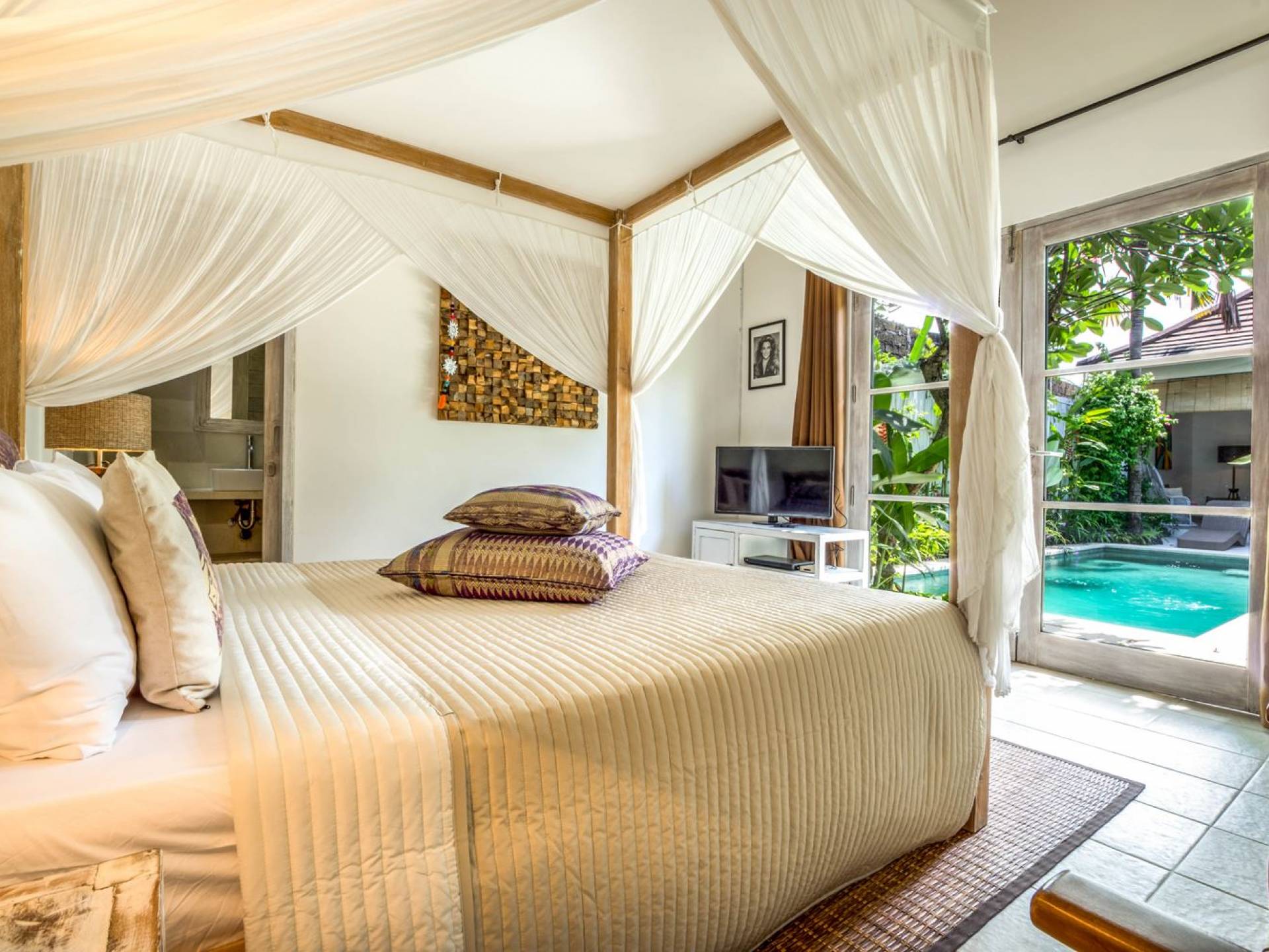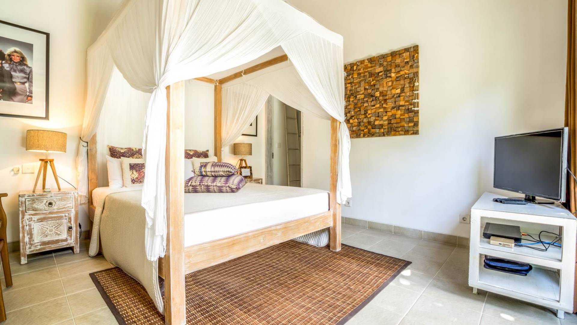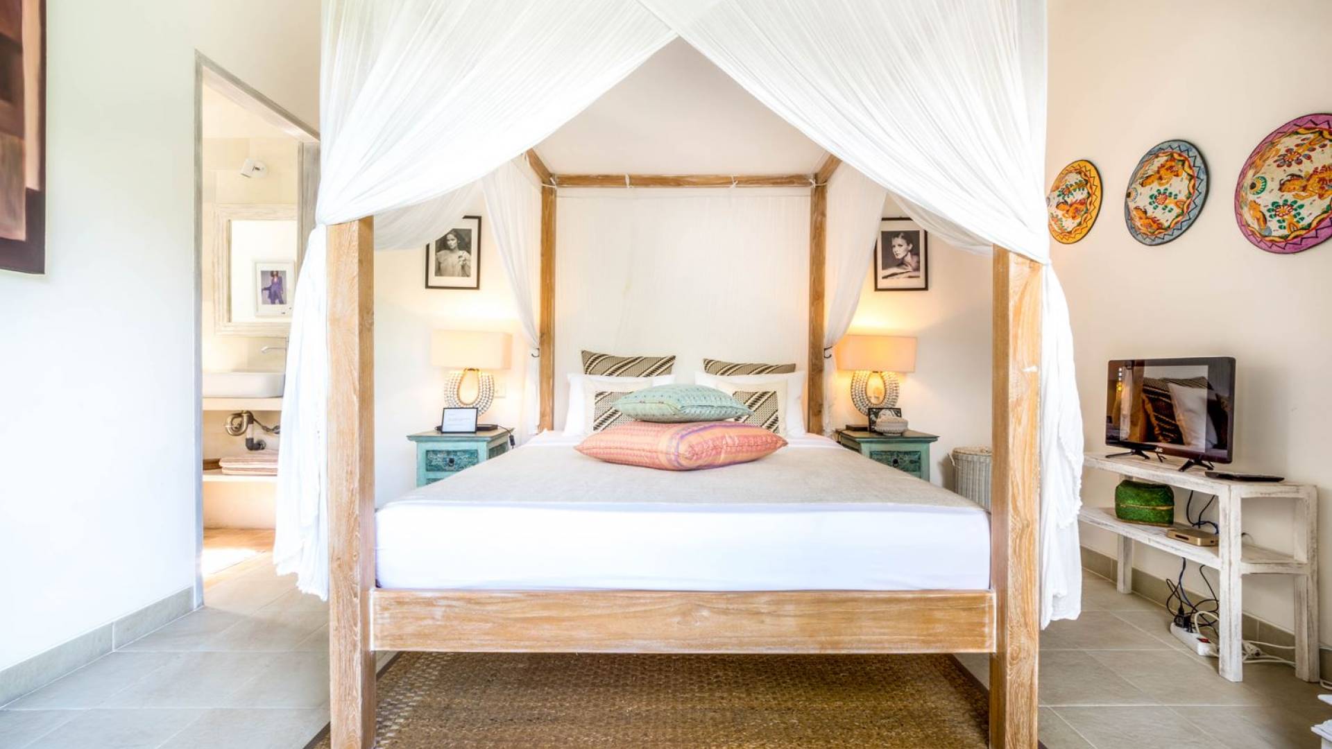 Η Villa Tara διαθέτει τρεις ιδιωτικές σουίτες βίλας στις οποίες οι επισκέπτες μπορούν να αποσυρθούν τη νύχτα. Το κύριο δωμάτιο βρίσκεται σε ένα ιδιωτικό κιόσκι με θέα στον κήπο και την πισίνα. Αυτό το πλήρως κλιματιζόμενο υπνοδωμάτιο διαθέτει μια ευάερη, ψηλή ταράτσα και ένα εκπληκτικό κρεβάτι king-size με ουρανό, ντυμένο σε μια λευκή κουνουπιέρα. Πριν κοιμηθείτε, μπορείτε να παρακολουθήσετε μια ταινία μαζί με το αγαπημένο σας πρόσωπο στην τηλεόραση επίπεδης οθόνης με ένα DVD player. Το ιδιωτικό μπάνιο διαθέτει χαλαρωτικό ντους μουσώνα, νιπτήρα και W.C. Τα πράσινα φυτά προσθέτουν στην τροπική αίσθηση της εμπειρίας του ντους σας. Μετά από ένα ζεστό ντους, μπορείτε να φορέσετε το φρέσκο κιμονό που σας περιμένουν στην ντουλάπα της γκαρνταρόμπας. Τα δύο υπνοδωμάτια επισκεπτών απολαμβάνουν επίσης υπέροχη θέα στην πισίνα καθώς και εύκολη πρόσβαση, επιτρέποντας σε όλους τους επισκέπτες να πάνε νωρίς το πρωί για μπάνιο στην πισίνα. Και τα δύο δωμάτια διαθέτουν κλιματισμό, άνετα διπλά κρεβάτια και ιδιωτικό μπάνιο με ζεστό/κρύο ντους ψιλής βροχής. Ένα από αυτά τα δωμάτια διαθέτει επίσης τηλεόραση και DVD player για ψυχαγωγία πριν τον ύπνο.
