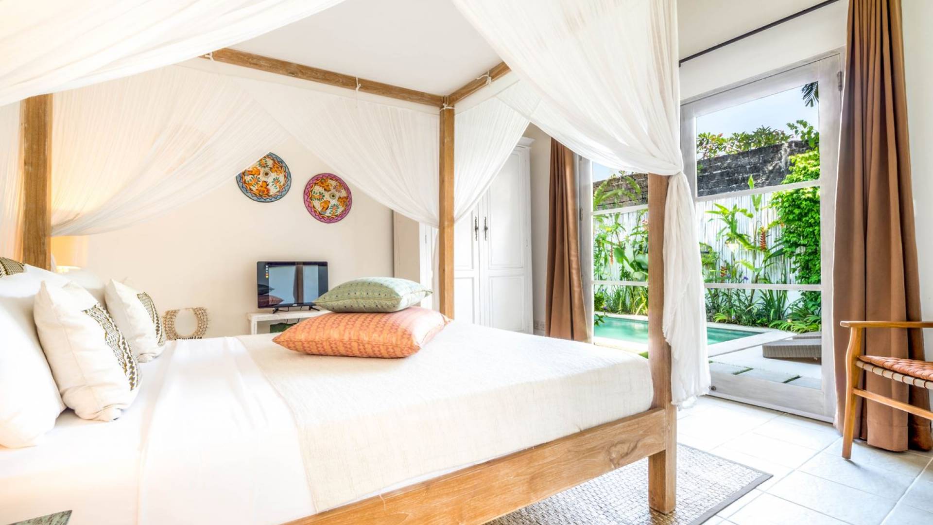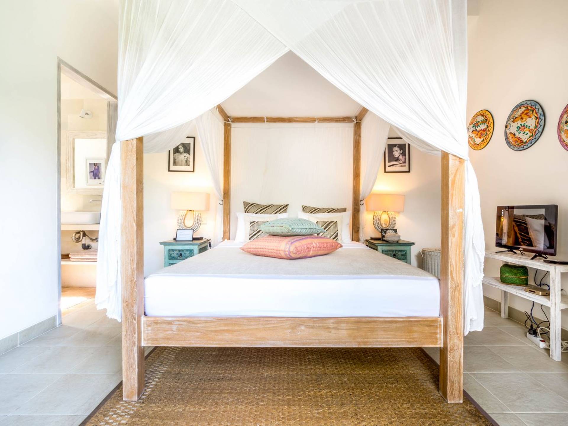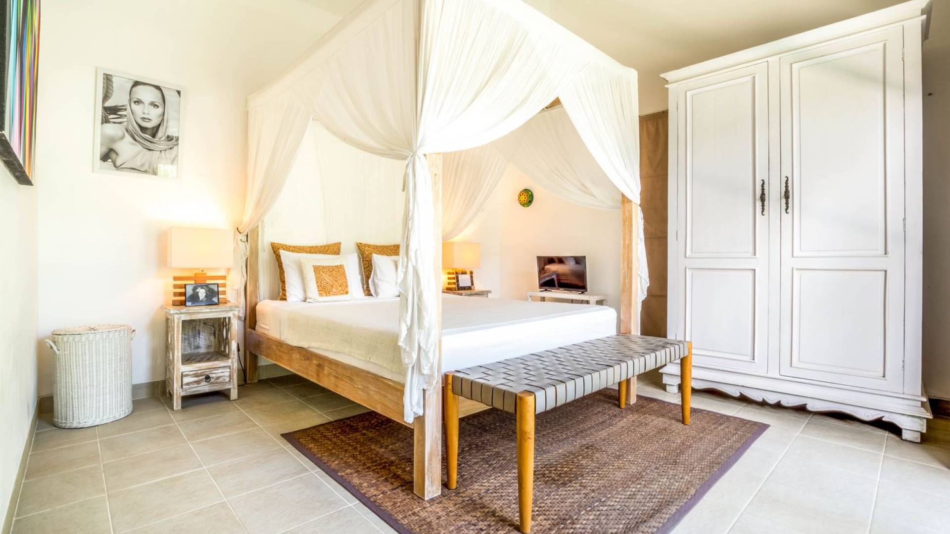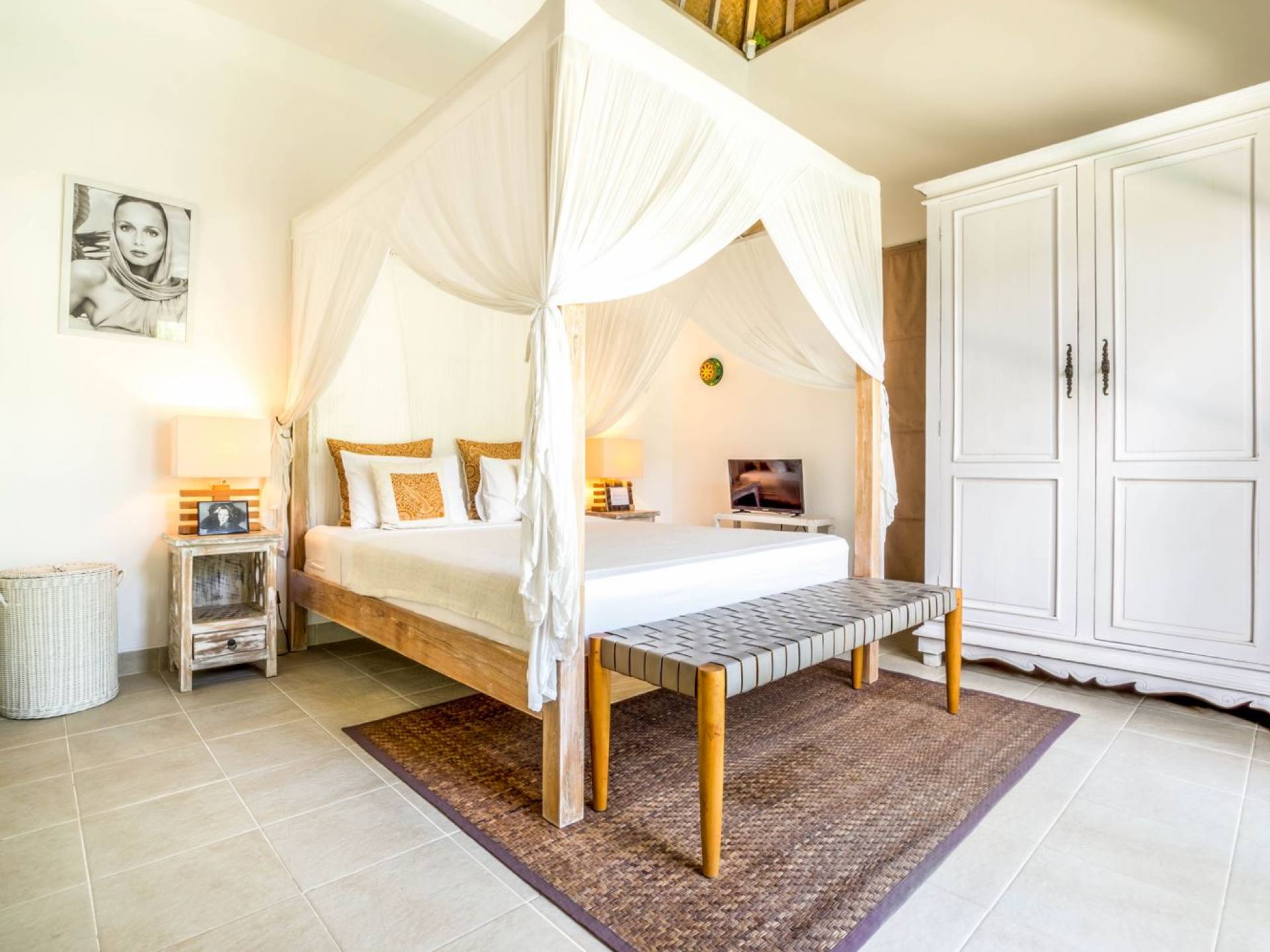 Η Villa Tara διαθέτει τρεις ιδιωτικές σουίτες βίλας στις οποίες οι επισκέπτες μπορούν να αποσυρθούν τη νύχτα. Το κύριο δωμάτιο βρίσκεται σε ένα ιδιωτικό κιόσκι με θέα στον κήπο και την πισίνα. Αυτό το πλήρως κλιματιζόμενο υπνοδωμάτιο διαθέτει μια ευάερη, ψηλή ταράτσα και ένα εκπληκτικό κρεβάτι king-size με ουρανό, ντυμένο σε μια λευκή κουνουπιέρα. Πριν κοιμηθείτε, μπορείτε να παρακολουθήσετε μια ταινία μαζί με το αγαπημένο σας πρόσωπο στην τηλεόραση επίπεδης οθόνης με ένα DVD player. Το ιδιωτικό μπάνιο διαθέτει χαλαρωτικό ντους μουσώνα, νιπτήρα και W.C. Τα πράσινα φυτά προσθέτουν στην τροπική αίσθηση της εμπειρίας του ντους σας. Μετά από ένα ζεστό ντους, μπορείτε να φορέσετε το φρέσκο κιμονό που σας περιμένουν στην ντουλάπα της γκαρνταρόμπας. Τα δύο υπνοδωμάτια επισκεπτών απολαμβάνουν επίσης υπέροχη θέα στην πισίνα καθώς και εύκολη πρόσβαση, επιτρέποντας σε όλους τους επισκέπτες να πάνε νωρίς το πρωί για μπάνιο στην πισίνα. Και τα δύο δωμάτια διαθέτουν κλιματισμό, άνετα διπλά κρεβάτια και ιδιωτικό μπάνιο με ζεστό/κρύο ντους ψιλής βροχής. Ένα από αυτά τα δωμάτια διαθέτει επίσης τηλεόραση και DVD player για ψυχαγωγία πριν τον ύπνο.
