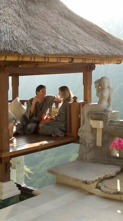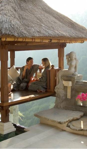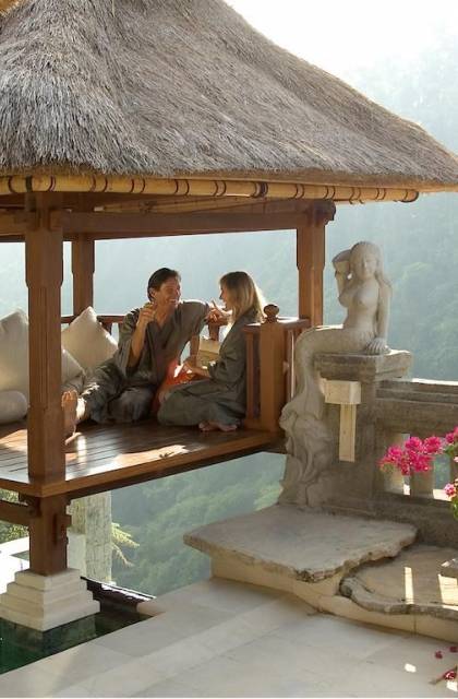 Περάστε από την παραδοσιακή σκαλιστή πόρτα στη δική σας μπαλινέζικη ευδαιμονία. Η ρομαντική ατμόσφαιρα αυτών των βίλες με πισίνα τις καθιστά μία από τις καλύτερες βίλες στο Ubud, ιδανικές για νεόνυμφους και ζευγάρια. Η αχυρένια οροφή με γρασίδι alang alang και τα μπαλινέζικα τεχνουργήματα στη βίλα σας μεταφέρουν σε έναν άλλο πολιτισμό. ενώ το παραδοσιακό μπανγκαλόου balé που βρίσκεται πάνω από την πισίνα είναι το αποκορύφωμα της βίλας Terrace, που θεωρείται ευρέως ως μία από τις καλύτερες βίλες στο Ubud. Το μπαλινέζικο balé σκαρφαλώνει κομψά πάνω από την εξωτερική θερμαινόμενη πισίνα και έχει θέα στην υπέροχη θέα στη ζούγκλα. Η ιδανική τοποθεσία για να απολαύσετε το πρωινό ή να χαλαρώσετε με ένα καλό βιβλίο.