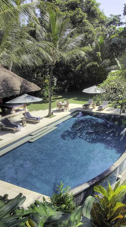 Νιώστε τις τροπικές δονήσεις της εξωτικής Villa Alamanda Ubud, ανάμεσα σε φοίνικες και ψηλή βλάστηση, αυτή η υπέροχη ιδιοκτησία σίγουρα θα σας ξυπνήσει όλες τις αισθήσεις! Ο ιδιοκτήτης της βίλας με πολλή αγάπη για τον τροπικό παράδεισο έφτιαξε μια κομψή βίλα στην καταπράσινη ζούγκλα κοντά στο Ubud.