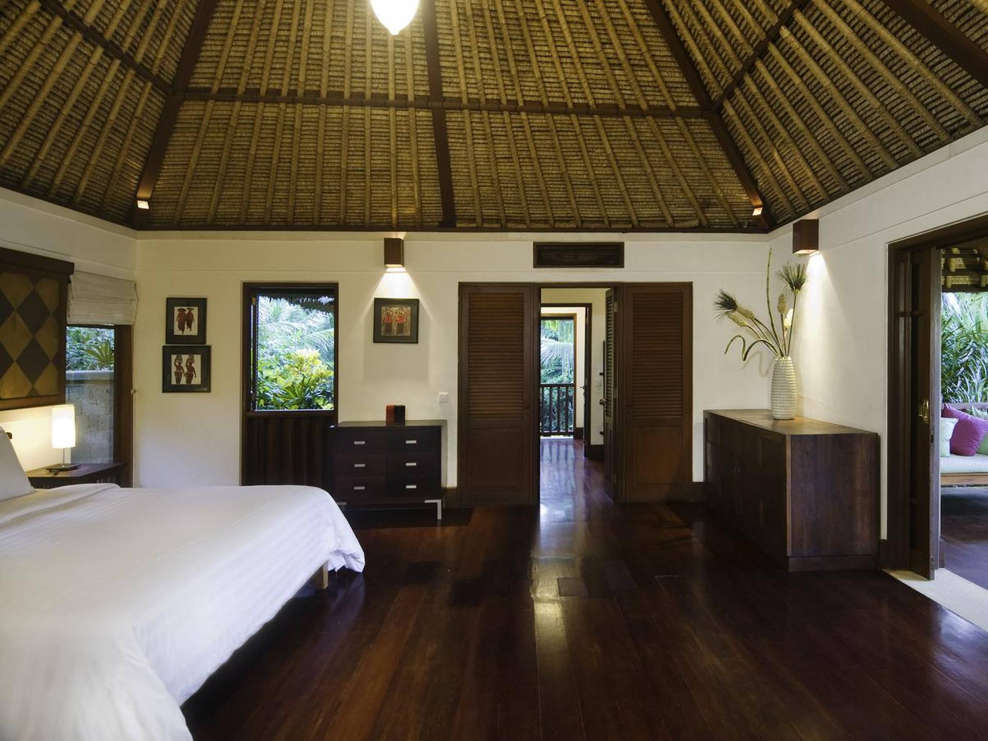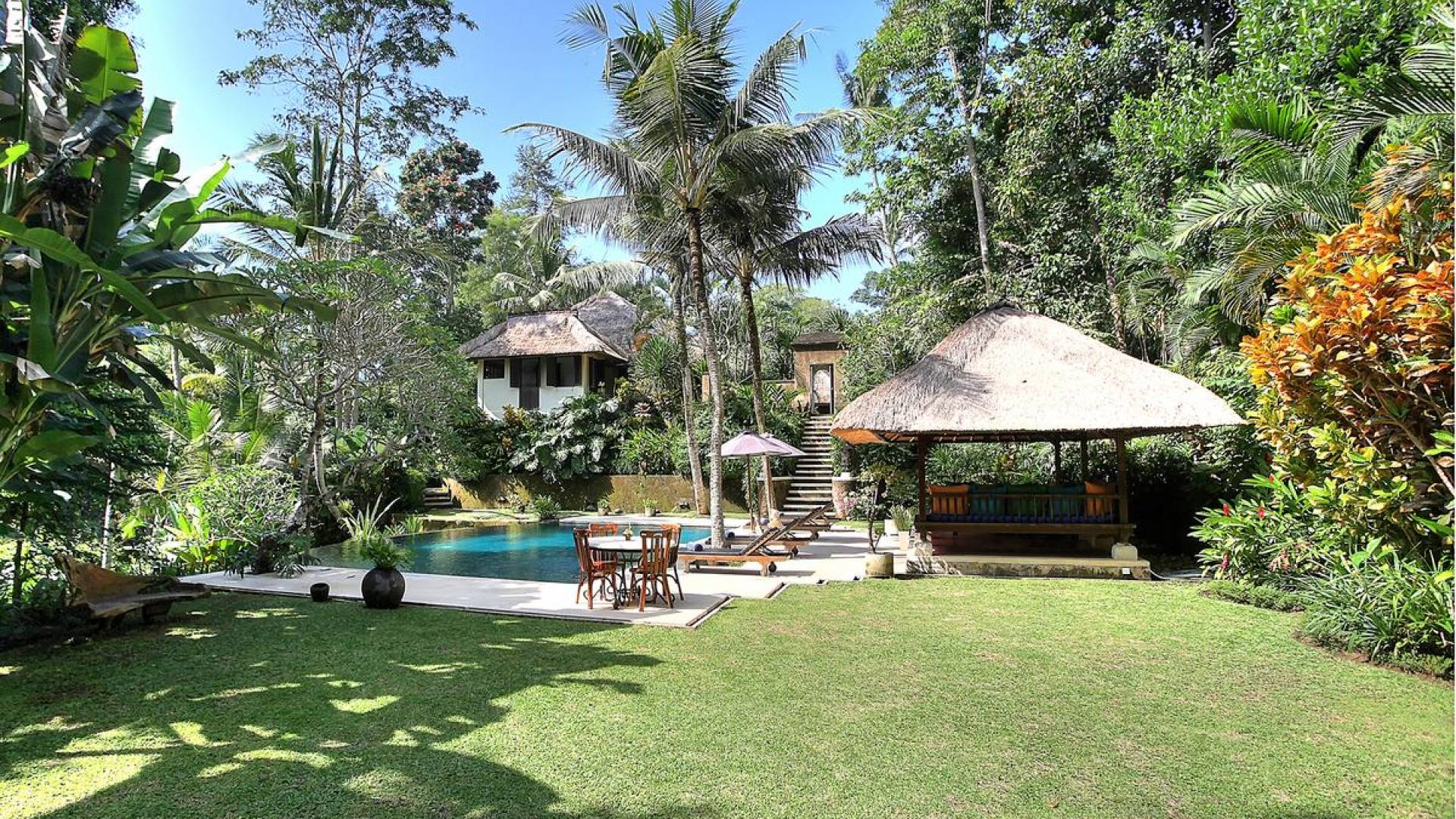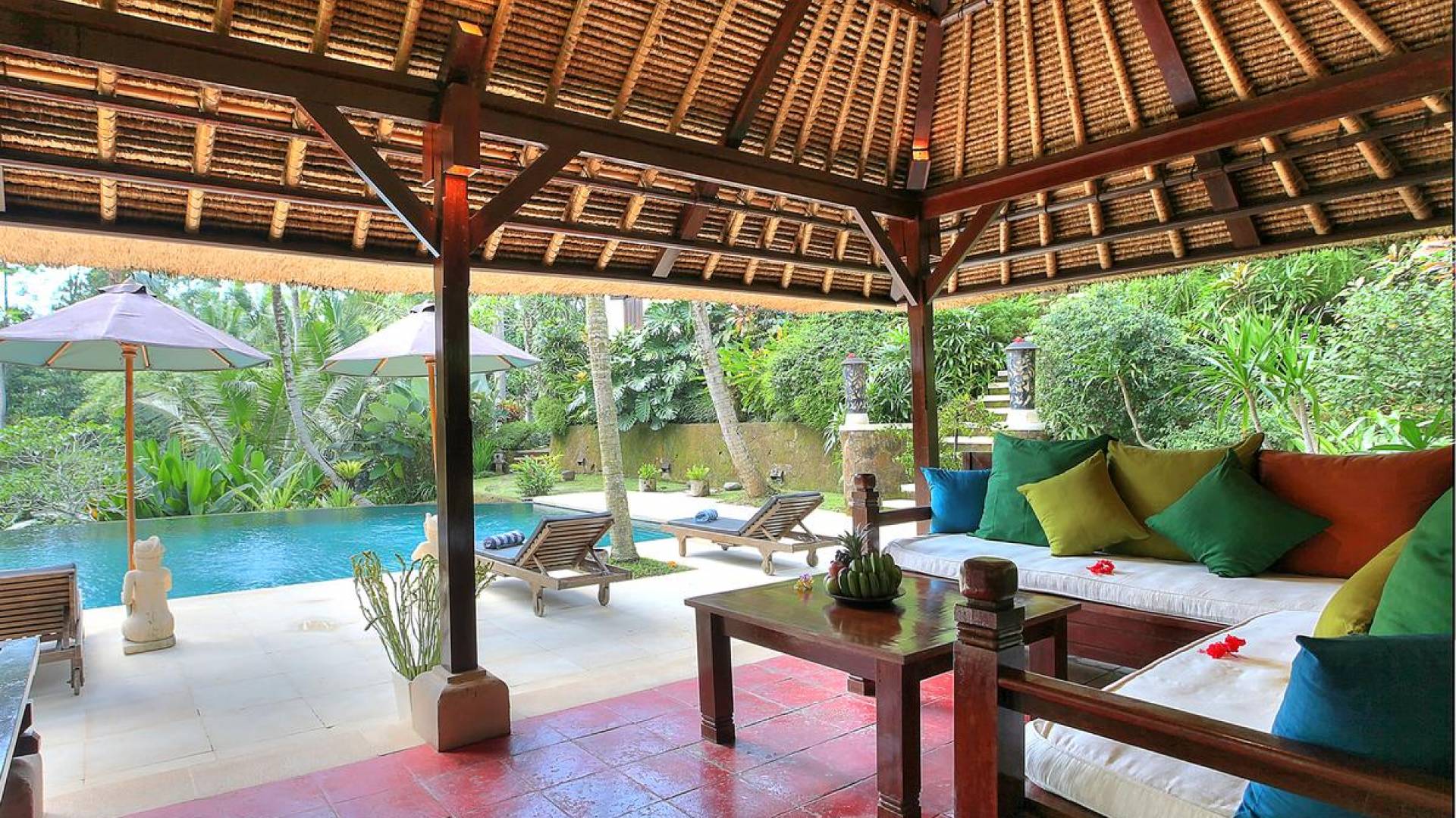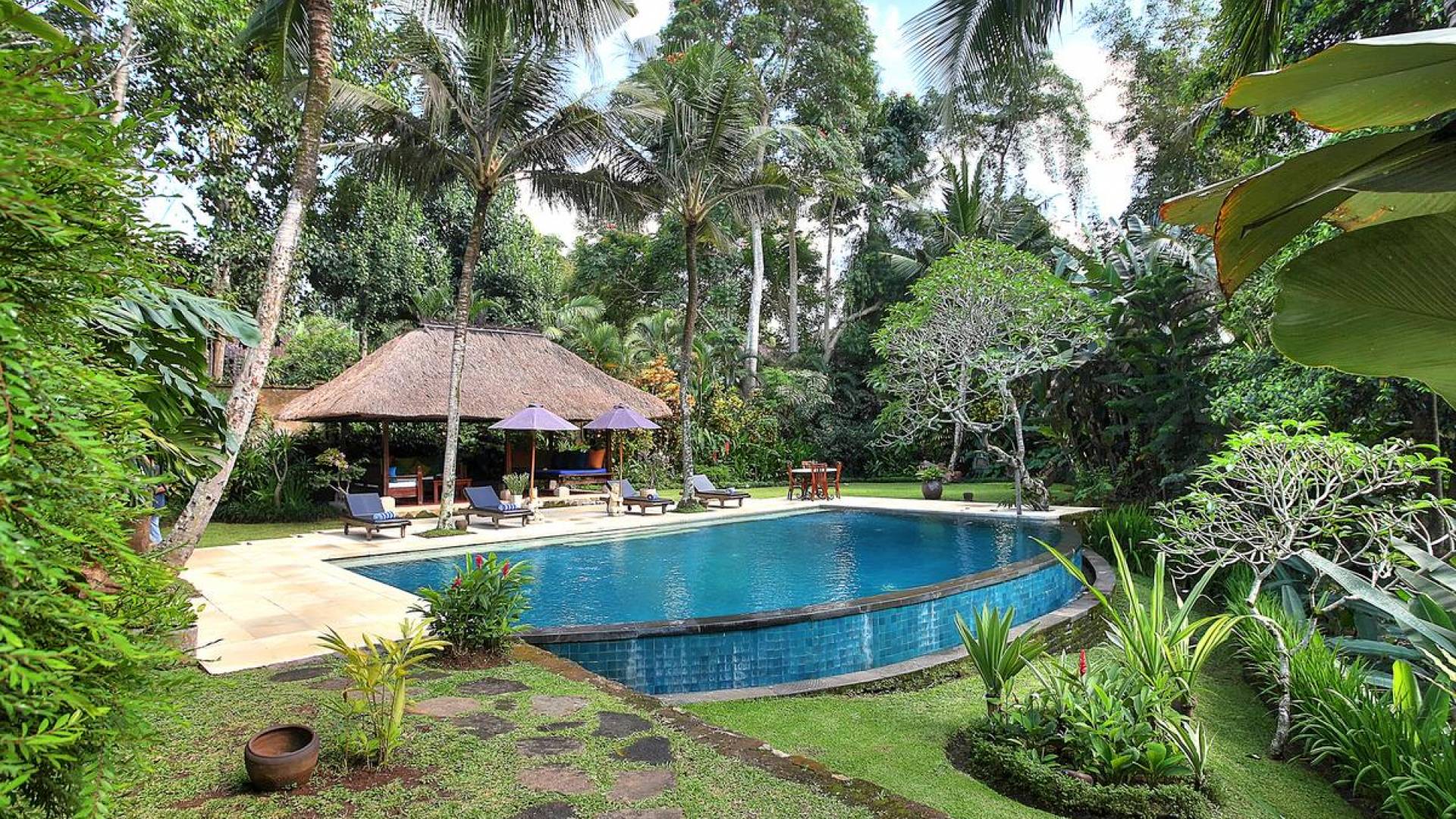 Σχεδιασμένη με αγάπη και με απόλυτο σεβασμό για το φυσικό περιβάλλον, αυτή η εκπληκτική βίλα είναι σκαρφαλωμένη ψηλά σε ένα φαράγγι του ποταμού, πολύ κοντά στο πολιτιστικό κέντρο του Μπαλί, στο Ubud. Καθαρές γραμμές, φυσικά χρώματα και έργα τέχνης από ντόπιους καλλιτέχνες, φτιαγμένα με βάση την αρχιτεκτονική του Μπαλί, το Alamanda Villa συνδυάζει κομψά έπιπλα στο υπαίθριο lounge και τραπεζαρία με κομψά ευρύχωρα υπνοδωμάτια με ιδιωτικό μπάνιο.