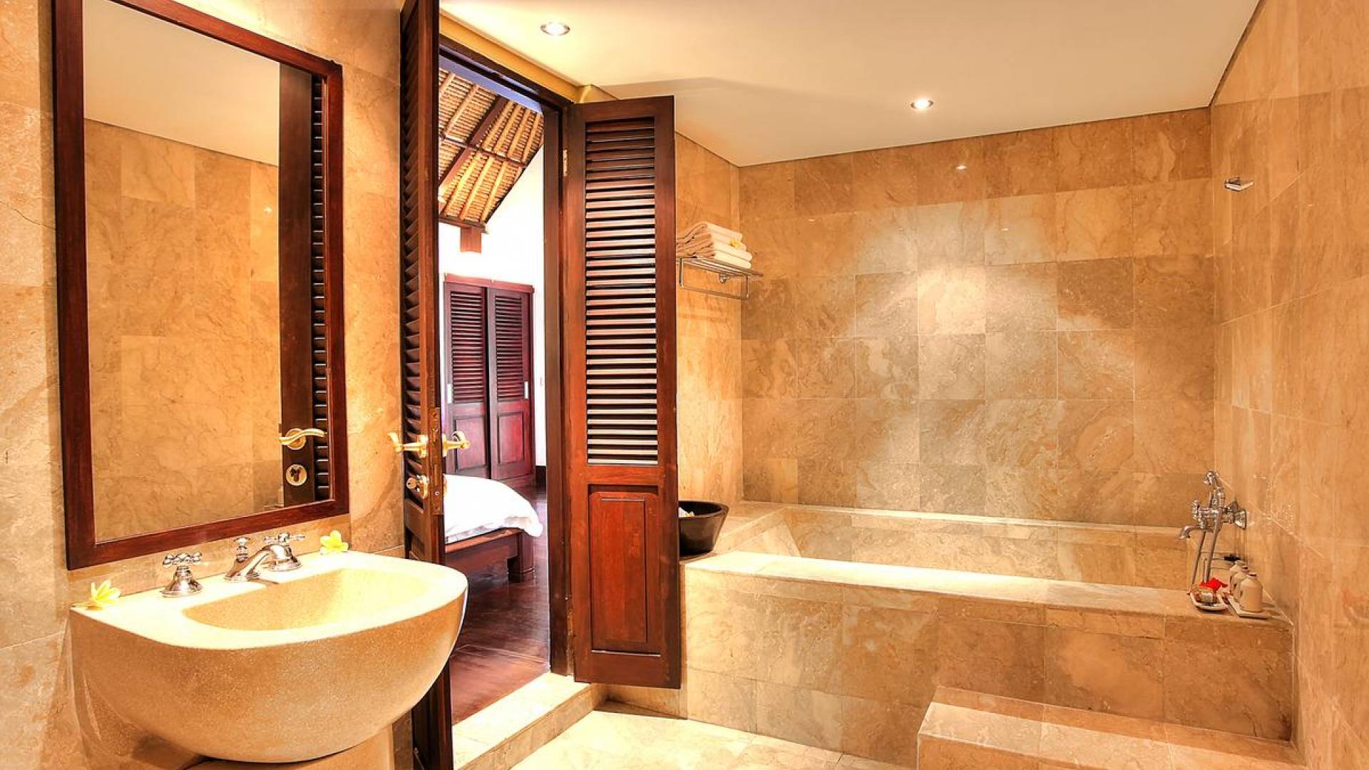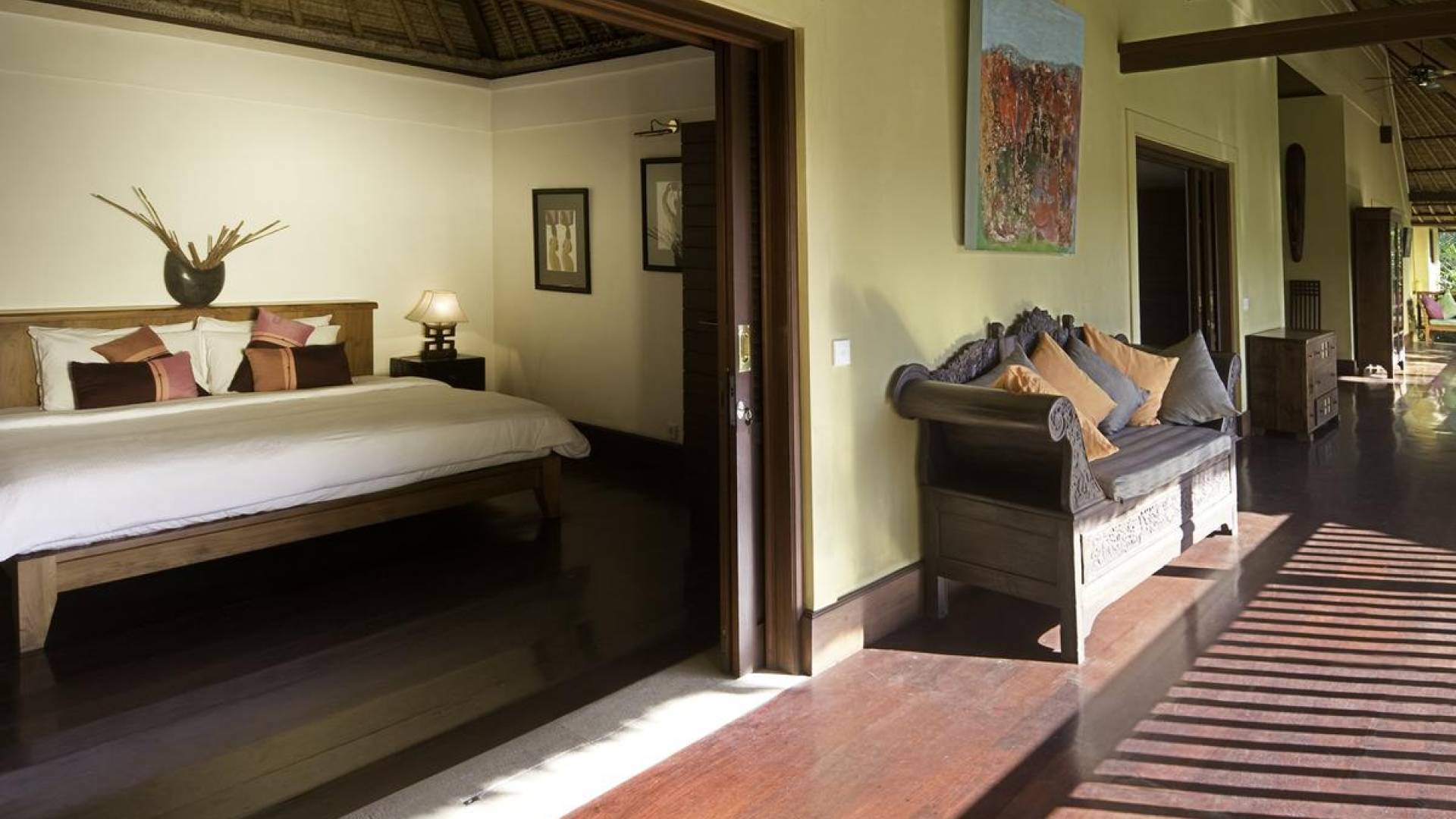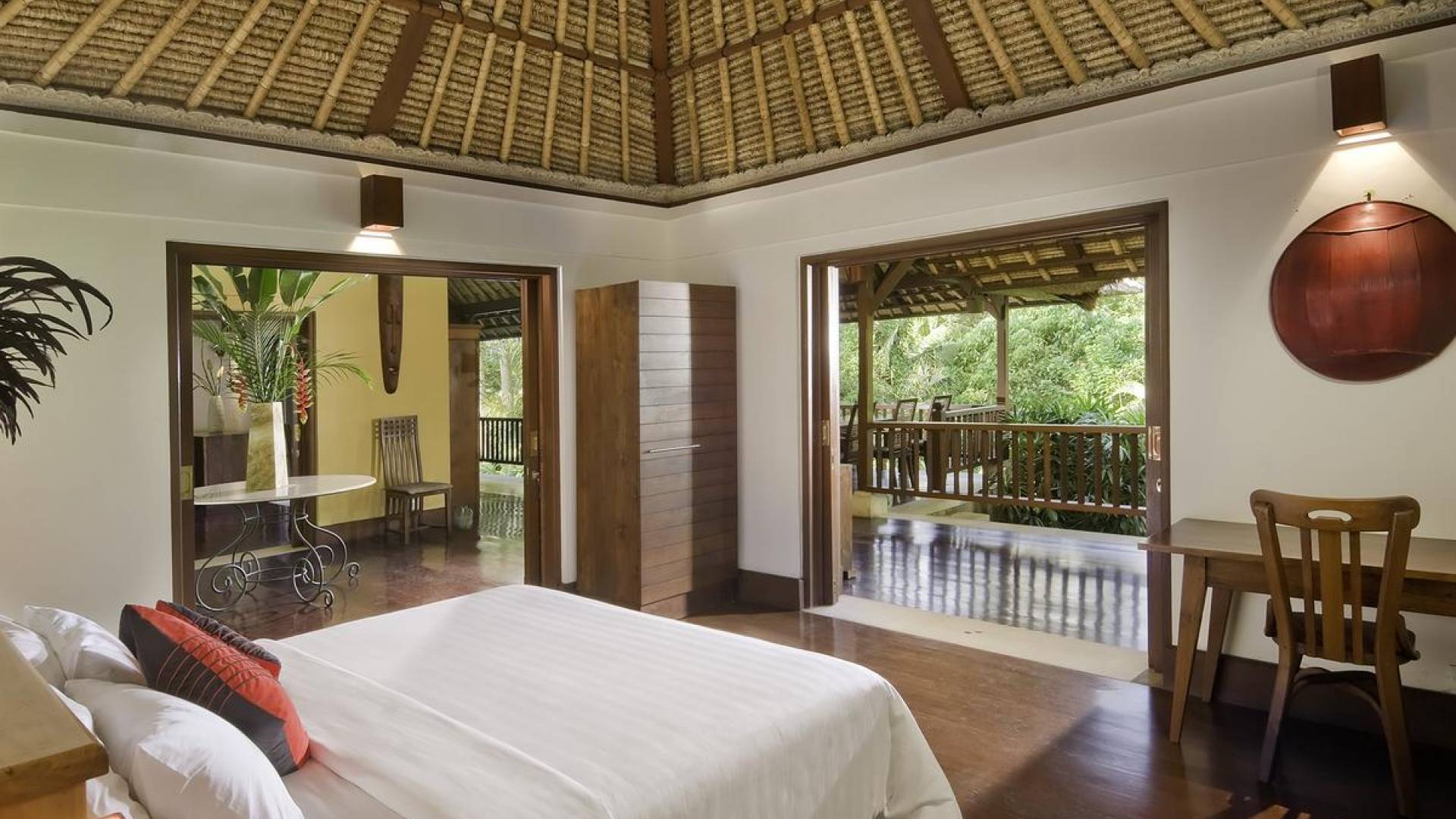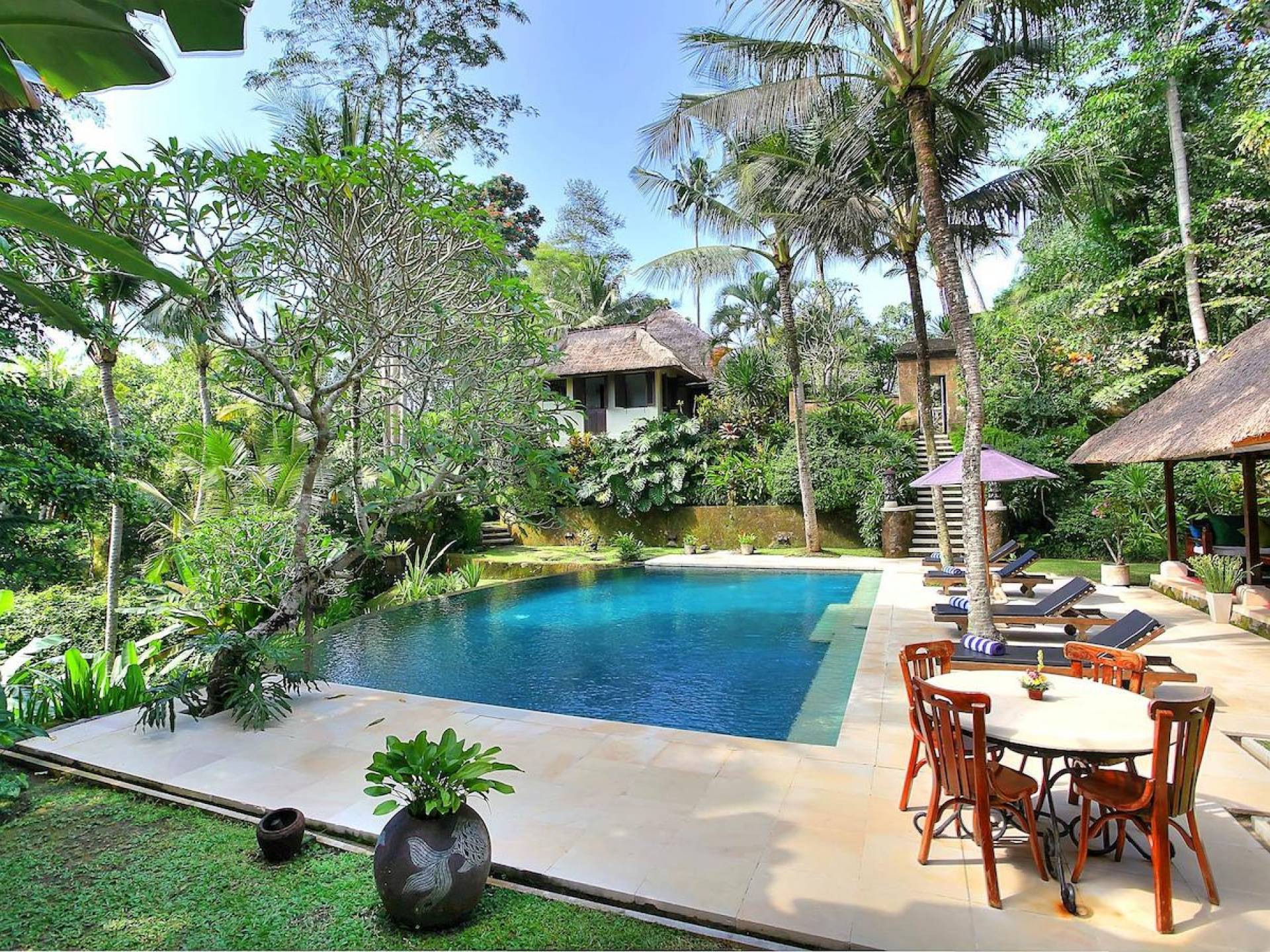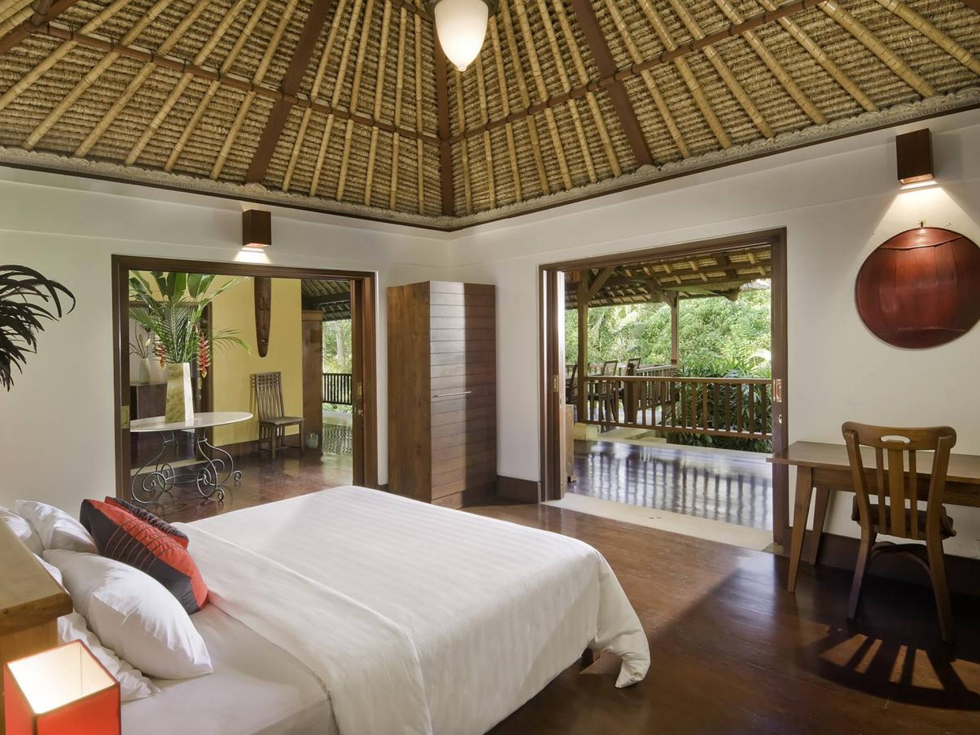 Σχεδιασμένη με αγάπη και με απόλυτο σεβασμό για το φυσικό περιβάλλον, αυτή η εκπληκτική βίλα είναι σκαρφαλωμένη ψηλά σε ένα φαράγγι του ποταμού, πολύ κοντά στο πολιτιστικό κέντρο του Μπαλί, στο Ubud. Καθαρές γραμμές, φυσικά χρώματα και έργα τέχνης από ντόπιους καλλιτέχνες, φτιαγμένα με βάση την αρχιτεκτονική του Μπαλί, το Alamanda Villa συνδυάζει κομψά έπιπλα στο υπαίθριο lounge και τραπεζαρία με κομψά ευρύχωρα υπνοδωμάτια με ιδιωτικό μπάνιο.