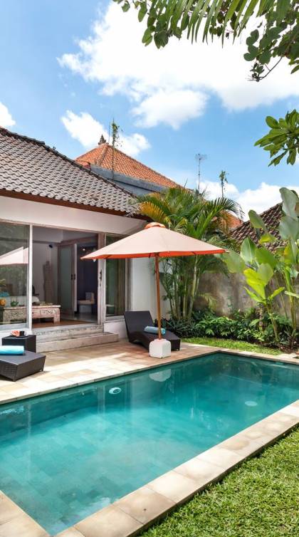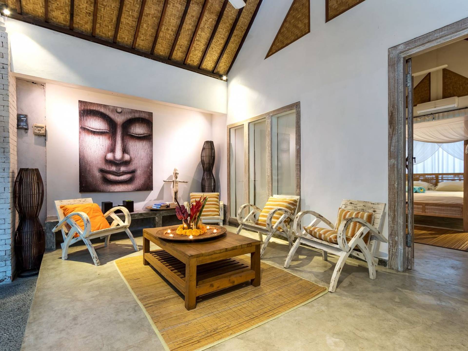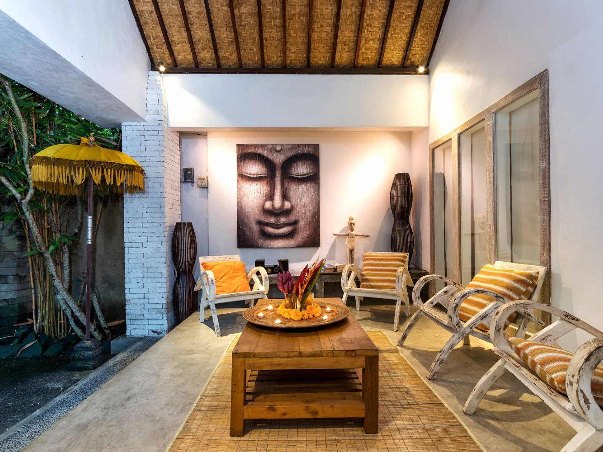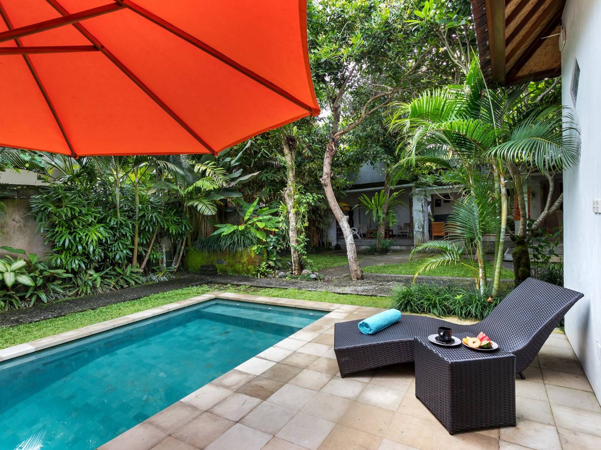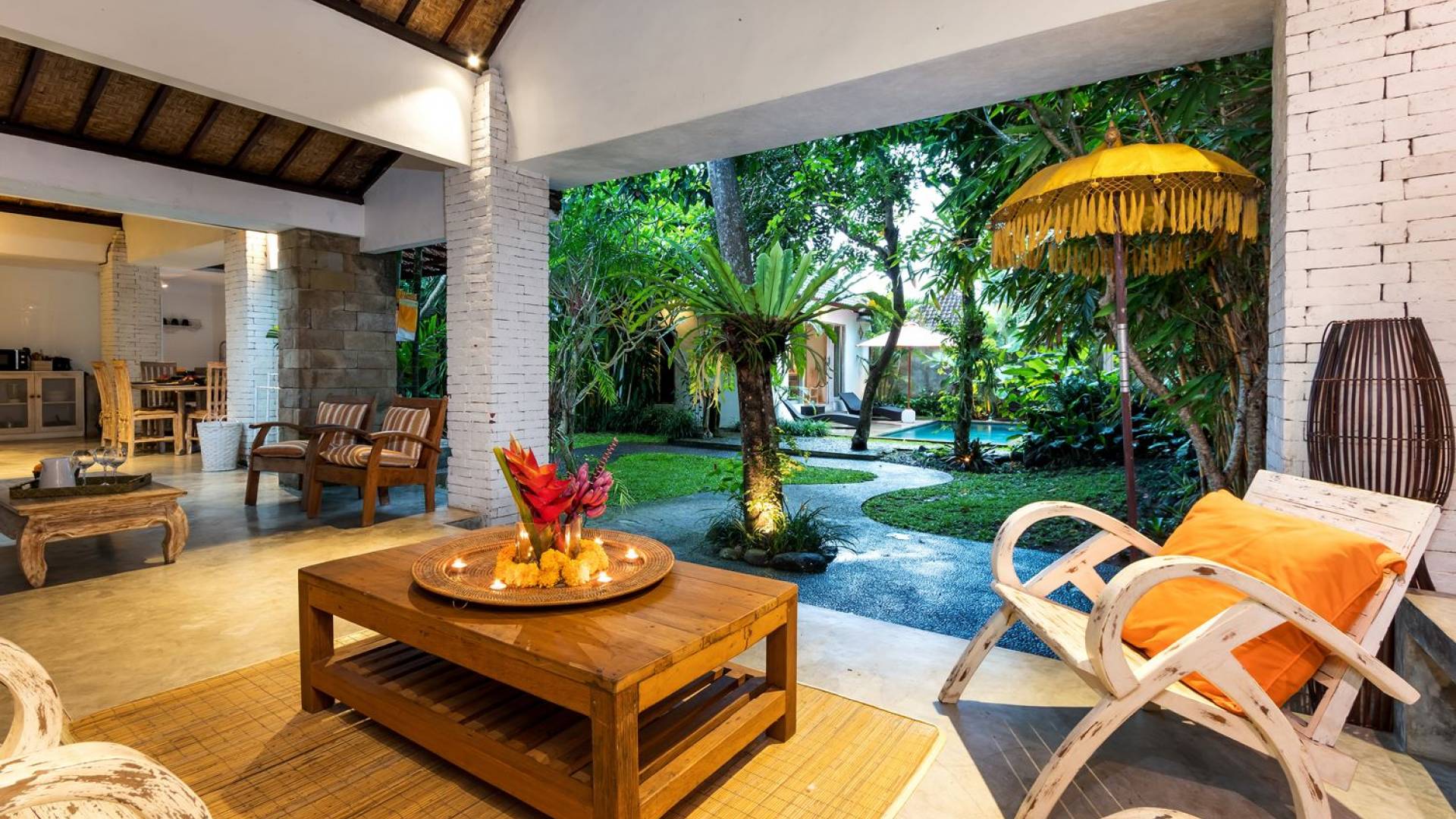 Η Villa Lanka σας καλωσορίζει στον όμορφο ιδιωτικό της τροπικό κήπο, που σκιάζεται από ψηλά τροπικά δέντρα, πράσινο και κίτρινες παραδοσιακές μπαλινέζικες τελετουργικές ομπρέλες. Ακολουθήστε το πέτρινο μονοπάτι ανάμεσα στο πράσινο γρασίδι για να φτάσετε στη βίλα και τον χώρο της πισίνας, όπου μπορείτε να βουτήξετε κατευθείαν στα κρυστάλλινα νερά της ιδιωτικής σας πισίνας. Στον πέτρινο χώρο ηλιοθεραπείας δίπλα στην πισίνα, βρίσκεται ένα παραδοσιακό μπαλινέζικο ανάκλιντρο για να χαλαρώσετε και να χαλαρώσετε στο ύπαιθρο. Ένα ωραίο μικρό μέρος για να διαβάσετε ένα βιβλίο ή να χουχουλιάζετε κατά τη διάρκεια της ημέρας υπό τους ήχους της φύσης. Τα παιδιά μπορούν εύκολα να βρουν ένα σκιερό σημείο στο γρασίδι και να παίξουν με τα παιχνίδια τους, ενώ οι γονείς μπορούν να μοιραστούν μαζί ένα μπουκάλι παγωμένο λευκό κρασί. Το ανοιχτό σαλόνι σάς επιτρέπει να έχετε μια καλή αίσθηση του τρόπου ζωής του τροπικού νησιού, να αναπνέετε τον καθαρό αέρα, να απολαμβάνετε τη θέα στον κήπο και να παρακολουθείτε τα παιδιά να πηδούν μέσα και έξω από την πισίνα.