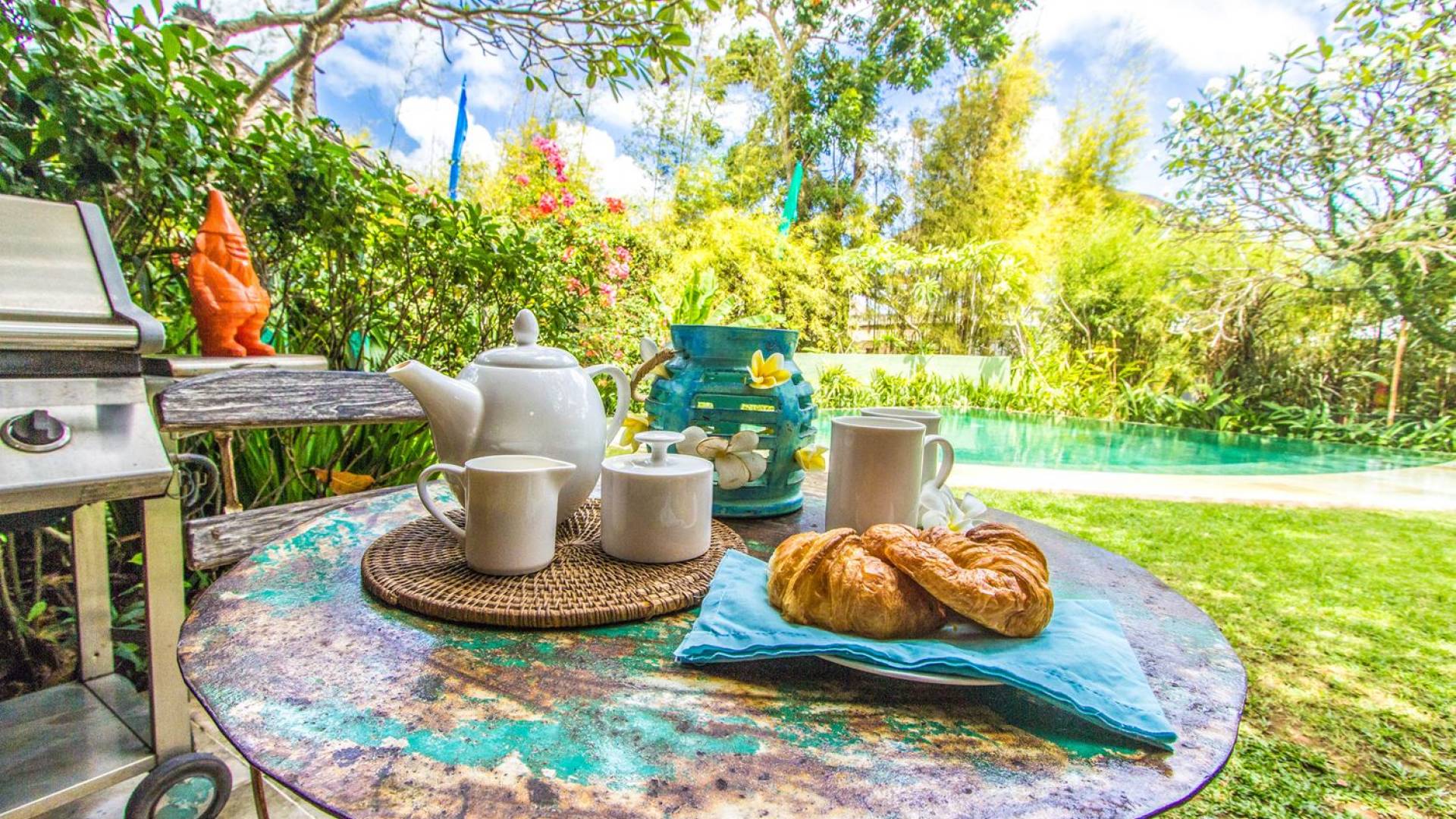 Με καταπράσινους τροπικούς κήπους, καθώς και μια όμορφη πισίνα και μπάλες. Ένα υπέροχο μέρος για να περάσετε τις μέρες σας. Ένα μεγάλο σαλόνι για να καθίσετε και να περάσετε ποιοτικό χρόνο με την οικογένεια και τους φίλους σας. Πλήρως εξοπλισμένη κουζίνα με όλες τις σύγχρονες συσκευές. Τραπεζαρία αντίκα που χωράει 8 άτομα. Και τα δύο υπνοδωμάτια διαθέτουν κρεβάτια king-size ή 2 μονά κρεβάτια, εάν ζητηθούν και είναι εξοπλισμένα με ποιοτικά κλινοσκεπάσματα. διακοσμημένο με γούστο με αυτή την όμορφη αίσθηση του Μπαλί.