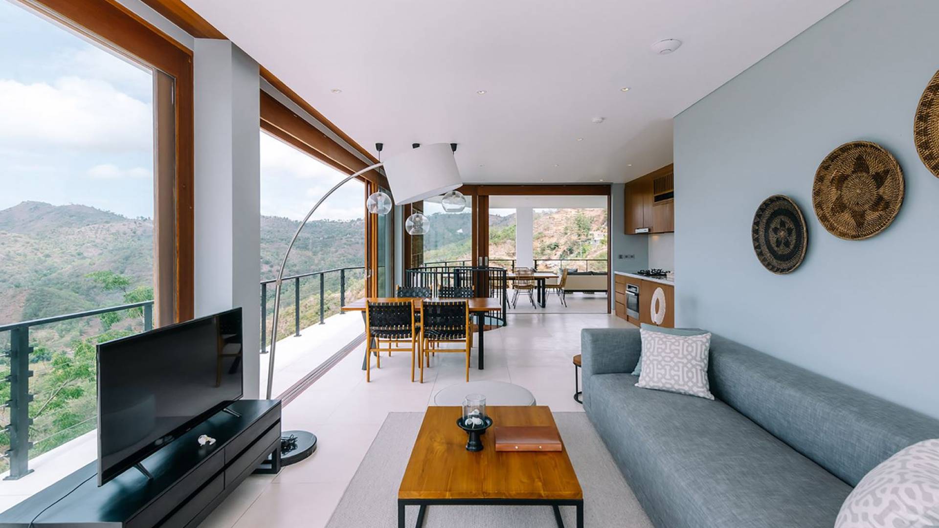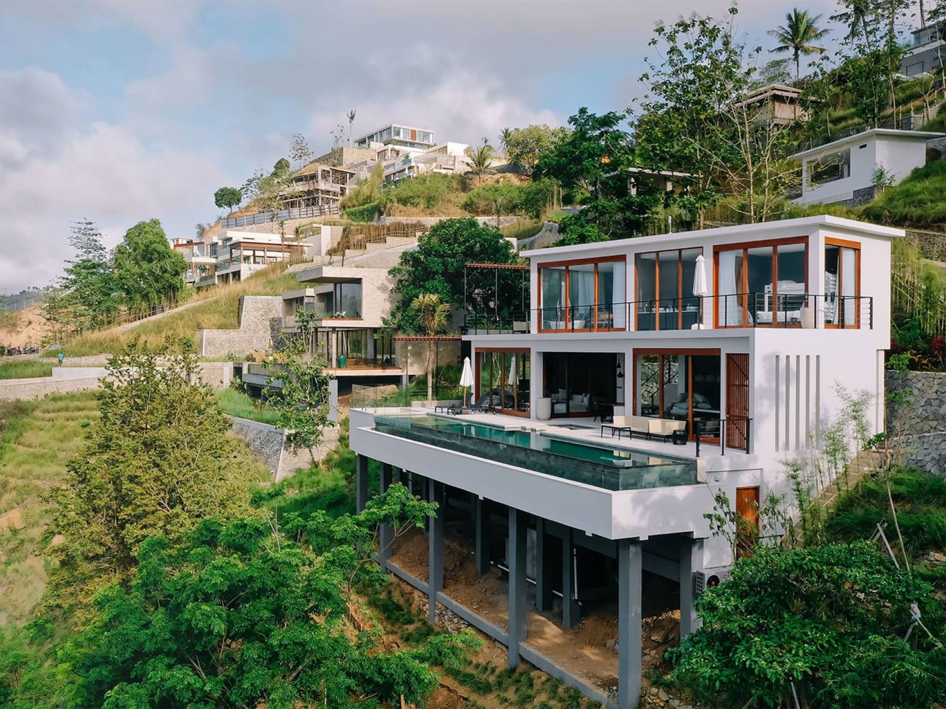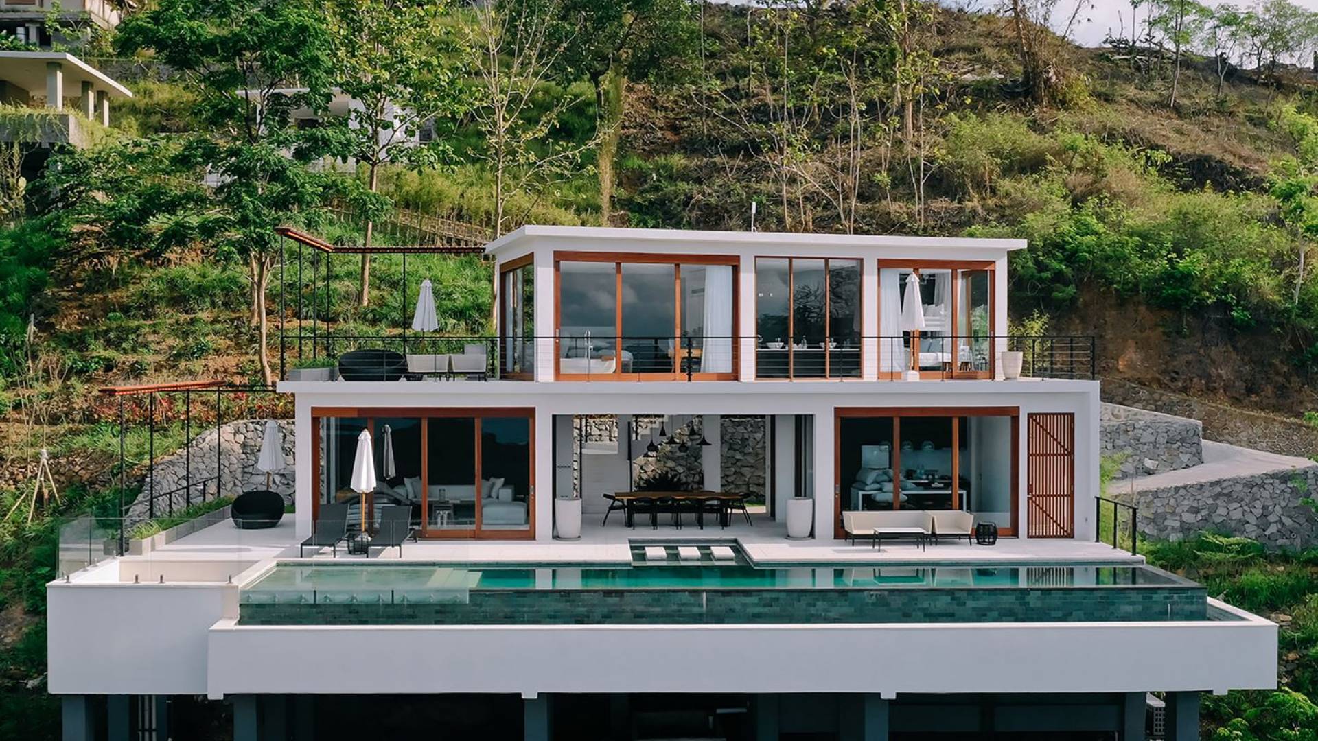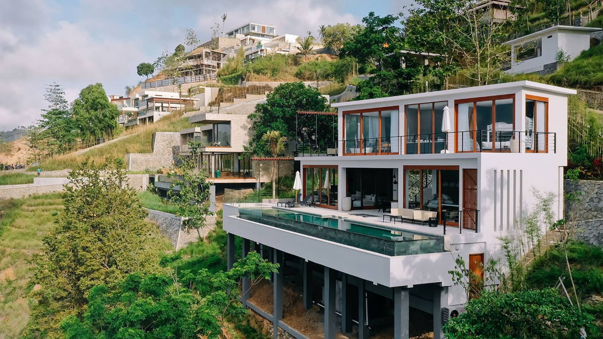 Χτισμένες ακριβώς πάνω στους λόφους, με πλούσιο στιλ και διακοσμημένους εσωτερικούς χώρους, με έπιπλα και εξαρτήματα τελευταίας τεχνολογίας, η αρχιτεκτονική των πολυτελών βιλών είναι πραγματικά εξαιρετική. Οι τεράστιες γυάλινες συρόμενες πόρτες από το δάπεδο μέχρι την οροφή δεν αφήνουν άλλη επιλογή από το να κοιτάξετε την εκπληκτική θέα ακόμα και όταν θέλετε να μείνετε μέσα. Μπλε, καφέ και γκρι χρώματα που συνδυάζονται υπέροχα ταιριάζουν απόλυτα με τη φιλοσοφία των βιλών. Ο μοντέρνος σχεδιασμός με παραδοσιακές λεπτομέρειες δημιουργεί μια χαλαρωτική ατμόσφαιρα για όλους.