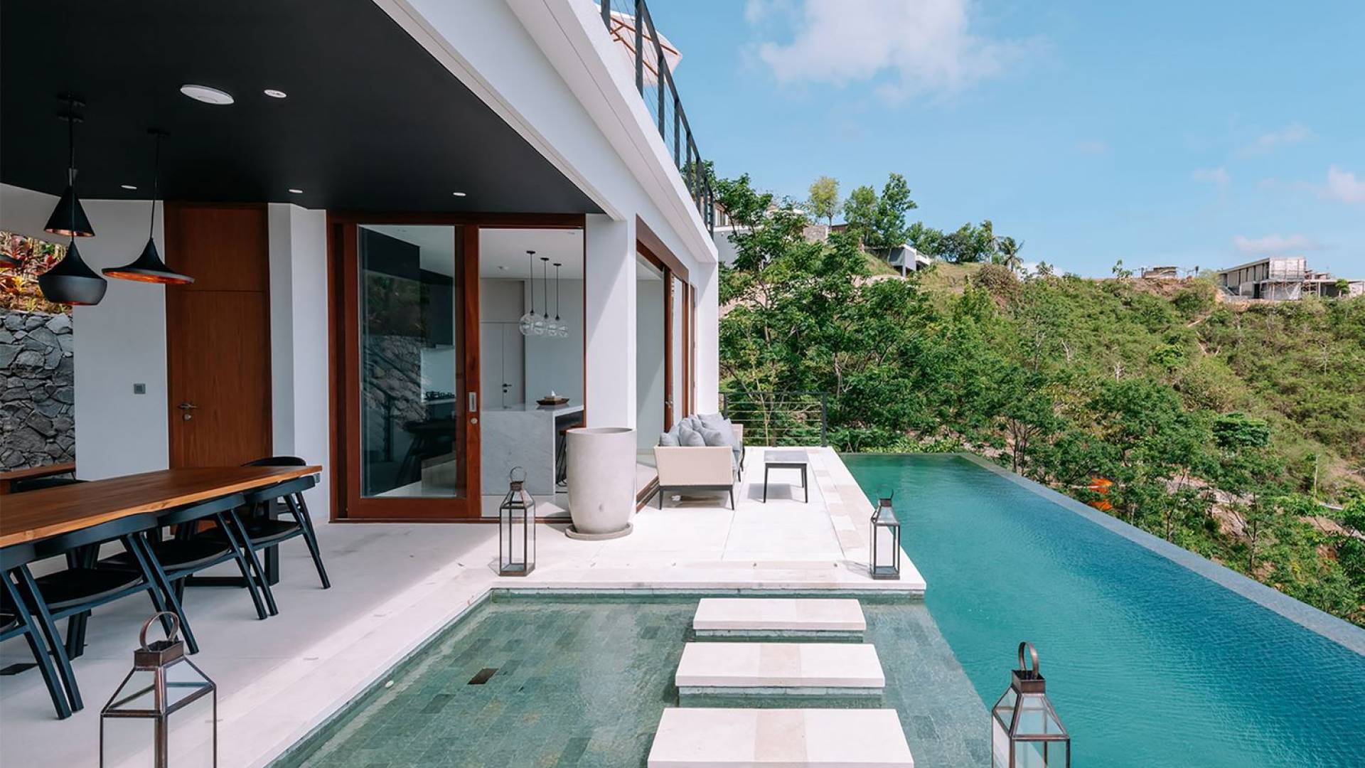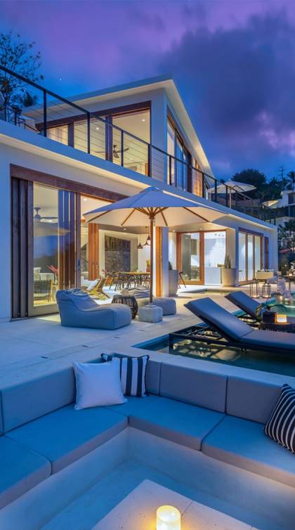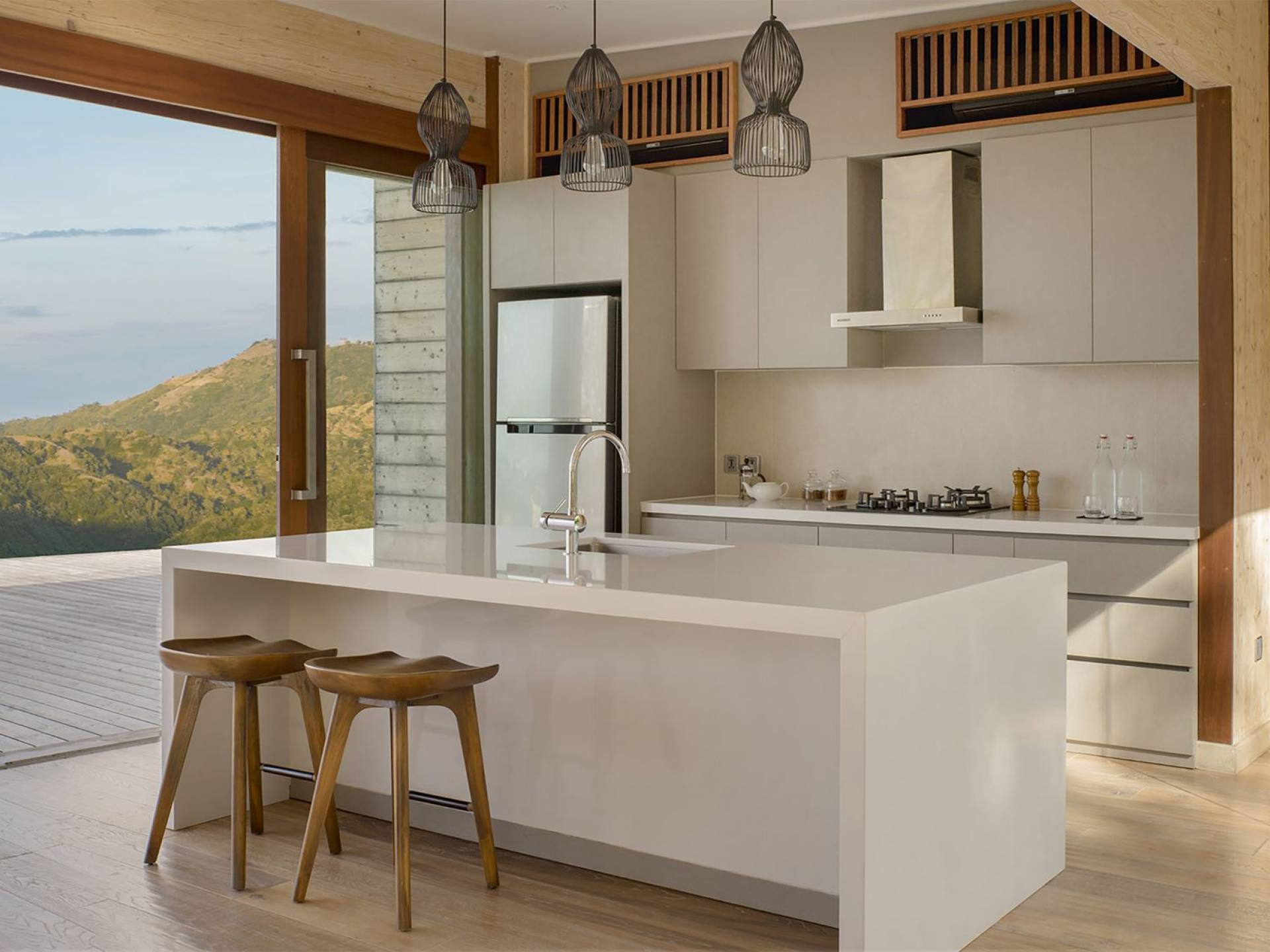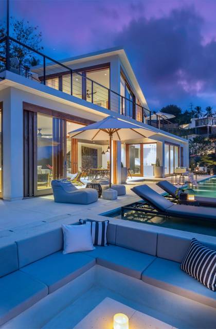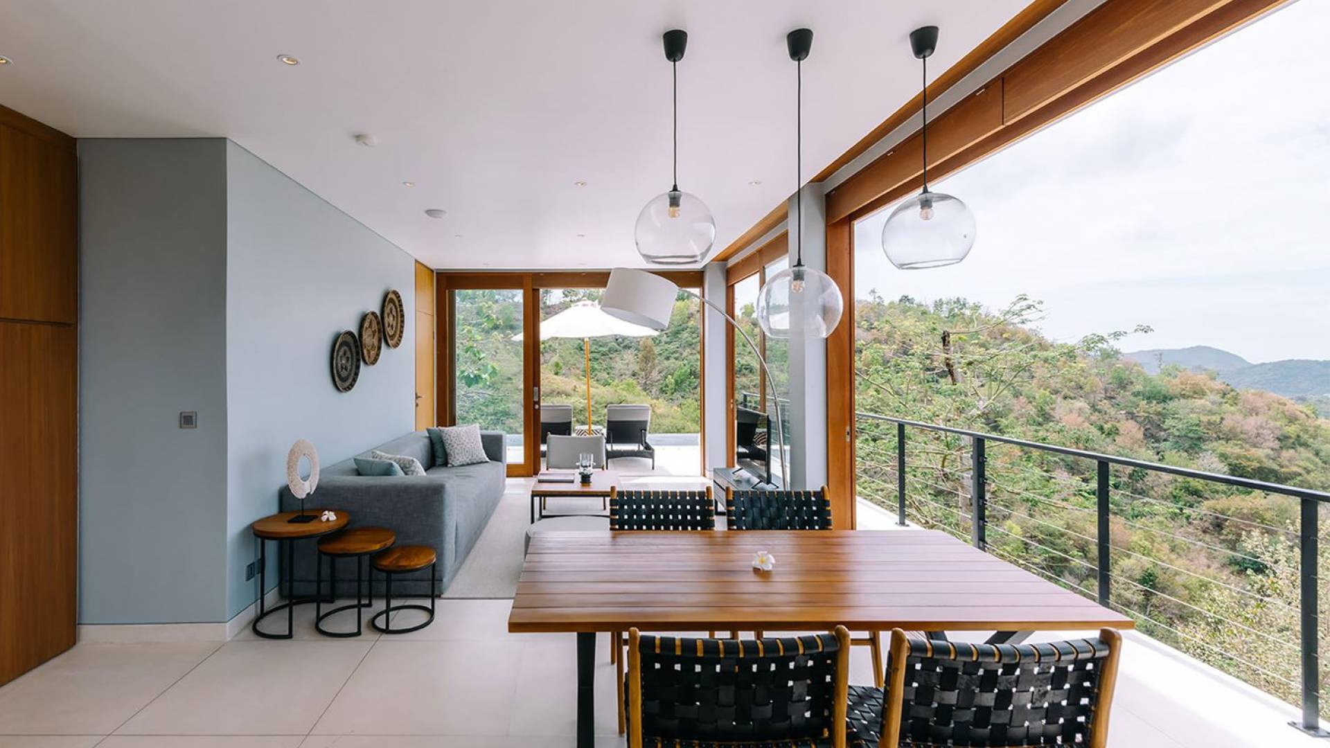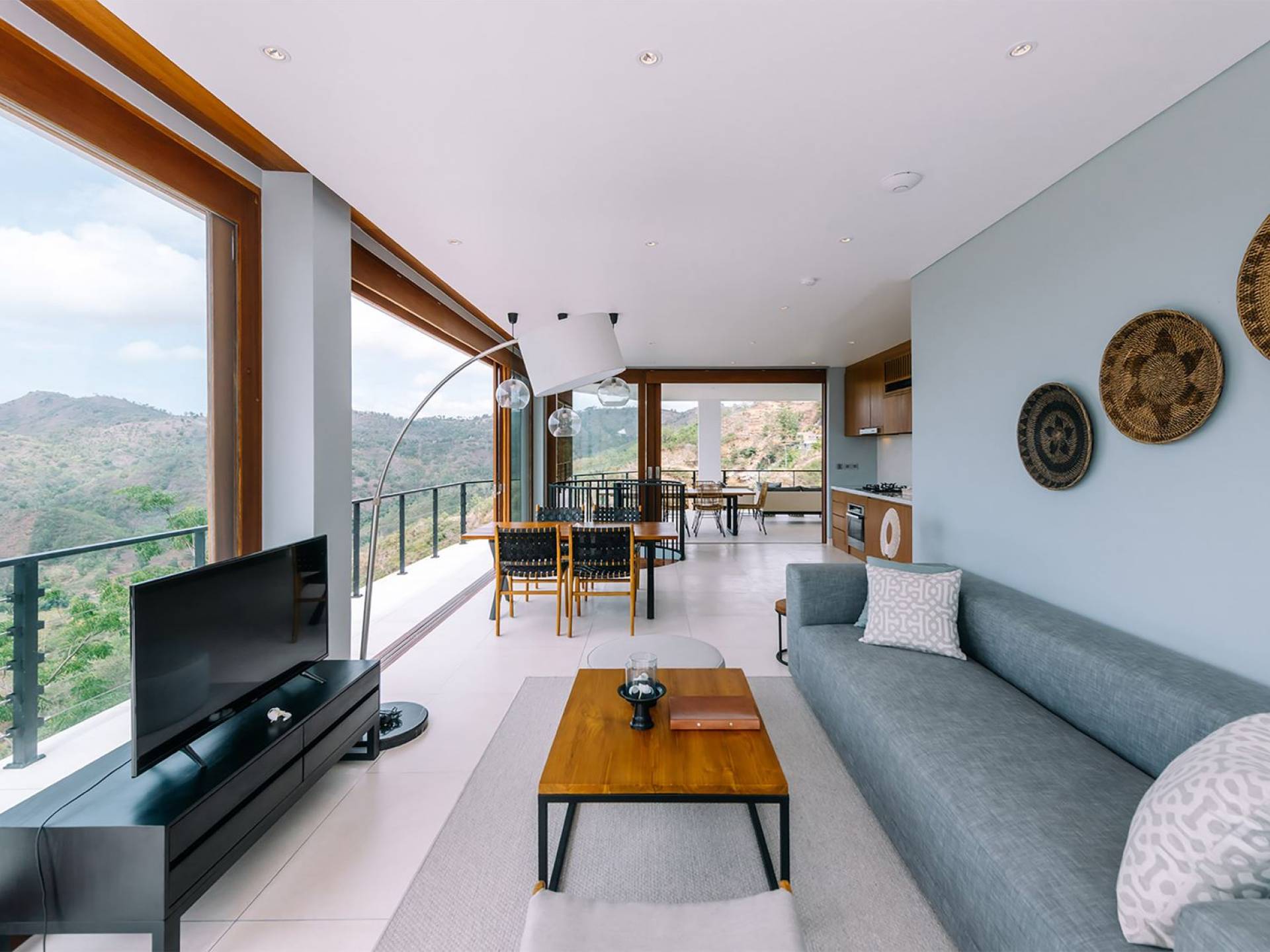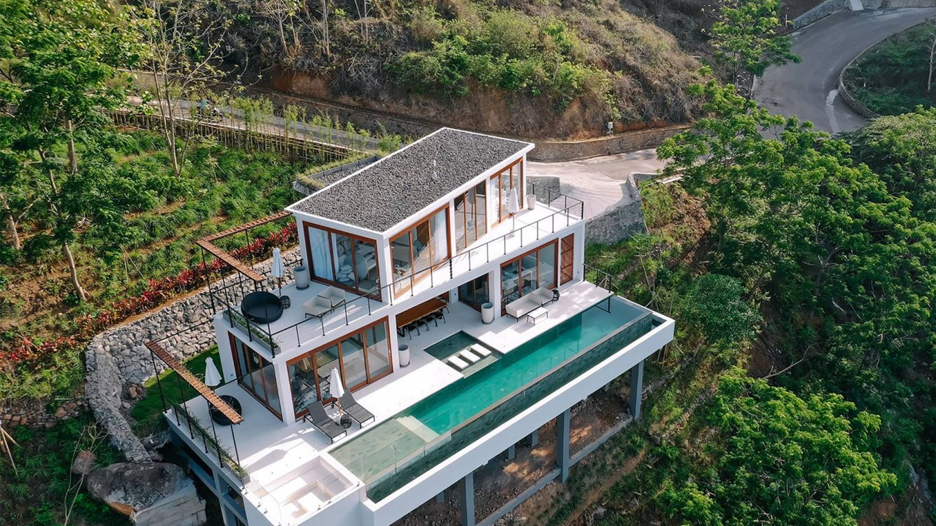Χτισμένες ακριβώς πάνω στους λόφους, με πλούσιο στιλ και διακοσμημένους εσωτερικούς χώρους, με έπιπλα και εξαρτήματα τελευταίας τεχνολογίας, η αρχιτεκτονική των πολυτελών βιλών είναι πραγματικά εξαιρετική. Οι τεράστιες γυάλινες συρόμενες πόρτες από το δάπεδο μέχρι την οροφή δεν αφήνουν άλλη επιλογή από το να κοιτάξετε την εκπληκτική θέα ακόμα και όταν θέλετε να μείνετε μέσα. Μπλε, καφέ και γκρι χρώματα που συνδυάζονται υπέροχα ταιριάζουν απόλυτα με τη φιλοσοφία των βιλών. Ο μοντέρνος σχεδιασμός με παραδοσιακές λεπτομέρειες δημιουργεί μια χαλαρωτική ατμόσφαιρα για όλους.