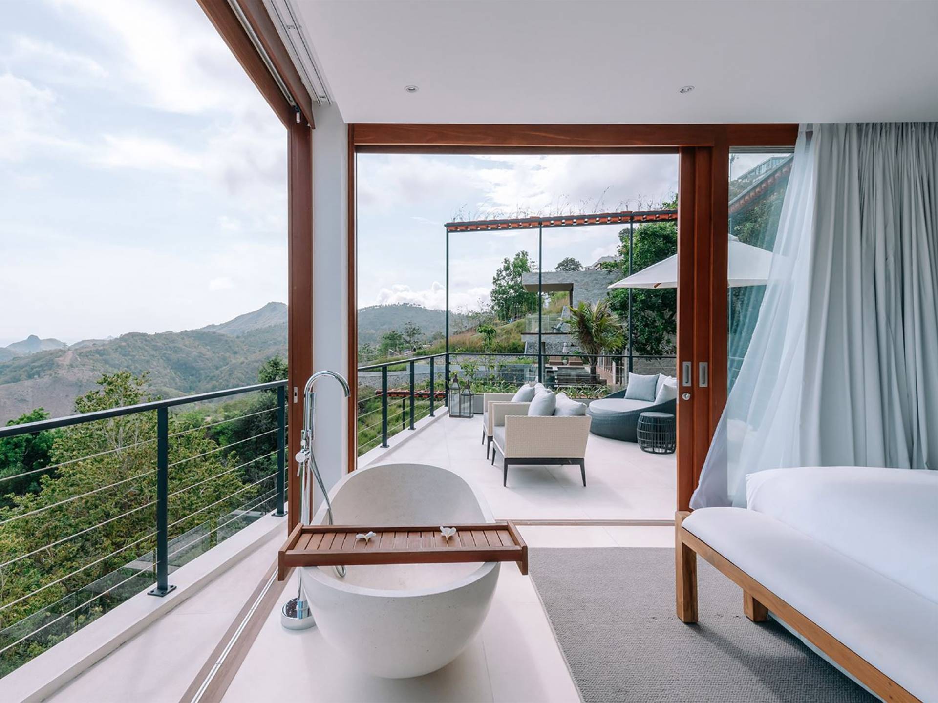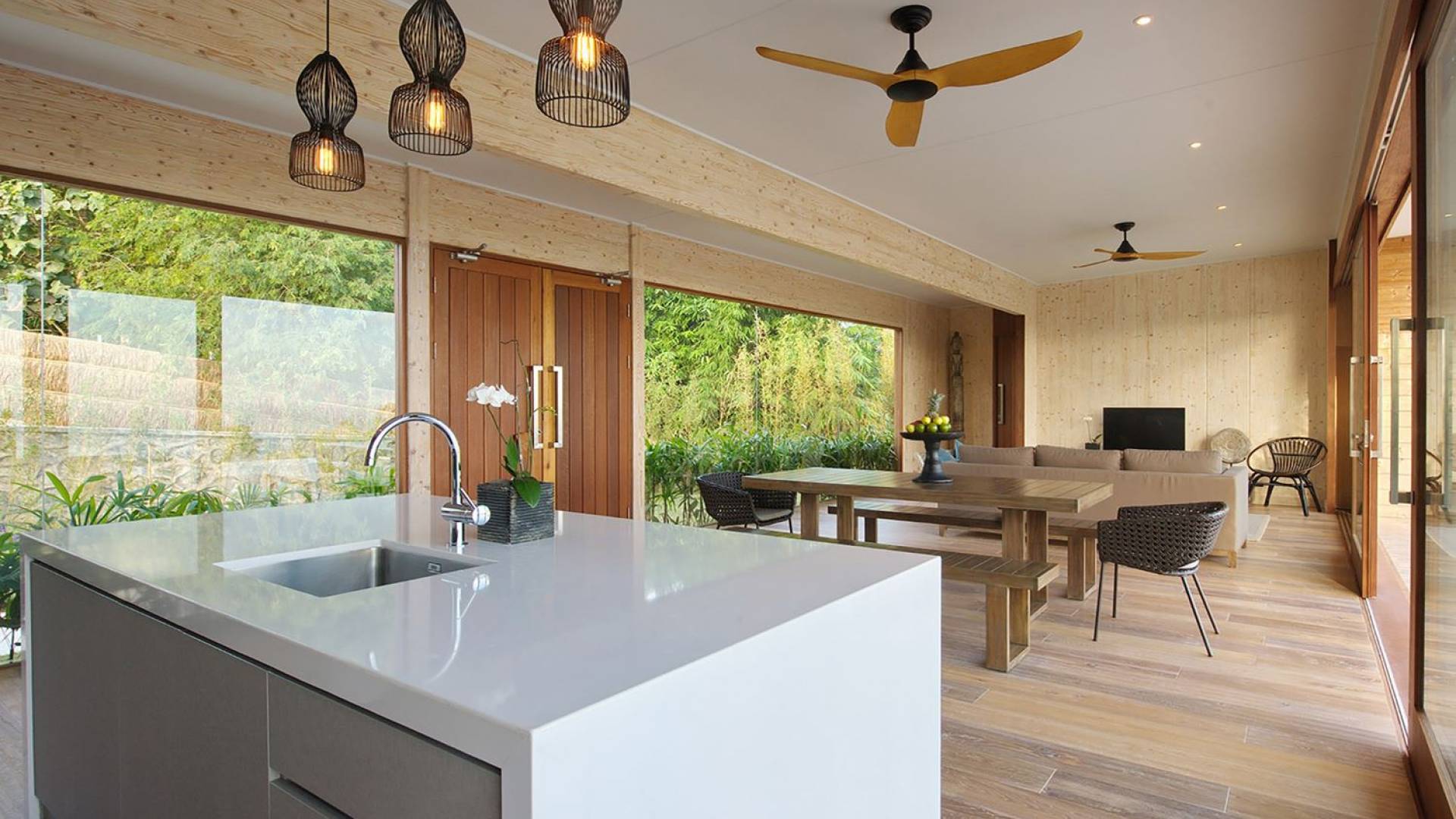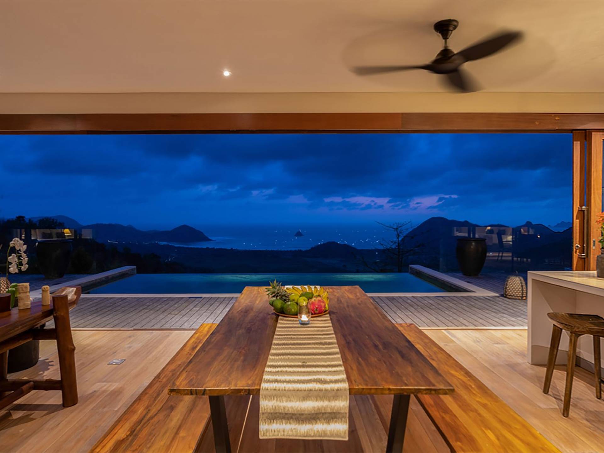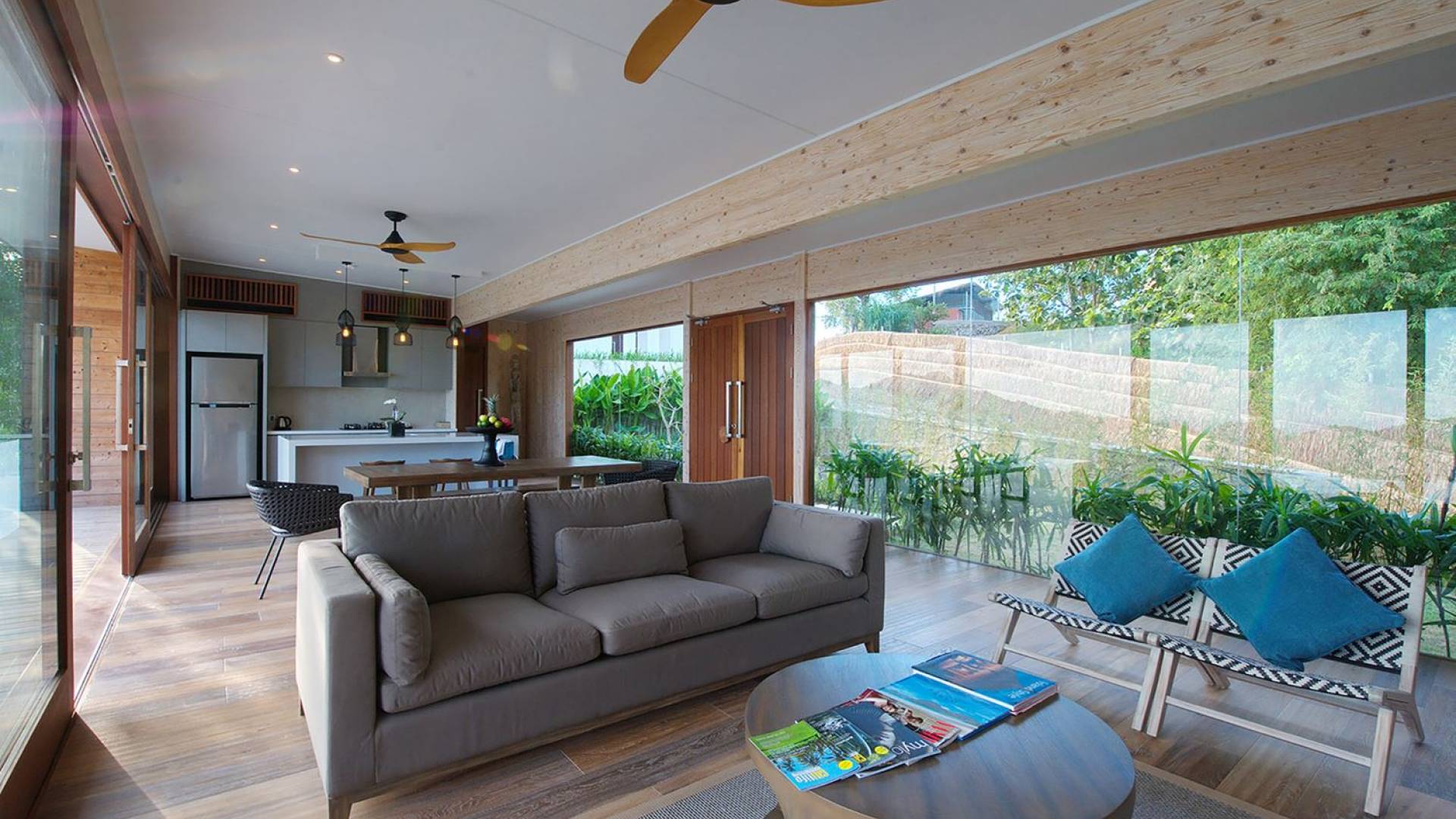 Χτισμένες ακριβώς πάνω στους λόφους, με πλούσιο στιλ και διακοσμημένους εσωτερικούς χώρους, με έπιπλα και εξαρτήματα τελευταίας τεχνολογίας, η αρχιτεκτονική των πολυτελών βιλών είναι πραγματικά εξαιρετική. Οι τεράστιες γυάλινες συρόμενες πόρτες από το δάπεδο μέχρι την οροφή δεν αφήνουν άλλη επιλογή από το να κοιτάξετε την εκπληκτική θέα ακόμα και όταν θέλετε να μείνετε μέσα. Μπλε, καφέ και γκρι χρώματα που συνδυάζονται υπέροχα ταιριάζουν απόλυτα με τη φιλοσοφία των βιλών. Ο μοντέρνος σχεδιασμός με παραδοσιακές λεπτομέρειες δημιουργεί μια χαλαρωτική ατμόσφαιρα για όλους.