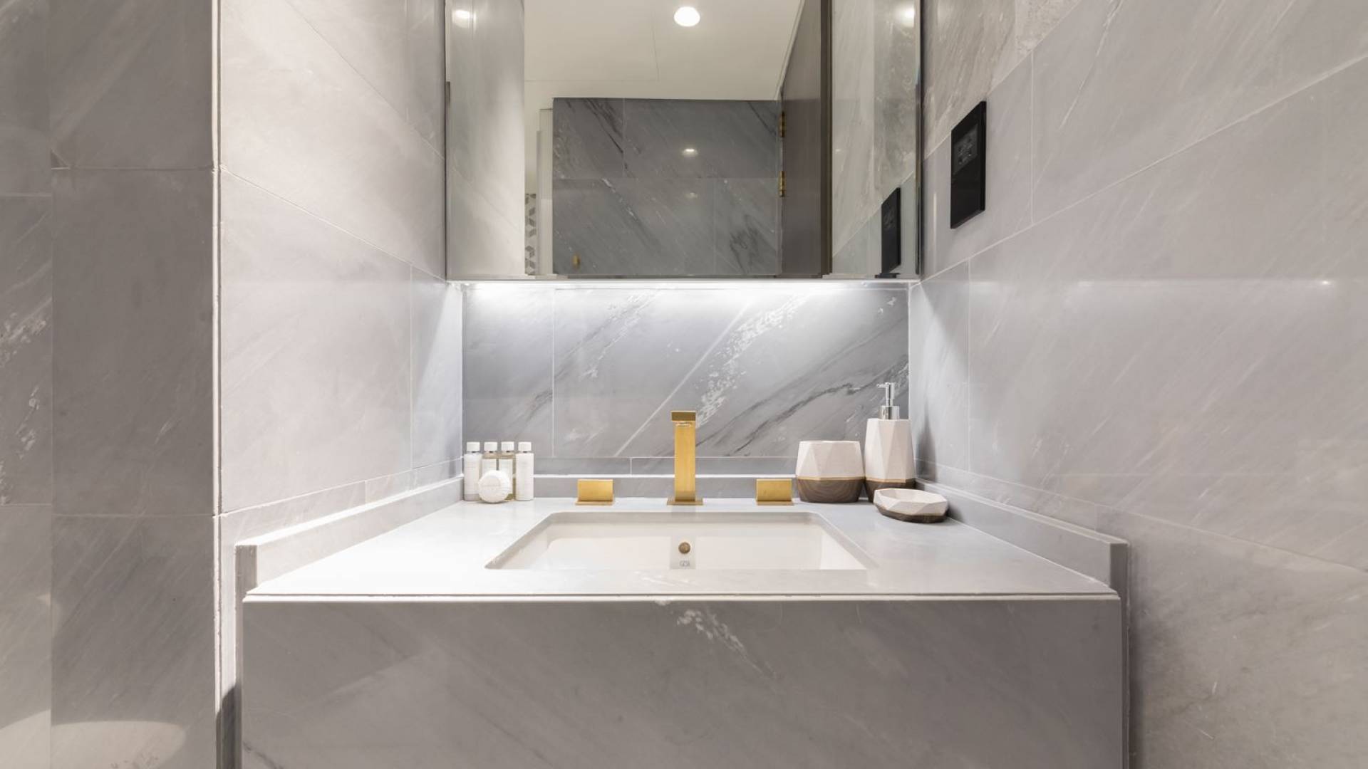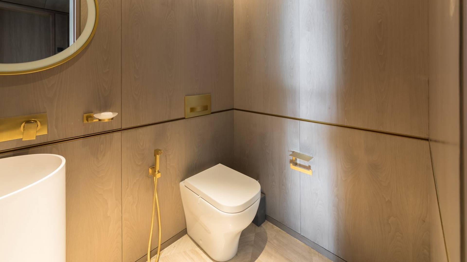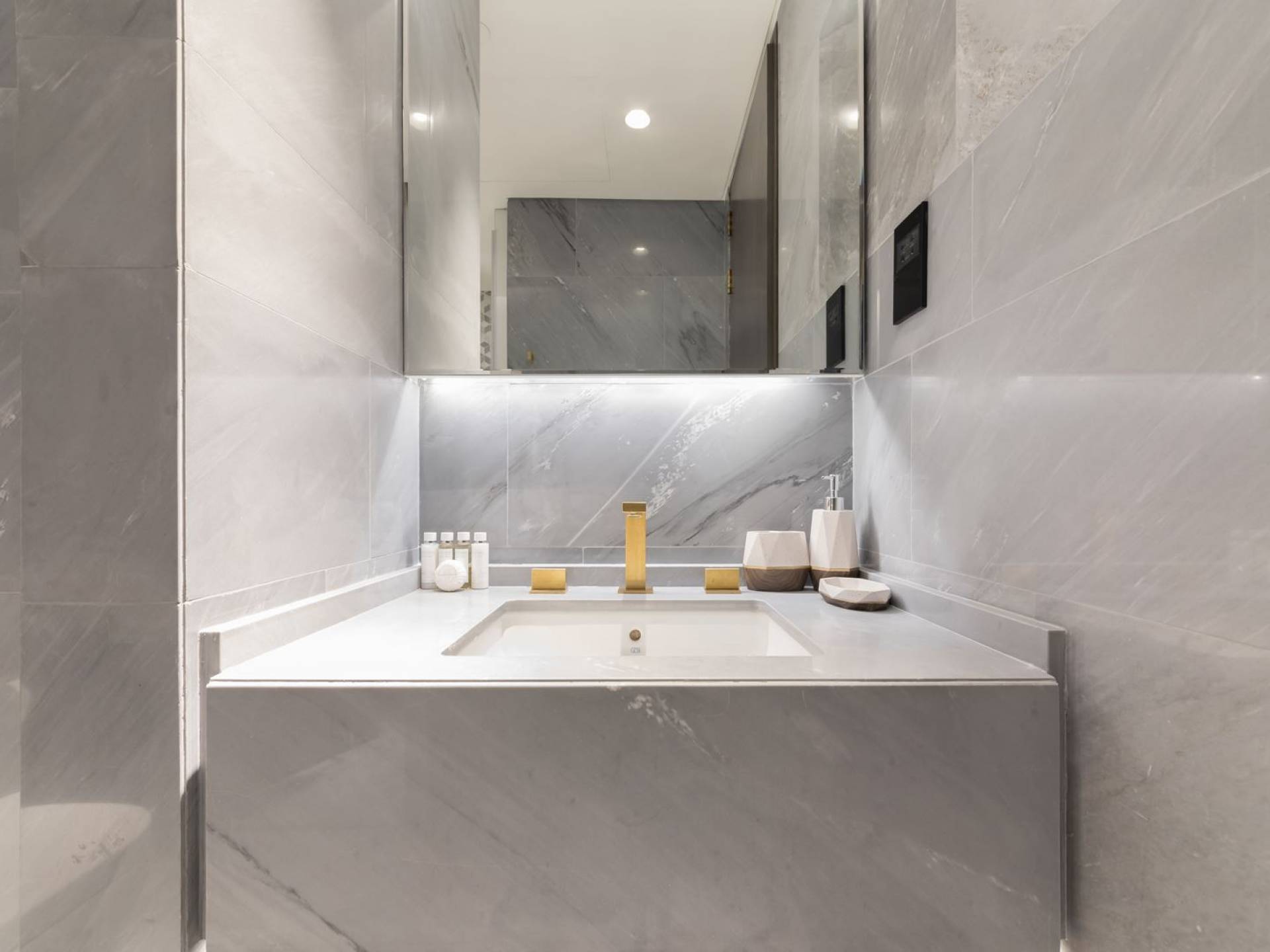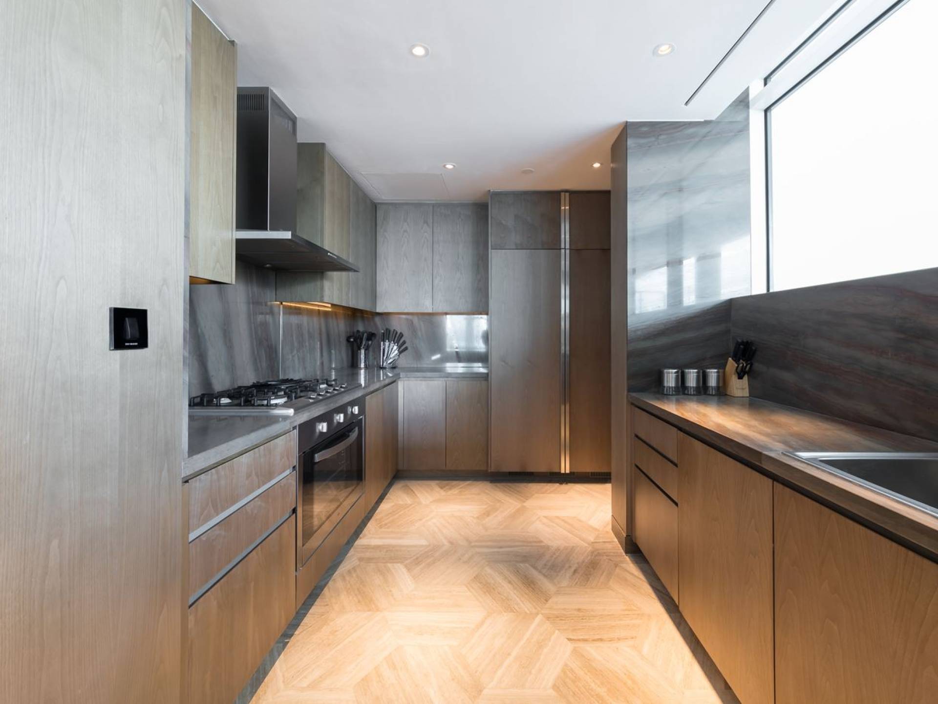 Ένας φωτεινός, αλλά χαλαρωτικός χώρος σαλονιού με παράθυρα από το δάπεδο μέχρι την οροφή που αποκαλύπτουν το εμβληματικό σκηνικό του ορίζοντα του Ντουμπάι και τη θέα στη θάλασσα, επιπλωμένο με ένα μεγάλο τραπέζι φαγητού για οκτώ άτομα, έναν μεγάλο γωνιακό καναπέ, πολυθρόνες και μεγάλη επίπεδη οθόνη ΤΗΛΕΟΡΑΣΗ. Διακριτικά κρυμμένη πίσω από το σκούρο ξύλο και την επένδυση με χρυσό τόνο στέκεται η κουζίνα που περιέχει εντυπωσιακούς μαρμάρινους πάγκους και πιτσιλιές με ντουλάπια από σκούρο ξύλο. Είναι πλήρως εξοπλισμένο με όλες τις απαραίτητες συσκευές, όπως τοστιέρα, βραστήρα και καφετιέρα για την εξυπηρέτησή σας.