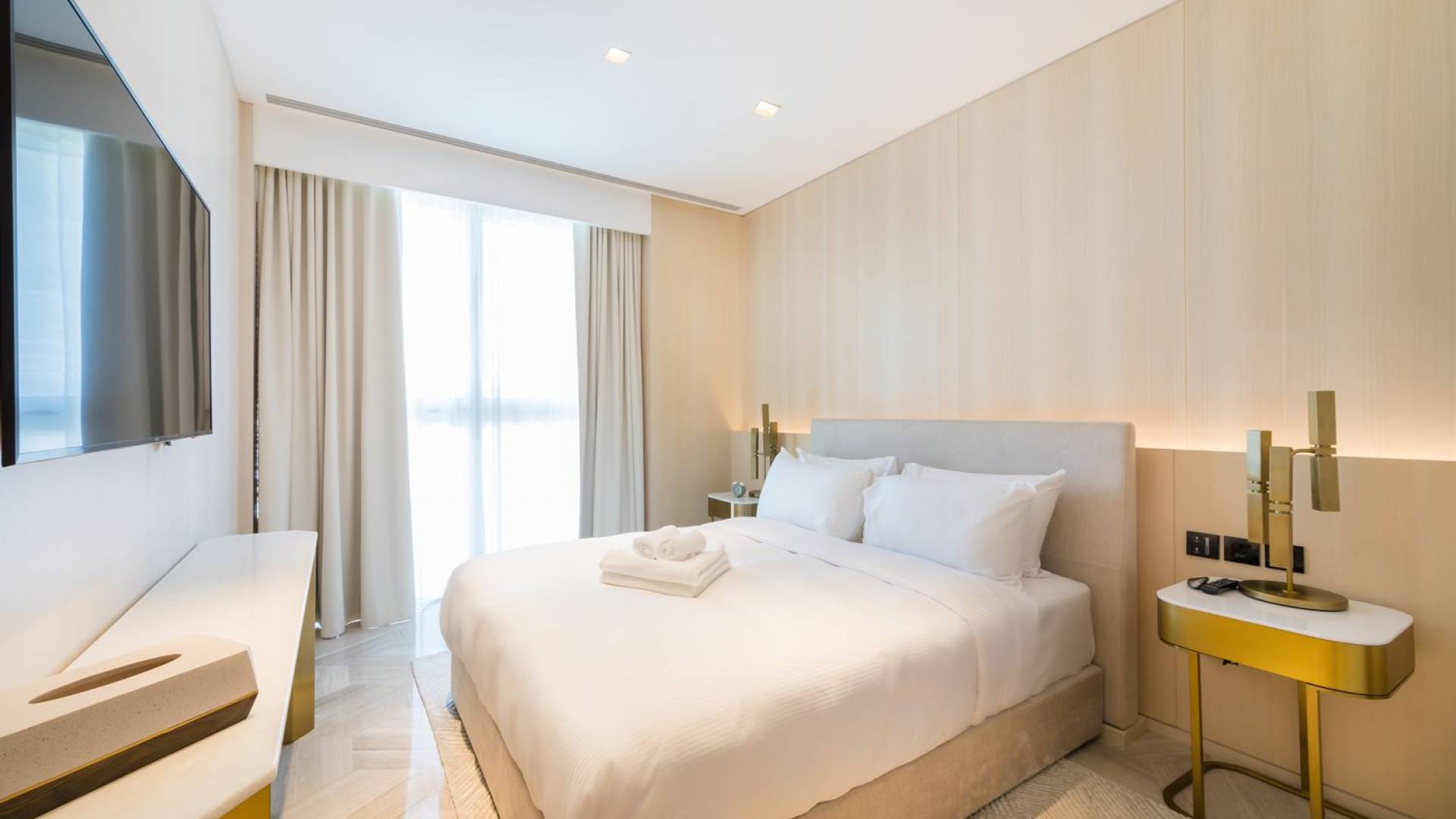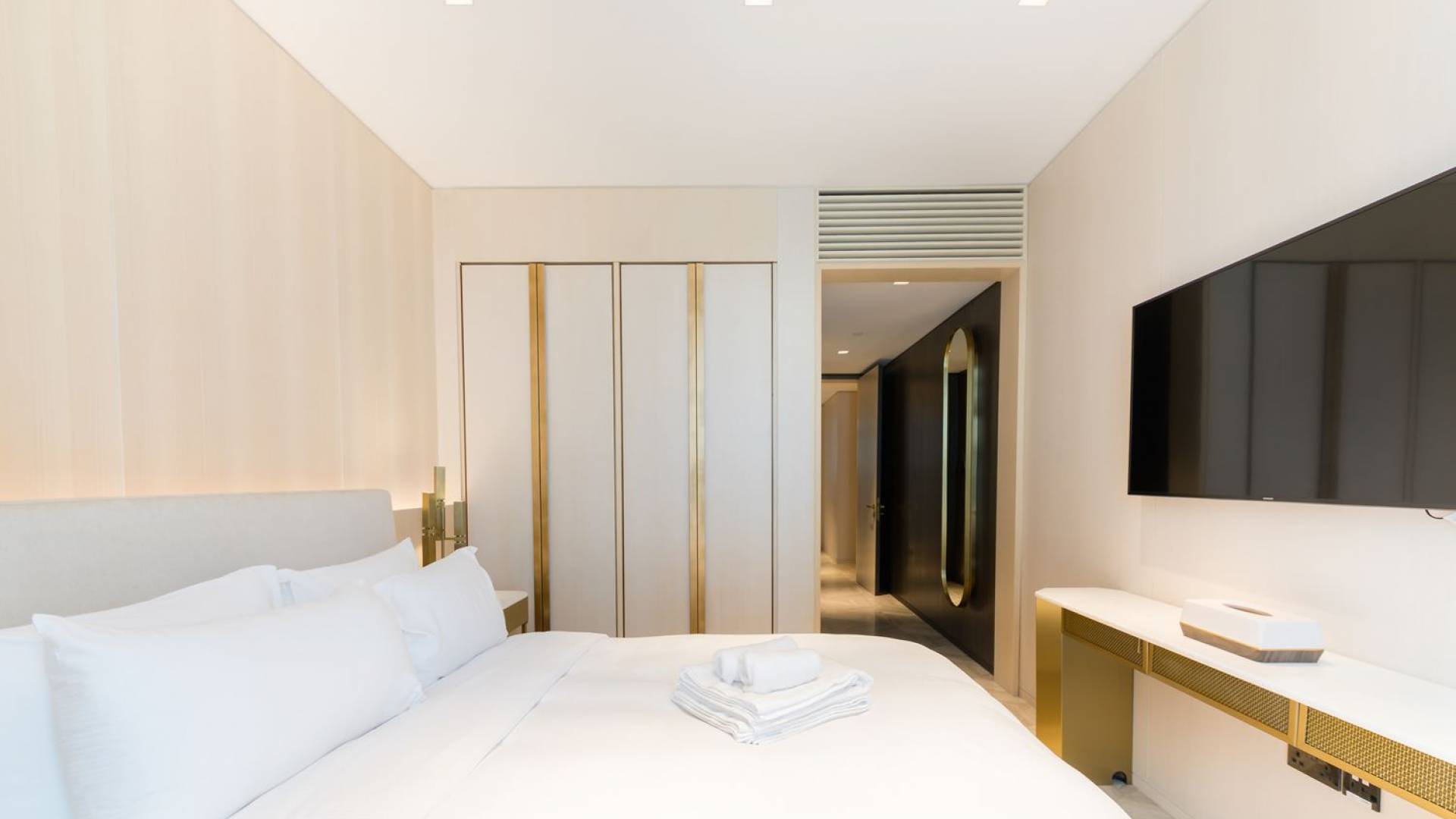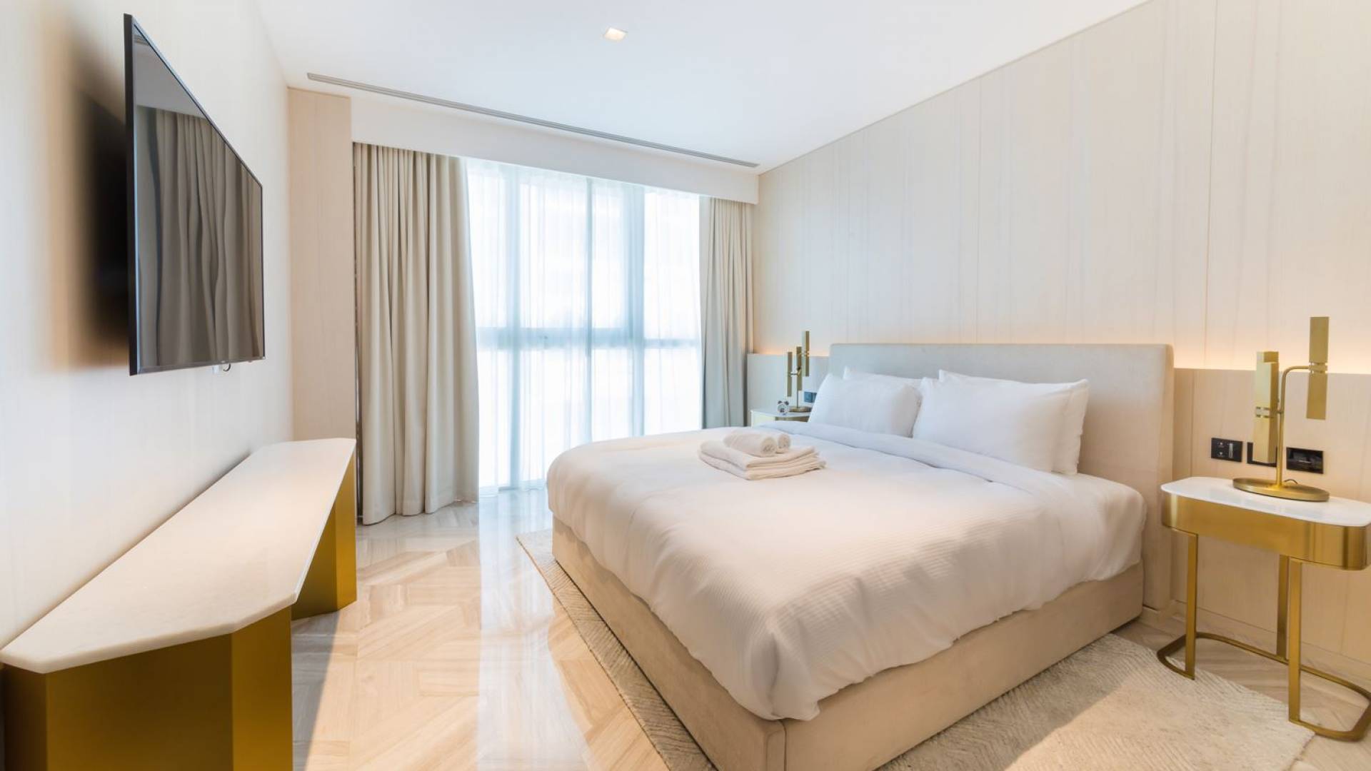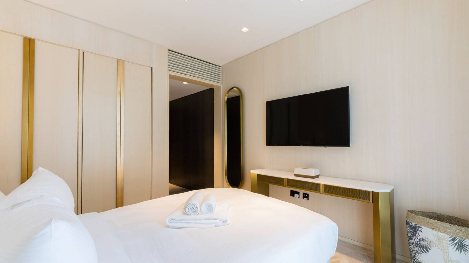 Το κύριο υπνοδωμάτιο προσφέρει ένα premium διπλό κρεβάτι με κλινοσκεπάσματα υψηλής ποιότητας, κομοδίνα, τηλεόραση και καθιστικό. Αυτό το δωμάτιο περιλαμβάνει επίσης ένα μικρό γραφείο/χώρο νιπτήρα, δωμάτιο-ντουλάπα και πρόσβαση στο εκπληκτικό χώρο ηλιοθεραπείας του διαμερίσματος. Διατίθεται ιδιωτικό μπάνιο για τους επισκέπτες αυτού του υπνοδωματίου για την άνεσή τους. Κάθε ένα από τα τέσσερα υπνοδωμάτια του διαμερίσματος έχει παράθυρα από το δάπεδο μέχρι την οροφή, εντοιχισμένες ντουλάπες, premium διπλά κρεβάτια, τηλεοράσεις επίπεδης οθόνης και ιδιωτικά μπάνια με μια σειρά από μπανιέρες και ντους ψιλής βροχής.