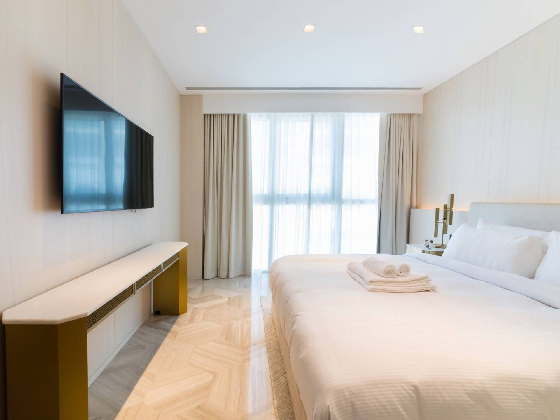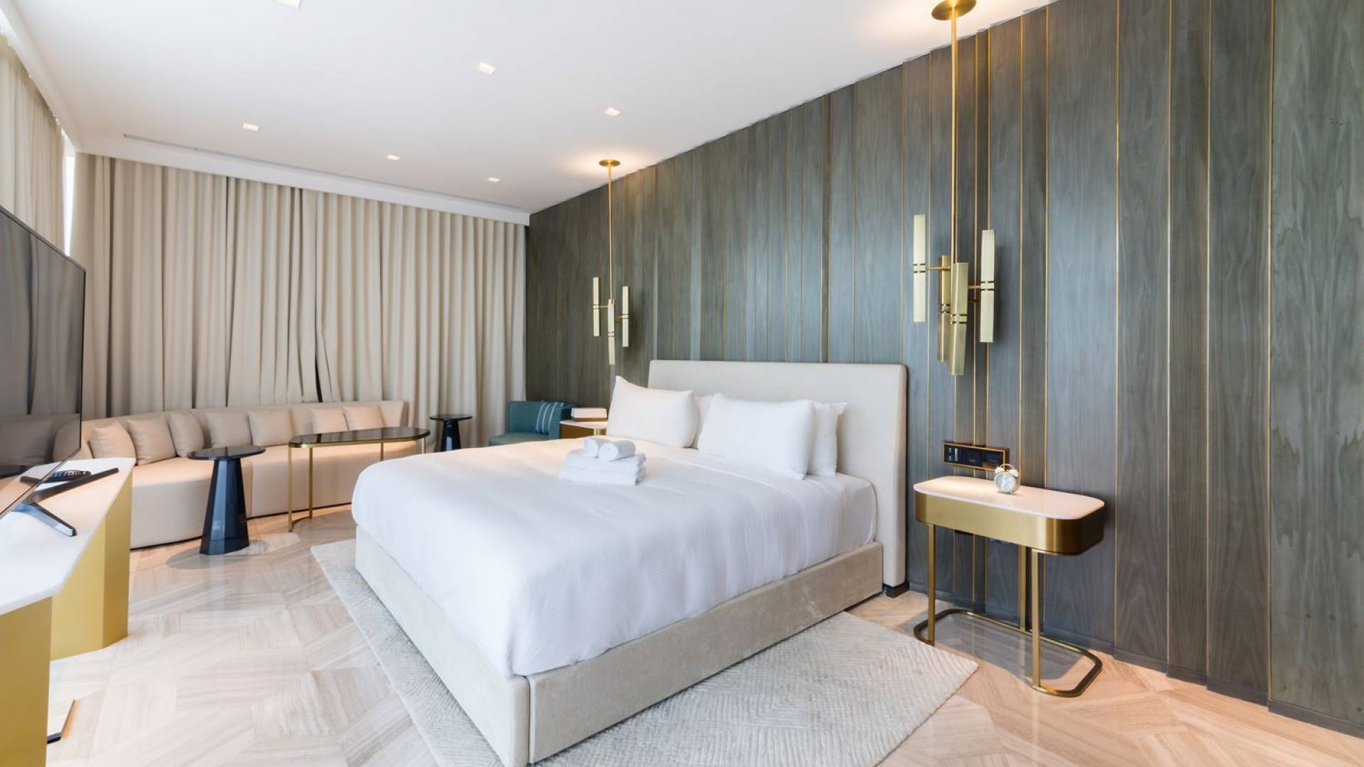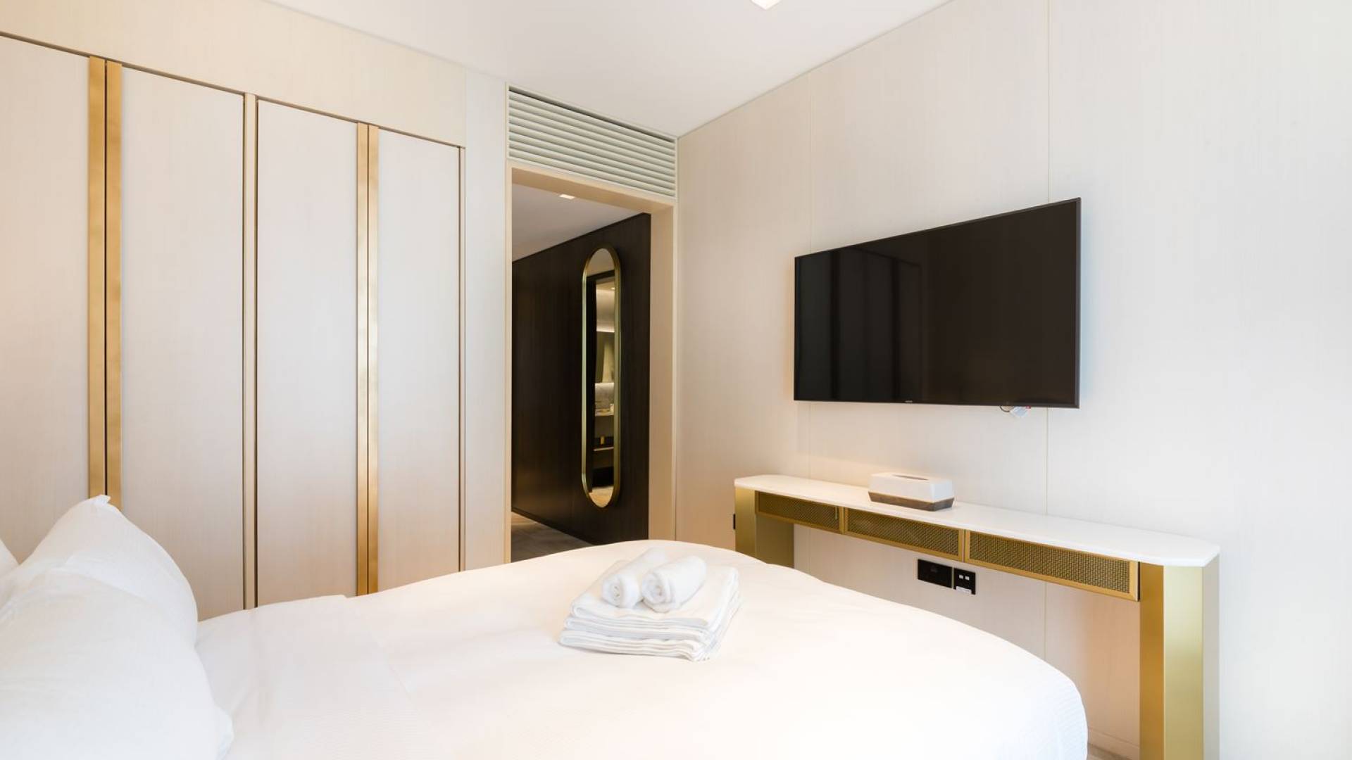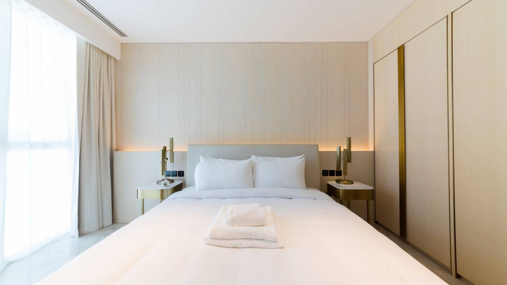 Το κύριο υπνοδωμάτιο προσφέρει ένα premium διπλό κρεβάτι με κλινοσκεπάσματα υψηλής ποιότητας, κομοδίνα, τηλεόραση και καθιστικό. Αυτό το δωμάτιο περιλαμβάνει επίσης ένα μικρό γραφείο/χώρο νιπτήρα, δωμάτιο-ντουλάπα και πρόσβαση στο εκπληκτικό χώρο ηλιοθεραπείας του διαμερίσματος. Διατίθεται ιδιωτικό μπάνιο για τους επισκέπτες αυτού του υπνοδωματίου για την άνεσή τους. Κάθε ένα από τα τέσσερα υπνοδωμάτια του διαμερίσματος έχει παράθυρα από το δάπεδο μέχρι την οροφή, εντοιχισμένες ντουλάπες, premium διπλά κρεβάτια, τηλεοράσεις επίπεδης οθόνης και ιδιωτικά μπάνια με μια σειρά από μπανιέρες και ντους ψιλής βροχής.