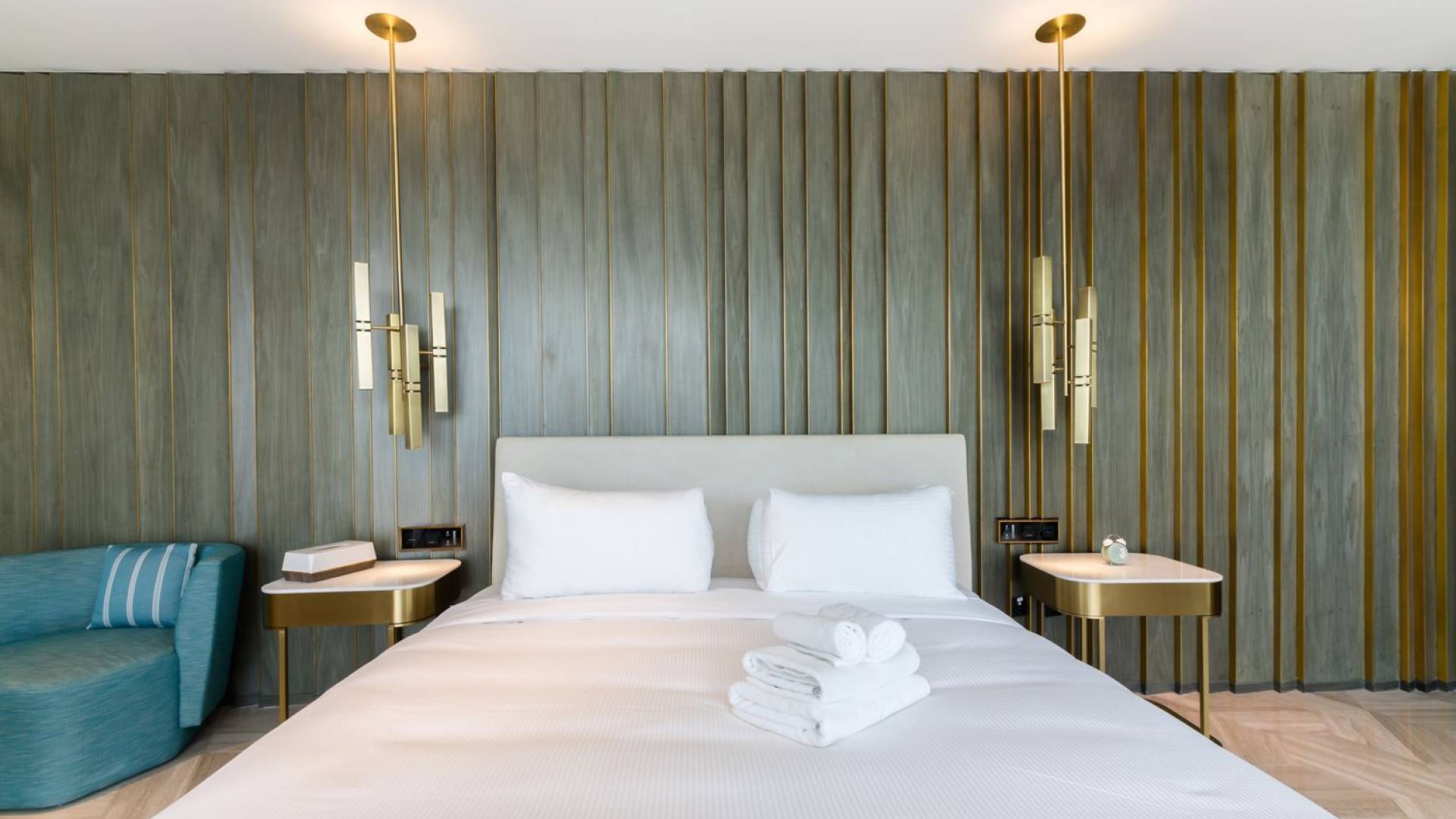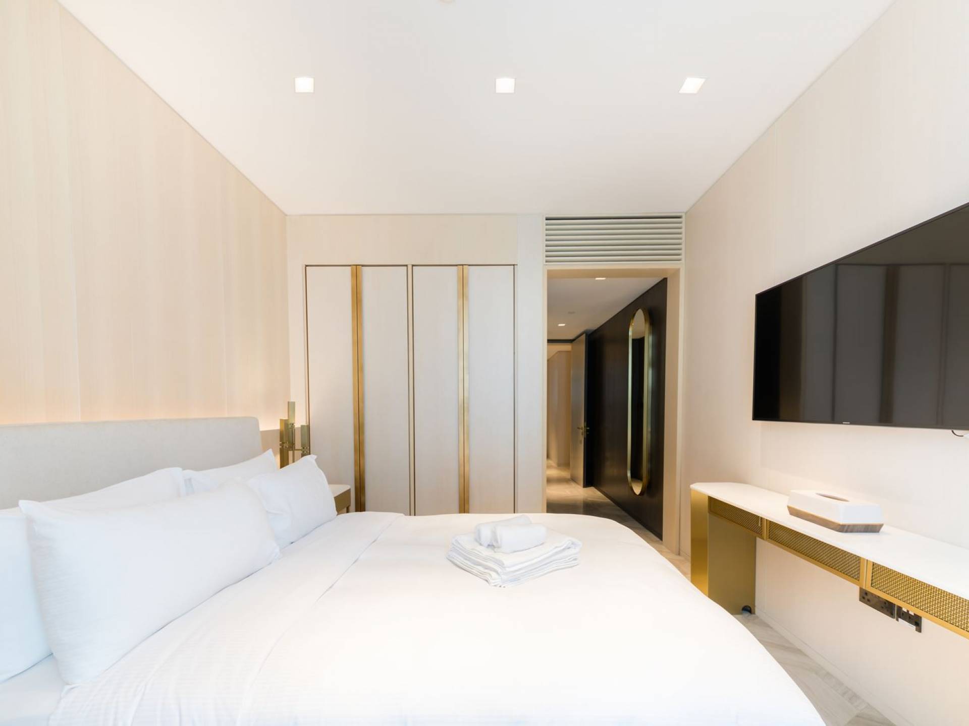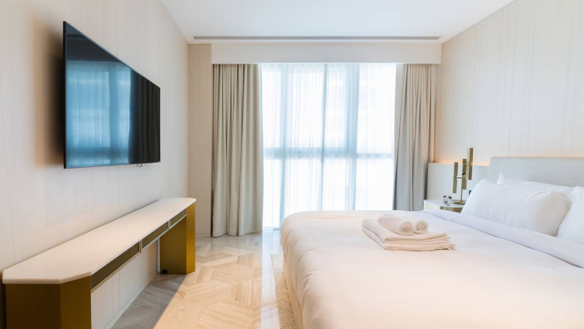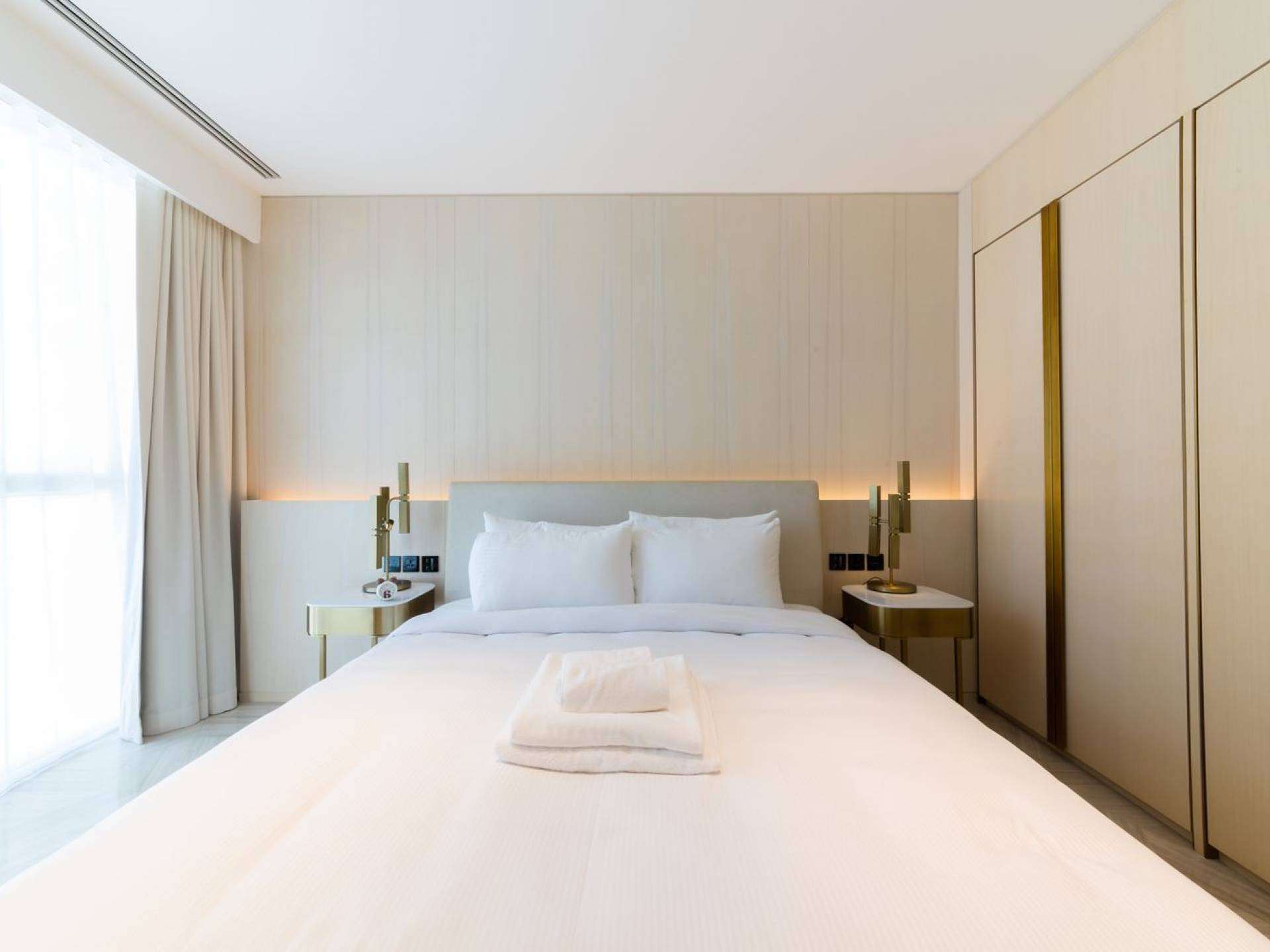Το κύριο υπνοδωμάτιο προσφέρει ένα premium διπλό κρεβάτι με κλινοσκεπάσματα υψηλής ποιότητας, κομοδίνα, τηλεόραση και καθιστικό. Αυτό το δωμάτιο περιλαμβάνει επίσης ένα μικρό γραφείο/χώρο νιπτήρα, δωμάτιο-ντουλάπα και πρόσβαση στο εκπληκτικό χώρο ηλιοθεραπείας του διαμερίσματος. Διατίθεται ιδιωτικό μπάνιο για τους επισκέπτες αυτού του υπνοδωματίου για την άνεσή τους. Κάθε ένα από τα τέσσερα υπνοδωμάτια του διαμερίσματος έχει παράθυρα από το δάπεδο μέχρι την οροφή, εντοιχισμένες ντουλάπες, premium διπλά κρεβάτια, τηλεοράσεις επίπεδης οθόνης και ιδιωτικά μπάνια με μια σειρά από μπανιέρες και ντους ψιλής βροχής.