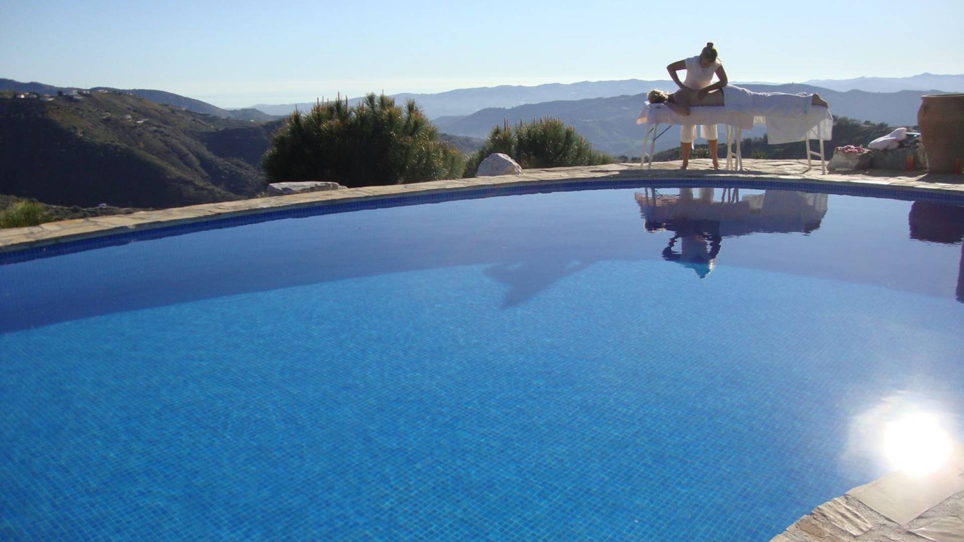 Ο χώρος της πισίνας είναι απλά σαγηνευτικός: διασκεδάστε στη διπλανή καλοκαιρινή κουζίνα, σκιαστείτε κάτω από τους αρχαίους ευκάλυπτους ή τους φοίνικες στον καταπράσινο κήπο δίπλα στην πισίνα και βρείτε την παρηγοριά σας στον υδάτινο κήπο στη σκεπαστή καμπάνα του σπα. Το να απολαύσετε τον ήλιο της Ανδαλουσίας στην άκρη της βεράντας της πισίνας προσφέρει μια αίσθηση "κορυφής του κόσμου" τίποτα λιγότερο από θεαματική. Θαυμάστε καθώς η γη φαινομενικά πέφτει μπροστά σας στην κοιλάδα και ξεχύνεται για να συναντήσει τη Μεσόγειο Θάλασσα πέρα.