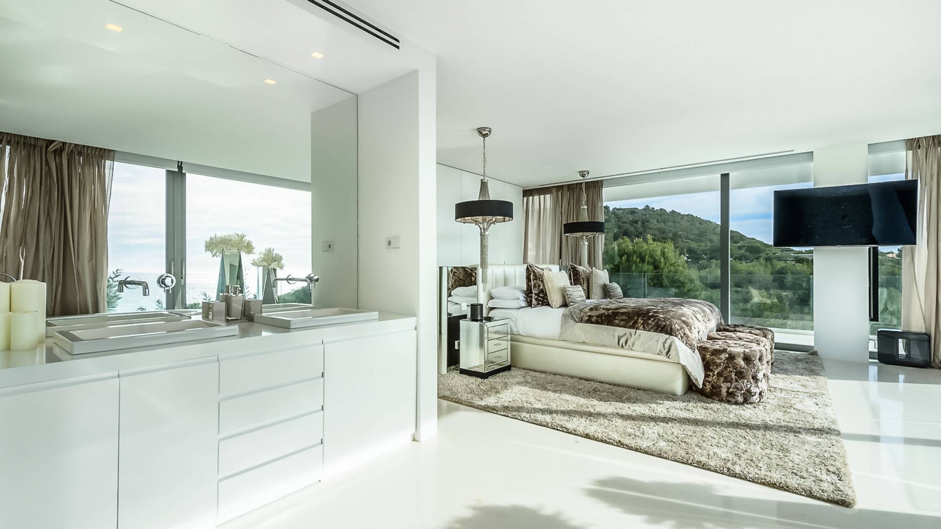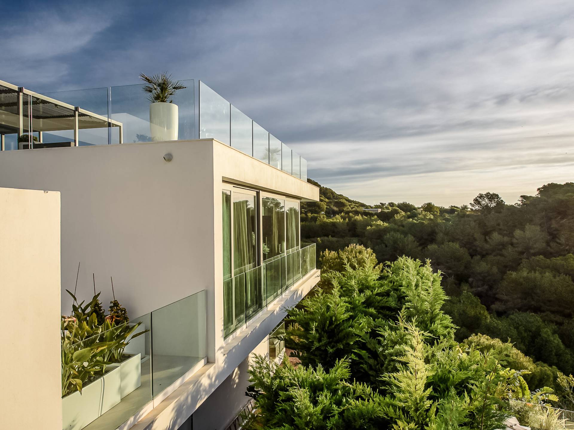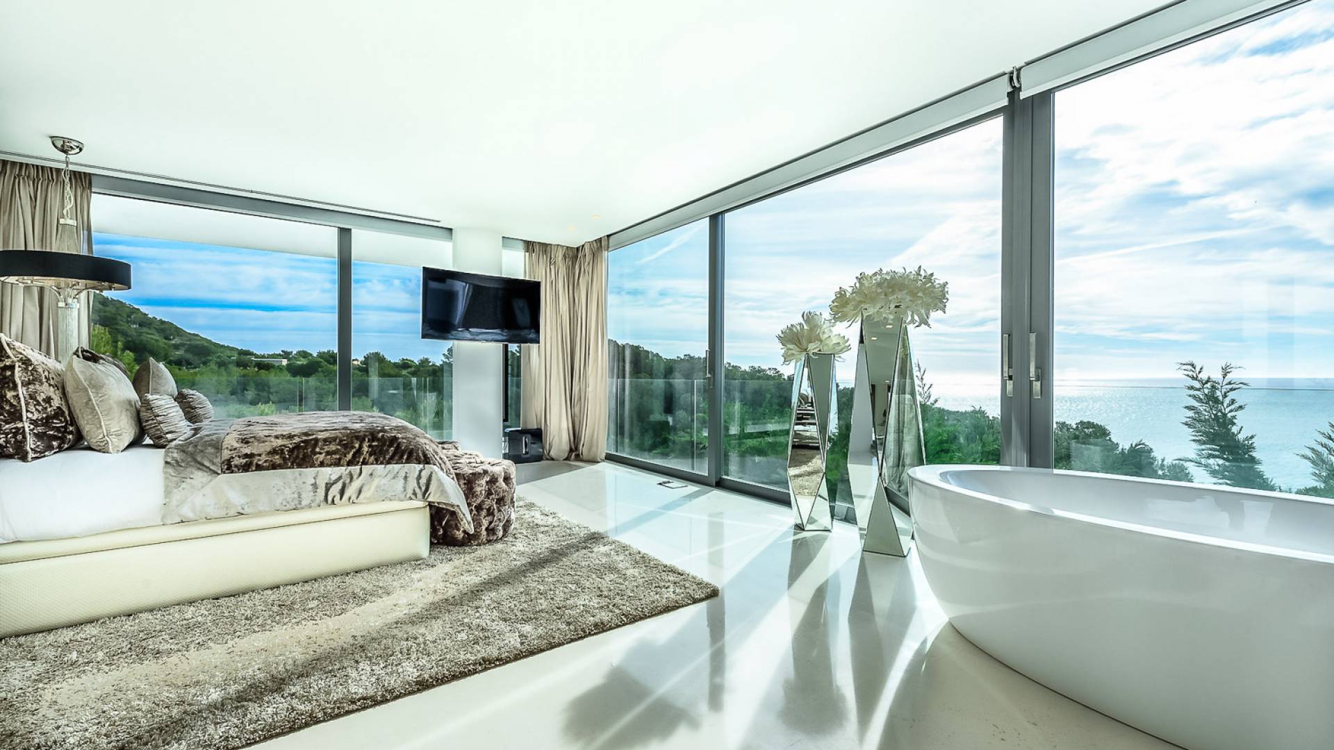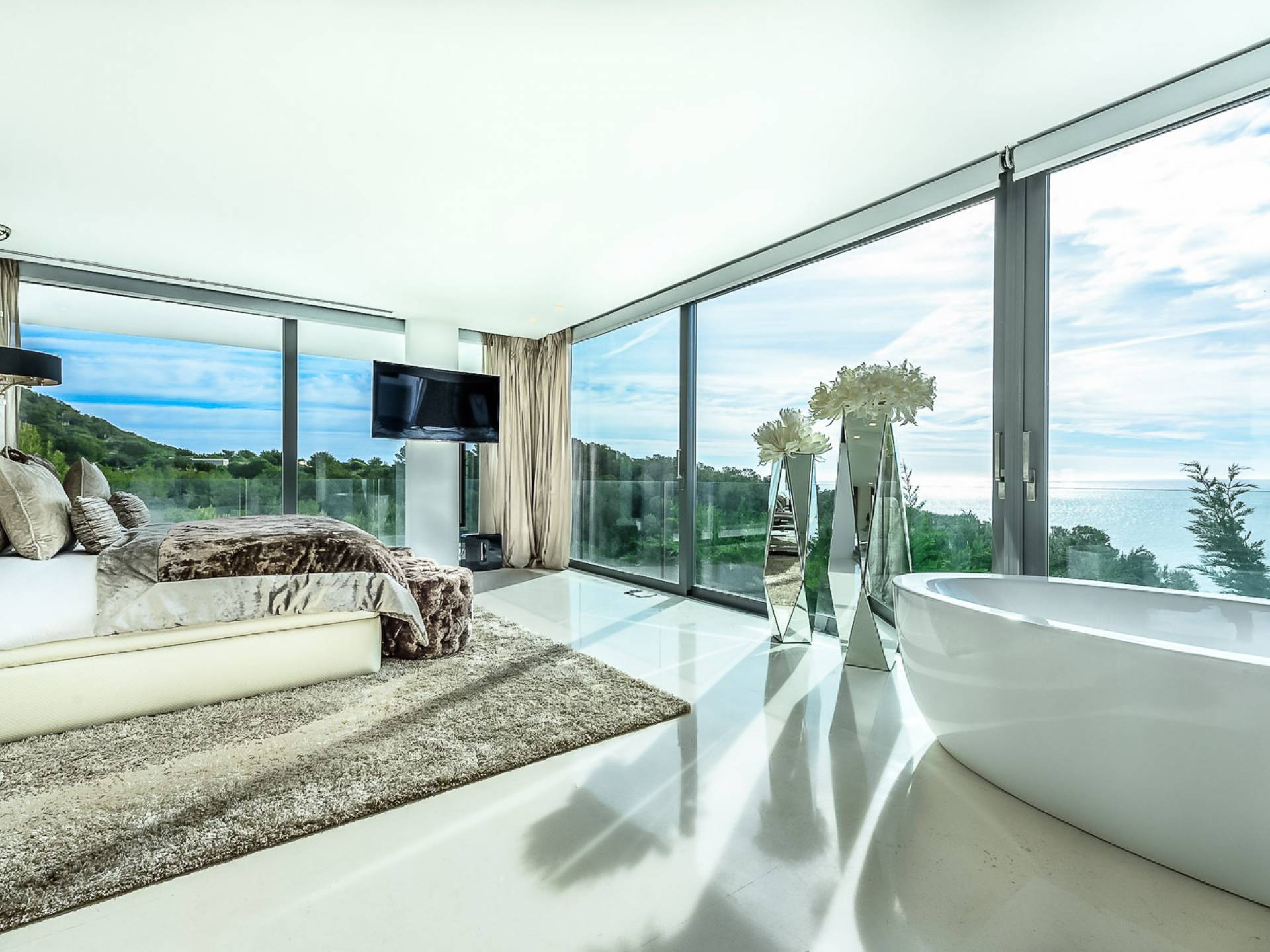 Κρυμμένη ανάμεσα σε πεύκα και όμορφα διατηρημένους κήπους, αυτή η βίλα 850 τετραγωνικών μέτρων ανοίγει σε τεράστιες εξωτερικές βεράντες και κήπους, διαθέτει ιδιωτική πισίνα υπερχείλισης και τζακούζι με φανταστική θέα στη Μεσόγειο Θάλασσα και τη γύρω ύπαιθρο. Η βεράντα του τελευταίου ορόφου προσφέρει άνετα υπαίθρια καθίσματα καναπέ και τραπέζι φαγητού – ιδανικό για κοκτέιλ στο ηλιοβασίλεμα ή δείπνο με υπέροχη θέα στους κήπους, στο πευκοδάσος και στη θάλασσα.