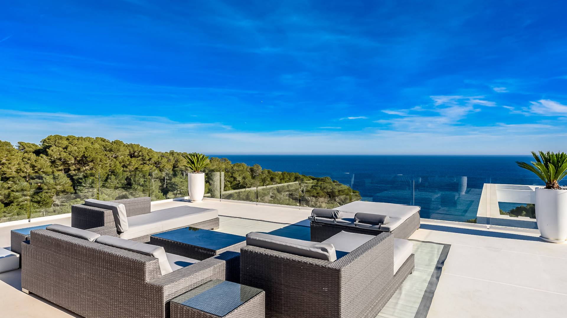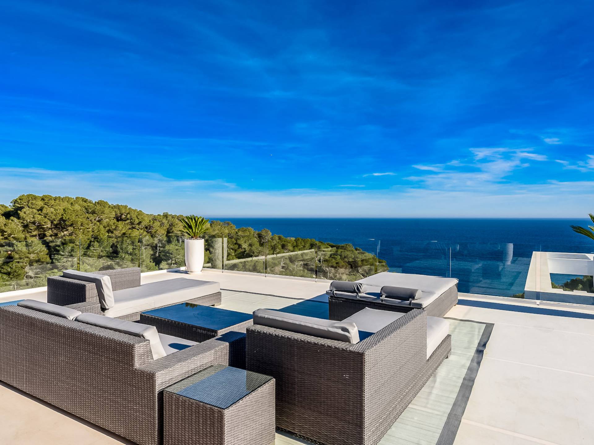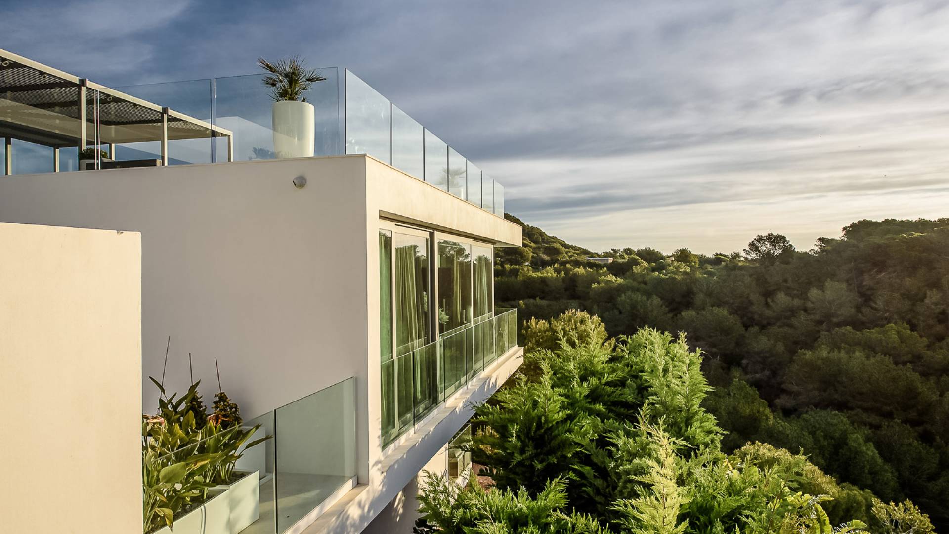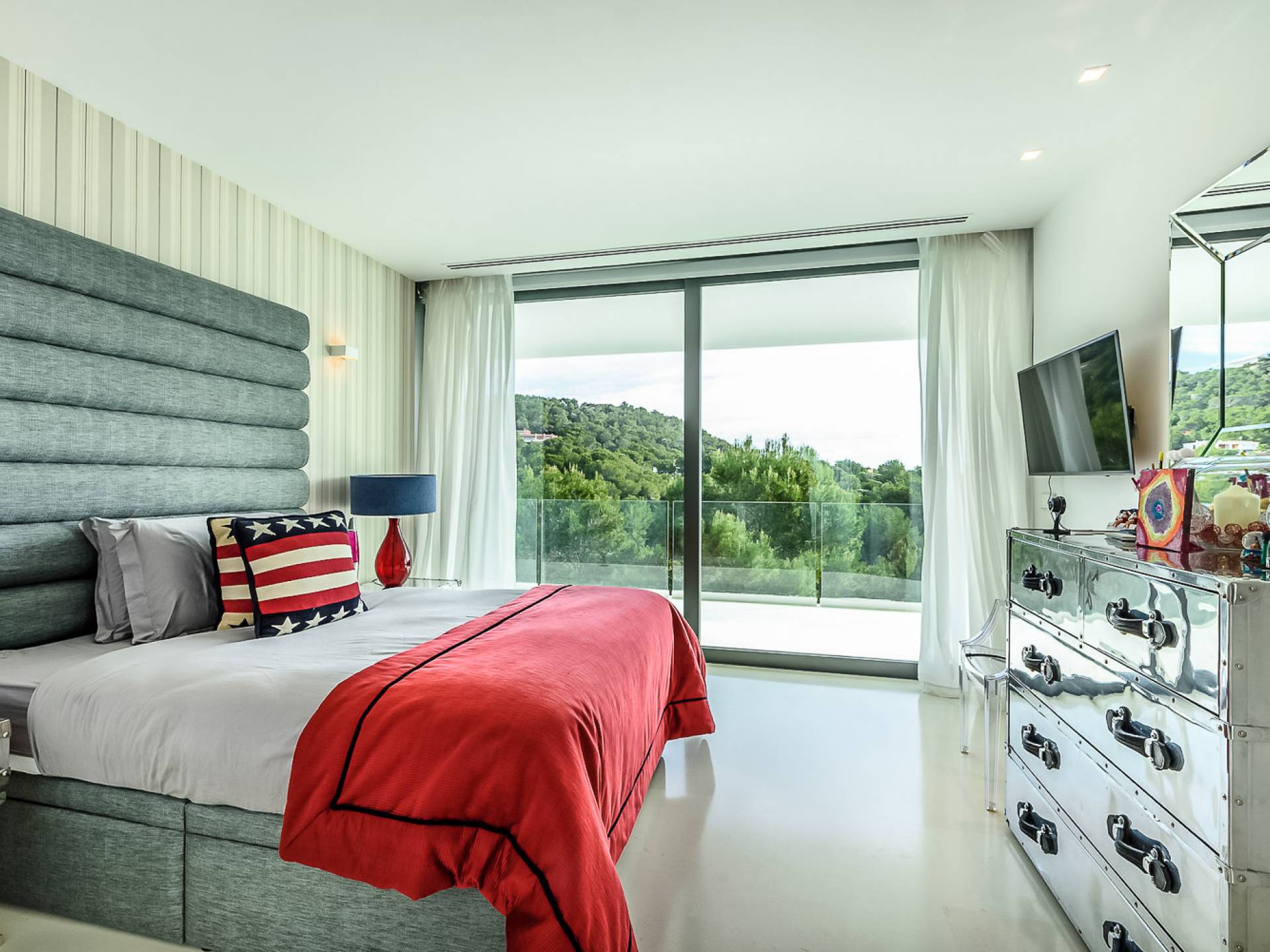 Κρυμμένη ανάμεσα σε πεύκα και όμορφα διατηρημένους κήπους, αυτή η βίλα 850 τετραγωνικών μέτρων ανοίγει σε τεράστιες εξωτερικές βεράντες και κήπους, διαθέτει ιδιωτική πισίνα υπερχείλισης και τζακούζι με φανταστική θέα στη Μεσόγειο Θάλασσα και τη γύρω ύπαιθρο. Η βεράντα του τελευταίου ορόφου προσφέρει άνετα υπαίθρια καθίσματα καναπέ και τραπέζι φαγητού – ιδανικό για κοκτέιλ στο ηλιοβασίλεμα ή δείπνο με υπέροχη θέα στους κήπους, στο πευκοδάσος και στη θάλασσα.