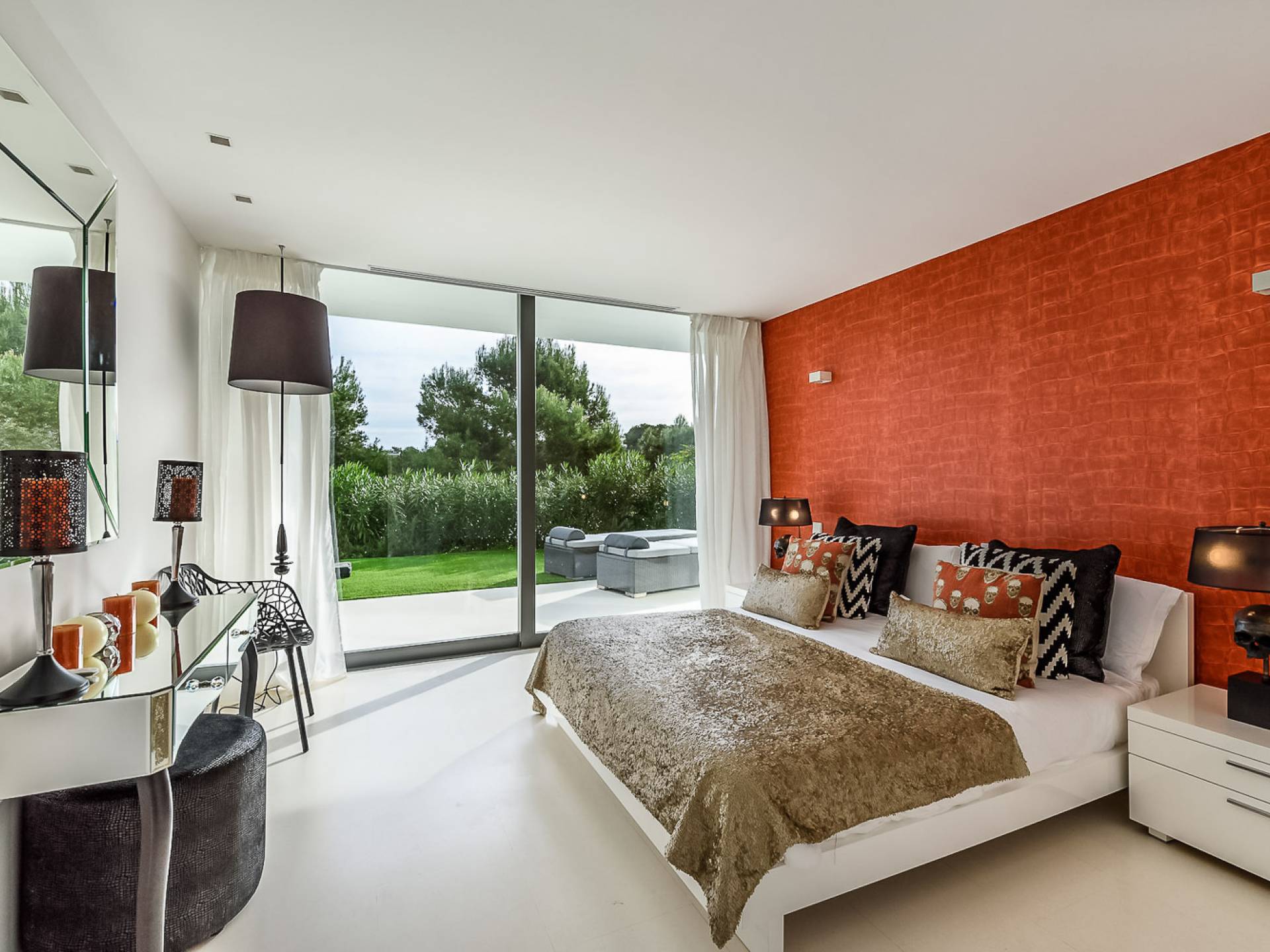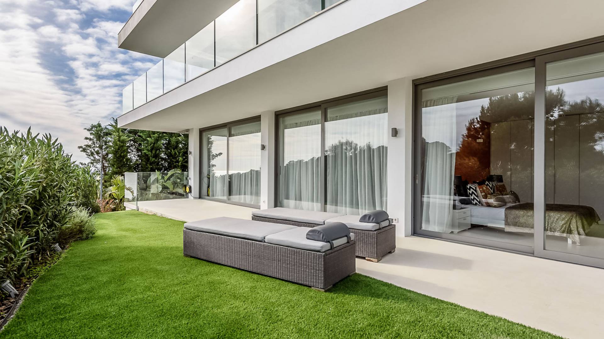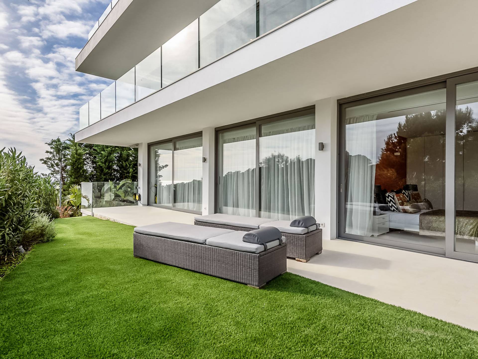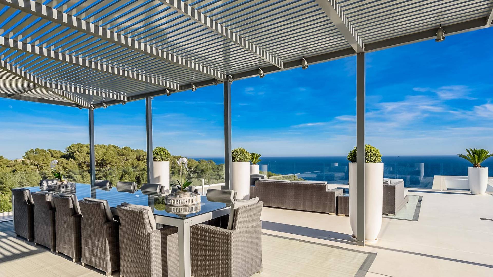 Κρυμμένη ανάμεσα σε πεύκα και όμορφα διατηρημένους κήπους, αυτή η βίλα 850 τετραγωνικών μέτρων ανοίγει σε τεράστιες εξωτερικές βεράντες και κήπους, διαθέτει ιδιωτική πισίνα υπερχείλισης και τζακούζι με φανταστική θέα στη Μεσόγειο Θάλασσα και τη γύρω ύπαιθρο. Η βεράντα του τελευταίου ορόφου προσφέρει άνετα υπαίθρια καθίσματα καναπέ και τραπέζι φαγητού – ιδανικό για κοκτέιλ στο ηλιοβασίλεμα ή δείπνο με υπέροχη θέα στους κήπους, στο πευκοδάσος και στη θάλασσα.