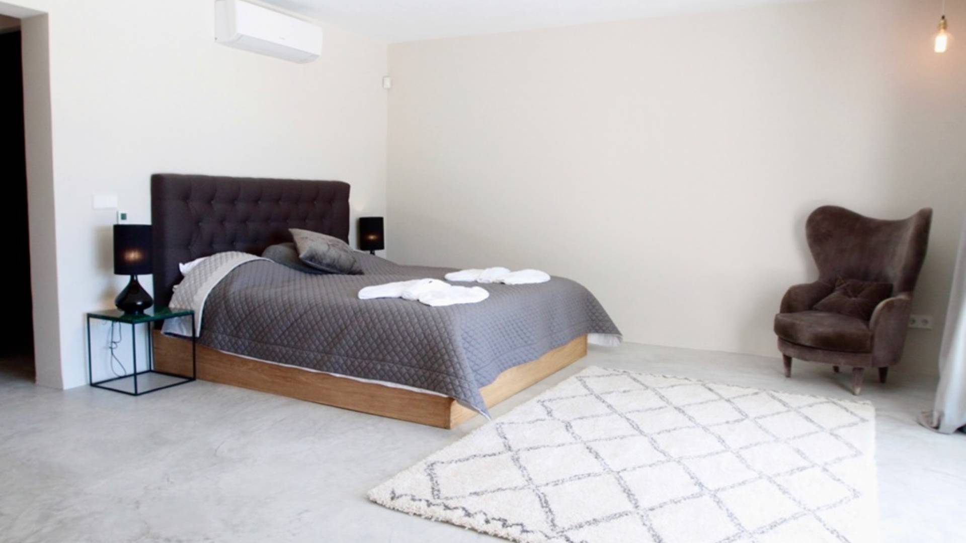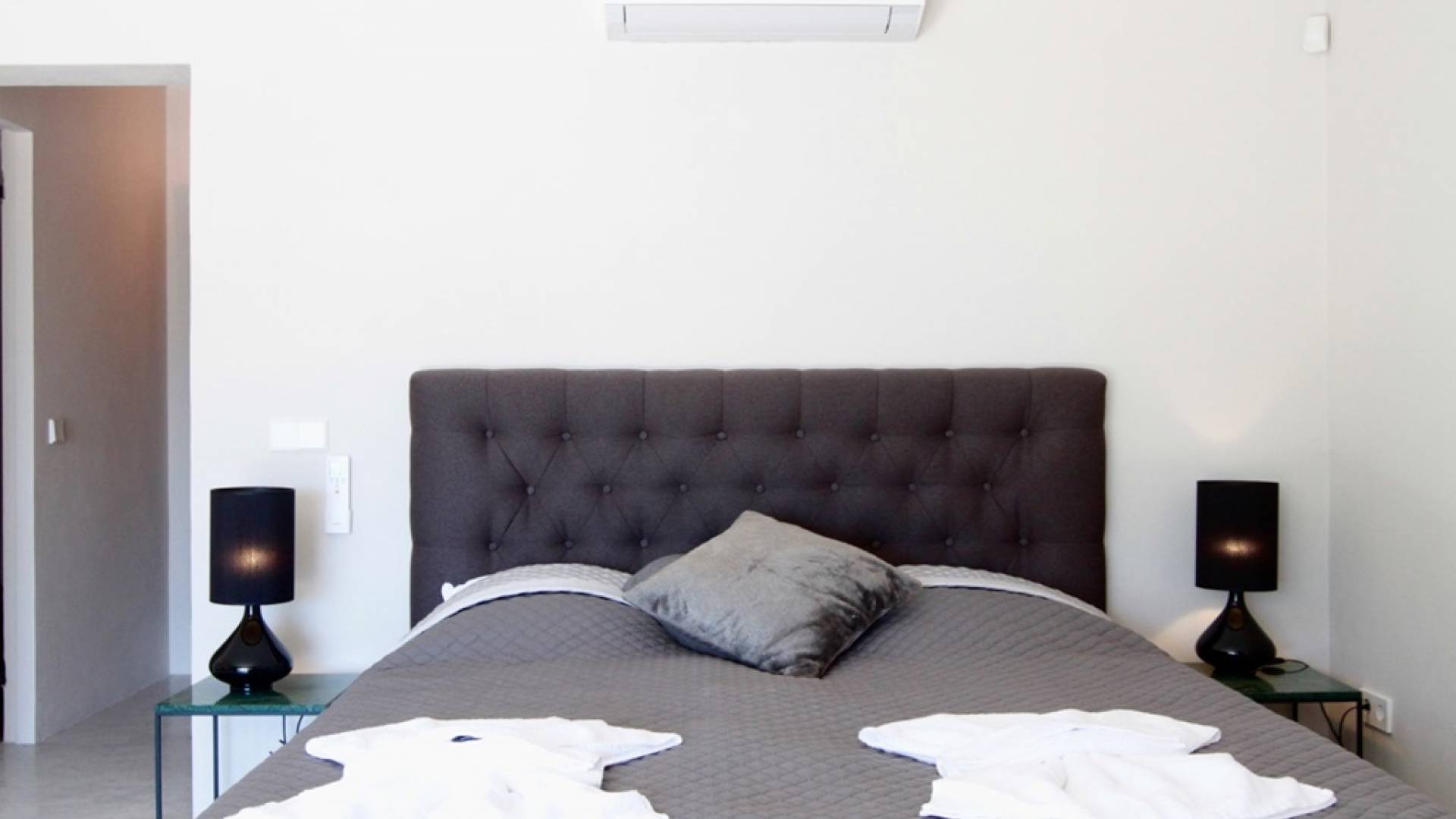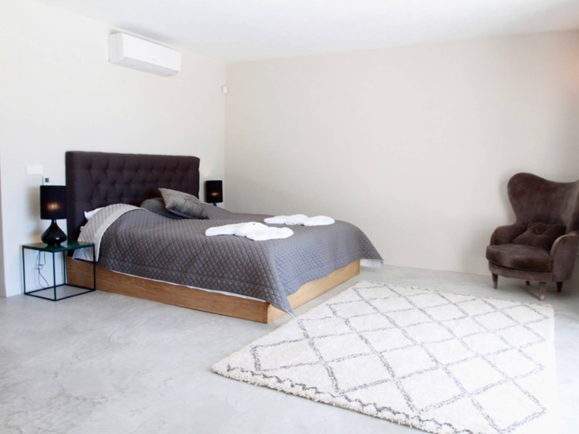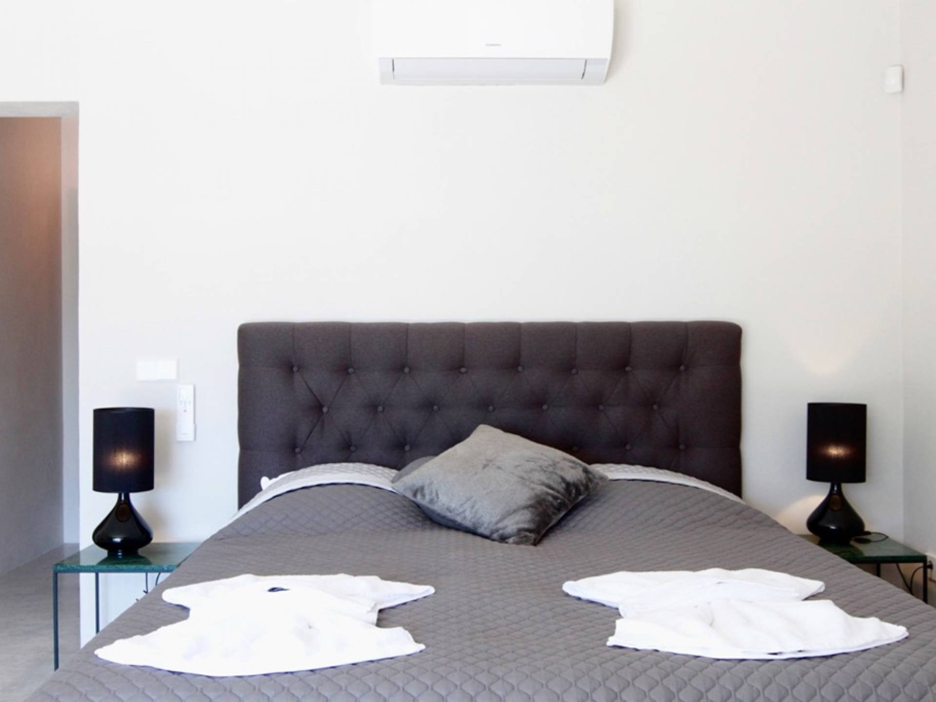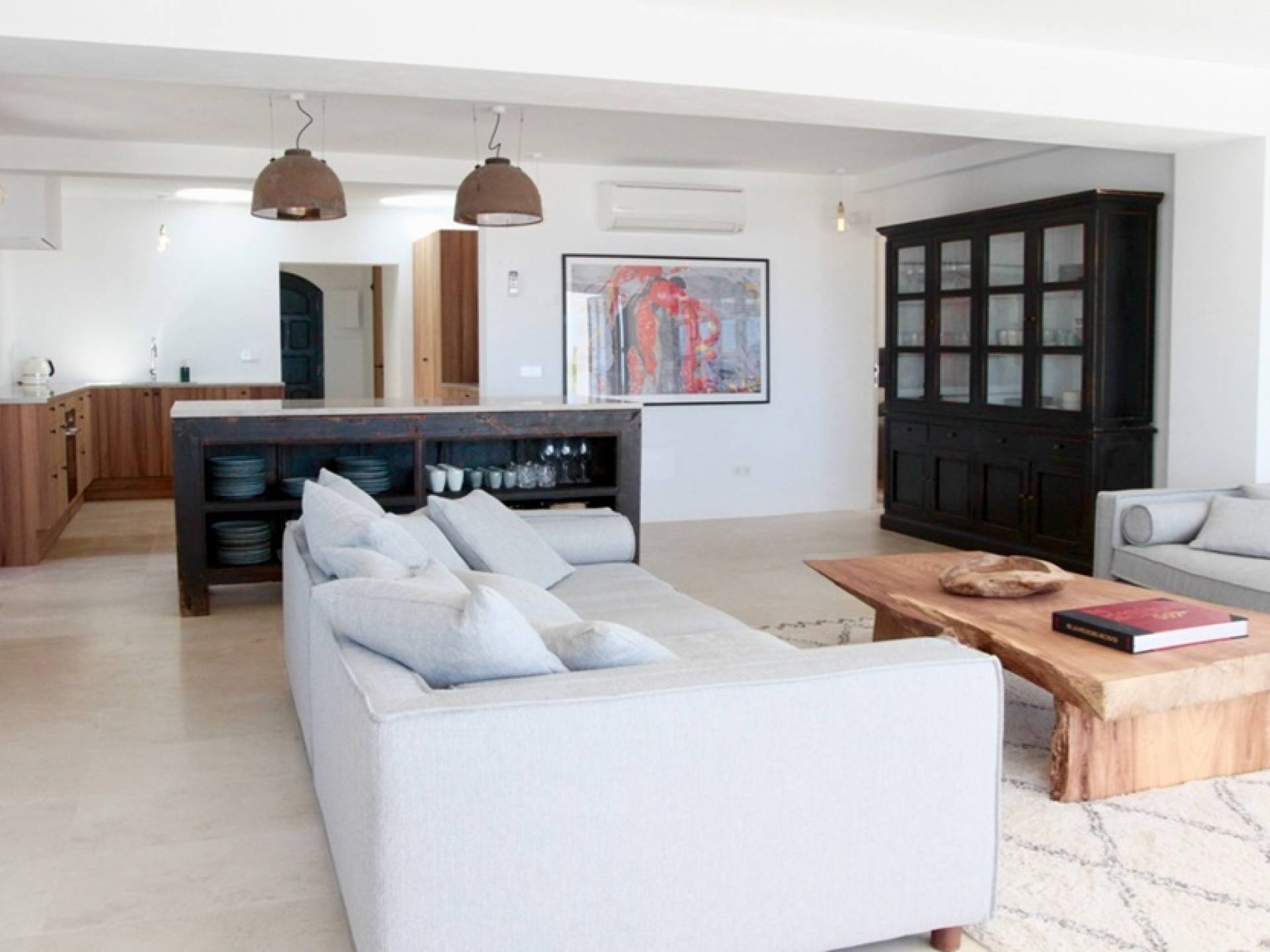 Στο κεντρικό επίπεδο, οι πόρτες του μεγάλου καθιστικού γλιστρούν και ανοίγουν σε μια βεράντα με τραπεζαρία για 12 άτομα και απίστευτη θέα στη θάλασσα. Θα βρείτε επίσης μια πλήρως εξοπλισμένη κουζίνα με νησίδα κουζίνας 3 μέτρων, σαλόνι με άνετους καναπέδες και βεστιάριο επισκεπτών με WC. Η πλήρως εξοπλισμένη κουζίνα διαθέτει τα εξής: 2 x ενσωματωμένο ψυγείο και 1 x καταψύκτη, 2 x πλυντήρια πιάτων, 4 μονάδες επαγωγής πιάτων, 1 x φούρνο με γκριλ, φούρνο μικροκυμάτων, καφετιέρα Nespresso, αποχυμωτή. Το χαμηλότερο επίπεδο διαθέτει γυμναστήριο, μεγάλη αίθουσα παιχνιδιού/κινηματογράφου με τηλεόραση επίπεδης οθόνης 55 ιντσών και βεστιάριο επισκεπτών με τουαλέτα. Διατίθενται σταθμοί βάσης για iPod σε όλους τους χώρους και η βίλα διαθέτει internet υψηλής ταχύτητας οπτικών ινών (σπάνιο στο νησί) με μέση ταχύτητα λήψης 50 MB, αλλά αυτό ποικίλλει. Καθώς αυτή η βίλα βρίσκεται σε κατοικημένη περιοχή, υπάρχει μηδενική ανοχή όσον αφορά τη μουσική και τον δυνατό θόρυβο μεταξύ 23:00 και 10:00. Η βίλα προστατεύεται καλά με εσωτερικό και εξωτερικό σύστημα συναγερμού συνδεδεμένο με GPS Security. Παρέχονται κούνιες, παιδικά καρεκλάκια και μια επιλογή από παιχνίδια και παιδικές τσάντες φασολιών.