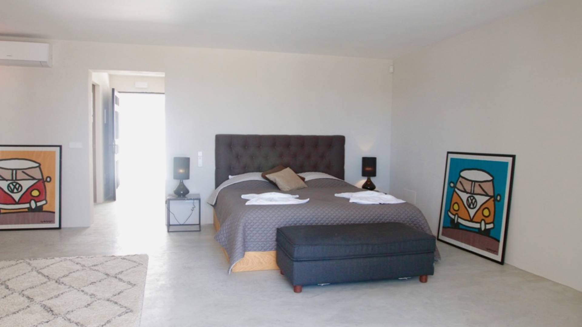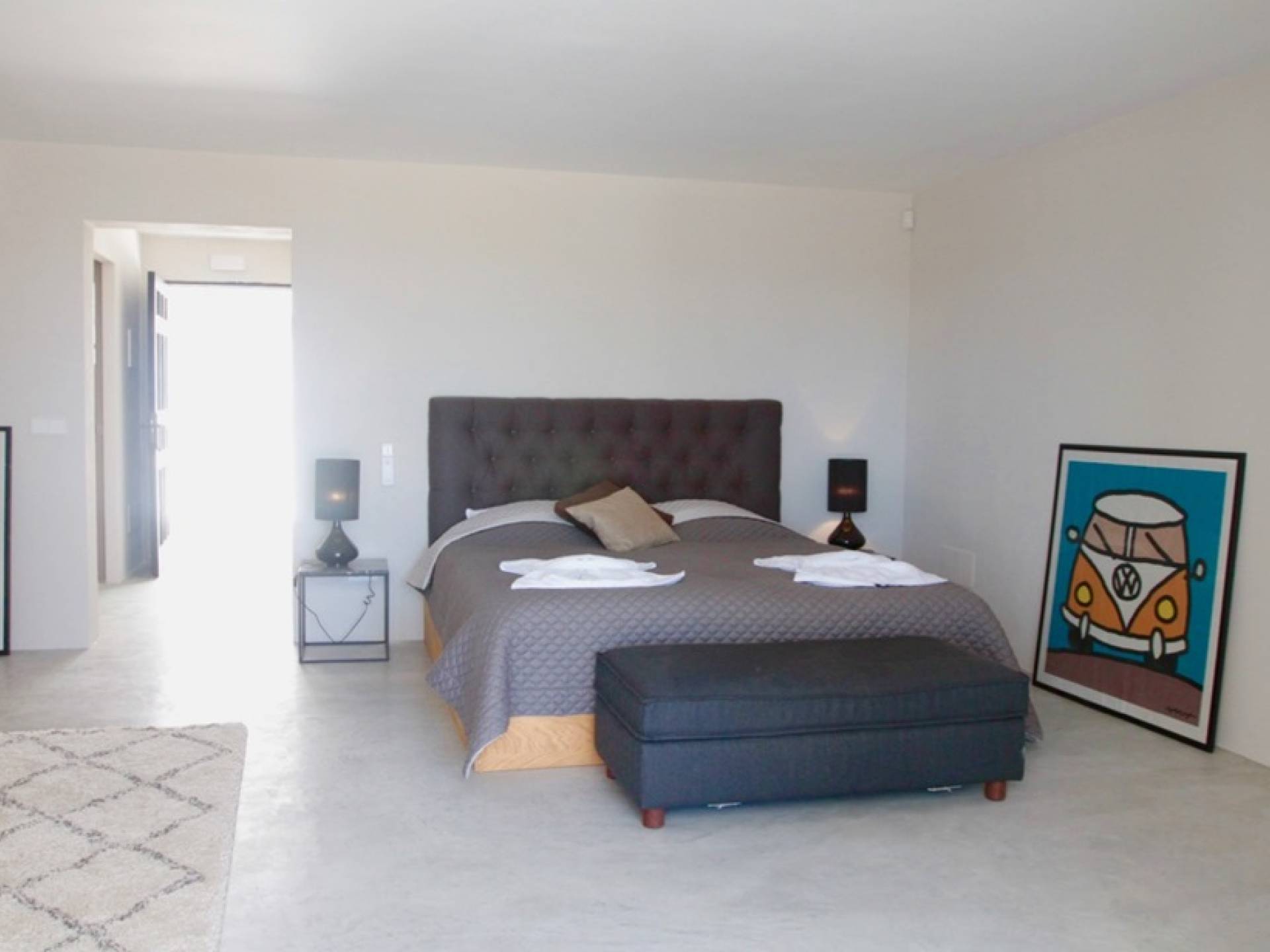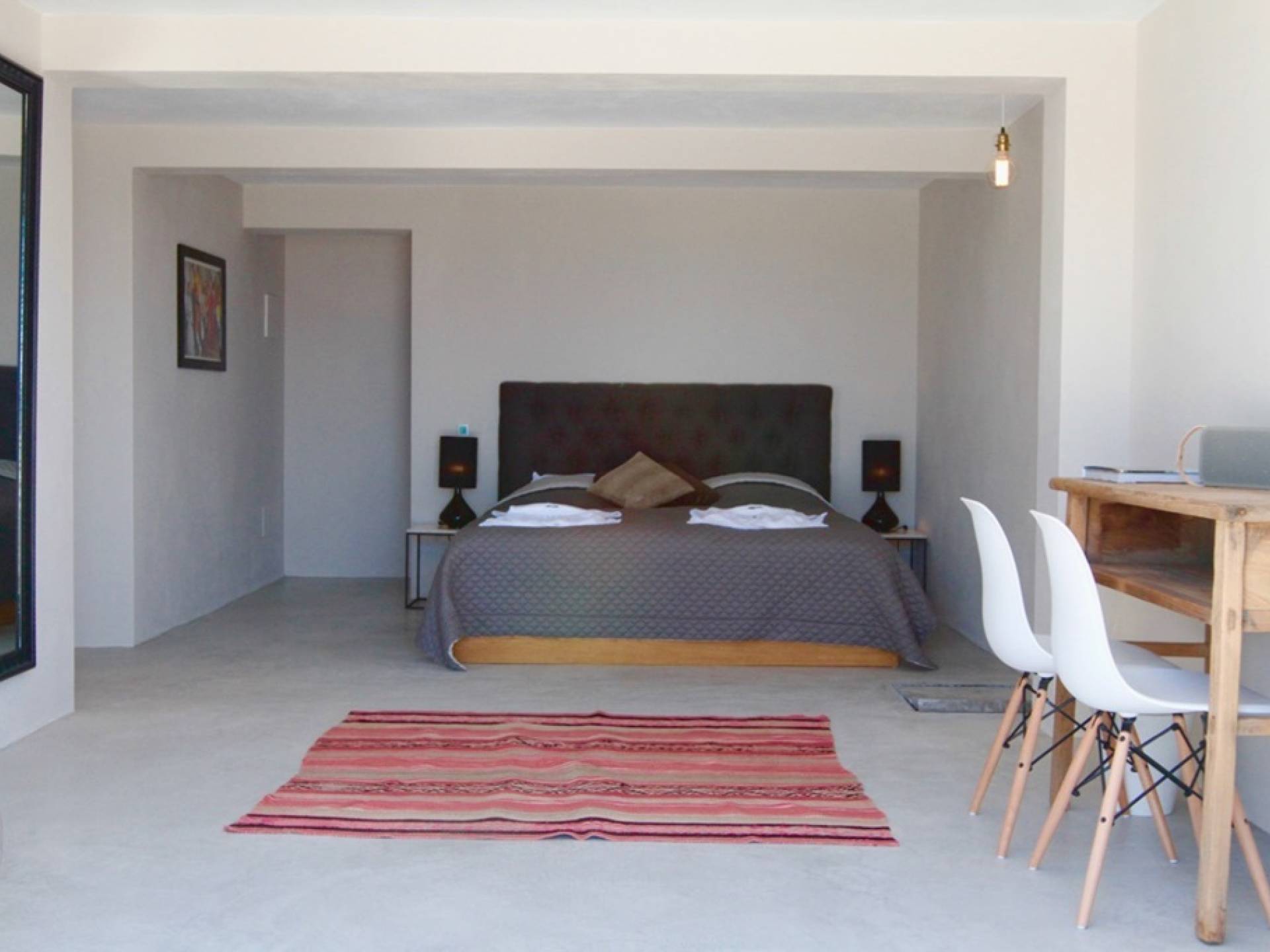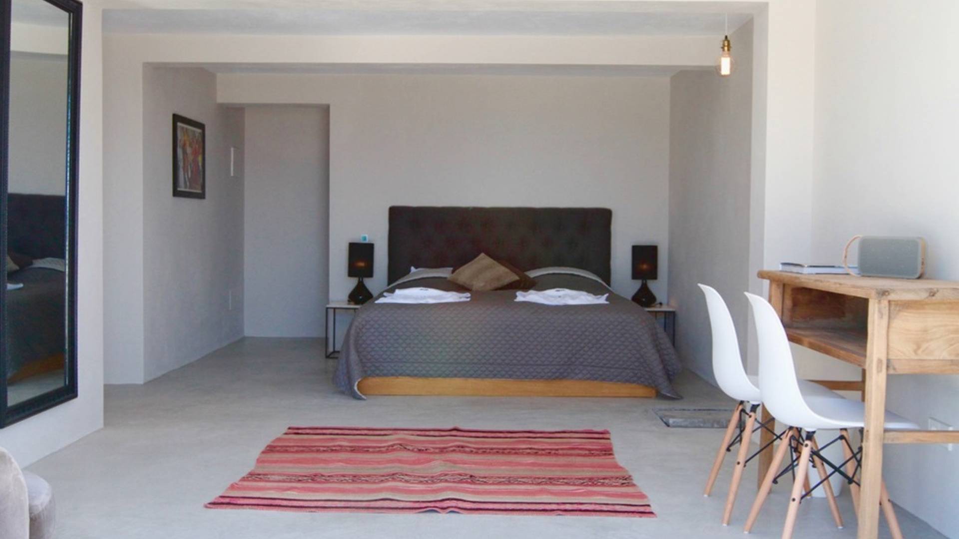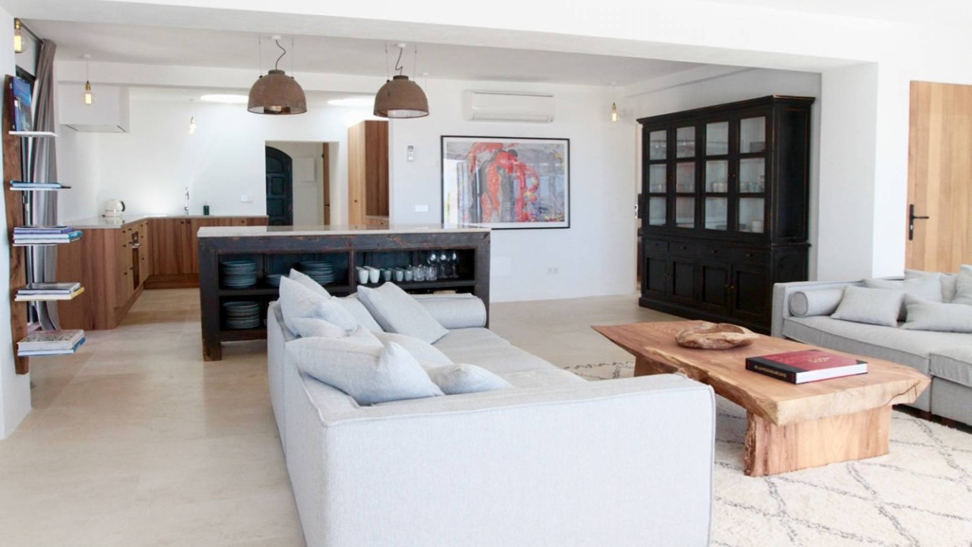Στο κεντρικό επίπεδο, οι πόρτες του μεγάλου καθιστικού γλιστρούν και ανοίγουν σε μια βεράντα με τραπεζαρία για 12 άτομα και απίστευτη θέα στη θάλασσα. Θα βρείτε επίσης μια πλήρως εξοπλισμένη κουζίνα με νησίδα κουζίνας 3 μέτρων, σαλόνι με άνετους καναπέδες και βεστιάριο επισκεπτών με WC. Η πλήρως εξοπλισμένη κουζίνα διαθέτει τα εξής: 2 x ενσωματωμένο ψυγείο και 1 x καταψύκτη, 2 x πλυντήρια πιάτων, 4 μονάδες επαγωγής πιάτων, 1 x φούρνο με γκριλ, φούρνο μικροκυμάτων, καφετιέρα Nespresso, αποχυμωτή. Το χαμηλότερο επίπεδο διαθέτει γυμναστήριο, μεγάλη αίθουσα παιχνιδιού/κινηματογράφου με τηλεόραση επίπεδης οθόνης 55 ιντσών και βεστιάριο επισκεπτών με τουαλέτα. Διατίθενται σταθμοί βάσης για iPod σε όλους τους χώρους και η βίλα διαθέτει internet υψηλής ταχύτητας οπτικών ινών (σπάνιο στο νησί) με μέση ταχύτητα λήψης 50 MB, αλλά αυτό ποικίλλει. Καθώς αυτή η βίλα βρίσκεται σε κατοικημένη περιοχή, υπάρχει μηδενική ανοχή όσον αφορά τη μουσική και τον δυνατό θόρυβο μεταξύ 23:00 και 10:00. Η βίλα προστατεύεται καλά με εσωτερικό και εξωτερικό σύστημα συναγερμού συνδεδεμένο με GPS Security. Παρέχονται κούνιες, παιδικά καρεκλάκια και μια επιλογή από παιχνίδια και παιδικές τσάντες φασολιών.