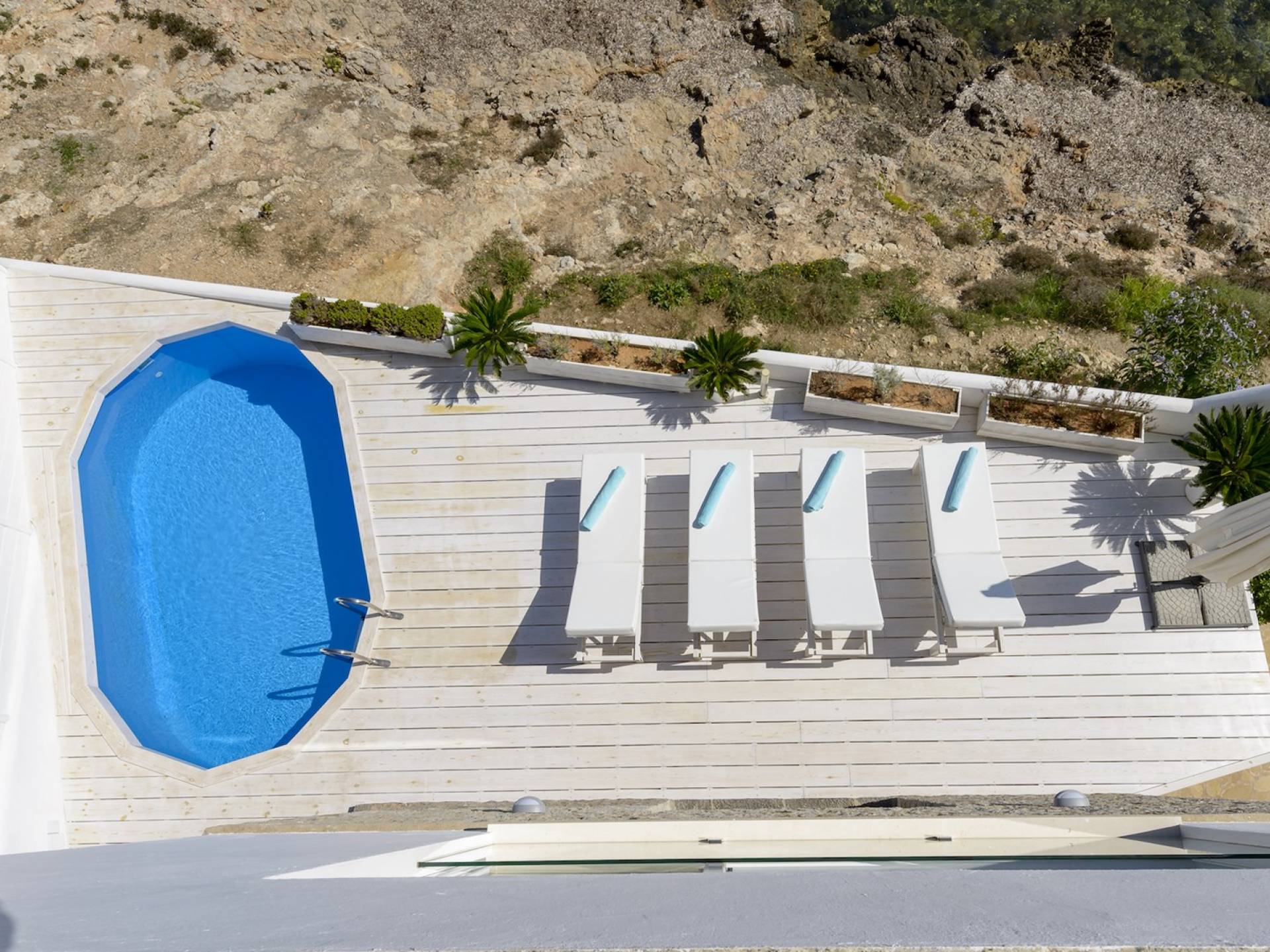Το τρίτο επίπεδο διαθέτει τα υπνοδωμάτια και τα μπάνια, ενώ στο τέταρτο επίπεδο θα βρείτε μια βεράντα στον τελευταίο όροφο με ντους και ξαπλώστρες για ηλιοθεραπεία με απόλυτη ιδιωτικότητα.