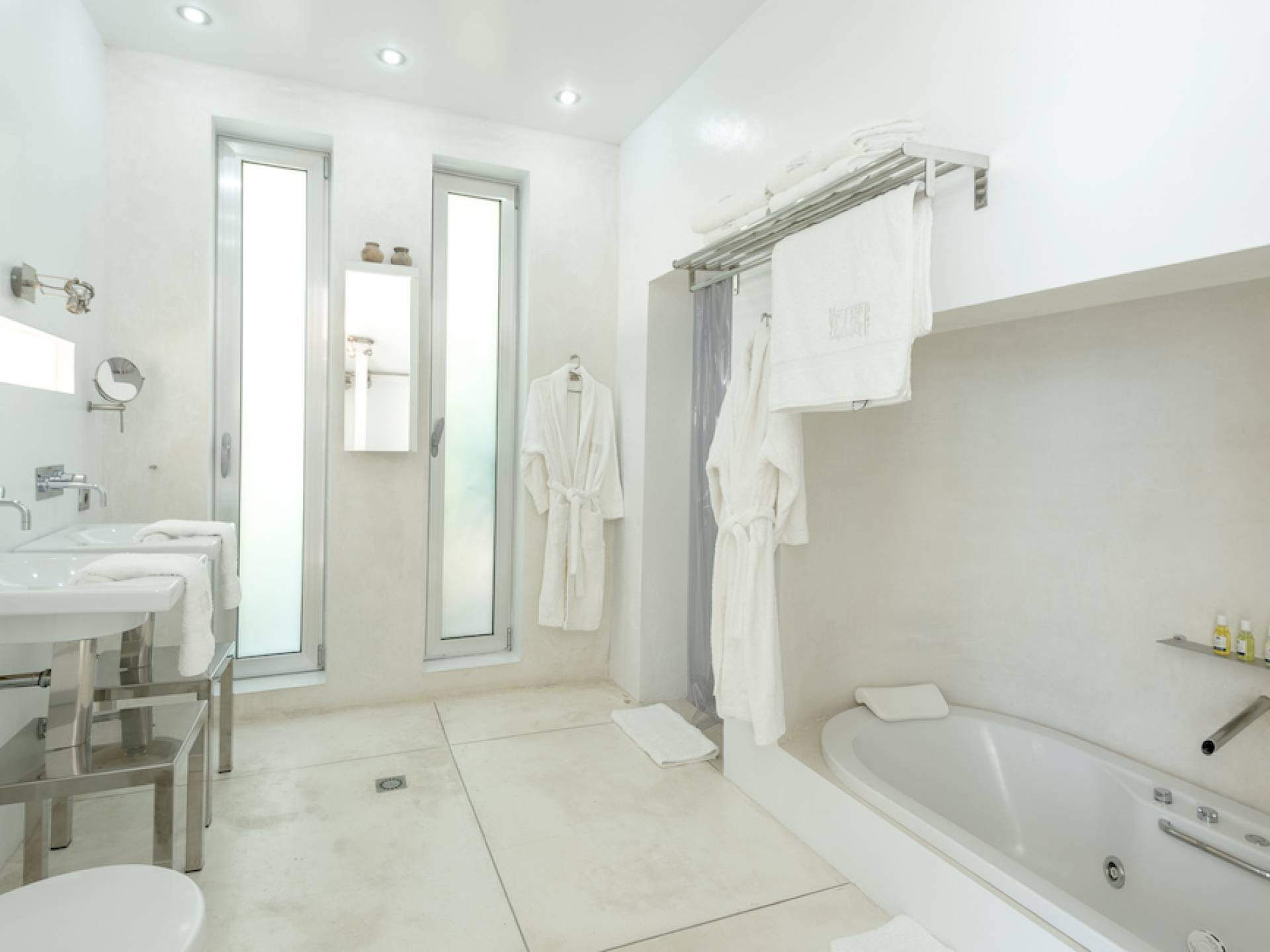 Με εκπληκτική πανοραμική θέα 180º στην Παλιά Πόλη της izaμπιζα, τις παραλίες Salinas, Es Codolar και το νησί Formentera, η θέα είναι πραγματικά παγκόσμιας κλάσης. Οι υπαίθριες ανέσεις περιλαμβάνουν μια μεγάλη πισίνα (32μ/105 πόδια) με καταρράκτες, μια κρυφή σπηλιά, μια πλωτή καμπάνα και παράθυρα υποβρύχιας πισίνας. Υπάρχουν επίσης δύο μπανιέρες υδρομασάζ υδρομασάζ όταν θέλετε να χαλαρώσετε με απόλυτη άνεση. Για να ολοκληρώσουμε όλα, θα βρείτε γυμναστήριο, υπέρυθρη σάουνα αποτοξίνωσης, μπαρ δίπλα στην πισίνα με μπάρμαν, τραπεζαρία και χώρο πρωινού επίσης με μπάρμπεκιου. Η Villa Roca είναι ένα από εκείνα τα μέρη όπου είναι σχεδόν αδύνατο να αποδοθεί δικαιοσύνη μόνο με λέξεις.