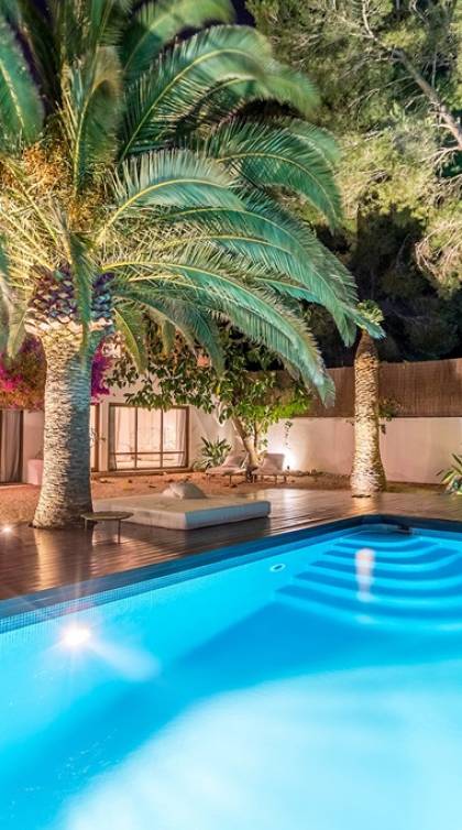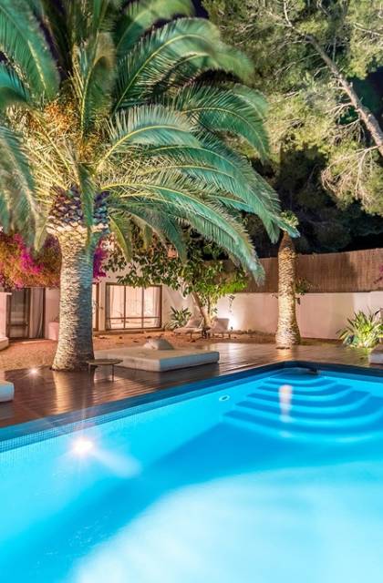 Το Villa Vade βρίσκεται στο εκπληκτικό φυσικό πάρκο Salinas, μόλις 10 λεπτά από την πόλη της Ίμπιζα και 2 λεπτά από τις λευκές αμμώδεις παραλίες Salinas και Es Cavallet. Σχεδιασμένη με παραδοσιακή ισπανική αρχιτεκτονική σε συνδυασμό με μοντέρνα και κομψή αισθητική με ανατολίτικη πινελιά, αυτή η βίλα φέρνει νέα ζωή στο κλασικό στιλ. Αυτή η όμορφη ιδιοκτησία αποτελείται από μια κύρια κατοικία με τρία άνετα δίκλινα υπνοδωμάτια και τρία μπάνια, και τρία ανεξάρτητα δίκλινα υπνοδωμάτια με ιδιωτικό μπάνιο διασκορπισμένα στον καταπράσινο κήπο με ιδιωτική πισίνα.