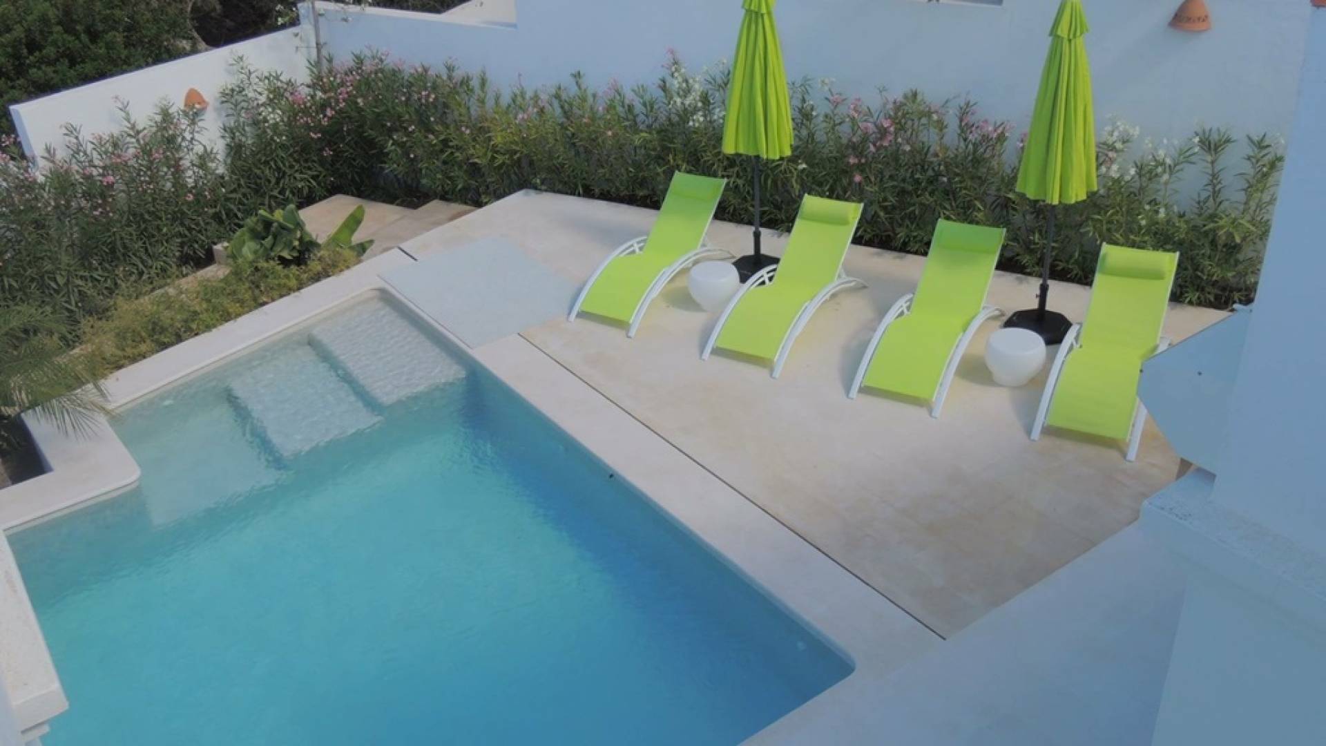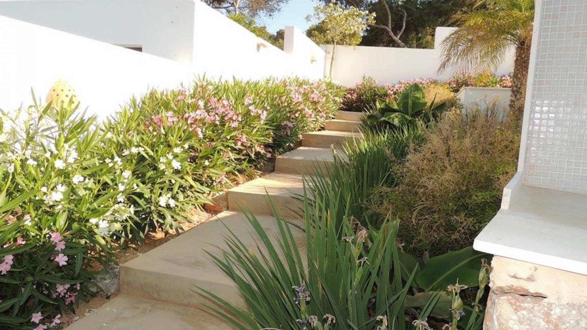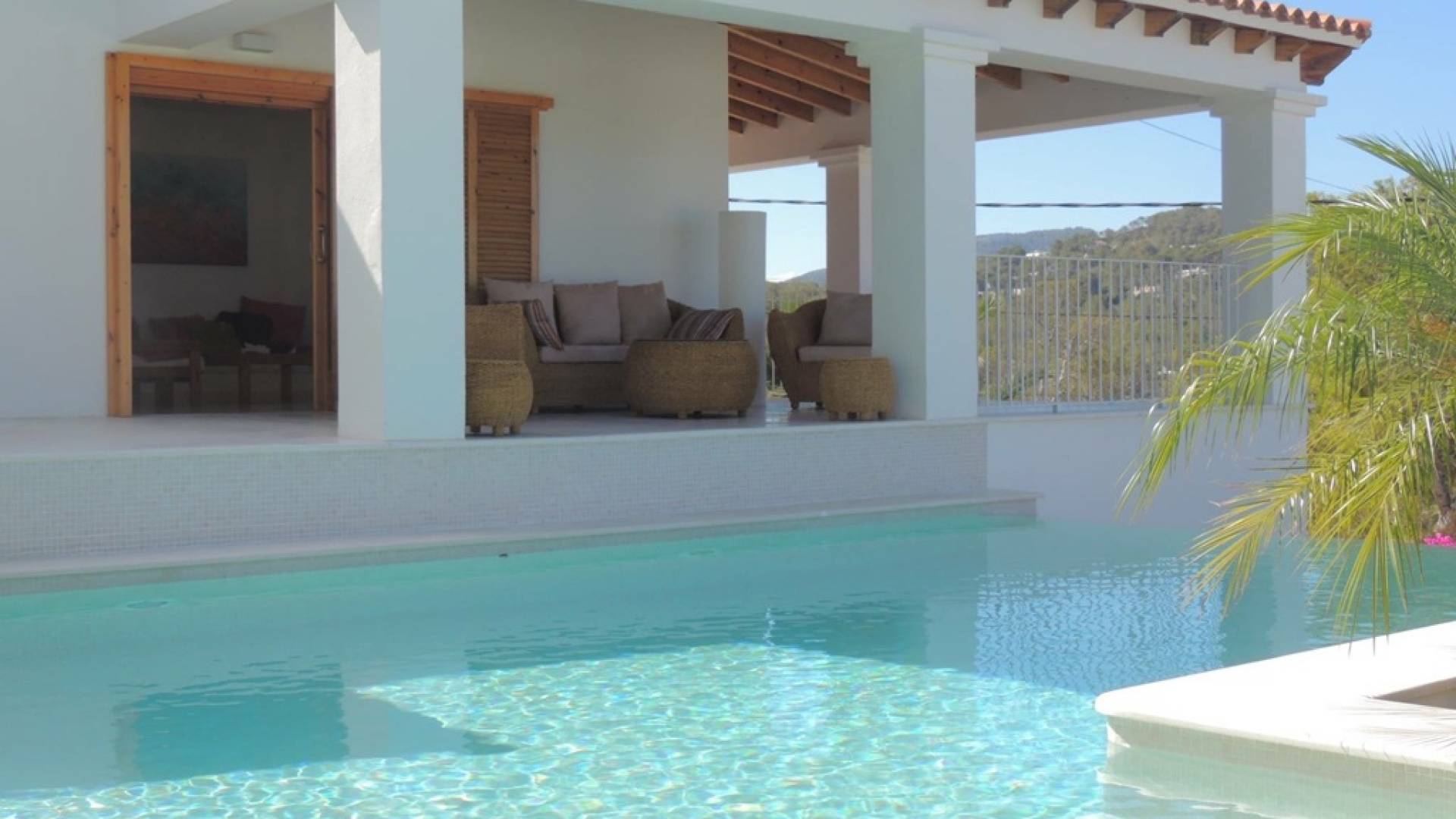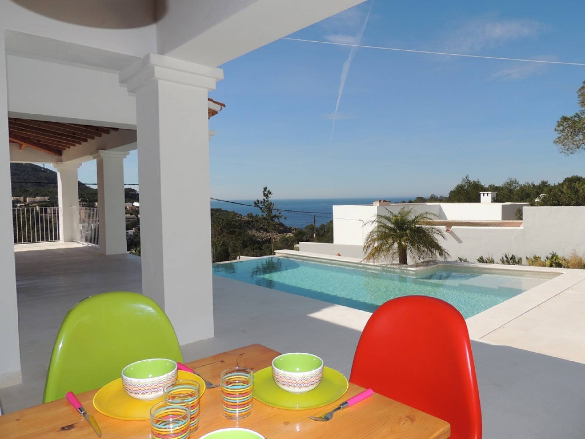 Όλοι οι εξωτερικοί χώροι βλέπουν στη Μεσόγειο Θάλασσα, κάνοντας τη θέα από τον χώρο της πισίνας απλά μαγευτική. Υπάρχει μια βεράντα με άνετους υπαίθριους καναπέδες, χώρο για ηλιοθεραπεία και μια στεγασμένη υπαίθρια τραπεζαρία με μπάρμπεκιου. Η πισίνα υπερχείλισης είναι ενσωματωμένη στις βεράντες που περιβάλλονται από όμορφα διατηρημένους κήπους, υπάρχει μια δεύτερη υπαίθρια τραπεζαρία στην μπροστινή βεράντα καθώς και ιδιωτικός χώρος στάθμευσης για 2 αυτοκίνητα.