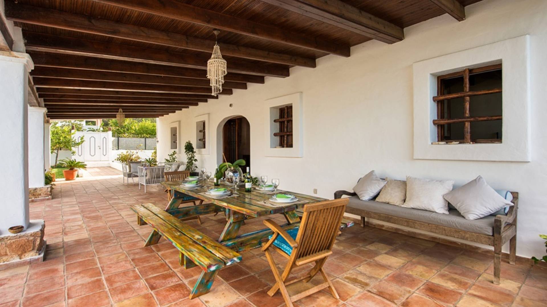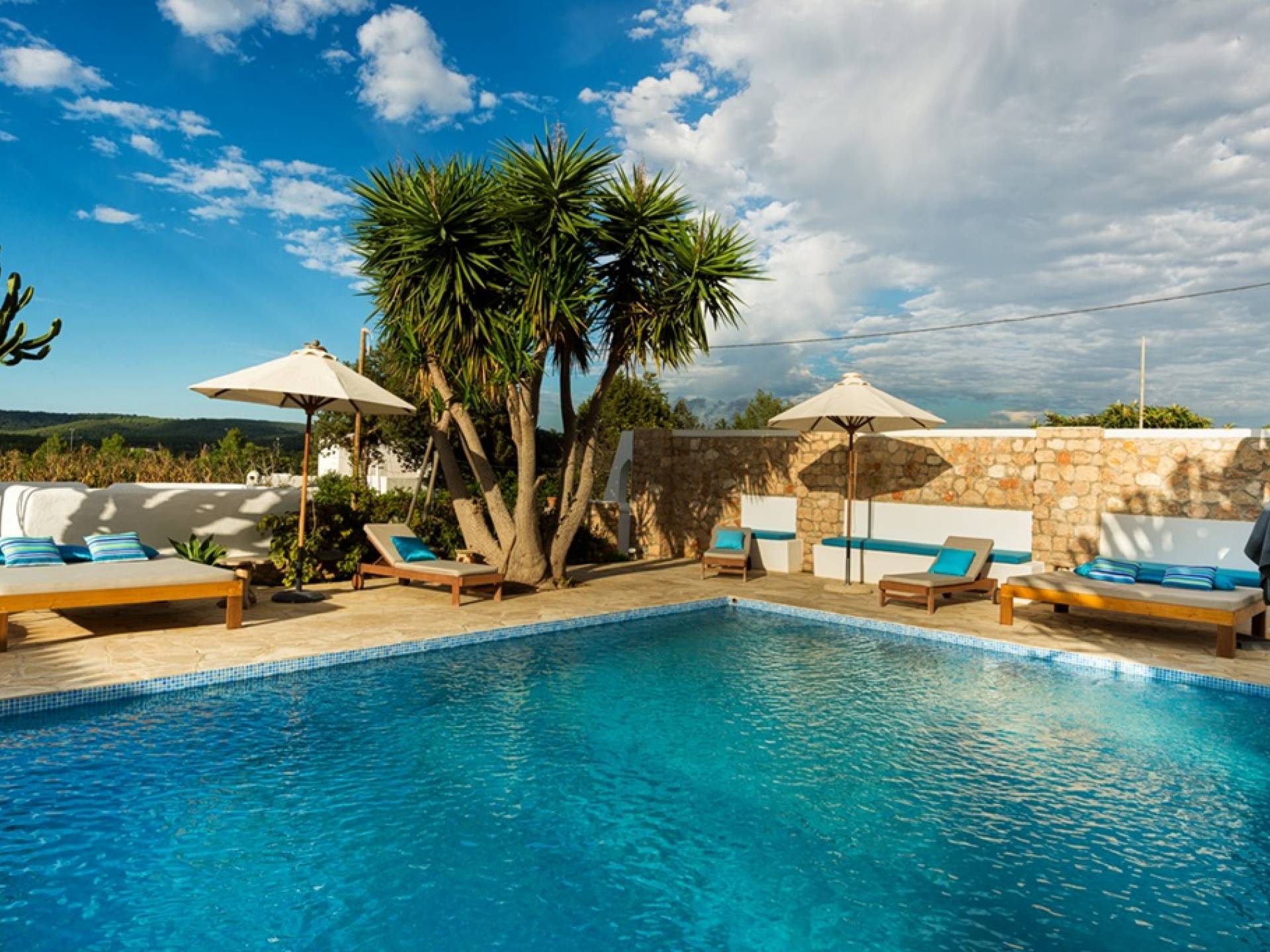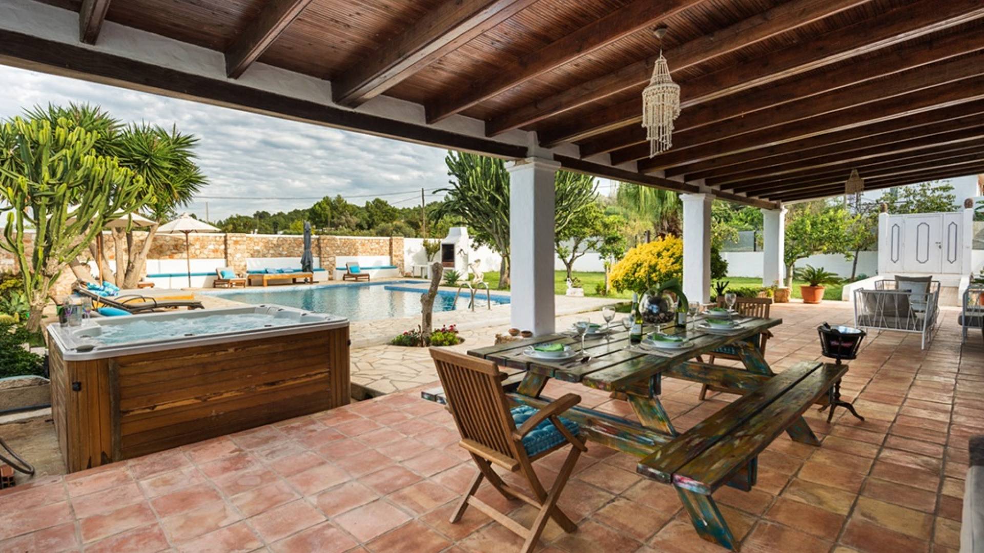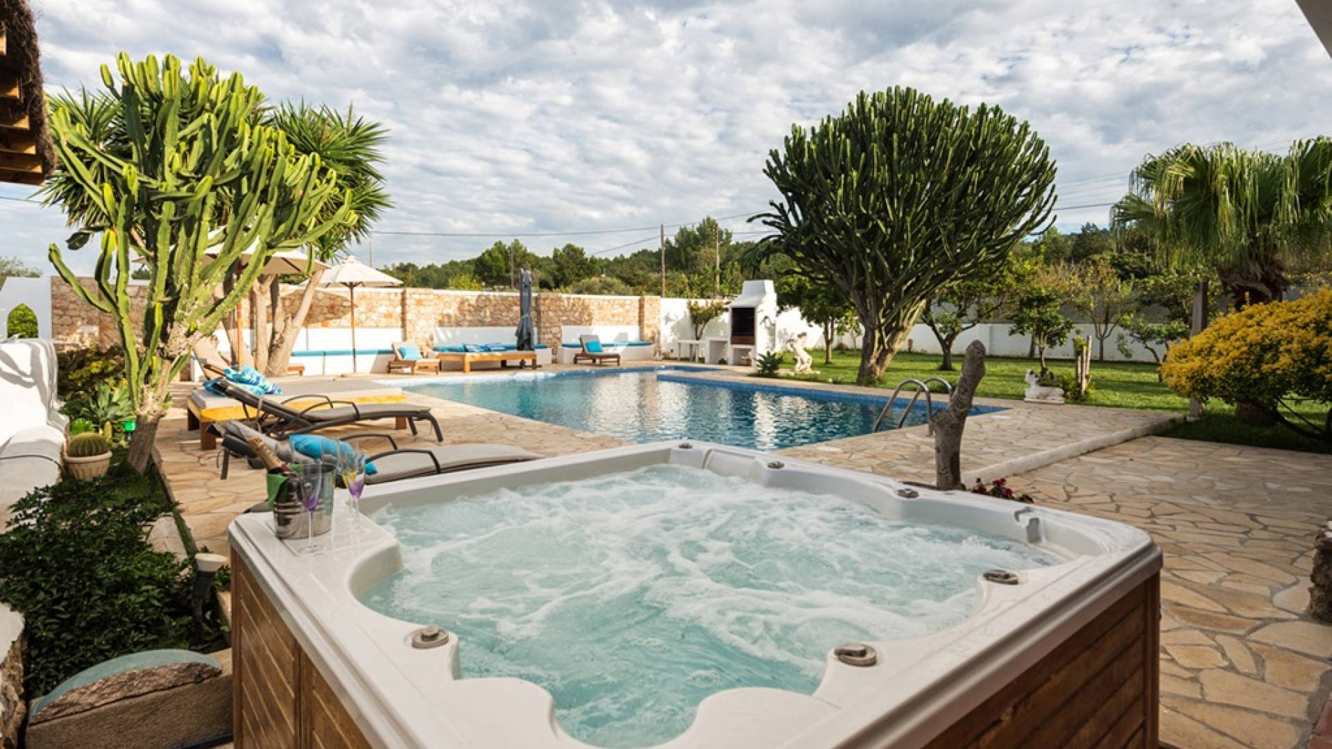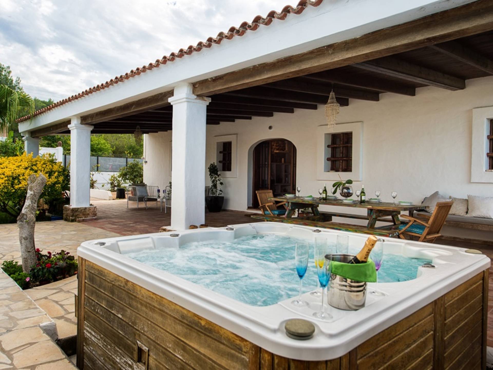 Έξω μπορείτε να απολαύσετε έναν ιδιωτικό, πολύ καλά διατηρημένο κήπο με ηλιόλουστες και σκιερές περιοχές, μια φιλόξενη μεγάλη πισίνα (10m x 6m) που περιβάλλεται από ξαπλώστρες και ομπρέλες. Υπάρχει επίσης ένα ντους δίπλα στην πισίνα για την άνεσή σας. Δίπλα στο εσωτερικό σαλόνι υπάρχει μια σκεπαστή βεράντα με τραπεζαρία και χώρο χαλάρωσης, όπου μπορείτε να απολαύσετε μερικά τάπας με ένα δροσιστικό κοκτέιλ θαυμάζοντας την υπέροχη θέα αυτού του μαγικού νησιού. Μπορείτε επίσης να επωφεληθείτε από το μπάρμπεκιου και να ετοιμάσετε νόστιμα γεύματα για να απολαύσετε σε εξωτερικούς χώρους παρέα με την οικογένεια και τους φίλους σας.