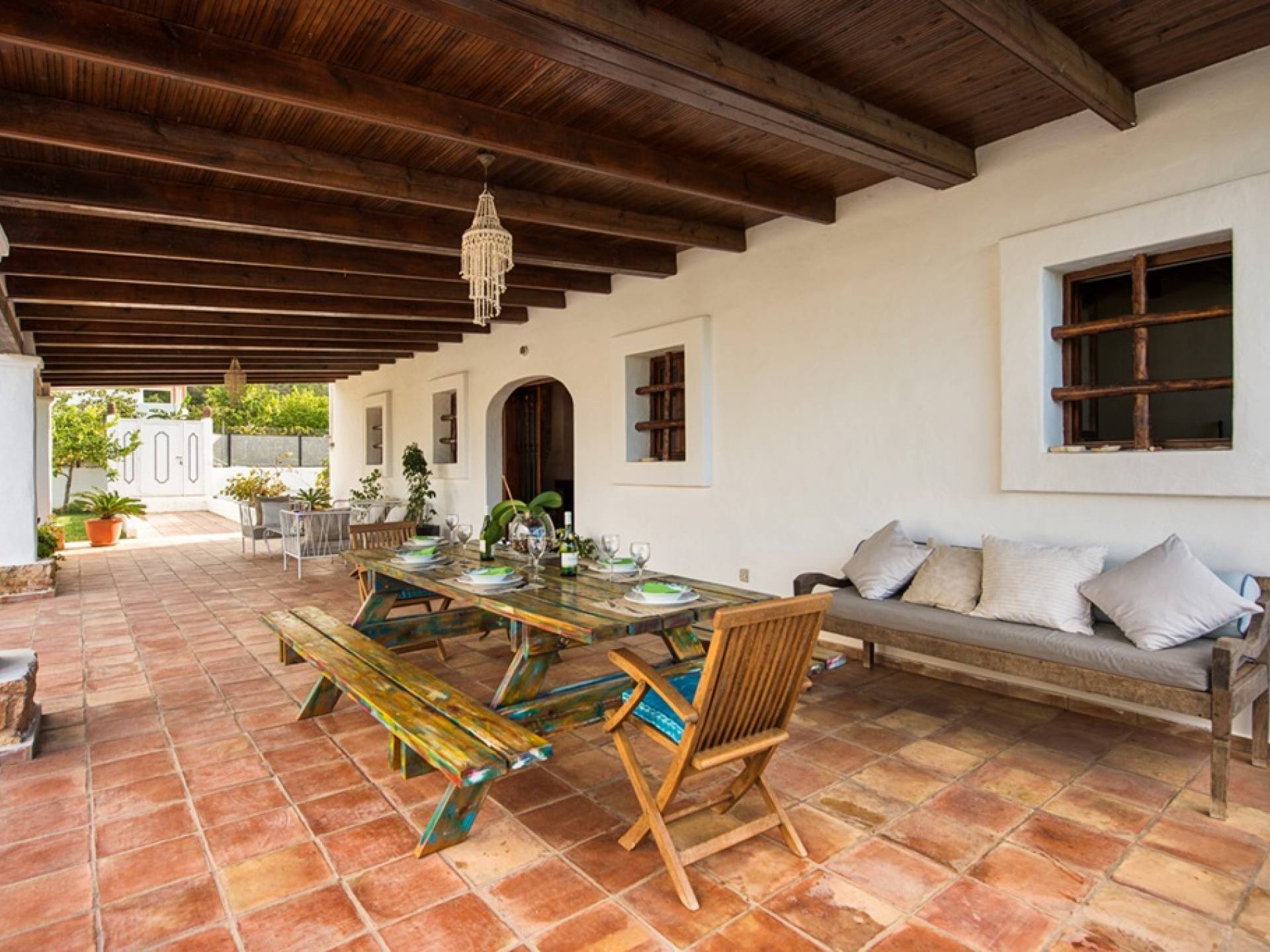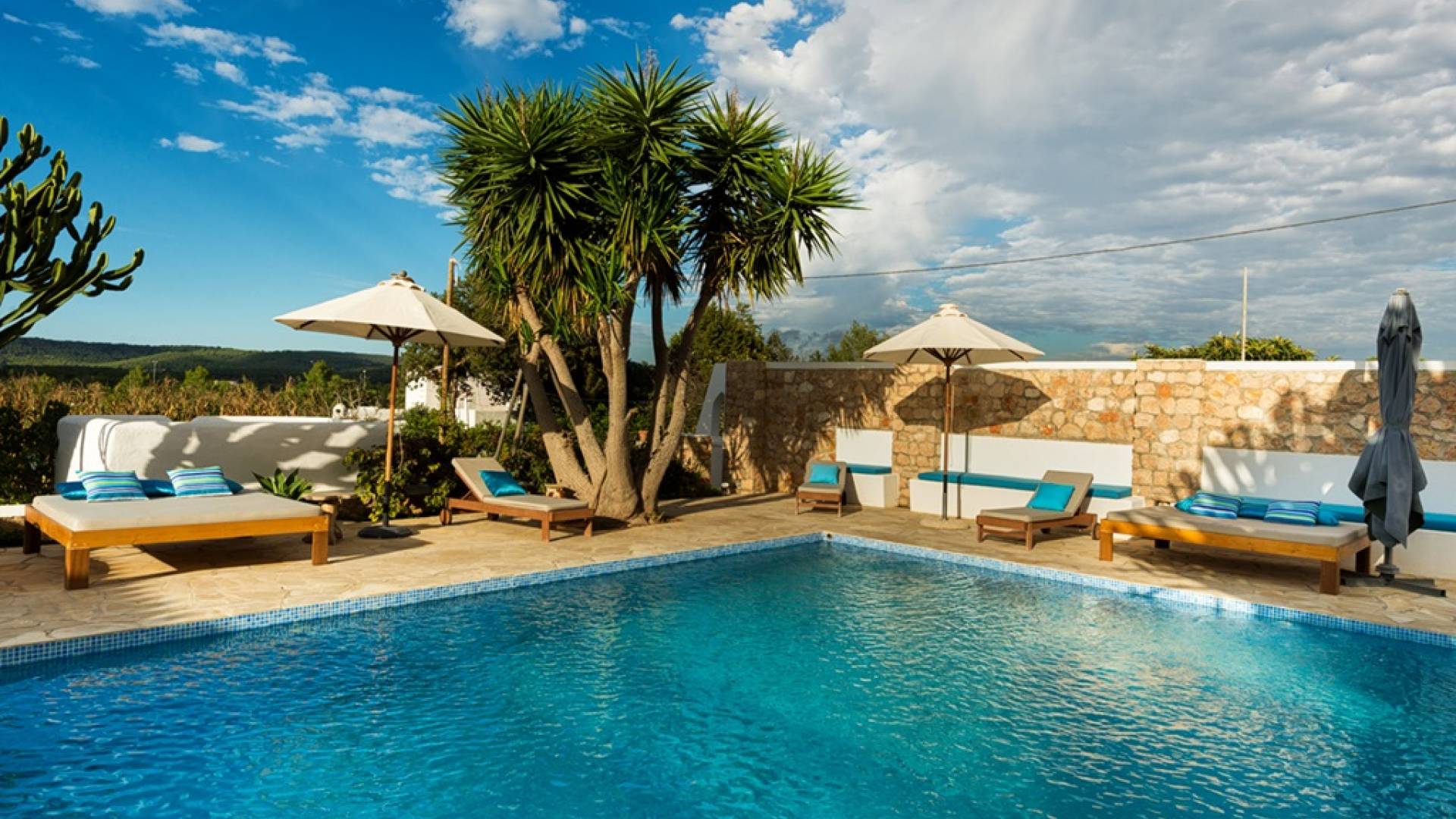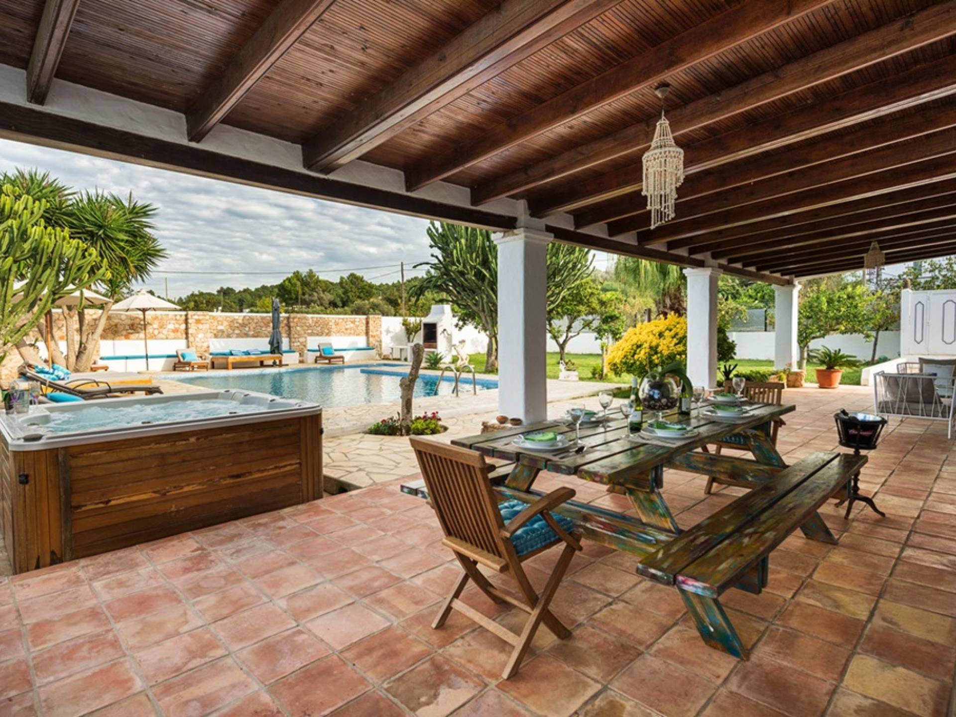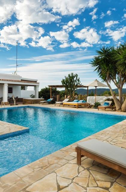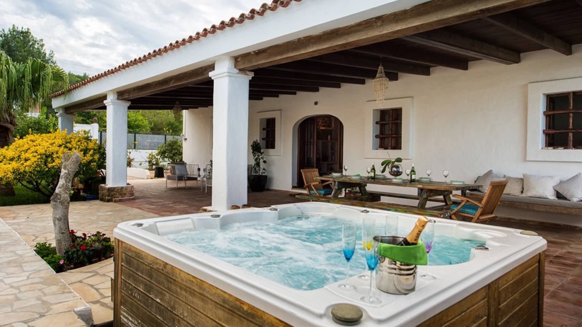 Έξω μπορείτε να απολαύσετε έναν ιδιωτικό, πολύ καλά διατηρημένο κήπο με ηλιόλουστες και σκιερές περιοχές, μια φιλόξενη μεγάλη πισίνα (10m x 6m) που περιβάλλεται από ξαπλώστρες και ομπρέλες. Υπάρχει επίσης ένα ντους δίπλα στην πισίνα για την άνεσή σας. Δίπλα στο εσωτερικό σαλόνι υπάρχει μια σκεπαστή βεράντα με τραπεζαρία και χώρο χαλάρωσης, όπου μπορείτε να απολαύσετε μερικά τάπας με ένα δροσιστικό κοκτέιλ θαυμάζοντας την υπέροχη θέα αυτού του μαγικού νησιού. Μπορείτε επίσης να επωφεληθείτε από το μπάρμπεκιου και να ετοιμάσετε νόστιμα γεύματα για να απολαύσετε σε εξωτερικούς χώρους παρέα με την οικογένεια και τους φίλους σας.