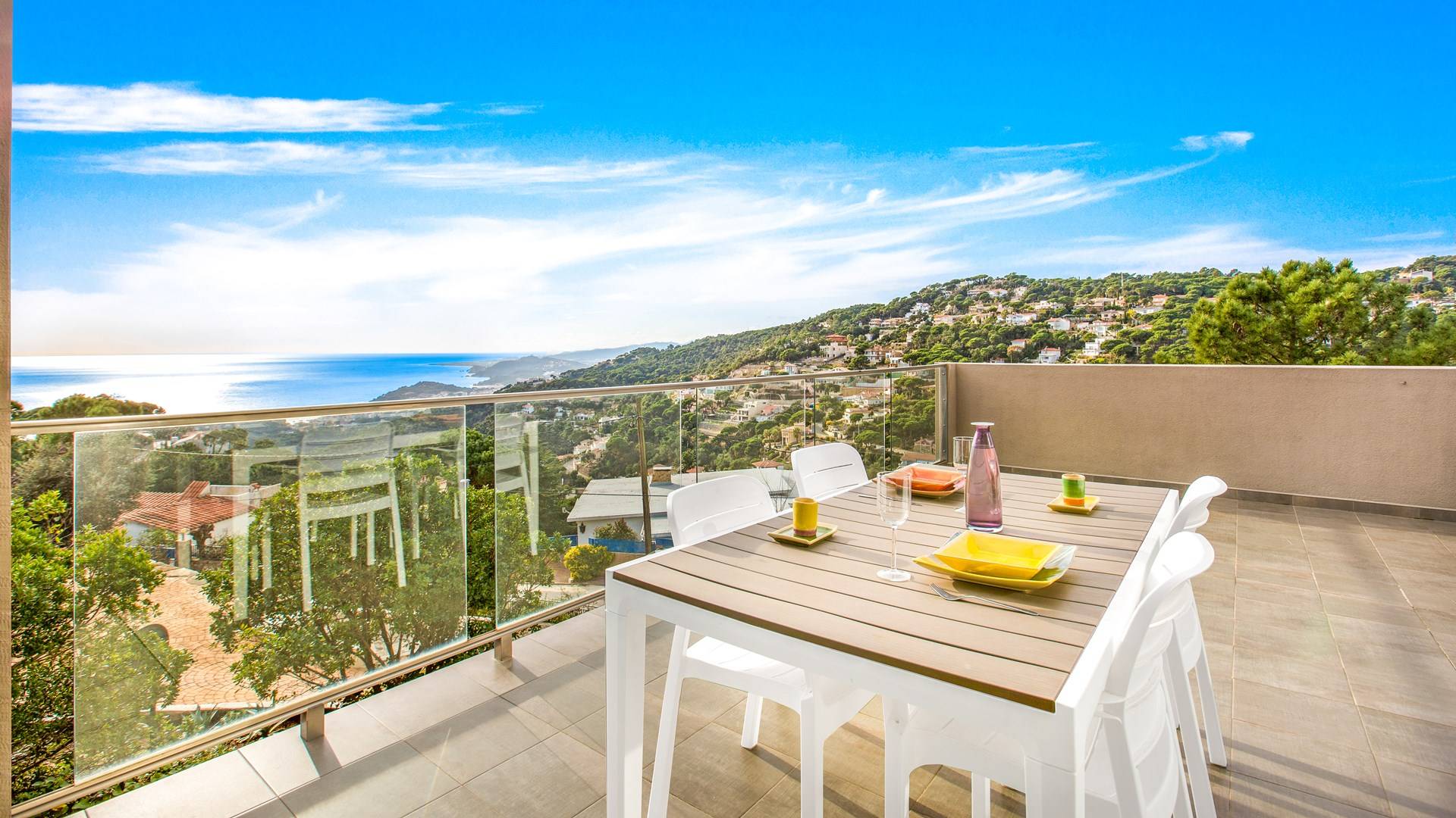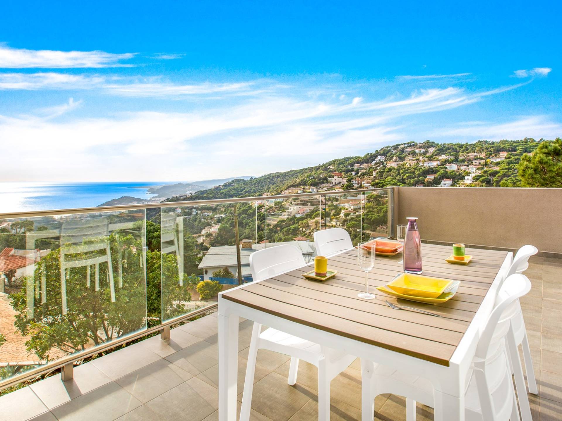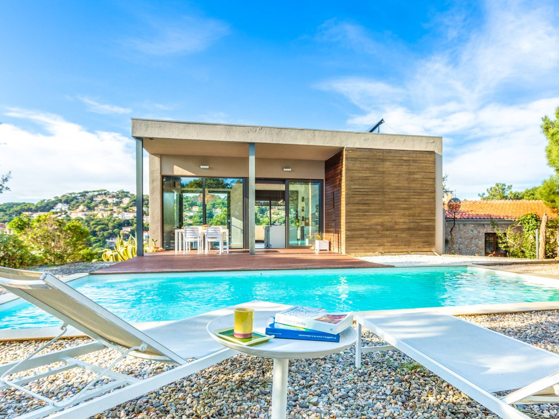 Όμορφο σπίτι με ιδιωτική πισίνα και ασυναγώνιστη θέα στη θάλασσα, που βρίσκεται σε μια ήσυχη κατοικημένη γειτονιά 3χλμ από την παραλία Canyelles, 5χλμ από το Lloret del Mar και 10χλμ από την Tossa de Mar, μια από τις πιο γοητευτικές πόλεις της Costa Brava.