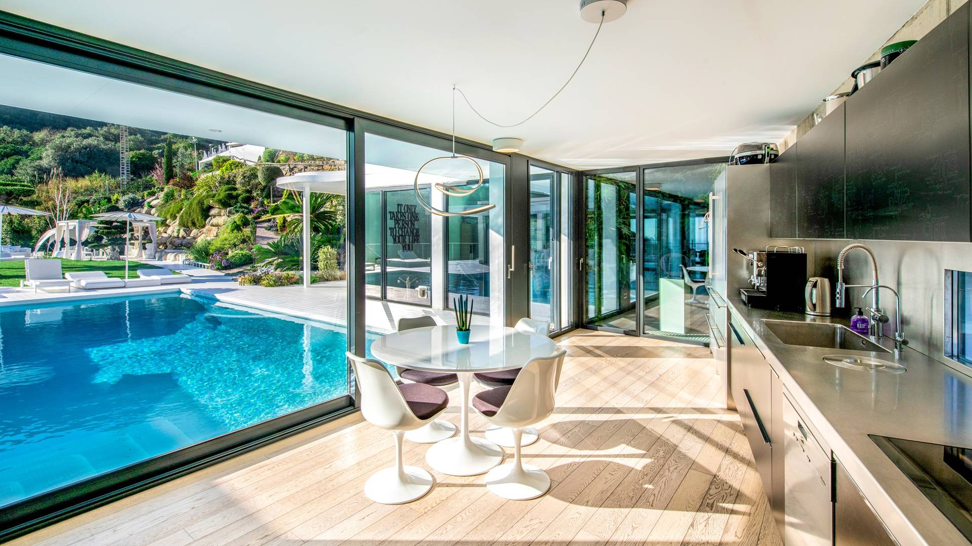 Ibiza Style Villa Barcelona Είναι ένα πολυτελές και ευρύχωρο ακίνητο με 1.000 m2 και 2.500 m2 επιπλέον κήπο που παραδίδεται από ένα φυσικό πάρκο για μέγιστη ιδιωτικότητα, με εκπληκτική θέα στη θάλασσα μόλις 15 λεπτά από το κέντρο της Βαρκελώνης και 7 λεπτά από την κοντινή παραλία. Εξοπλισμένο με την τελευταία διαθέσιμη τεχνολογία (GIRA), τηλεχειριστήριο φώτων, παρωπίδες κεντρική θέρμανση και κλιματισμό μεταξύ πολλών άλλων.