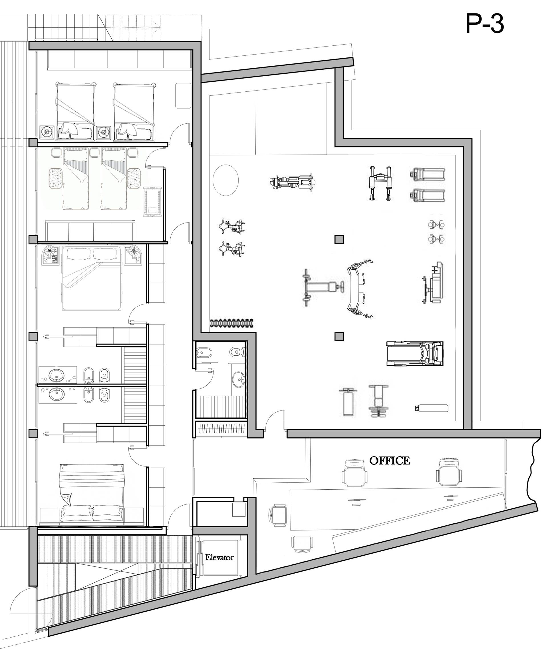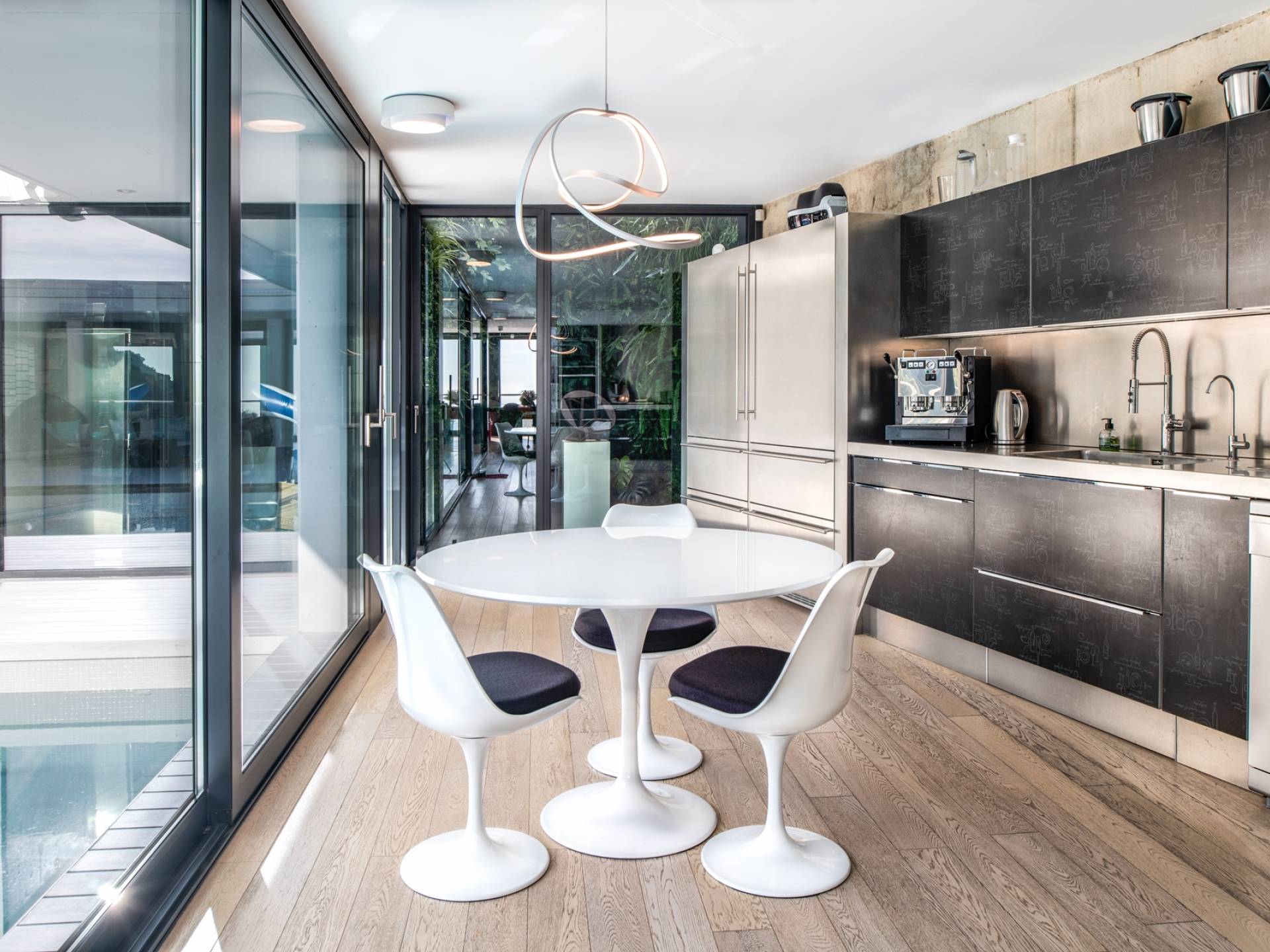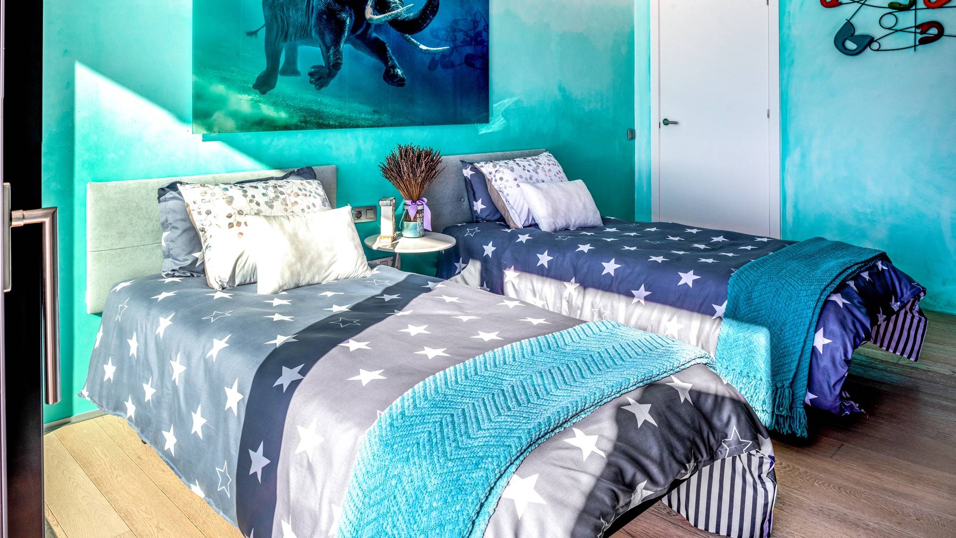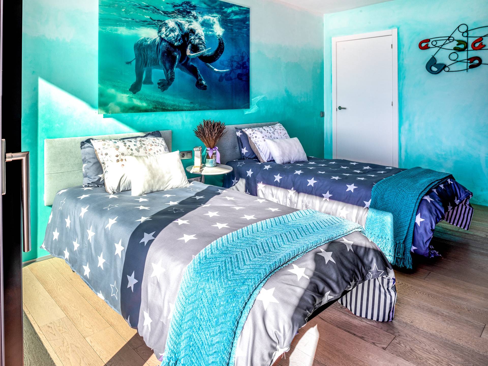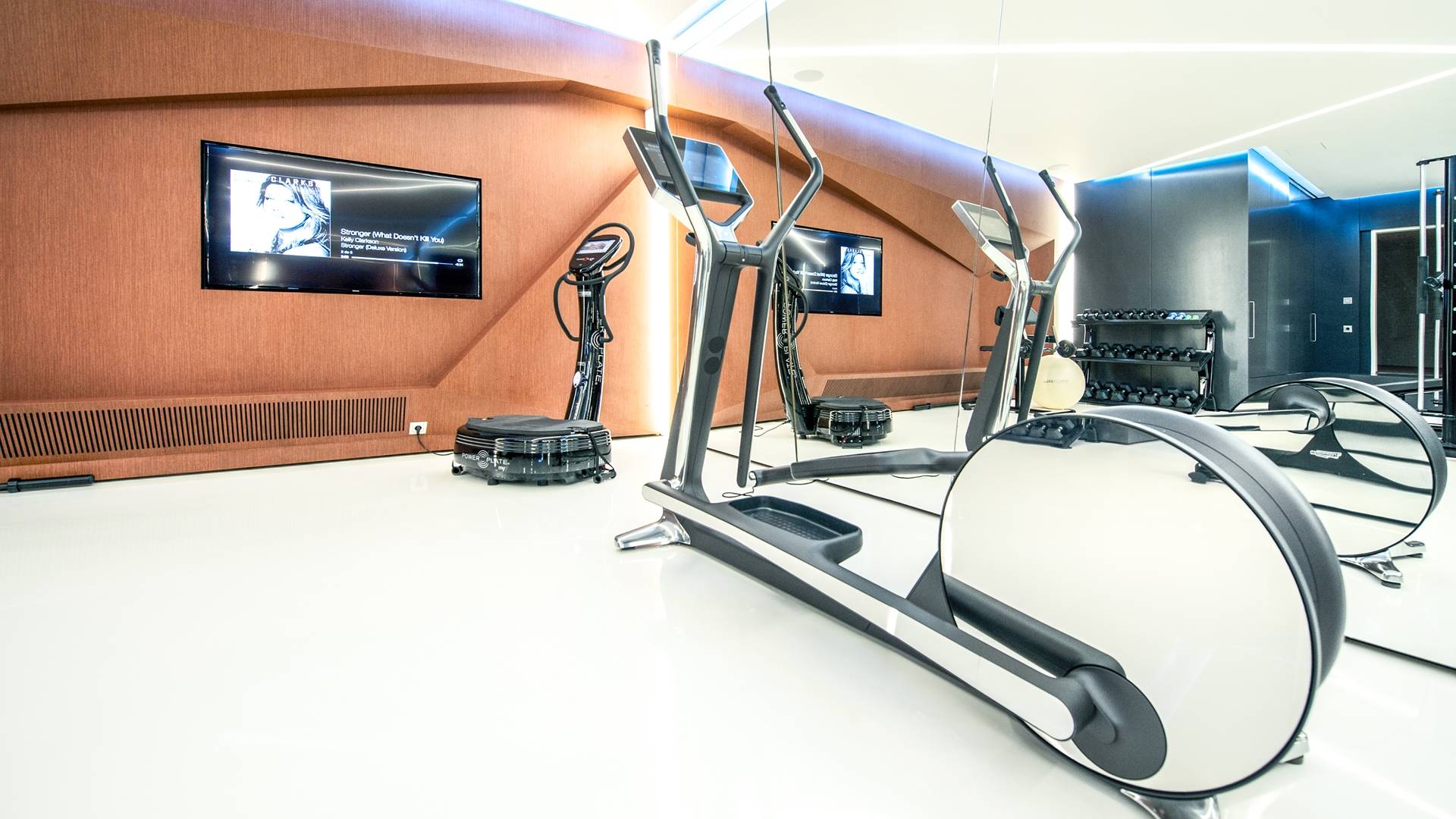 Στον 4ο όροφο, υπάρχει η υπέροχη κύρια κρεβατοκάμαρα με ένα πολύ μεγάλο king-size κρεβάτι (3x2 μέτρα), ένα γυάλινο τζάμι (τούρκικο λουτρό), ένα μεγάλο ντους ψιλής βροχής και ένα κρεβάτι μασάζ. Οι μεγάλες γυάλινες πόρτες επιτρέπουν μια πανοραμική θέα στη θάλασσα και μερικά άλλα παράθυρα που σας επιτρέπουν να δείτε το εσωτερικό της πισίνας. Στον 3ο όροφο, μπορείτε να βρείτε ένα υπερσύγχρονο γυμναστήριο, καθώς και έναν χώρο γραφείου με επιφάνεια εργασίας μήκους 5 μέτρων. Υπάρχουν επίσης 4 δωμάτια και 3 μπάνια. Στον 2ο έχετε ένα ανεξάρτητο υπνοδωμάτιο με το μπάνιο του. Το laundry room βρίσκεται στον 1ο όροφο. Ο 3ος και ο 4ος όροφος προστατεύονται με μέγιστα μέτρα ασφαλείας.