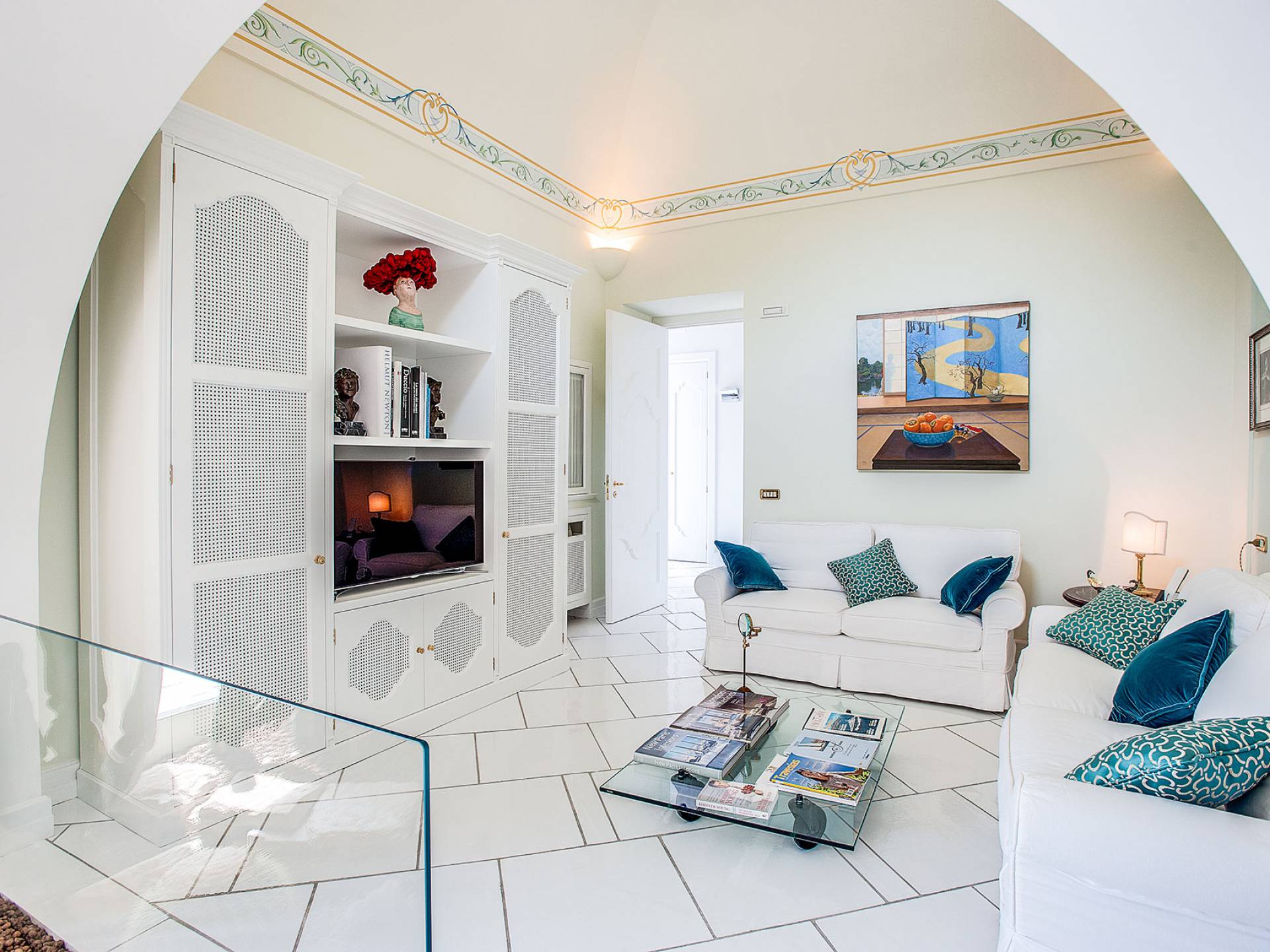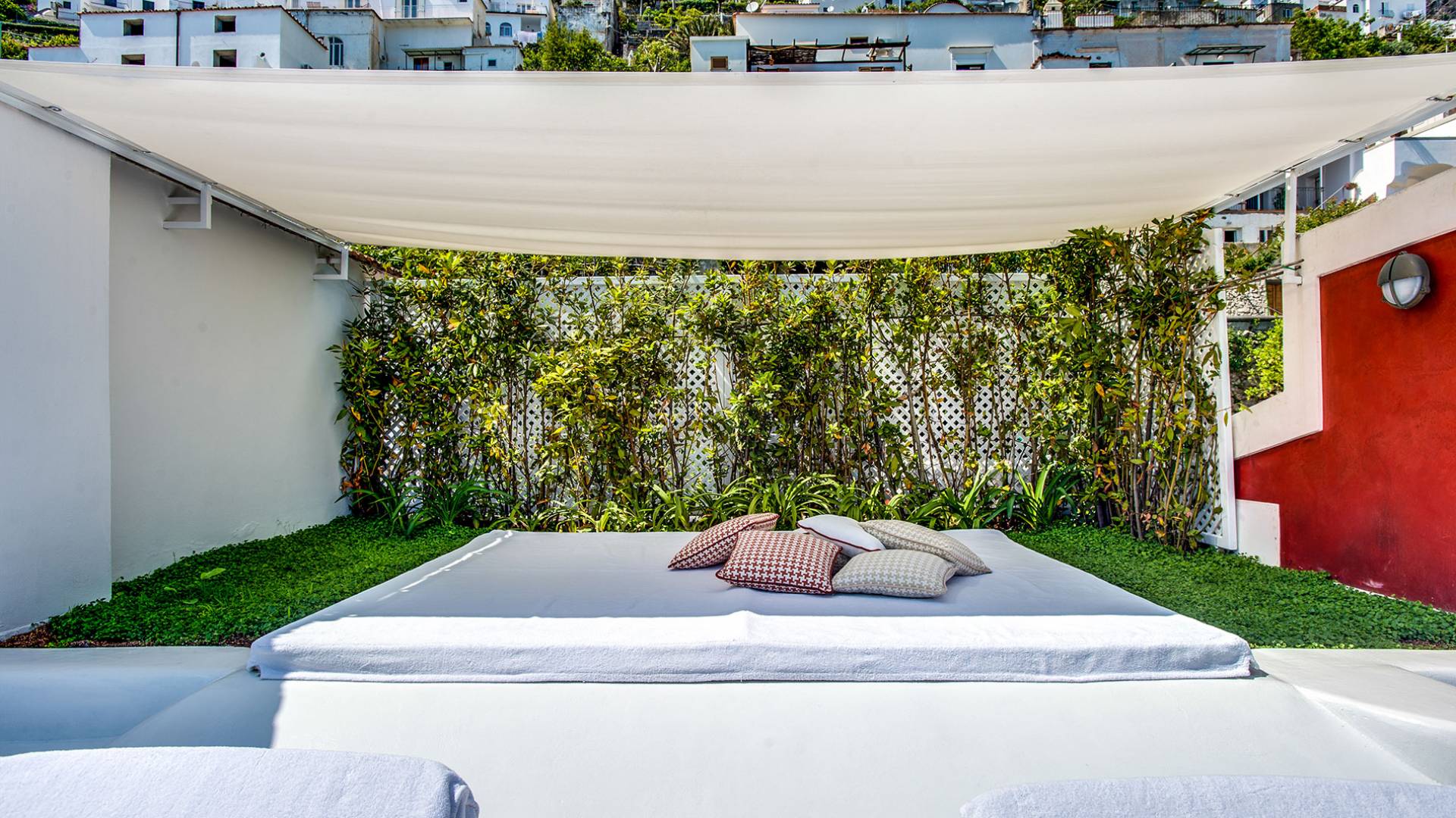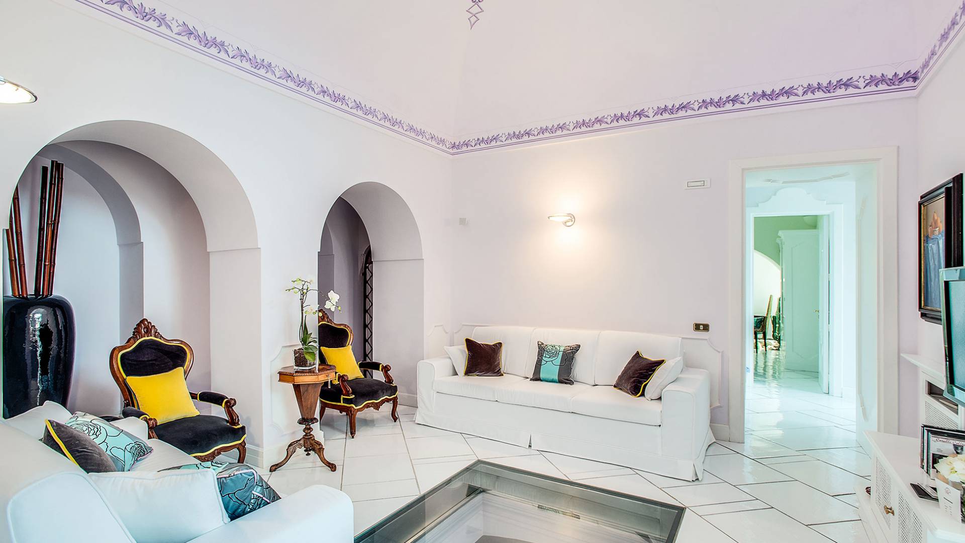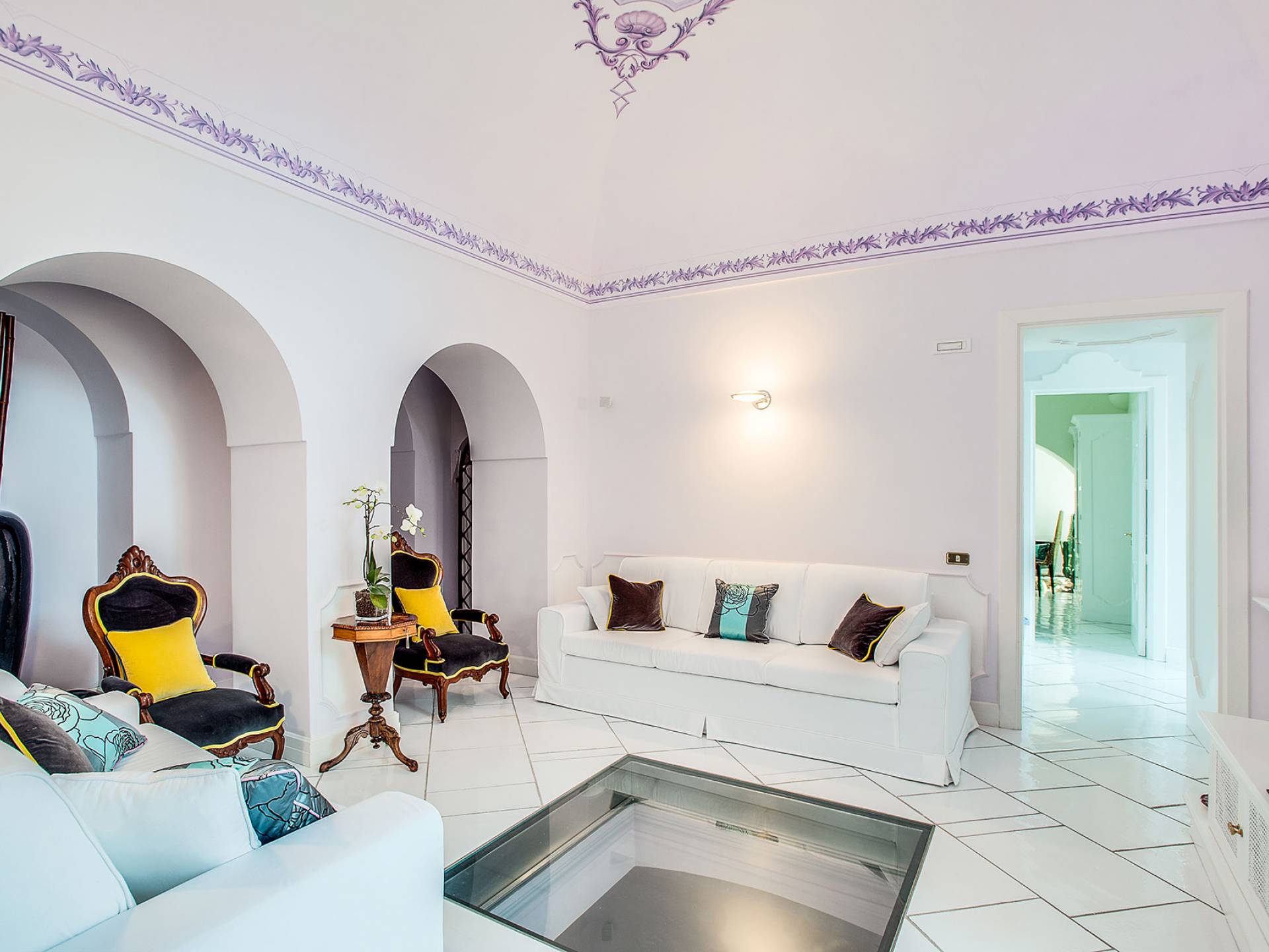 Η βίλα Baia Amalfi Coast είναι εξοπλισμένη με τέσσερις όμορφες master σουίτες, μια πλήρως επιπλωμένη επαγγελματική κουζίνα, δύο σαλόνια, ένα πανοραμικό roof garden, ένα κομψό σαλόνι με γκαζόν, ένα φωτεινό αίθριο και μια ρομαντική κλιματιζόμενη «συναισθηματική πισίνα ” με συστήματα χρωματοθεραπείας και αρωματοθεραπείας. Ένας συντριπτικός συνδυασμός πολυτέλειας και γοητείας που συνδέεται με τη φροντίδα που προσανατολίζεται στη λεπτομέρεια, κάνει αυτή τη βίλα ένα πραγματικό στολίδι εξοπλισμένη με όλα τα μοντέρνα, που βρίσκεται στο καλύτερο σημείο της ακτής.