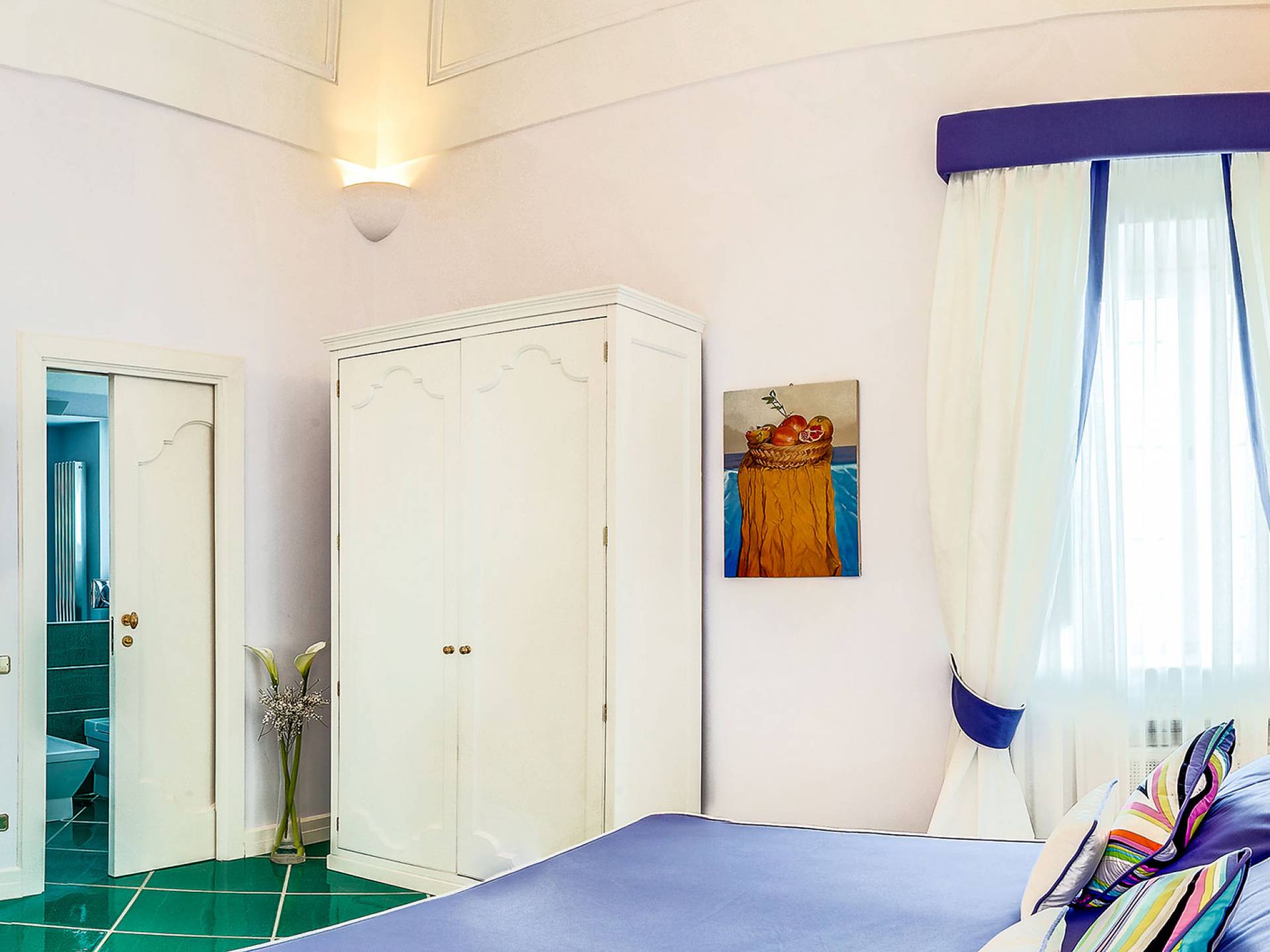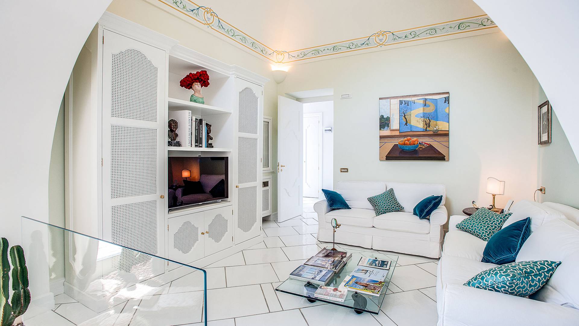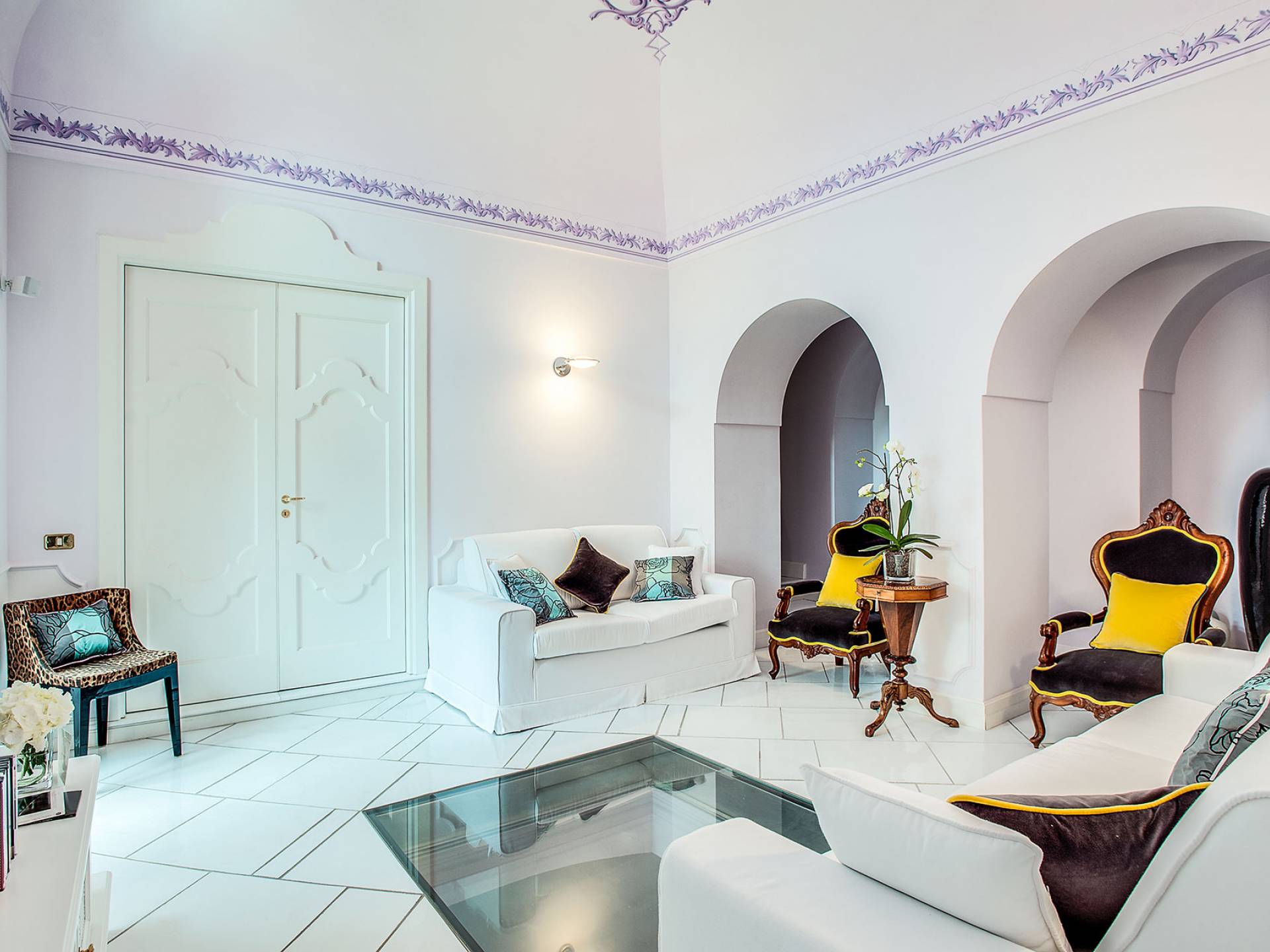 Η βίλα Baia Amalfi Coast είναι εξοπλισμένη με τέσσερις όμορφες master σουίτες, μια πλήρως επιπλωμένη επαγγελματική κουζίνα, δύο σαλόνια, ένα πανοραμικό roof garden, ένα κομψό σαλόνι με γκαζόν, ένα φωτεινό αίθριο και μια ρομαντική κλιματιζόμενη «συναισθηματική πισίνα ” με συστήματα χρωματοθεραπείας και αρωματοθεραπείας. Ένας συντριπτικός συνδυασμός πολυτέλειας και γοητείας που συνδέεται με τη φροντίδα που προσανατολίζεται στη λεπτομέρεια, κάνει αυτή τη βίλα ένα πραγματικό στολίδι εξοπλισμένη με όλα τα μοντέρνα, που βρίσκεται στο καλύτερο σημείο της ακτής.