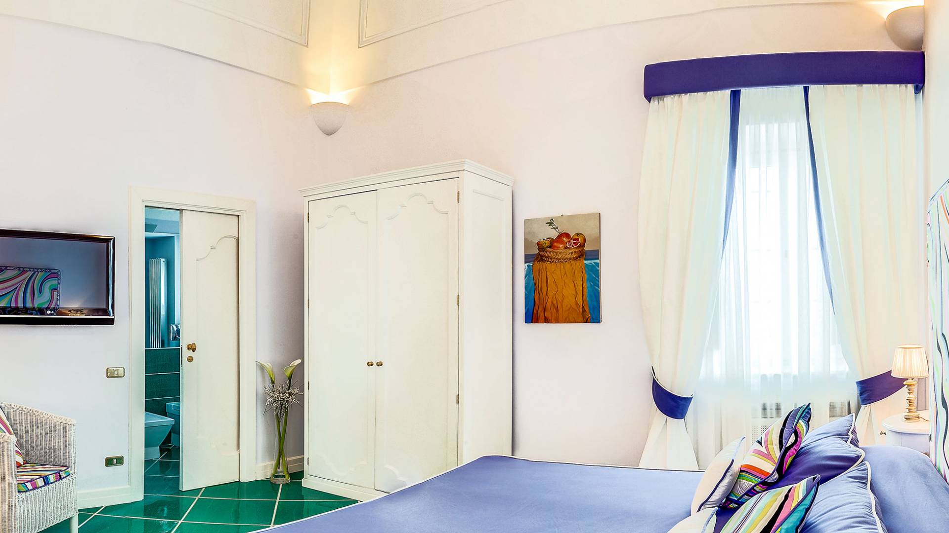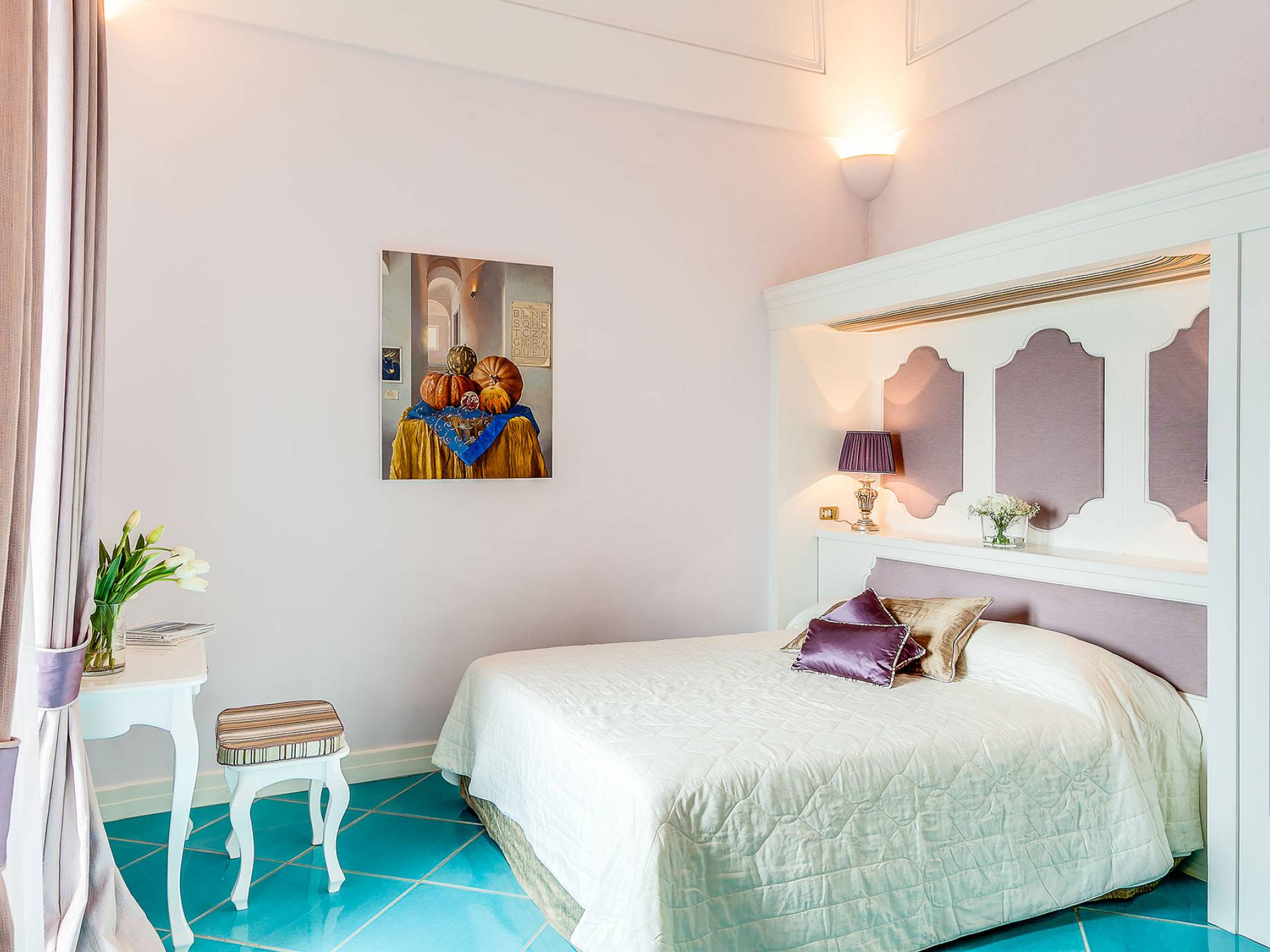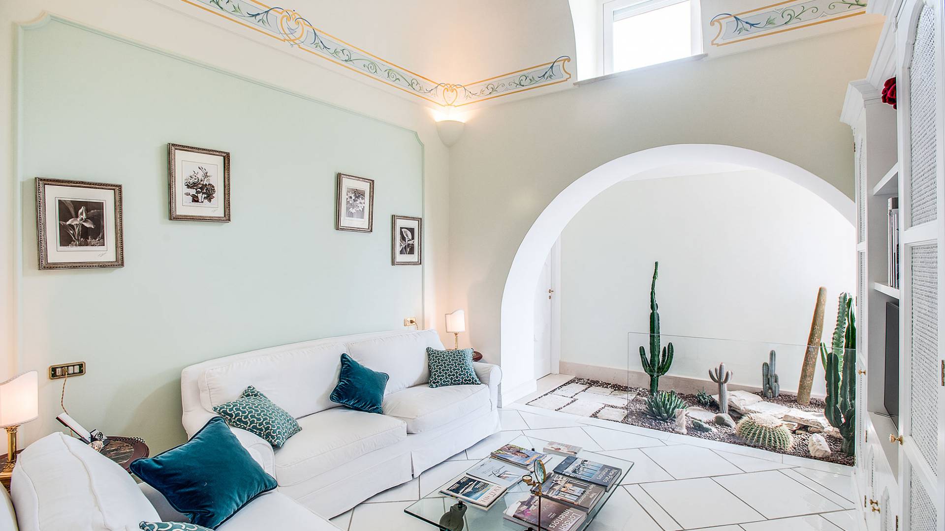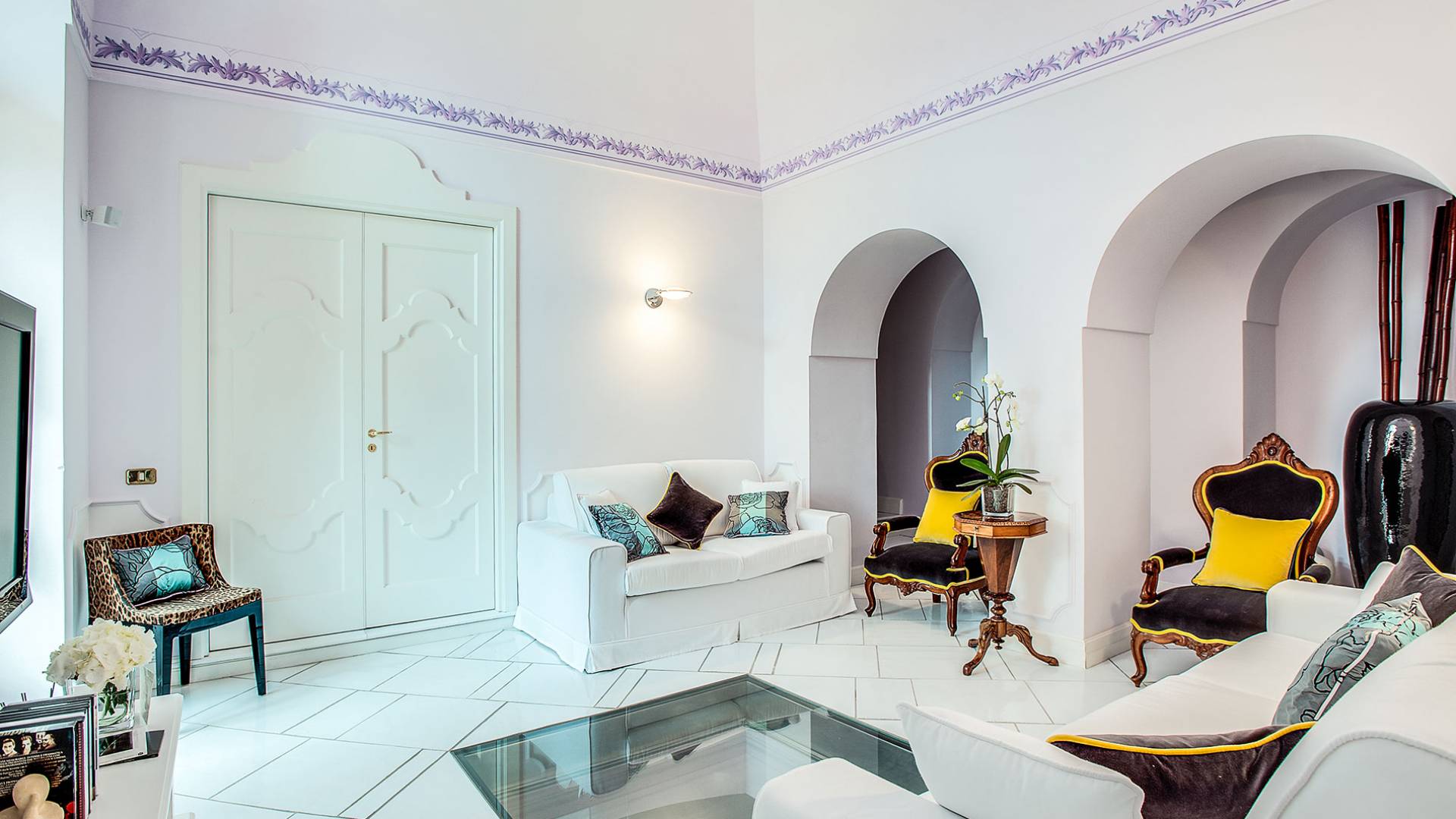 Η βίλα Baia Amalfi Coast είναι εξοπλισμένη με τέσσερις όμορφες master σουίτες, μια πλήρως επιπλωμένη επαγγελματική κουζίνα, δύο σαλόνια, ένα πανοραμικό roof garden, ένα κομψό σαλόνι με γκαζόν, ένα φωτεινό αίθριο και μια ρομαντική κλιματιζόμενη «συναισθηματική πισίνα ” με συστήματα χρωματοθεραπείας και αρωματοθεραπείας. Ένας συντριπτικός συνδυασμός πολυτέλειας και γοητείας που συνδέεται με τη φροντίδα που προσανατολίζεται στη λεπτομέρεια, κάνει αυτή τη βίλα ένα πραγματικό στολίδι εξοπλισμένη με όλα τα μοντέρνα, που βρίσκεται στο καλύτερο σημείο της ακτής.