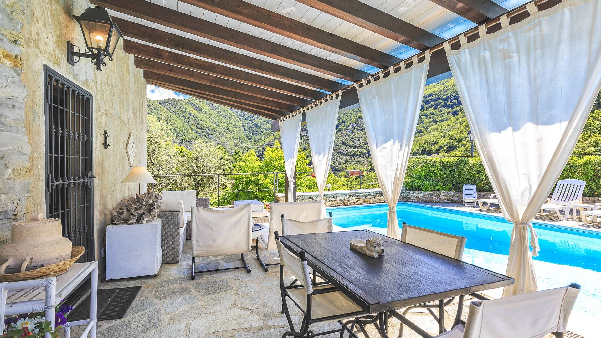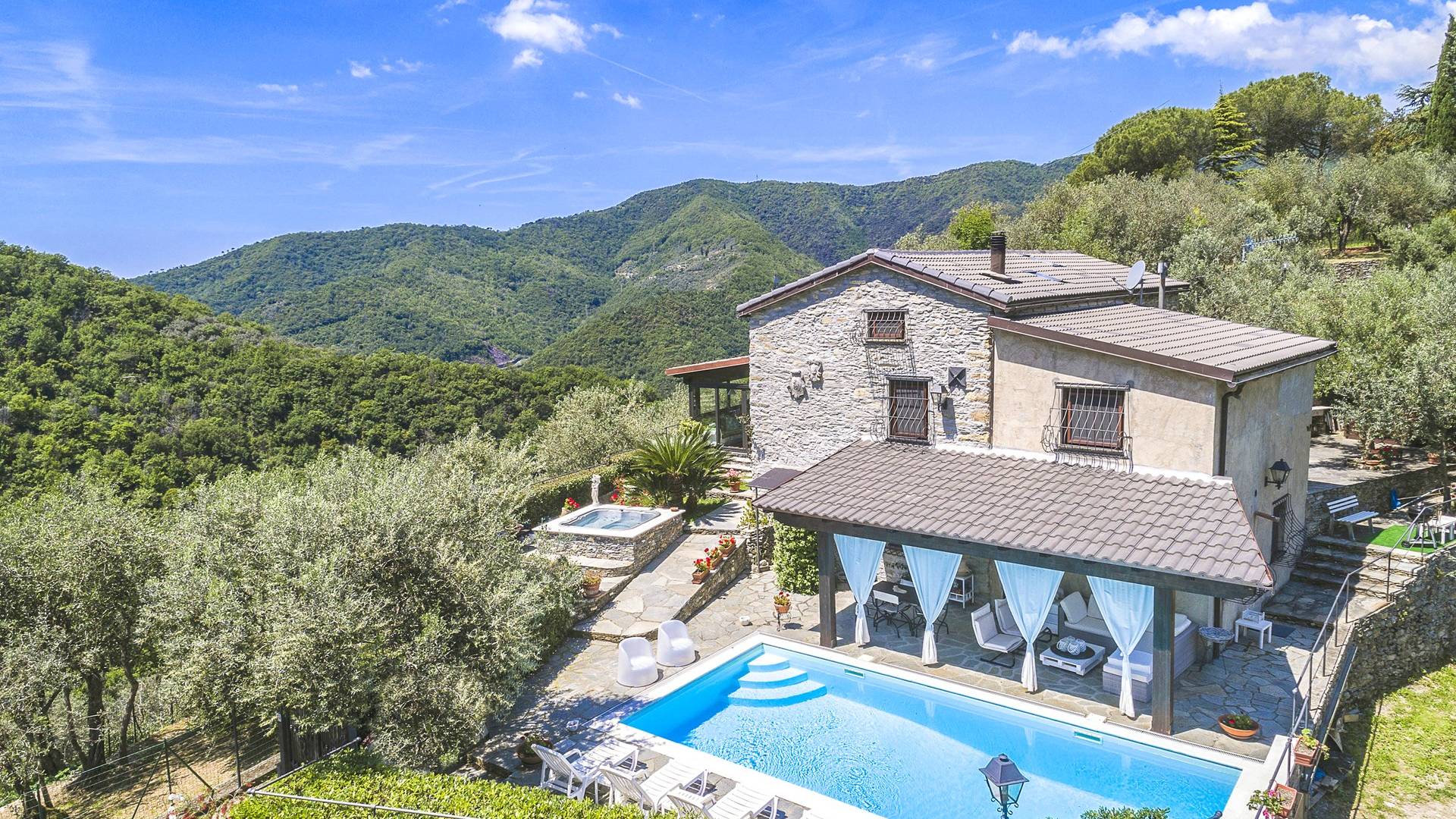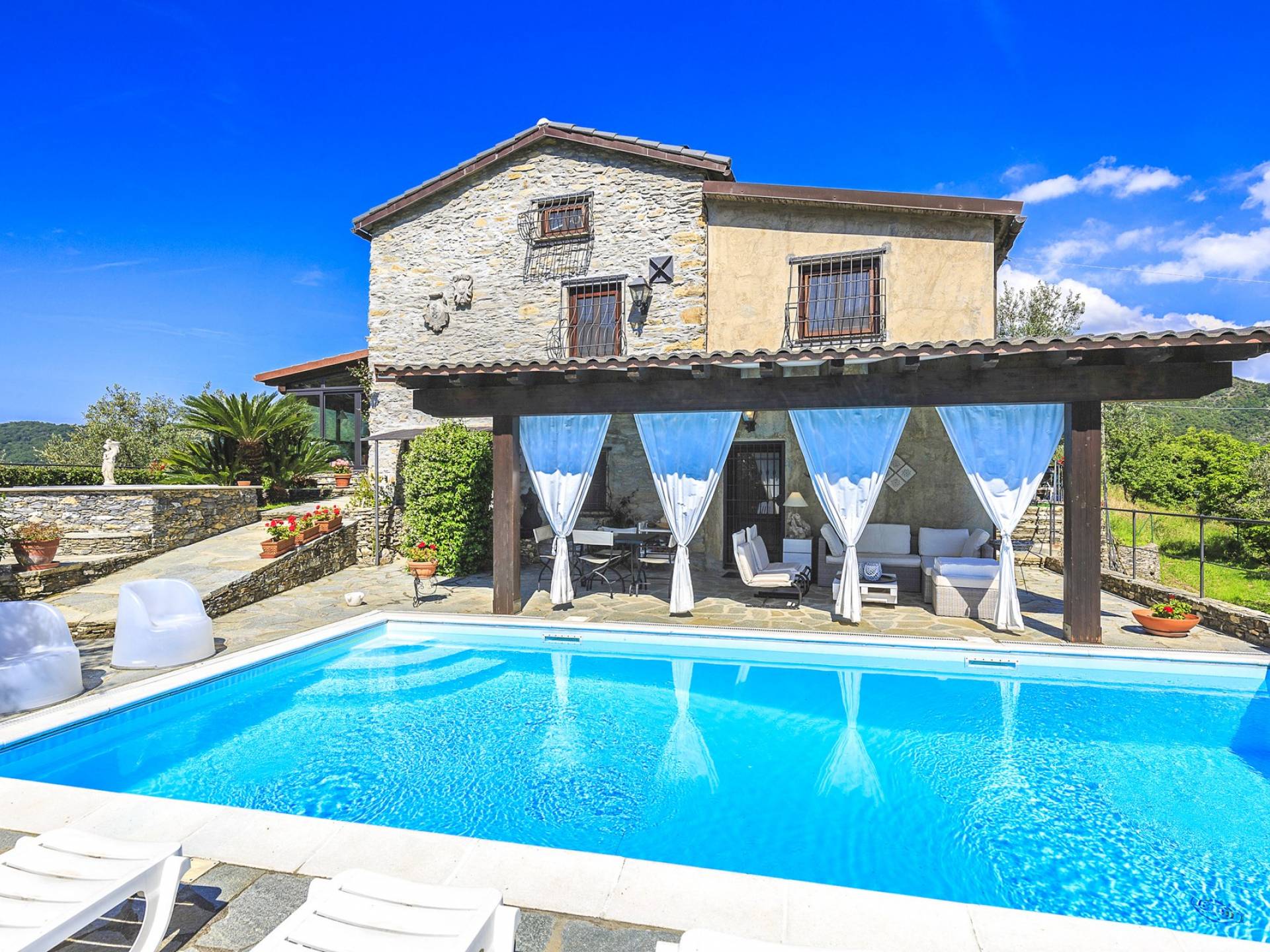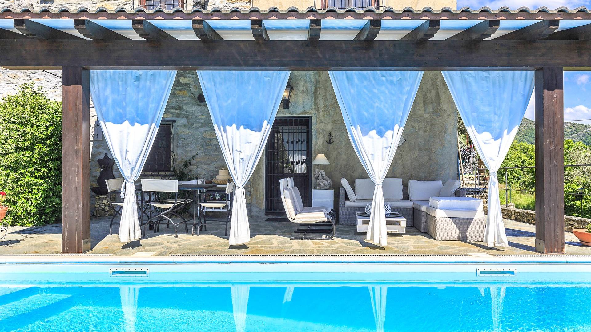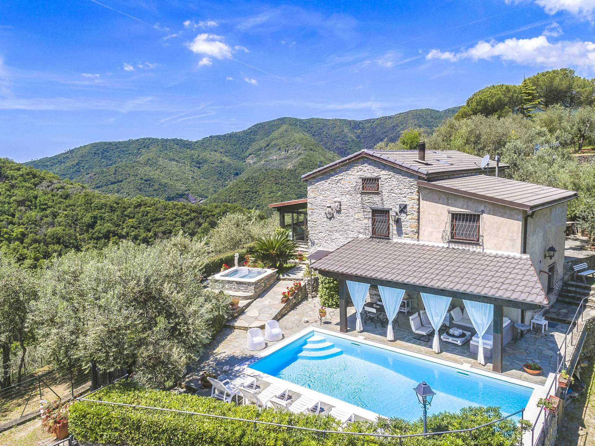 Αυτή η υπέροχη εξοχική κατοικία βρίσκεται σε έναν ιδιωτικό κήπο (1500 m²) που περιέχει ελιές και καστανιές. Υπάρχει μια ευρύχωρη βεράντα με ευχάριστη θέα στη γύρω εξοχή. Η μεγάλη πισίνα (4x8m) είναι ιδανική για να κάνετε μια βουτιά δροσιάς κατά τους ζεστούς καλοκαιρινούς μήνες και διαθέτει μια σκιερή βεράντα όπου μπορείτε να χαλαρώσετε και να χαλαρώσετε στις καρέκλες και τις ξαπλώστρες. Επιπλέον, υπάρχει ένα υπαίθριο τζακούζι για να χαλαρώσετε στο τέλος της ημέρας.