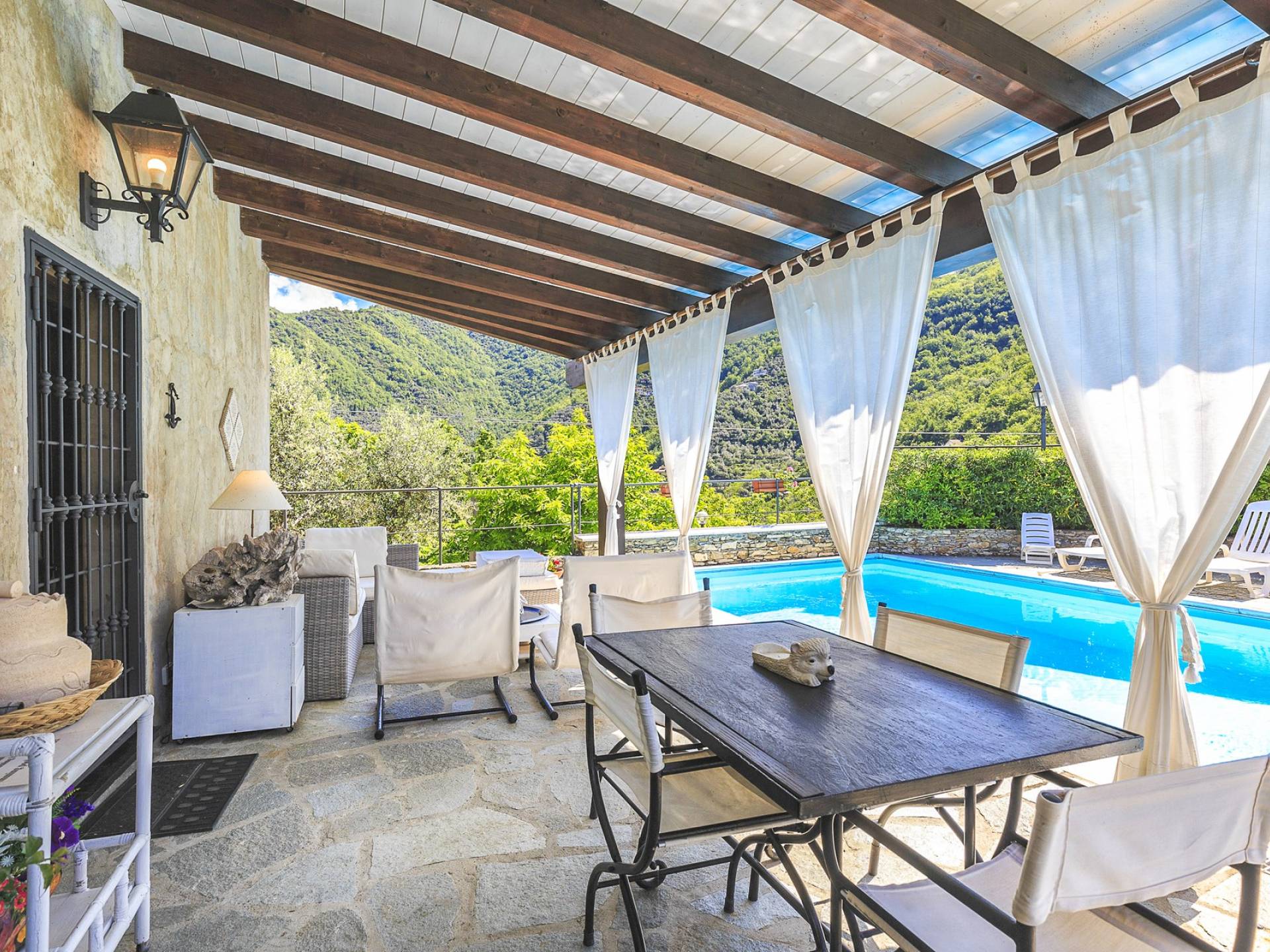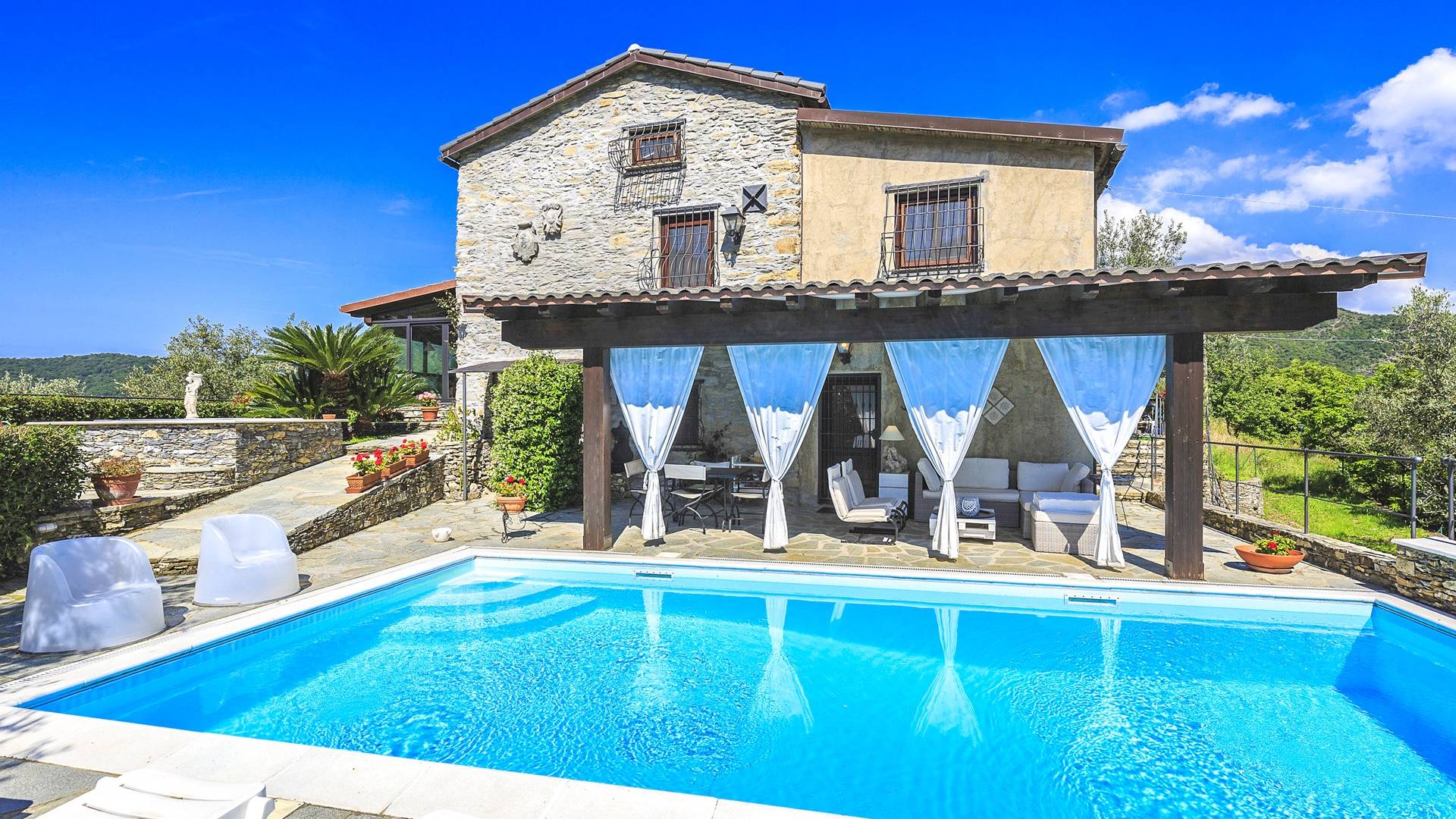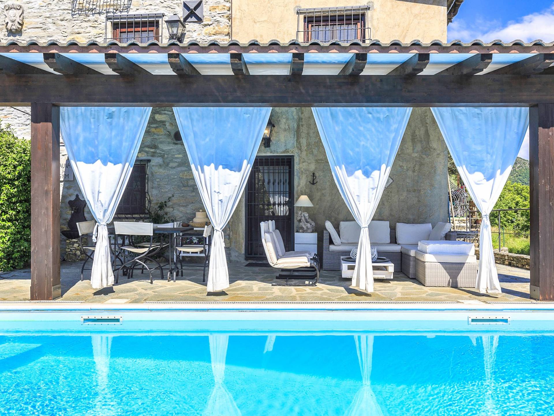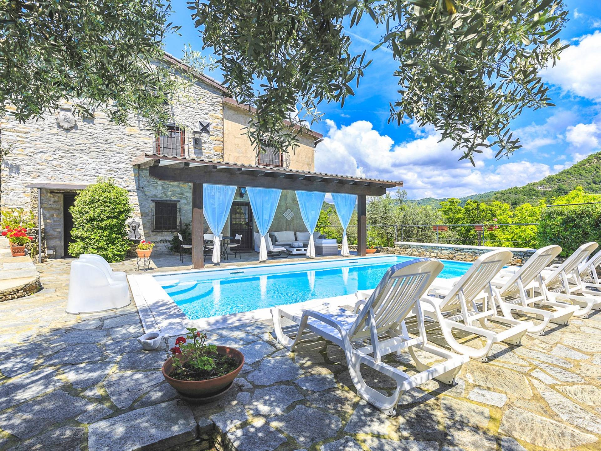Αυτή η υπέροχη εξοχική κατοικία βρίσκεται σε έναν ιδιωτικό κήπο (1500 m²) που περιέχει ελιές και καστανιές. Υπάρχει μια ευρύχωρη βεράντα με ευχάριστη θέα στη γύρω εξοχή. Η μεγάλη πισίνα (4x8m) είναι ιδανική για να κάνετε μια βουτιά δροσιάς κατά τους ζεστούς καλοκαιρινούς μήνες και διαθέτει μια σκιερή βεράντα όπου μπορείτε να χαλαρώσετε και να χαλαρώσετε στις καρέκλες και τις ξαπλώστρες. Επιπλέον, υπάρχει ένα υπαίθριο τζακούζι για να χαλαρώσετε στο τέλος της ημέρας.