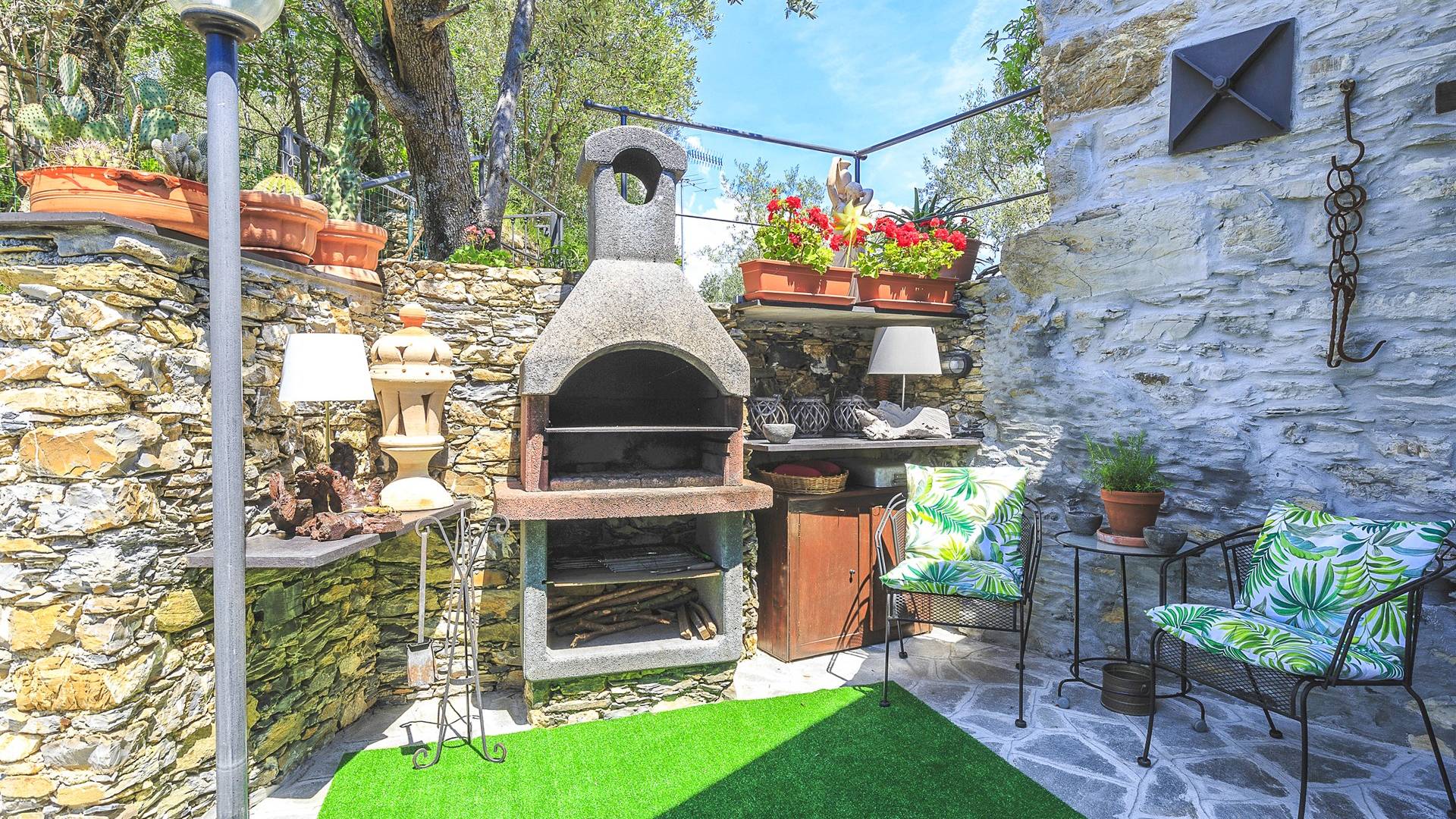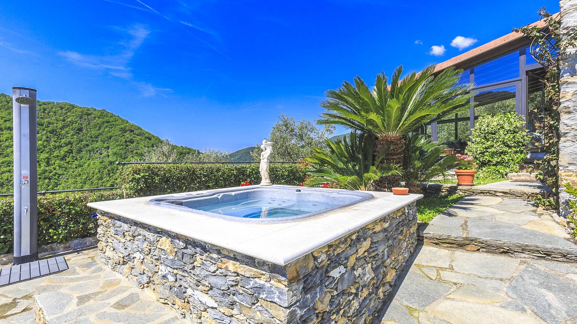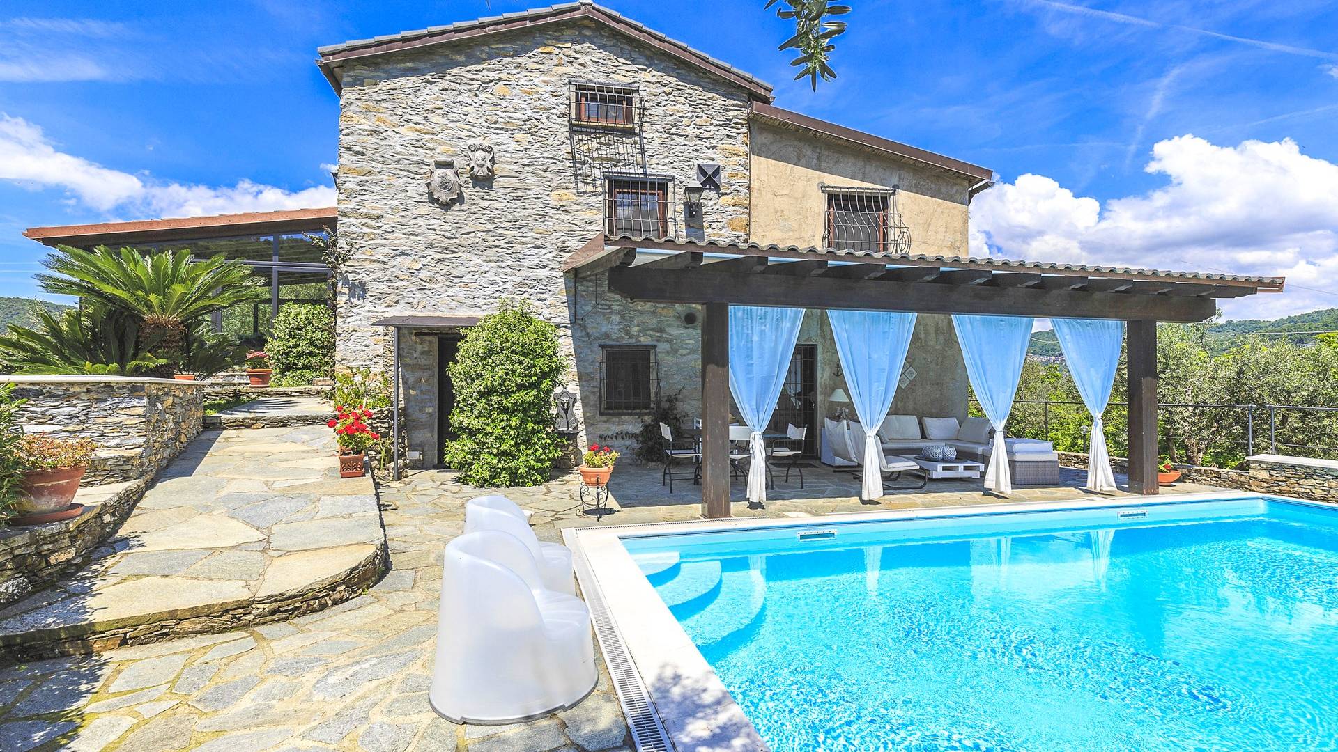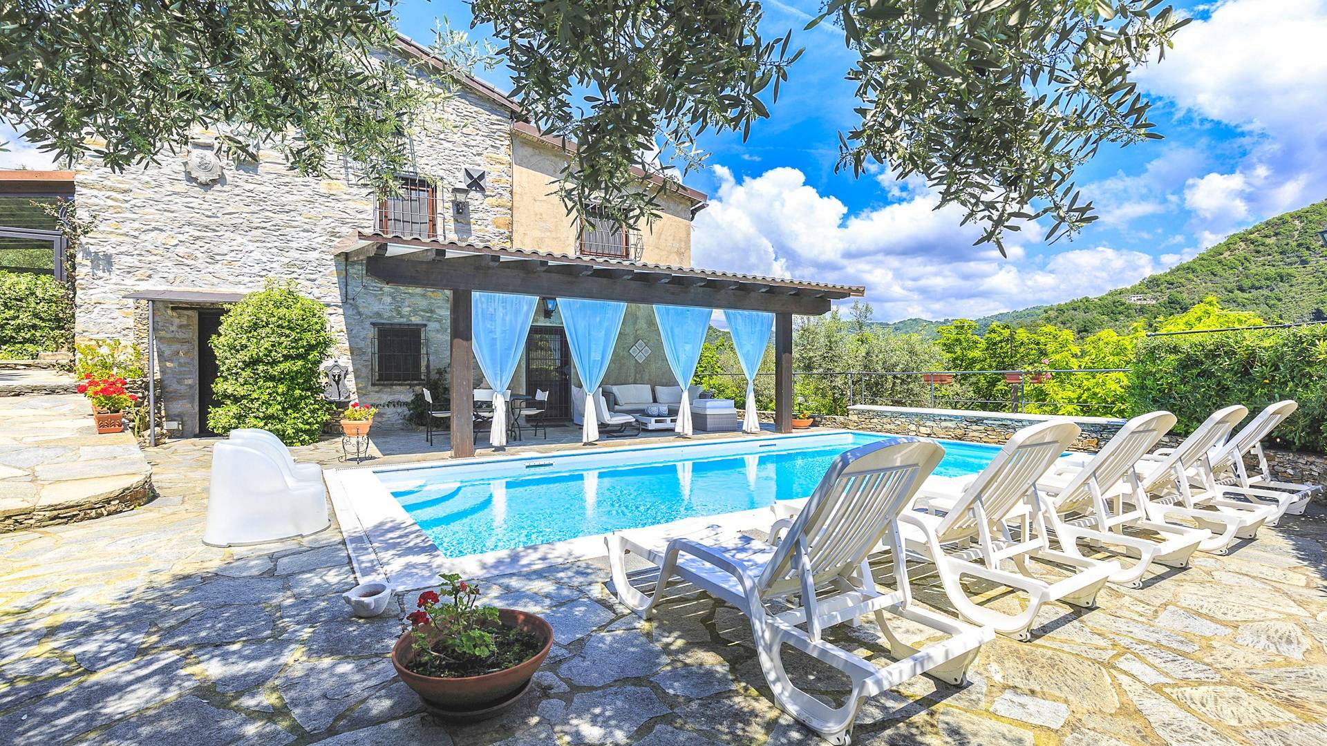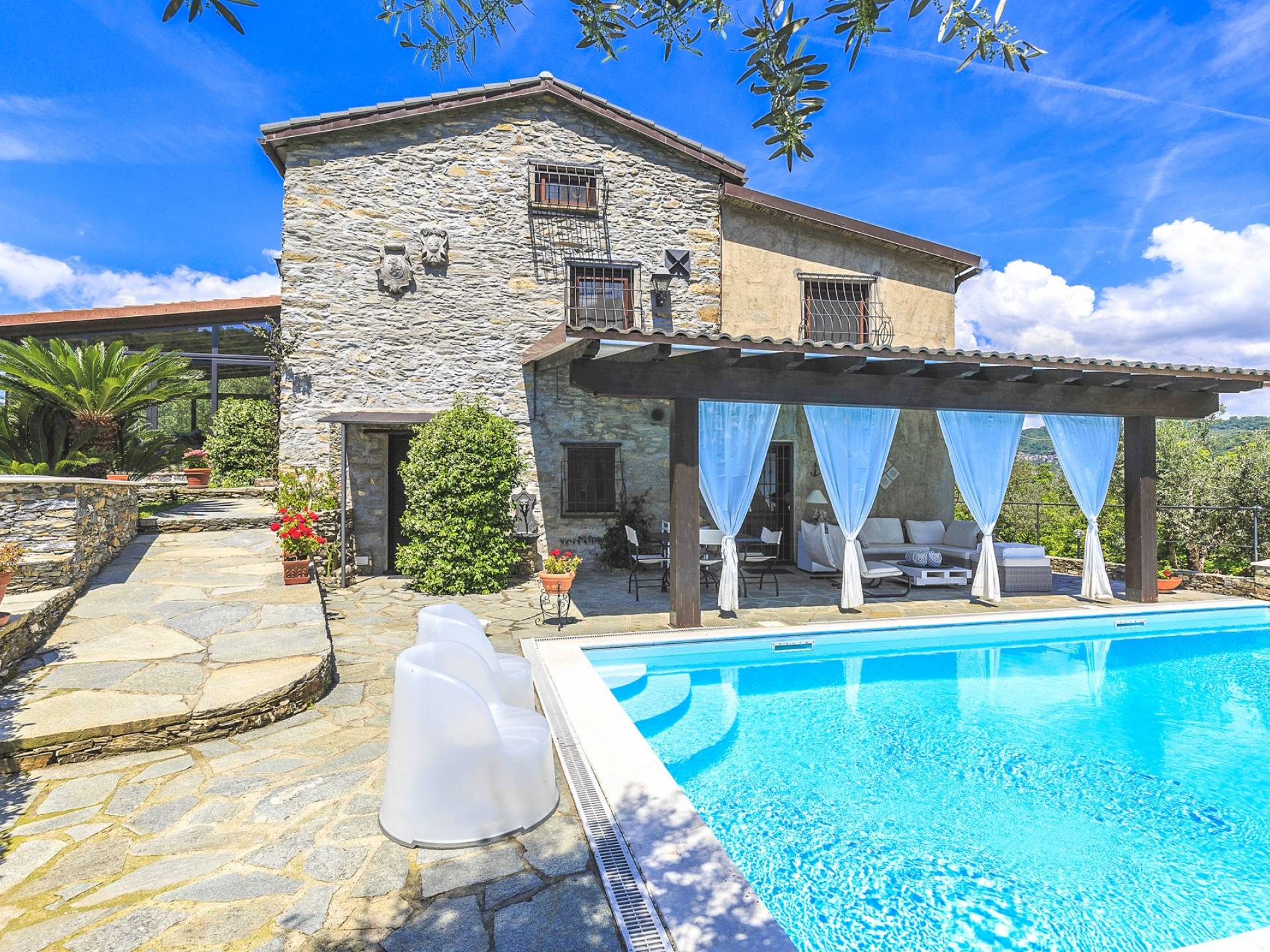 Αυτή η υπέροχη εξοχική κατοικία βρίσκεται σε έναν ιδιωτικό κήπο (1500 m²) που περιέχει ελιές και καστανιές. Υπάρχει μια ευρύχωρη βεράντα με ευχάριστη θέα στη γύρω εξοχή. Η μεγάλη πισίνα (4x8m) είναι ιδανική για να κάνετε μια βουτιά δροσιάς κατά τους ζεστούς καλοκαιρινούς μήνες και διαθέτει μια σκιερή βεράντα όπου μπορείτε να χαλαρώσετε και να χαλαρώσετε στις καρέκλες και τις ξαπλώστρες. Επιπλέον, υπάρχει ένα υπαίθριο τζακούζι για να χαλαρώσετε στο τέλος της ημέρας.