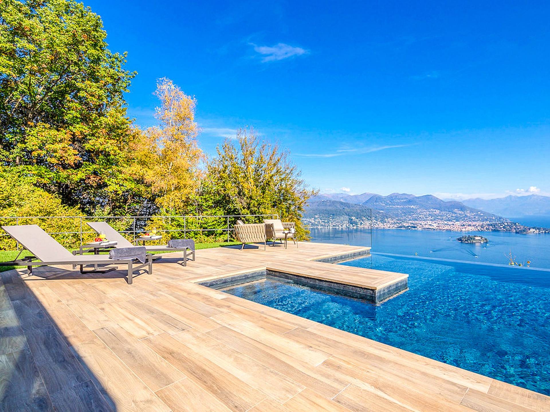 Μόνο σε έναν ιδιωτικό αδιέξοδο δρόμο, η βίλα περιβάλλεται από έναν μεγάλο κήπο (5000 m²) και διαθέτει δέντρα (3000 m²) προσφέροντας την πιο αποκλειστική ιδιωτικότητα και ηρεμία. Η πισίνα υπερχείλισης με θέα στη λίμνη και τα νησιά Borromean θα σας εντυπωσιάσει κατά τη διάρκεια της διαμονής σας: κοιτάξτε, ονειρευτείτε και απελευθερώστε τον εαυτό σας σε μια εμπειρία Villa Petra γεμάτη γοητεία και πολυτελή άνεση! Οι πολυτελείς διακοπές Villa Petra βρίσκεται στο Someraro, ένα μικρό χωριό πάνω από τη Stresa, με μερικά εξαιρετικά εστιατόρια κοντά. Το Stresa (3 χλμ.) Είναι η πιο διάσημη πόλη δίπλα στη λίμνη στη λίμνη Maggiore με τα στενά δρομάκια της με καφέ, εστιατόρια και μικρές μπουτίκ. Υπάρχει ένας υπέροχος παραλιακός πεζόδρομος και ένας σταθμός πορθμείων από όπου μπορείτε να μεταβείτε σε οποιοδήποτε πλοίο για να επισκεφθείτε τα νησιά Borromeo και να εξερευνήσετε άλλα χωριά και θαύματα της λίμνης Maggiore. Ο σιδηροδρομικός σταθμός της Stresa σας συνδέει εύκολα με το Μιλάνο, όπου μπορείτε να ψωνίσετε, να επισκεφθείτε τα αξιοθέατα ή απλά να πιείτε έναν καφέ και να παρακολουθήσετε τον κόσμο να περνά στην περίφημη Piazza del Duomo