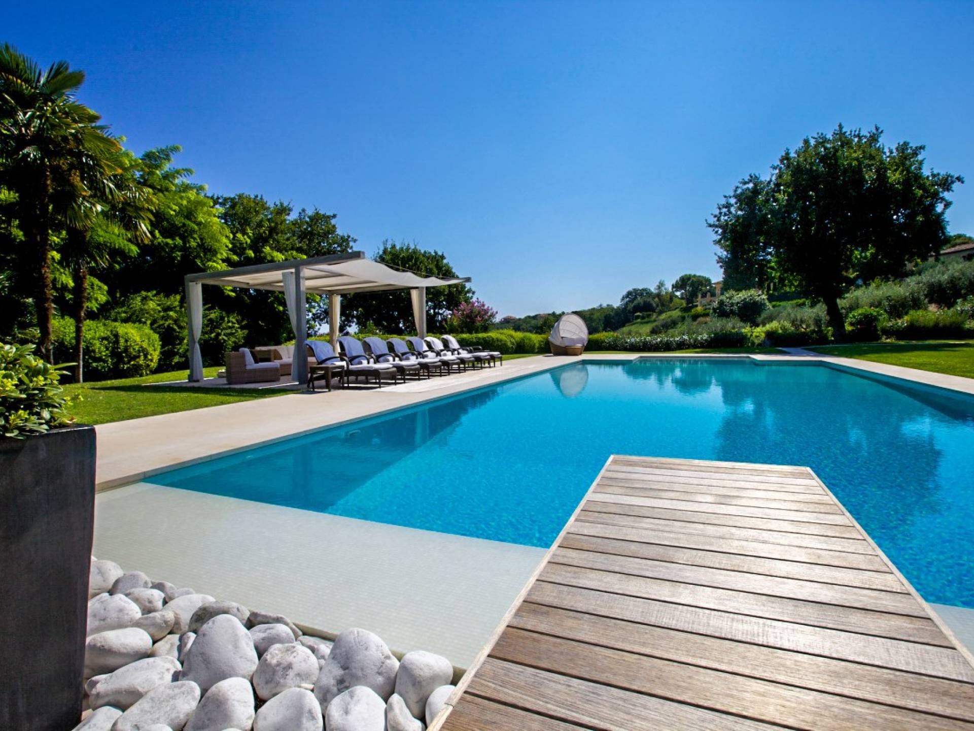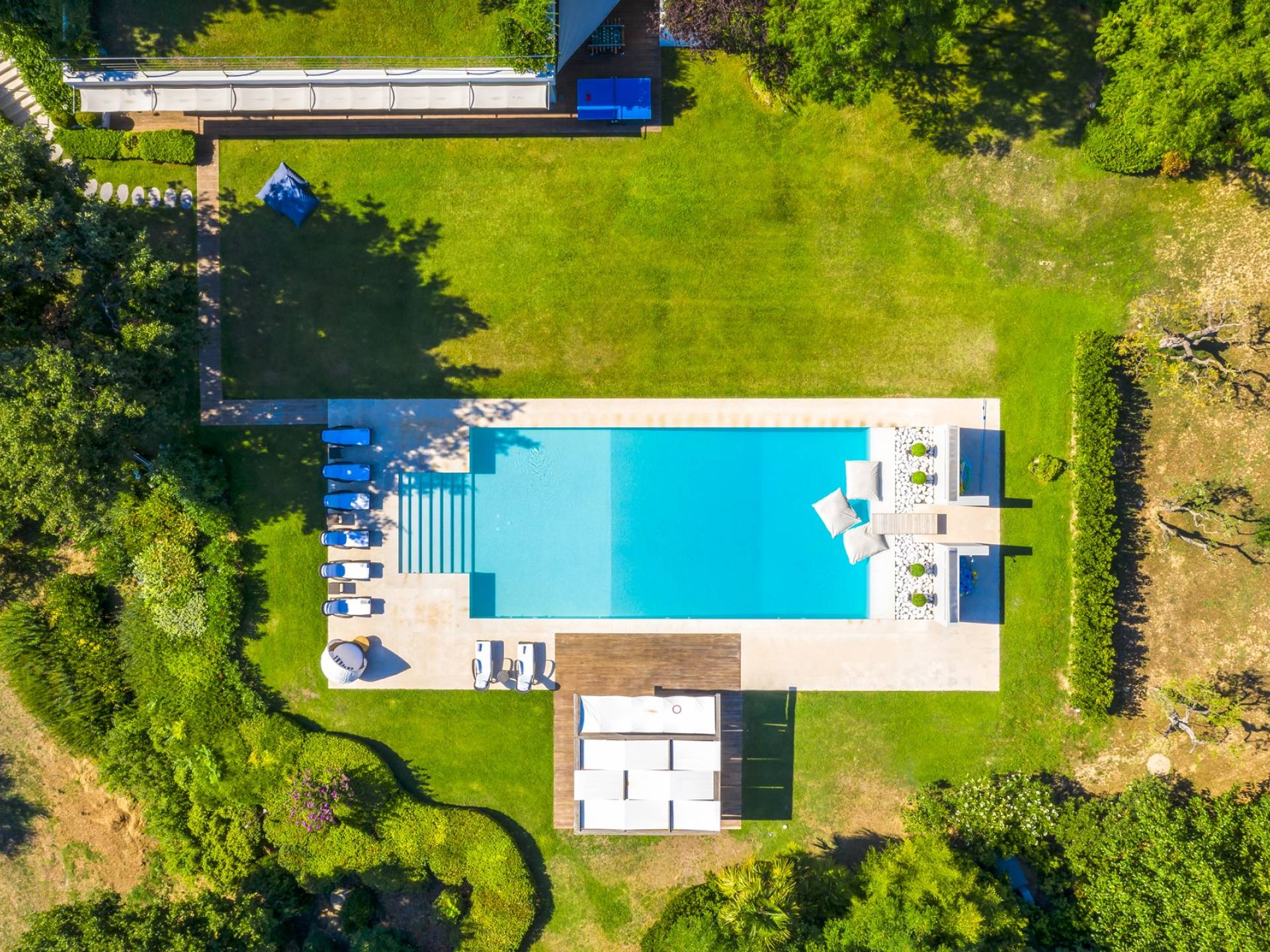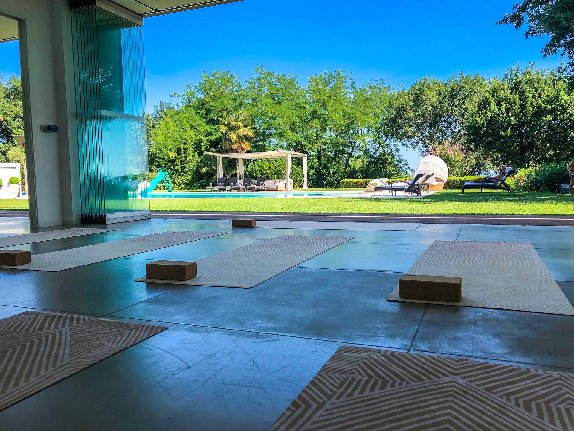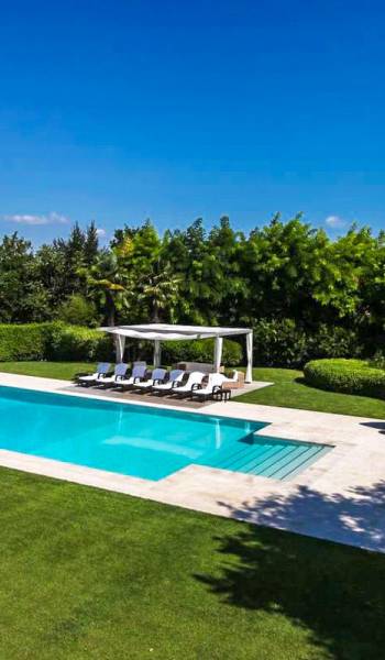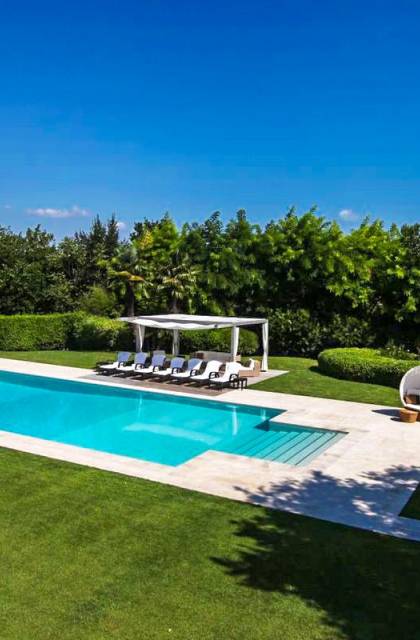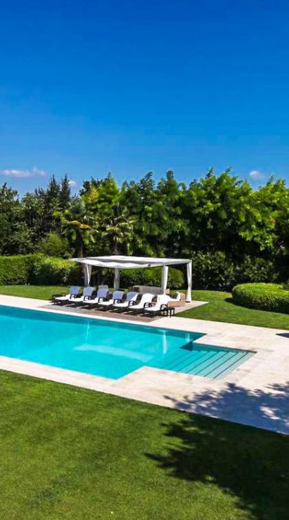 Η πισίνα στο κεντρικό κτήριο μπορεί να είναι ελαφρώς θερμαινόμενη και έχει ένα άκρο υπερχείλισης, ενώ η πισίνα στη δευτερεύουσα βίλα είναι κανονική.