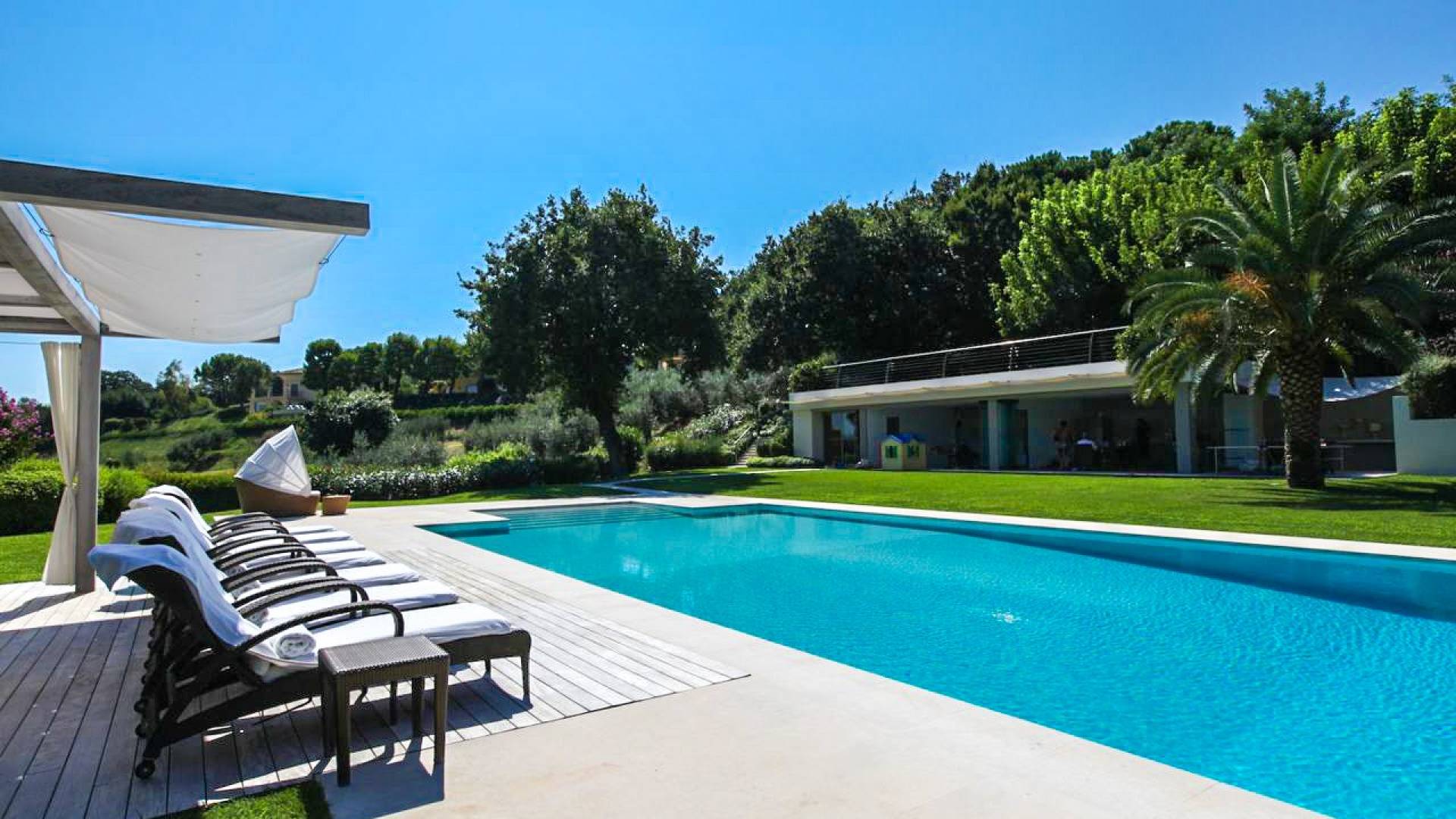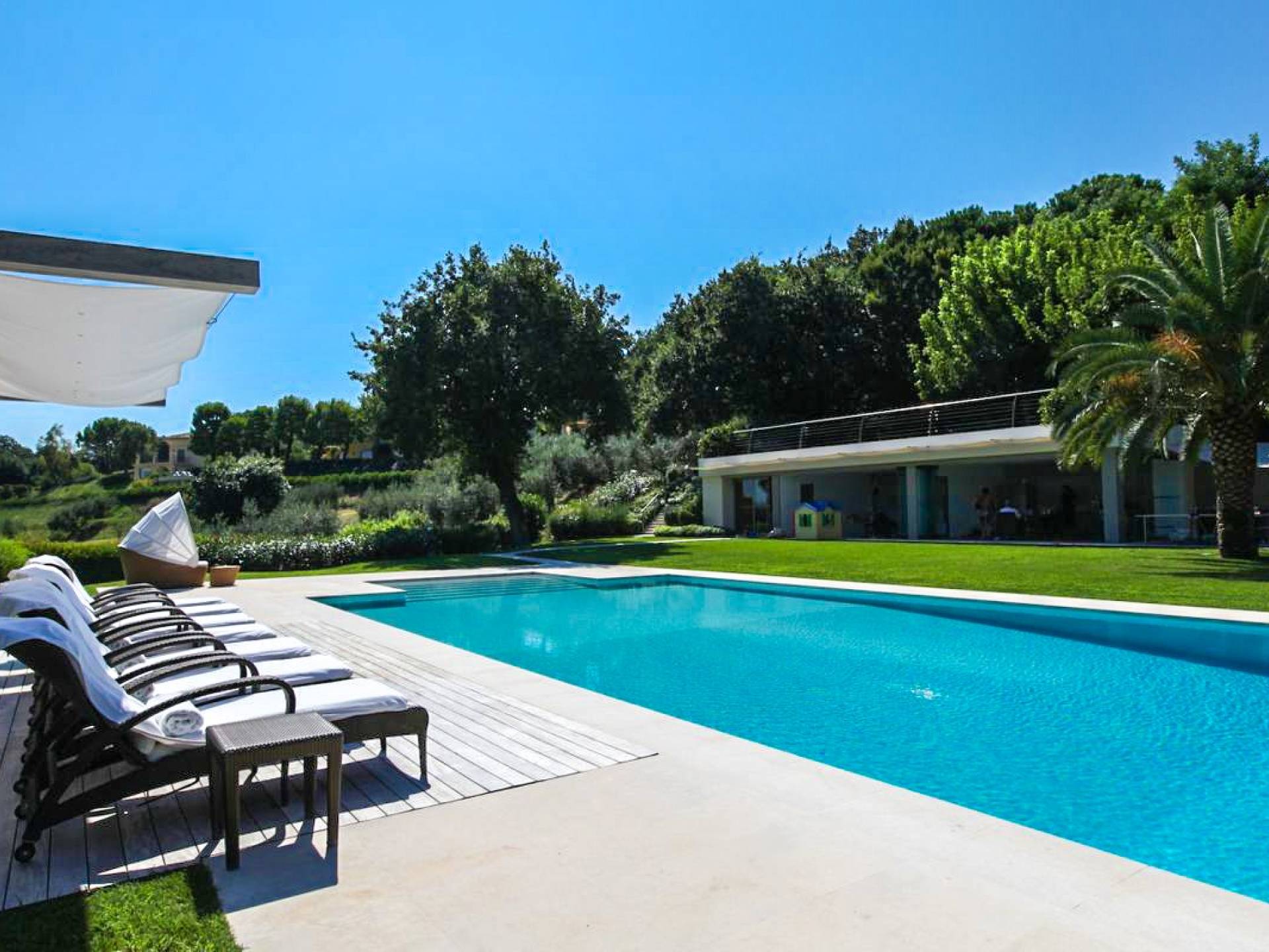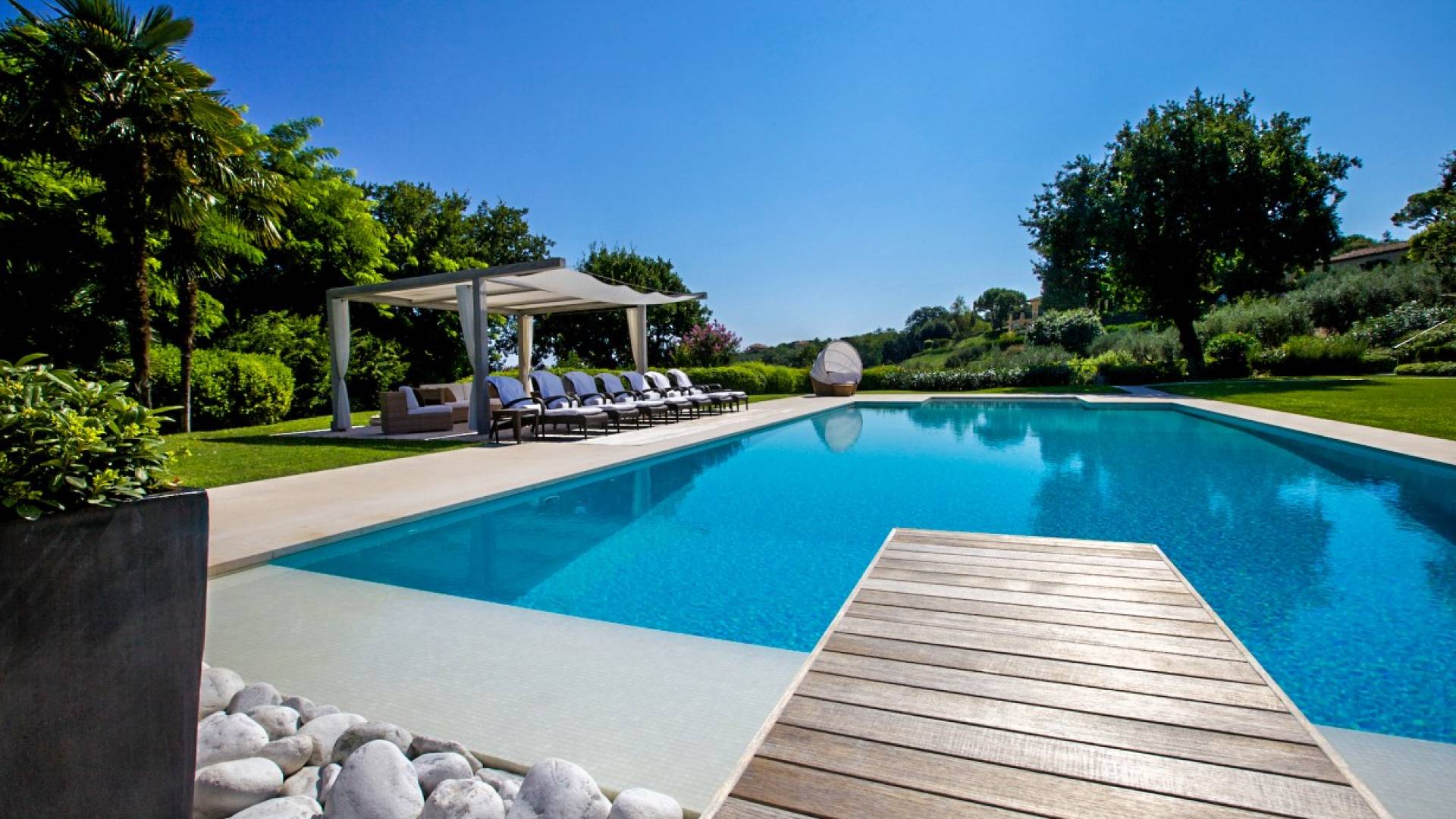 Η πισίνα στο κεντρικό κτήριο μπορεί να είναι ελαφρώς θερμαινόμενη και έχει ένα άκρο υπερχείλισης, ενώ η πισίνα στη δευτερεύουσα βίλα είναι κανονική.