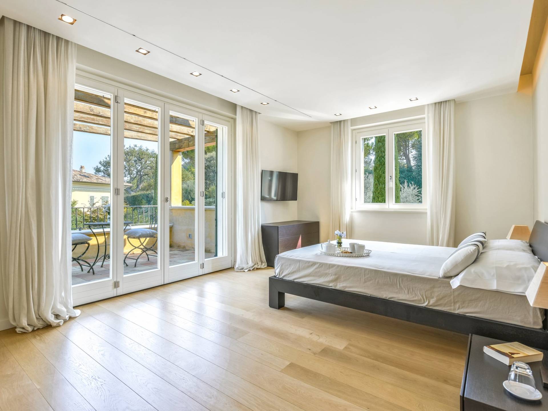 Το Villa Cantico Le Marche προσφέρει συνολικά δέκα υπνοδωμάτια, διακοσμημένα σε μοντέρνο στιλ με χρωματιστούς τοίχους σε απαλές αποχρώσεις, μοντέρνα υφάσματα και έπιπλα κατά παραγγελία από ντόπιους τεχνίτες Marchigiani (από το le Marche). Το συγκρότημα μπορεί να φιλοξενήσει έως και είκοσι επισκέπτες, εκ των οποίων δώδεκα σε έξι υπνοδωμάτια στο κεντρικό κτίριο και οκτώ, σε τέσσερα υπνοδωμάτια, στη δευτερεύουσα βίλα, πάνω από τρία εκτάρια ιδιωτικής έκτασης. Ο σχεδιασμός του σπιτιού, προσεγγισμένος με έρευνα στο ιστορικό πλαίσιο, έχει ως αποτέλεσμα ένα μοντέρνο στυλ με φυσική πέτρα, γυαλισμένο κομψό σκυρόδεμα και εξαρτήματα από βουρτσισμένο χάλυβα. Μοντέρνο αλλά πολύ άνετο, αυτό είναι ένα σύγχρονο και κομψό καταφύγιο γεμάτο φως και μια φιλόξενη ατμόσφαιρα.