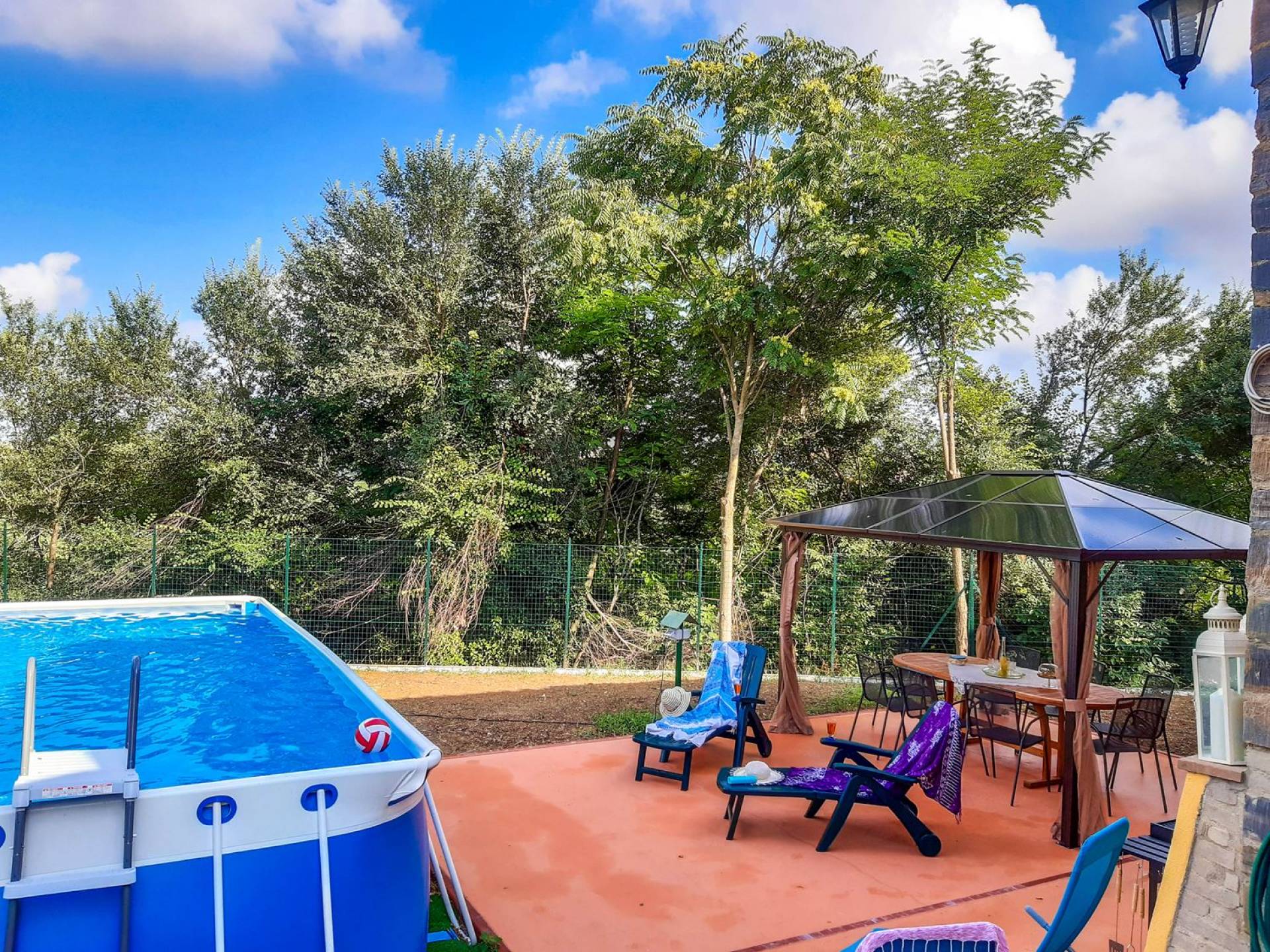 Έξω υπάρχει κήπος με πισίνα, ξαπλώστρες και ξαπλώστρες. ένα κιόσκι με ωραίο τραπέζι για 8 άτομα και χώρο μπάρμπεκιου. Το Villa Eva είναι για όσους θέλουν μια διαμονή χαλάρωσης, άνεσης και ηρεμίας και λίγα χιλιόμετρα από την πόλη.