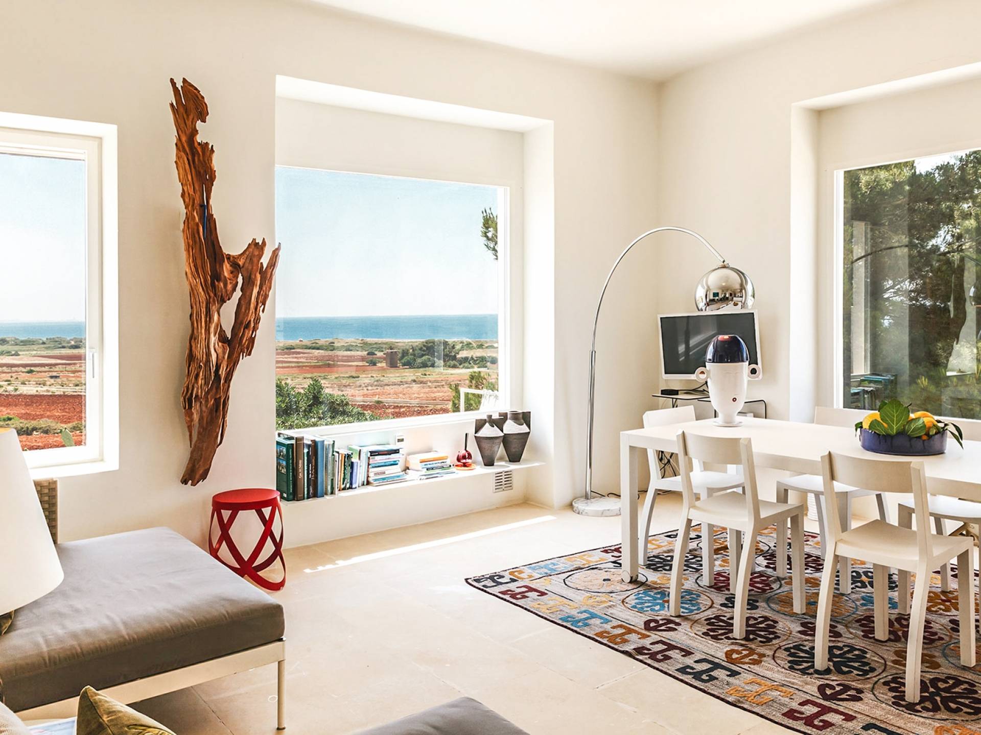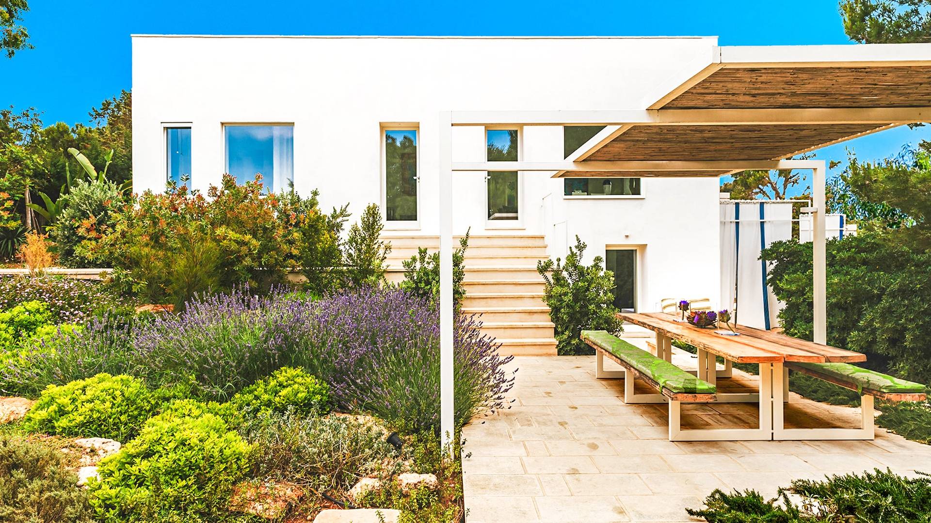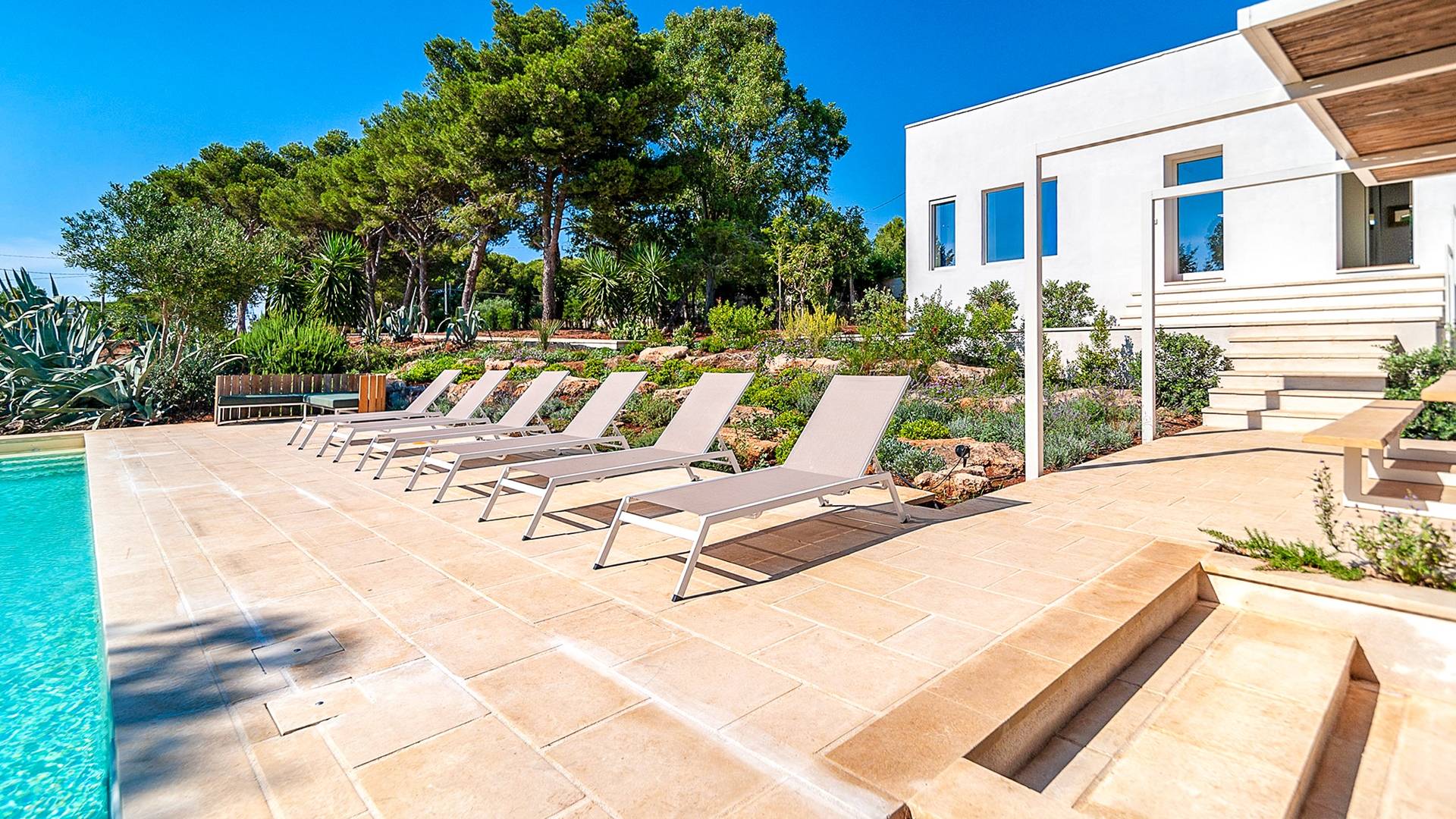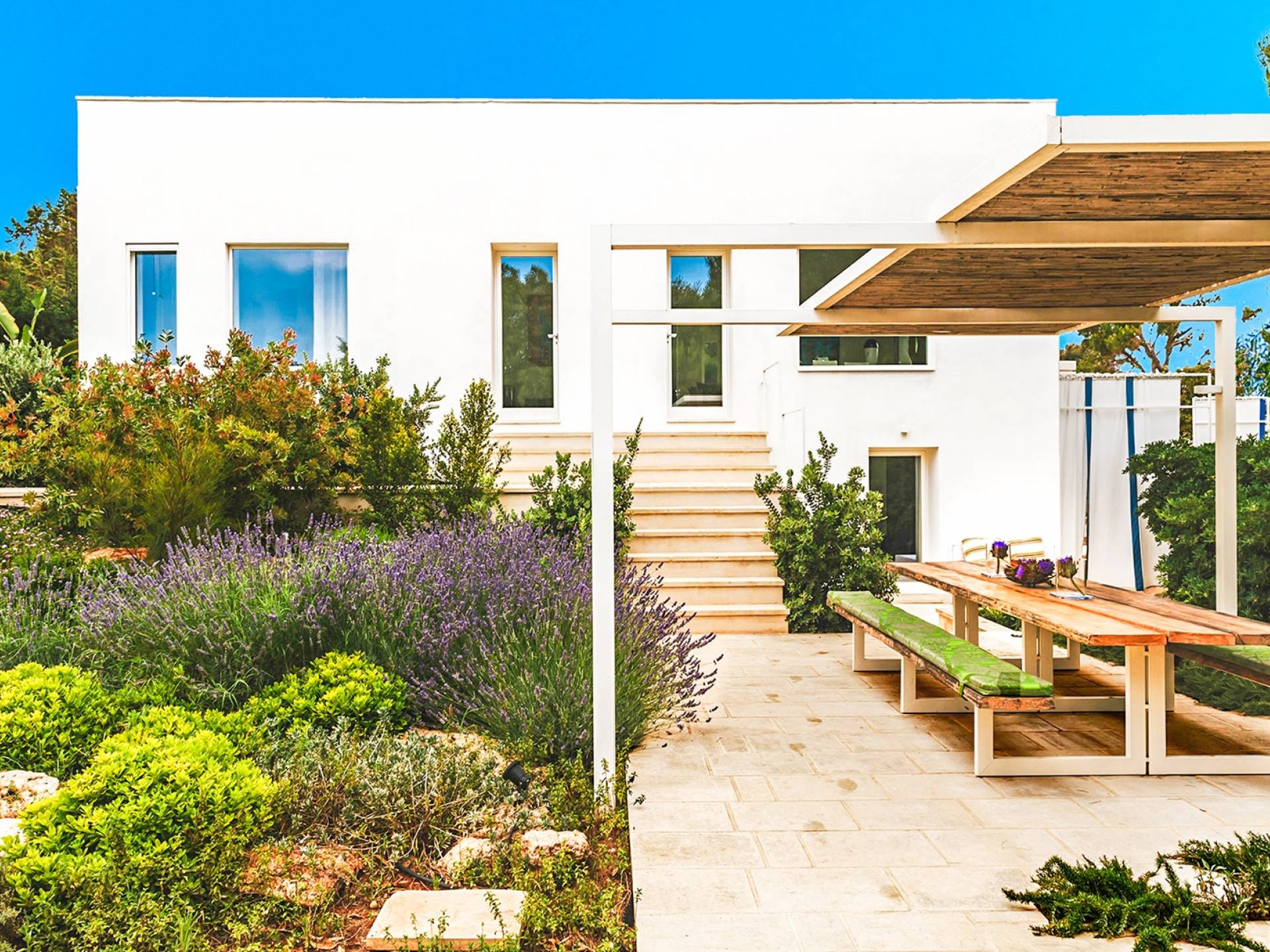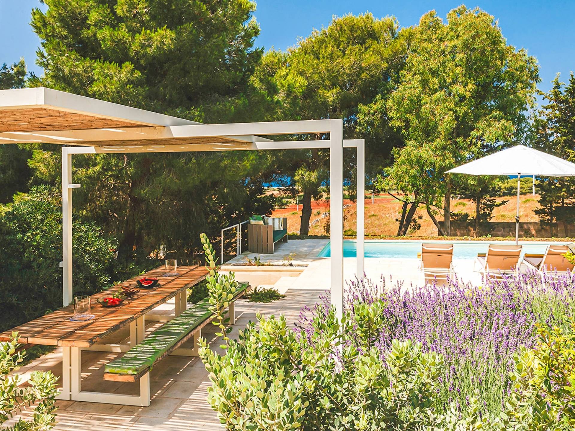 Οι λευκοί τοίχοι του σπιτιού και η χρήση μαρμάρου σχεδόν παντού, θα δώσουν μια μοναδική γαλήνη στις μέρες σας. Η δομή μπορεί να φιλοξενήσει έως και έξι επισκέπτες στα τρία υπνοδωμάτια, αλλά στους εξωτερικούς χώρους οι διακοπές σας θα εμπλουτιστούν με ευχάριστες εκπλήξεις. Εκτός από τον υπέροχο ιδιωτικό κήπο, στην πραγματικότητα, θα έχετε μια πισίνα 14 μέτρων σε απόσταση αναπνοής από τη θάλασσα. Επίσης έξω υπάρχουν χώροι για ηλιοθεραπεία, σκιεροί χώροι χαλάρωσης, καθώς και μια μεγάλη τραπεζαρία για 14 άτομα εξοπλισμένη με τραπέζια, καρέκλες, καναπέδες και μπάρμπεκιου.