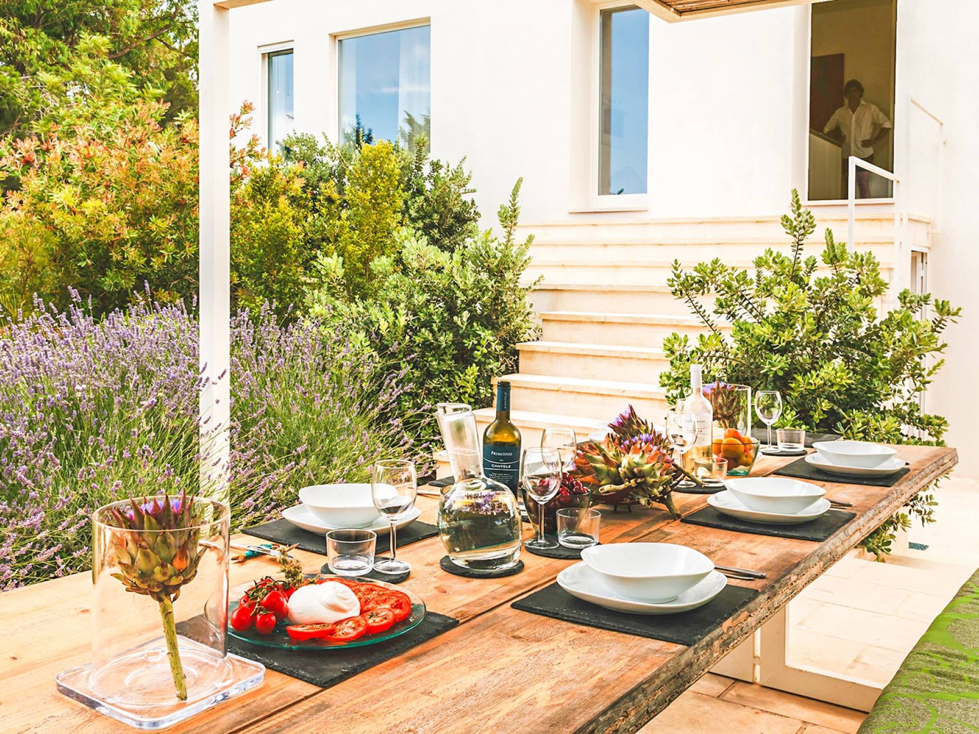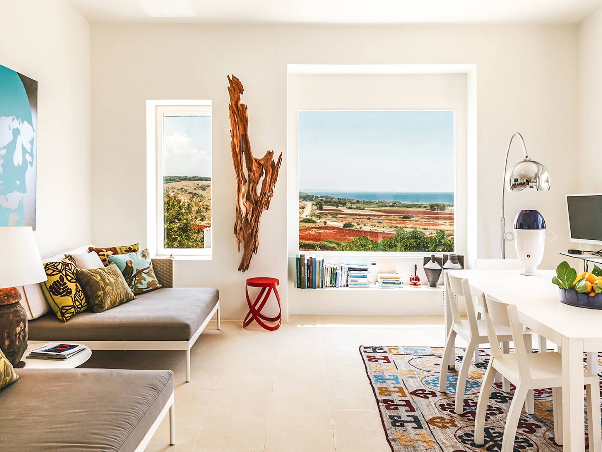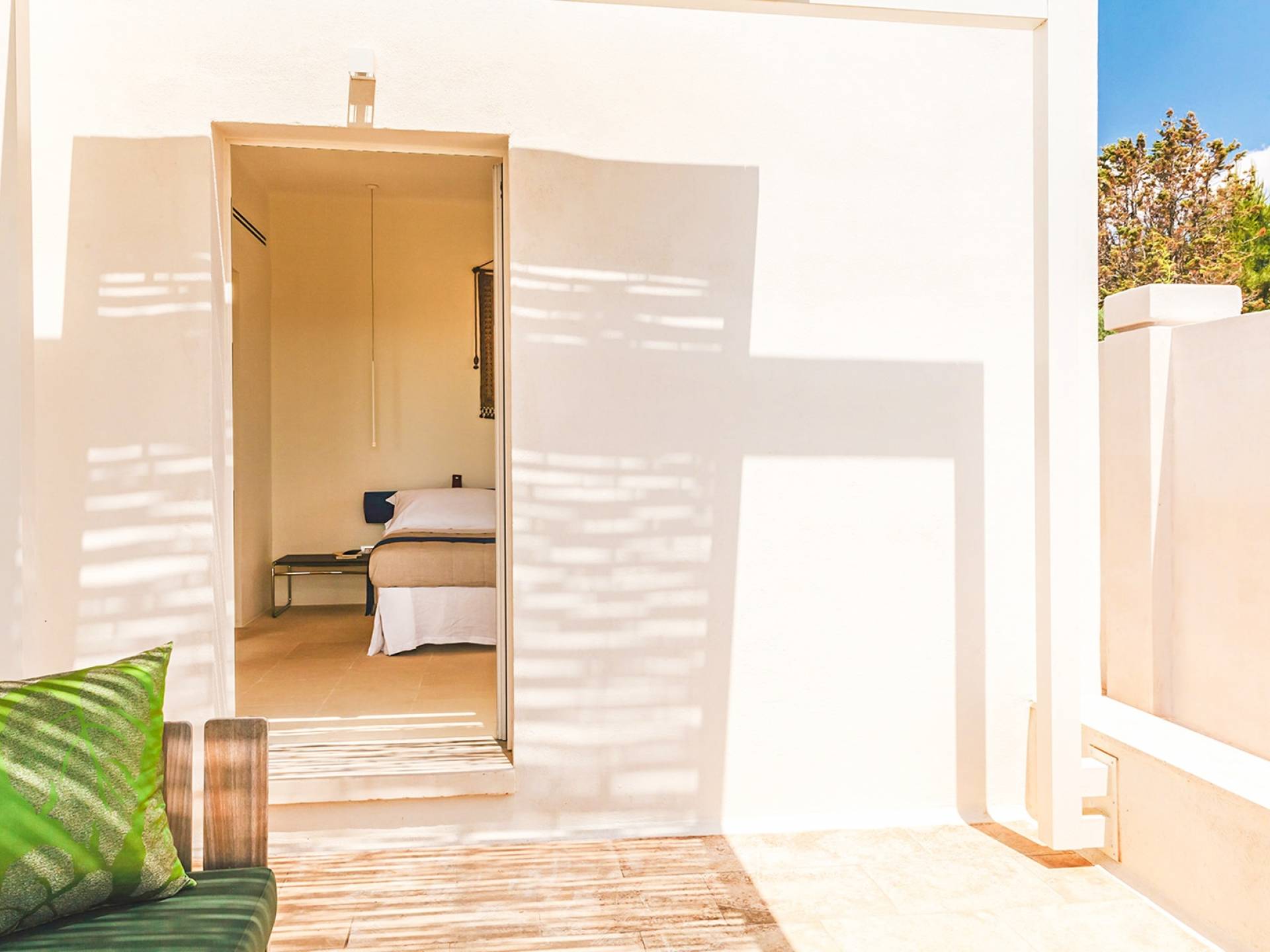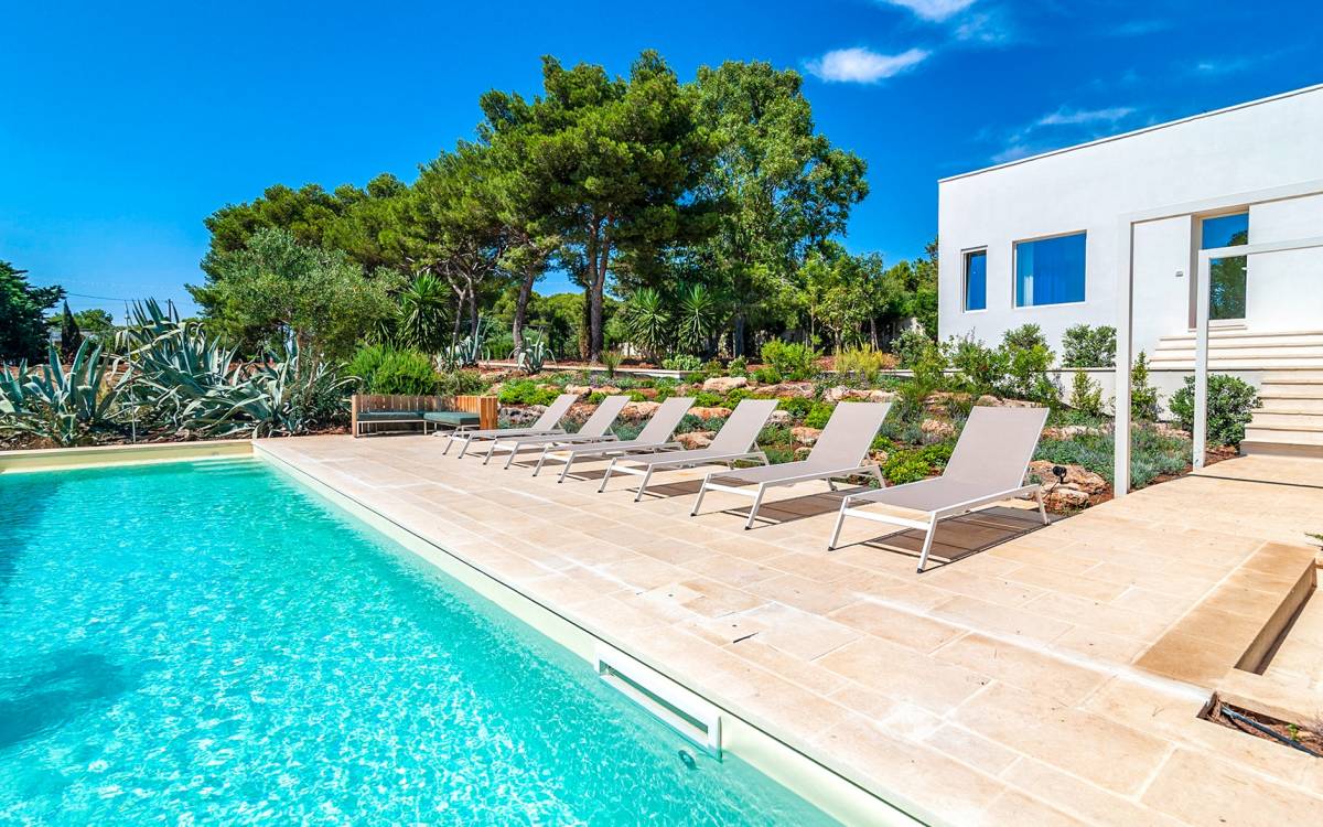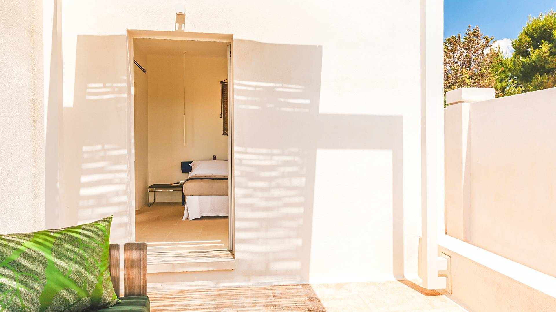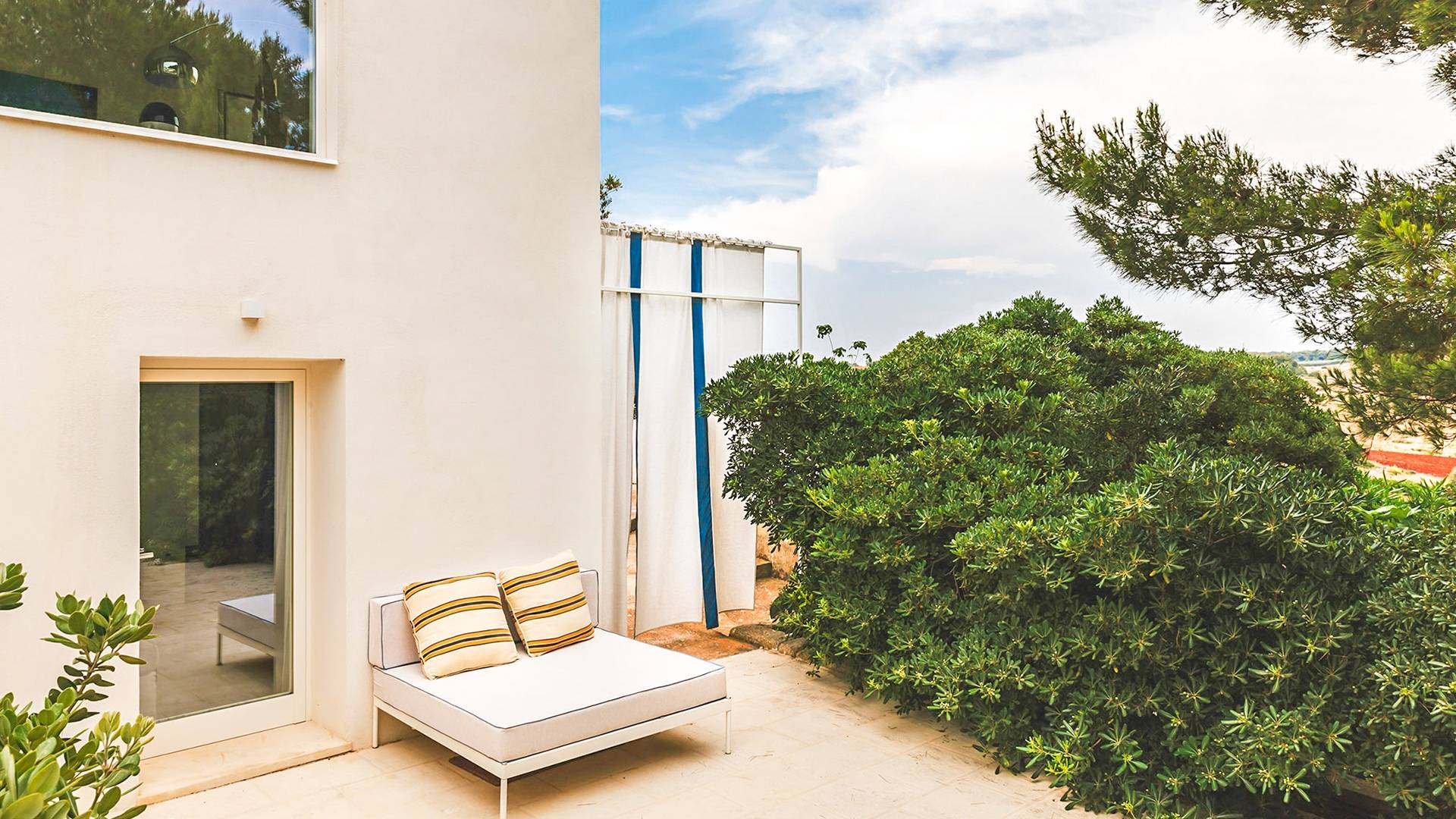 Οι λευκοί τοίχοι του σπιτιού και η χρήση μαρμάρου σχεδόν παντού, θα δώσουν μια μοναδική γαλήνη στις μέρες σας. Η δομή μπορεί να φιλοξενήσει έως και έξι επισκέπτες στα τρία υπνοδωμάτια, αλλά στους εξωτερικούς χώρους οι διακοπές σας θα εμπλουτιστούν με ευχάριστες εκπλήξεις. Εκτός από τον υπέροχο ιδιωτικό κήπο, στην πραγματικότητα, θα έχετε μια πισίνα 14 μέτρων σε απόσταση αναπνοής από τη θάλασσα. Επίσης έξω υπάρχουν χώροι για ηλιοθεραπεία, σκιεροί χώροι χαλάρωσης, καθώς και μια μεγάλη τραπεζαρία για 14 άτομα εξοπλισμένη με τραπέζια, καρέκλες, καναπέδες και μπάρμπεκιου.