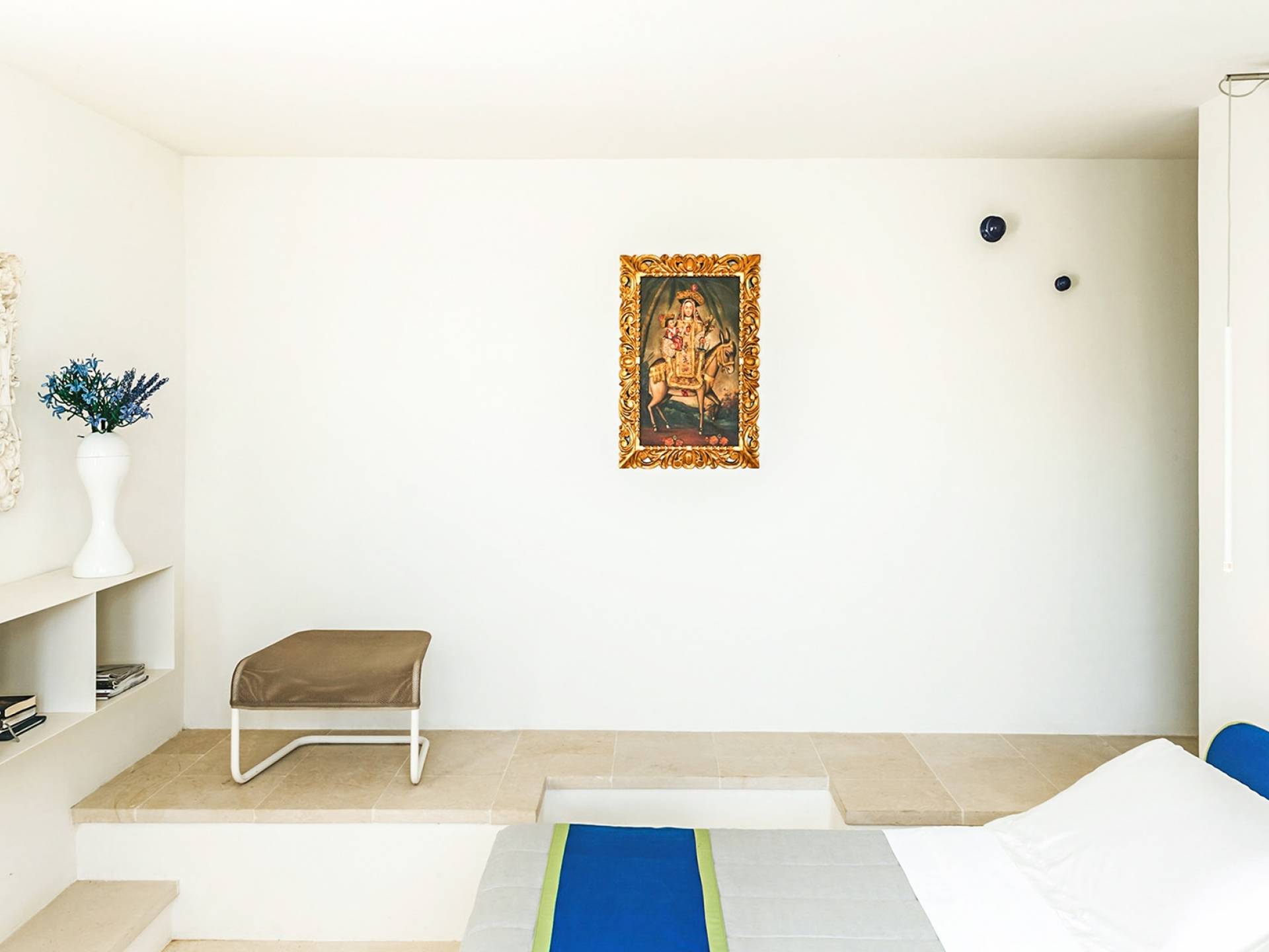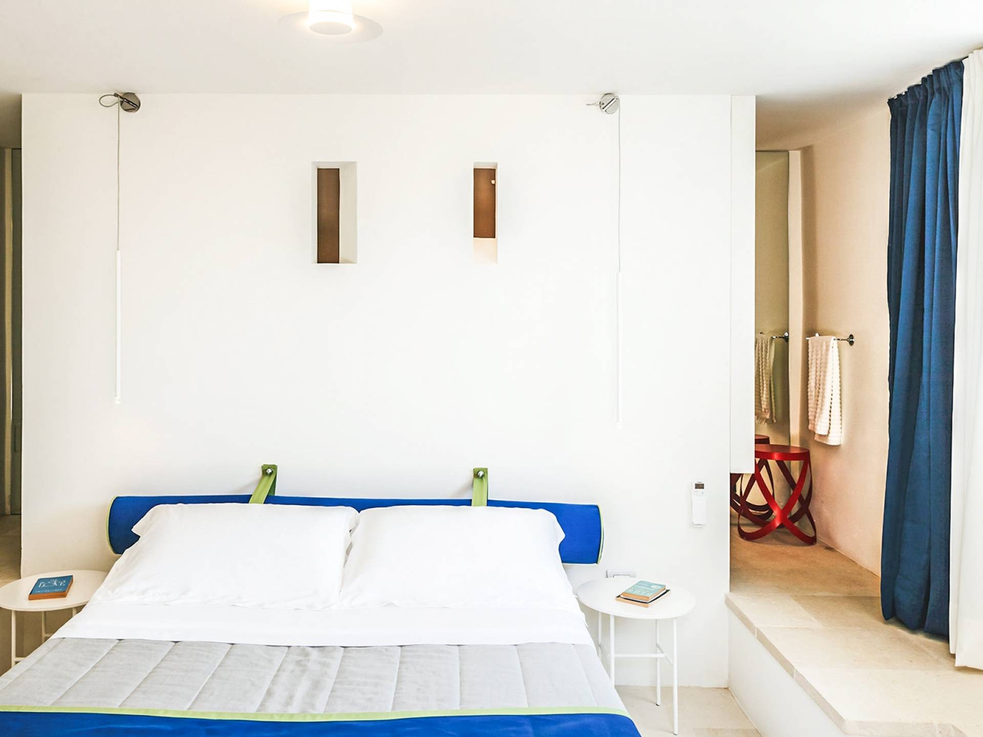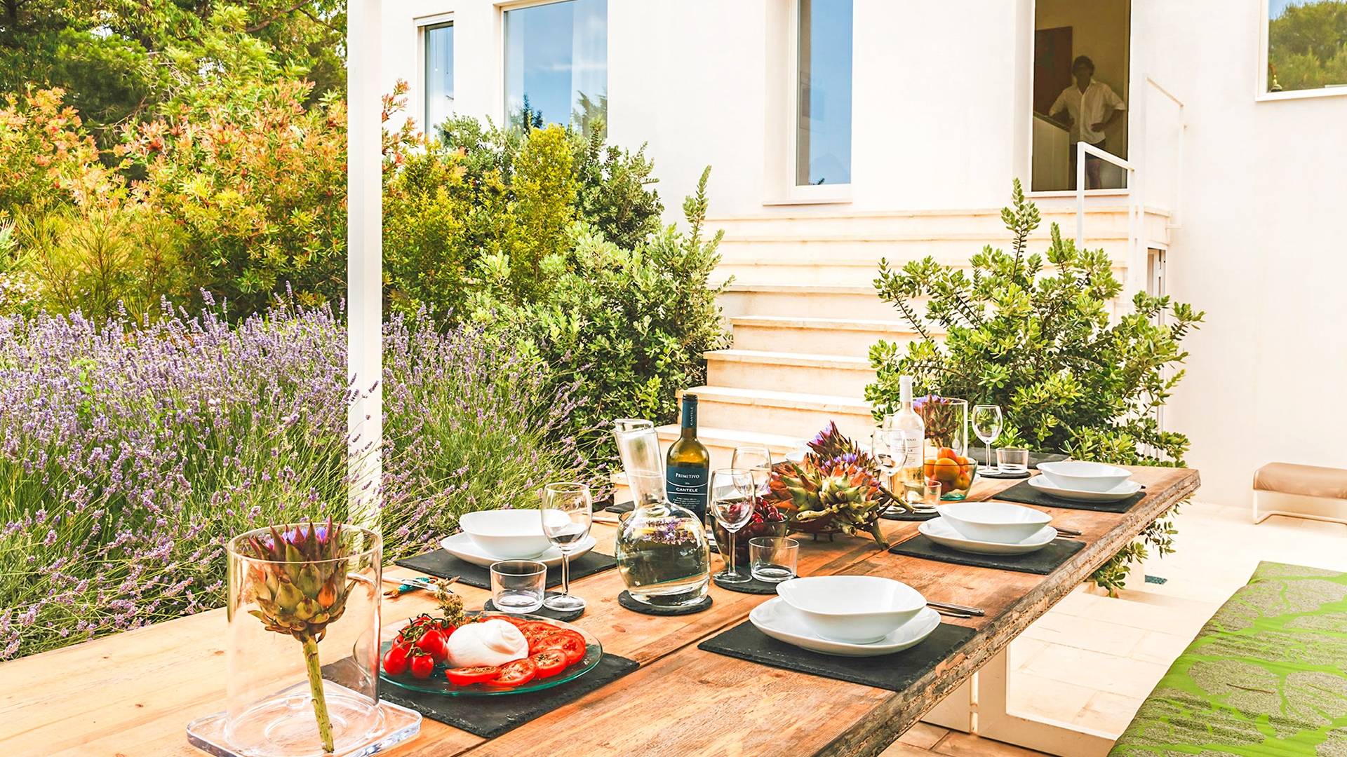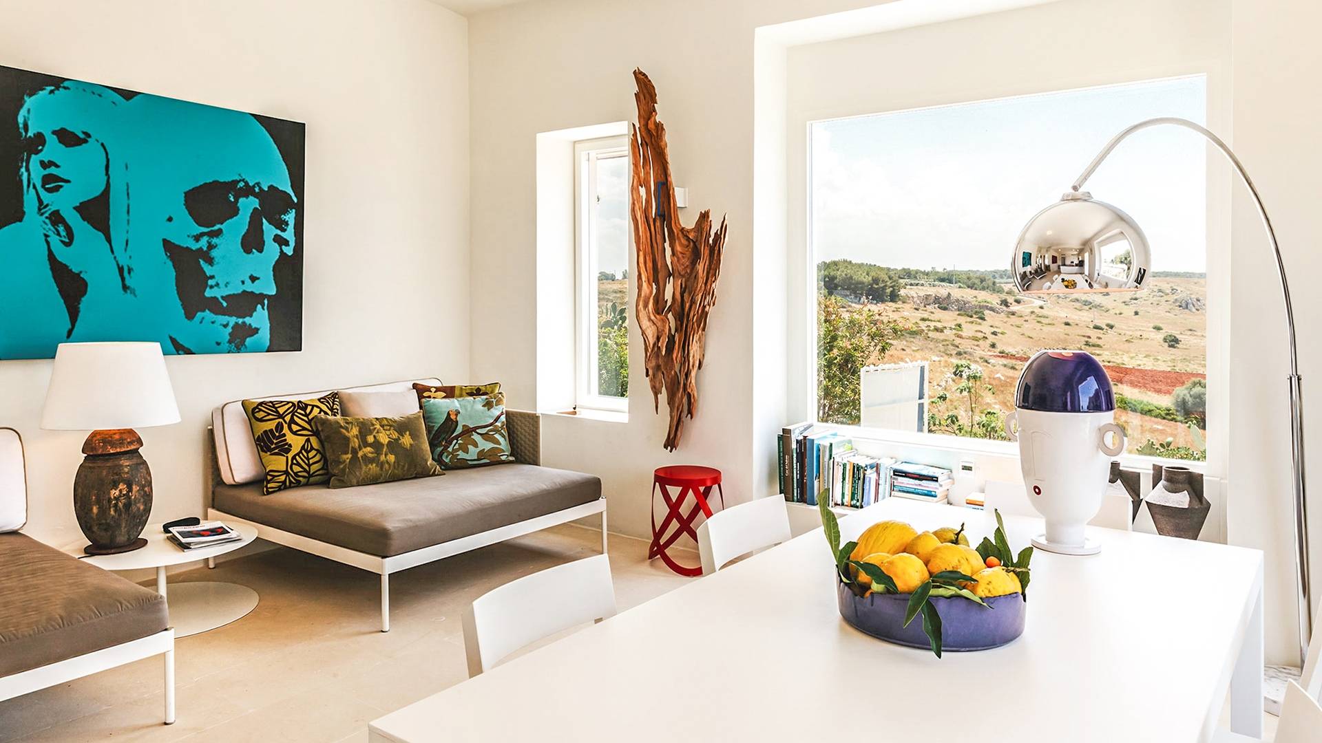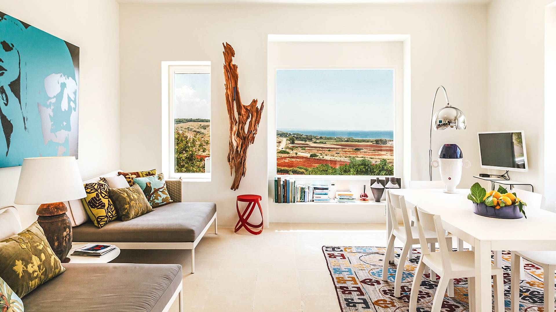Οι λευκοί τοίχοι του σπιτιού και η χρήση μαρμάρου σχεδόν παντού, θα δώσουν μια μοναδική γαλήνη στις μέρες σας. Η δομή μπορεί να φιλοξενήσει έως και έξι επισκέπτες στα τρία υπνοδωμάτια, αλλά στους εξωτερικούς χώρους οι διακοπές σας θα εμπλουτιστούν με ευχάριστες εκπλήξεις. Εκτός από τον υπέροχο ιδιωτικό κήπο, στην πραγματικότητα, θα έχετε μια πισίνα 14 μέτρων σε απόσταση αναπνοής από τη θάλασσα. Επίσης έξω υπάρχουν χώροι για ηλιοθεραπεία, σκιεροί χώροι χαλάρωσης, καθώς και μια μεγάλη τραπεζαρία για 14 άτομα εξοπλισμένη με τραπέζια, καρέκλες, καναπέδες και μπάρμπεκιου.
