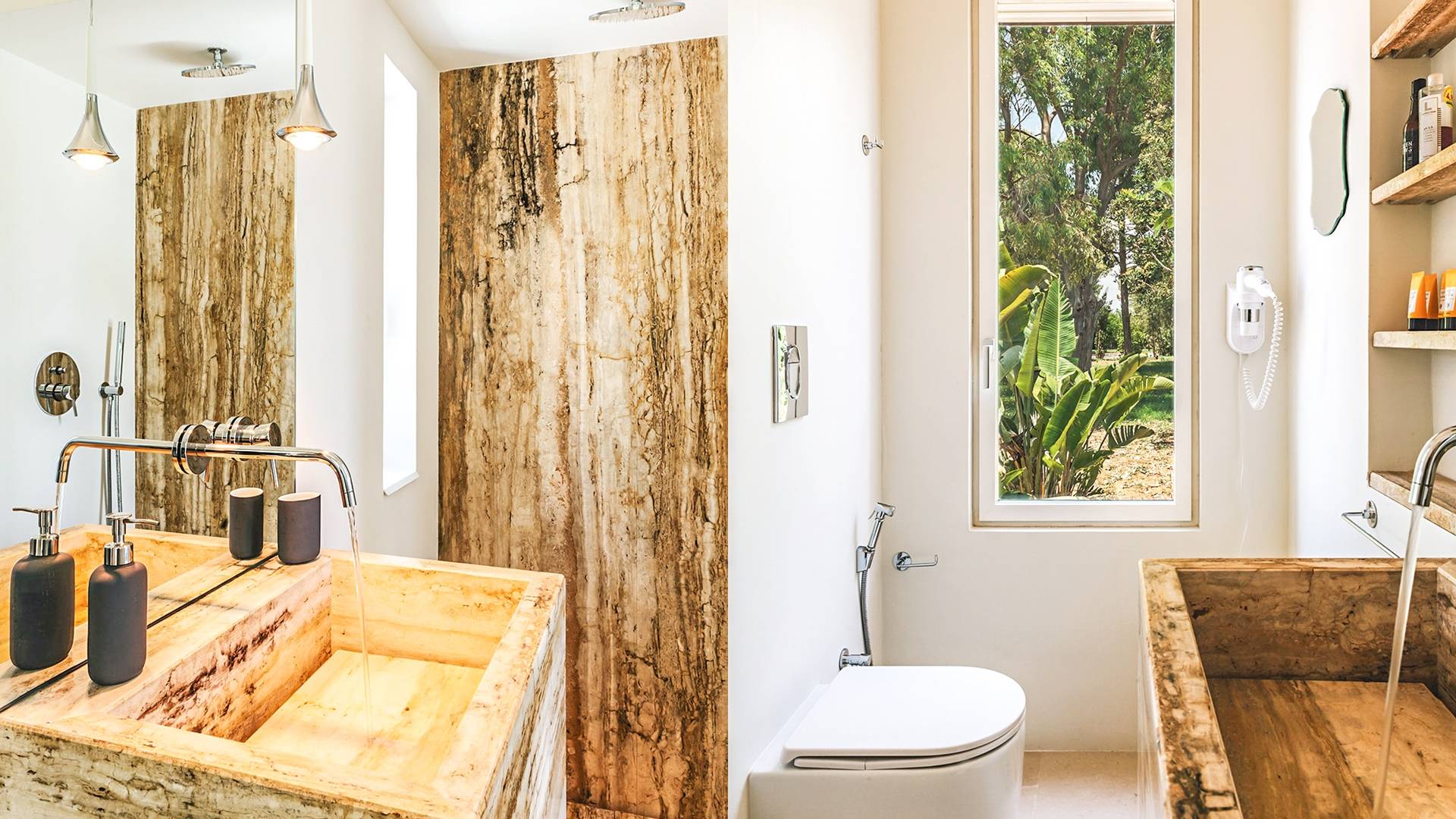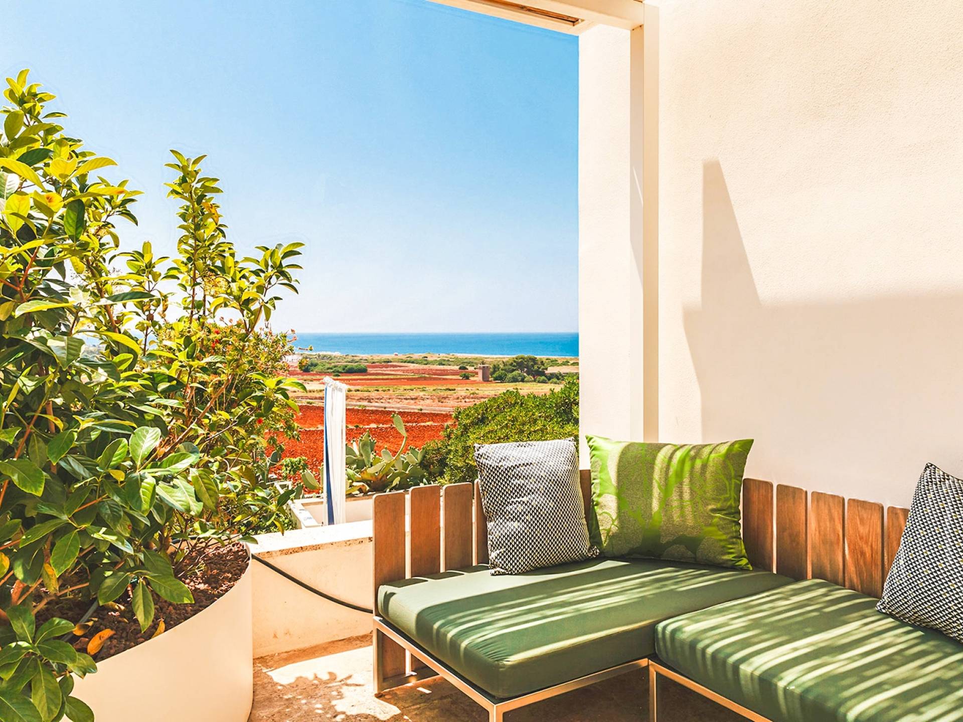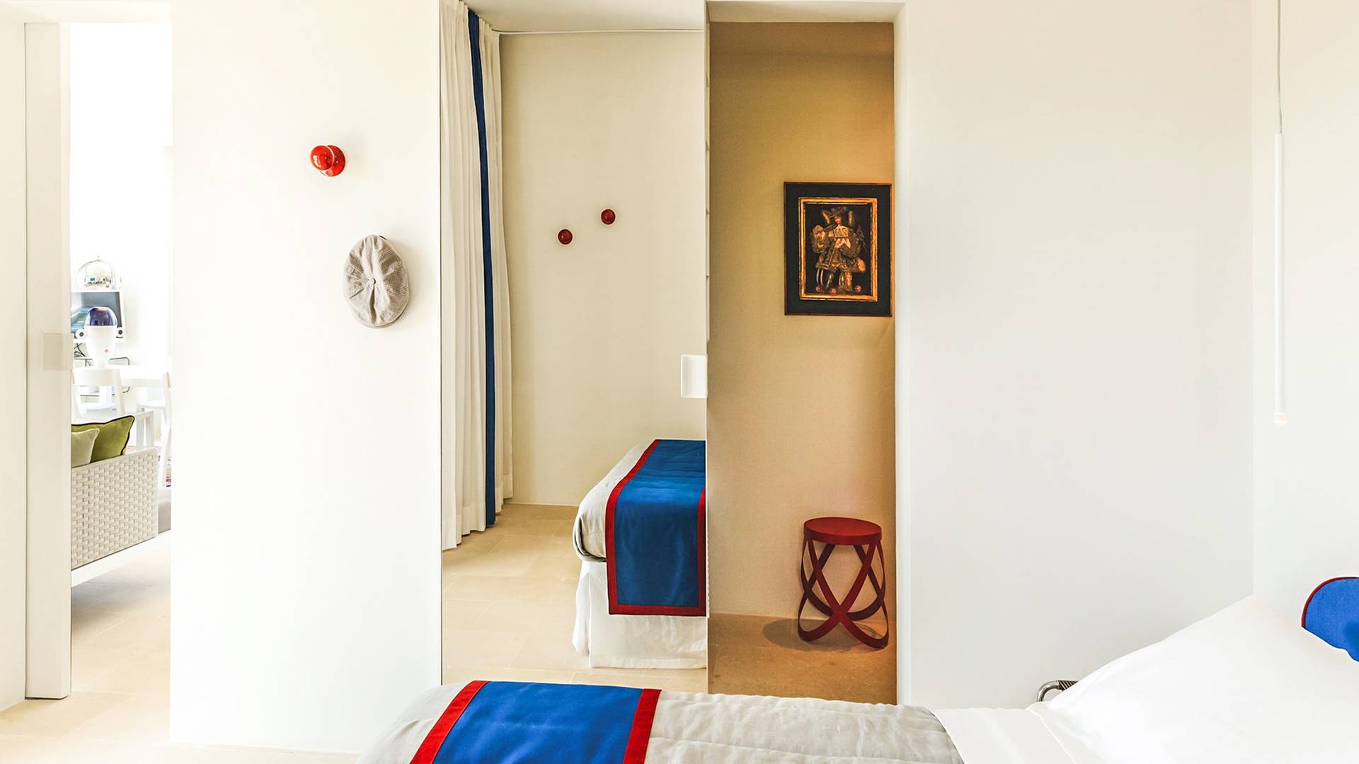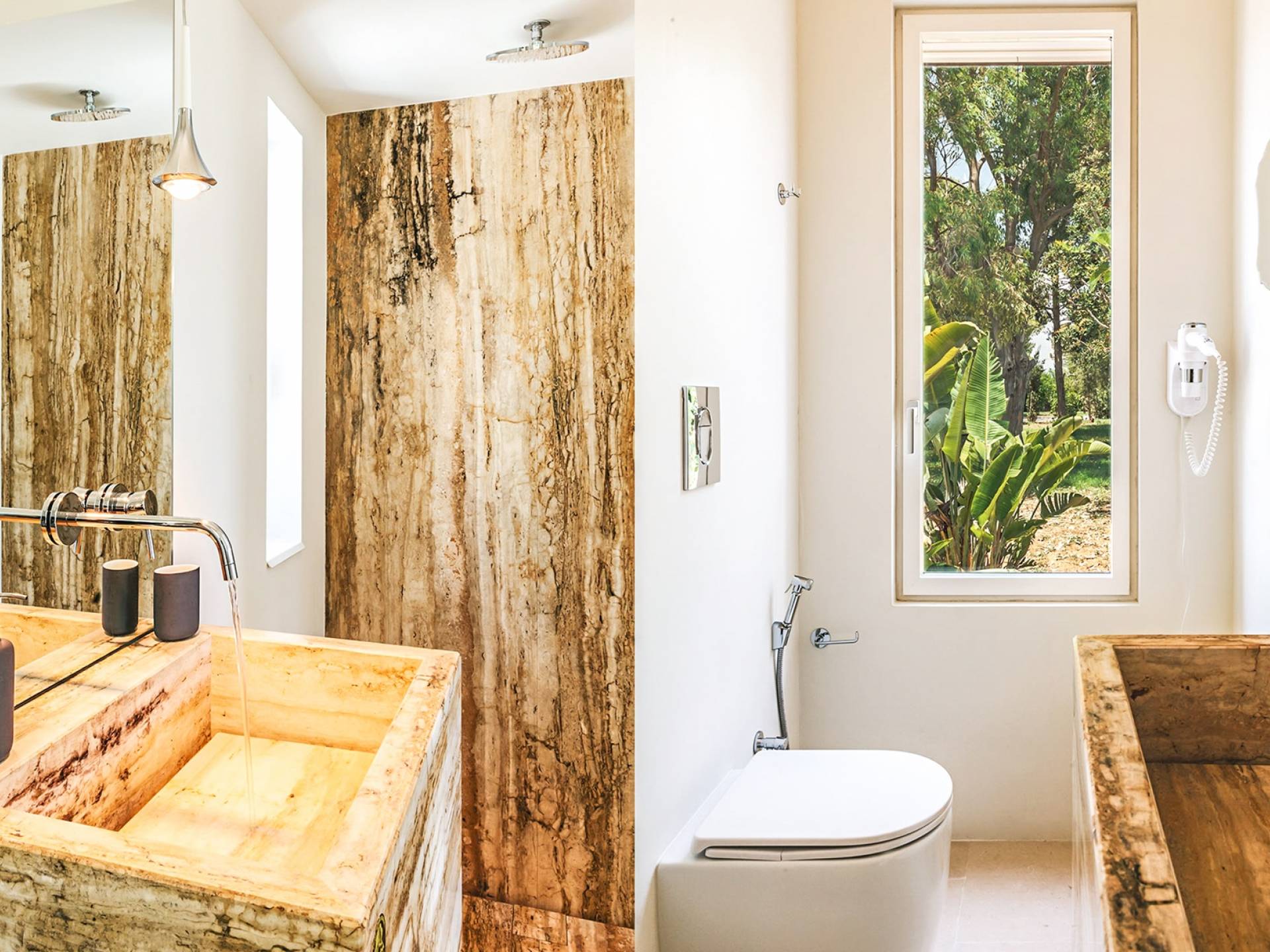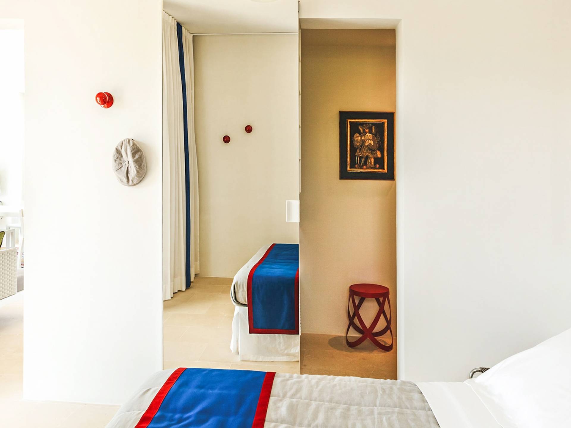 Οι λευκοί τοίχοι του σπιτιού και η χρήση μαρμάρου σχεδόν παντού, θα δώσουν μια μοναδική γαλήνη στις μέρες σας. Η δομή μπορεί να φιλοξενήσει έως και έξι επισκέπτες στα τρία υπνοδωμάτια, αλλά στους εξωτερικούς χώρους οι διακοπές σας θα εμπλουτιστούν με ευχάριστες εκπλήξεις. Εκτός από τον υπέροχο ιδιωτικό κήπο, στην πραγματικότητα, θα έχετε μια πισίνα 14 μέτρων σε απόσταση αναπνοής από τη θάλασσα. Επίσης έξω υπάρχουν χώροι για ηλιοθεραπεία, σκιεροί χώροι χαλάρωσης, καθώς και μια μεγάλη τραπεζαρία για 14 άτομα εξοπλισμένη με τραπέζια, καρέκλες, καναπέδες και μπάρμπεκιου.