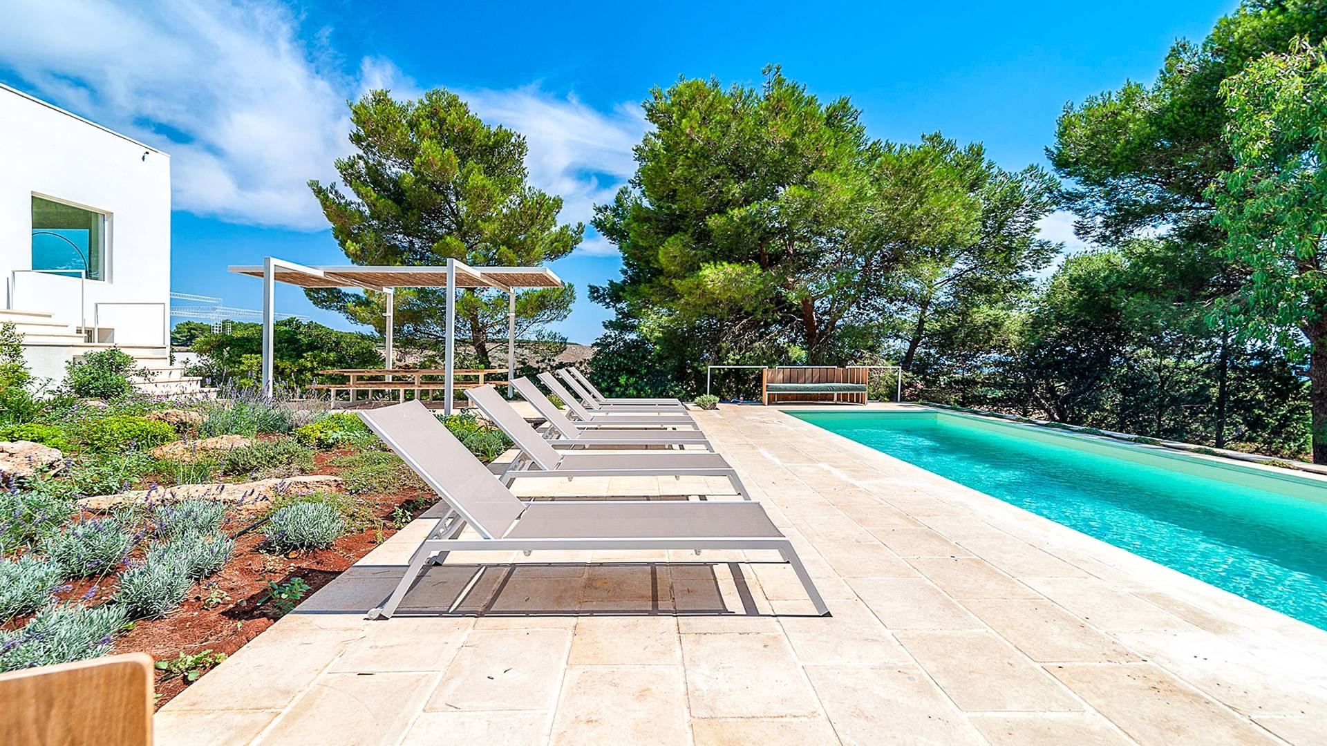Από εδώ, στην πραγματικότητα, μπορείτε να θαυμάσετε έναν αληθινό επίγειο παράδεισο χάνοντας το βλέμμα σας μεταξύ του ακρωτηρίου της Καλλίπολης και του Πόρτο Σεζάρεο. Θα ζήσετε τις διακοπές σας σε απόλυτη ηρεμία. Το ακίνητο, το οποίο οριοθετείται από έναν περιμετρικό τοίχο, είναι προσβάσιμο μέσω μονοπατιού εισόδου. Θα μπορέσετε να ζήσετε τη διαμονή σας σε απόλυτη ελευθερία, καθώς δεν υπάρχουν πολλά άλλα κτίρια στην περιοχή. Στη συνέχεια θα προστατευτείτε από πολλά δέντρα και από την πλούσια βλάστηση που φυτρώνει στα 3 χιλιάδες τετραγωνικά μέτρα του κήπου όπου μπορείτε να ζήσετε μέρες μόνοι ή παρέα, αφιερώνοντας τον εαυτό σας στα αγαπημένα σας χόμπι. Η βίλα βρίσκεται επίσης σε ιδανική περιοχή για δραστηριότητες όπως πεζοπορία, κολύμβηση με αναπνευστήρα και ποδηλασία.
