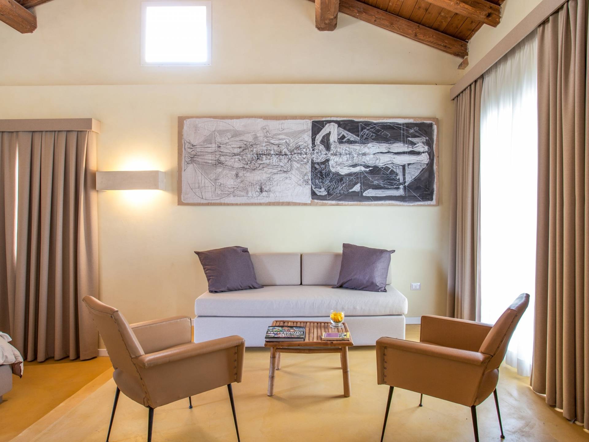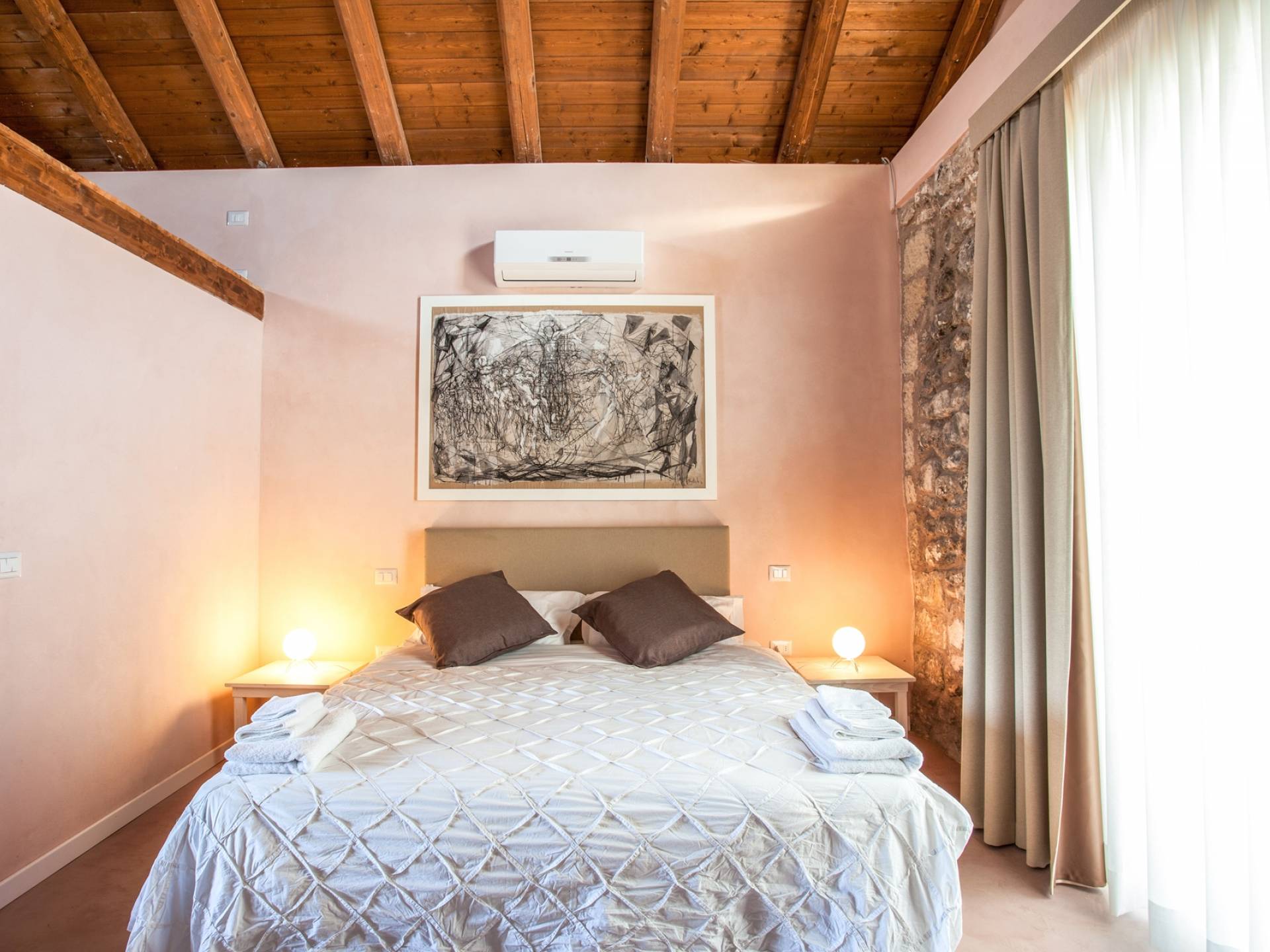 Στον χώρο ύπνου, από την άλλη πλευρά, θα έχετε 6 άνετα υπνοδωμάτια, όλα με ιδιωτικό μπάνιο, μερικά με ντους και άλλα με μπανιέρα. Λόγω του μεγέθους κάθε χώρου και του φινιρίσματος της επίπλωσης, τα δωμάτια παρουσιάζονται ως πραγματικές σουίτες, οι οποίες, εξοπλισμένες με πολλά κρεβάτια, θα σας επιτρέψουν να οργανώσετε μια διάταξη έτσι ώστε η δομή να μπορεί επίσης να φιλοξενήσει ομάδες ή πολλές οικογένειες.