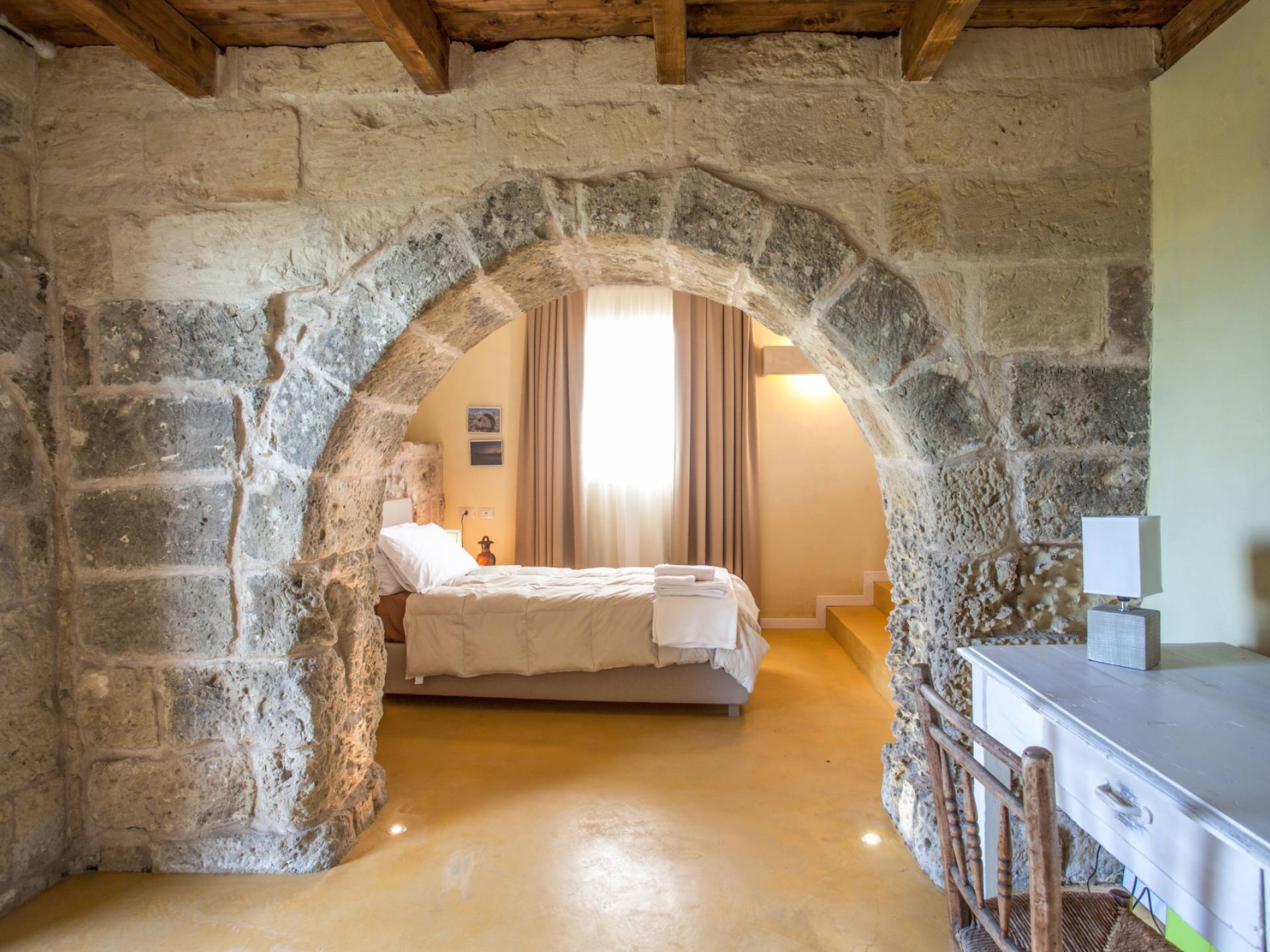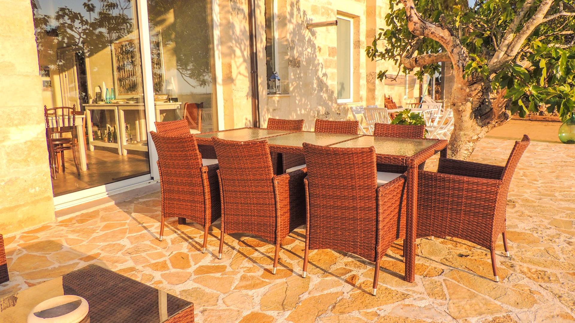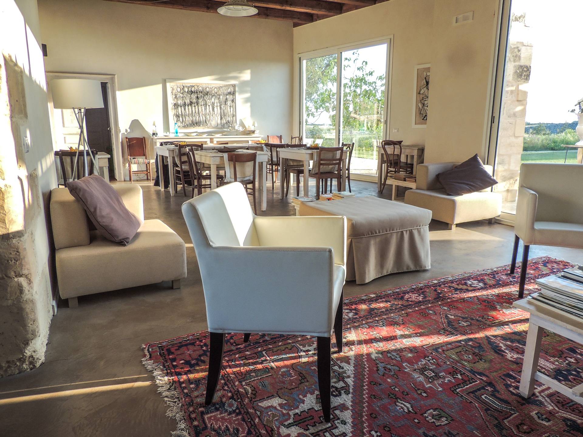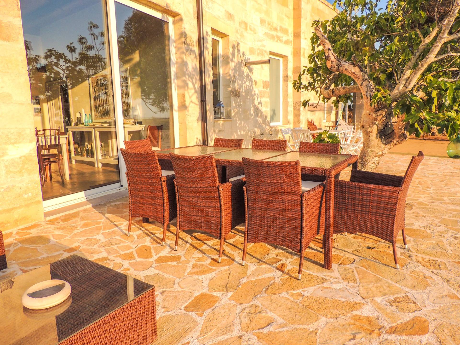 Μπορεί να φιλοξενήσει έως και 18 άτομα σε 6 δωμάτια με μπάνιο, η δομή είναι άνετη και πολύ φωτεινή. Τα μεγάλα παράθυρα που ανοίγουν στην εσωτερική αυλή θα σας επιτρέψουν να απολαύσετε τους πραγματικά απεριόριστους εσωτερικούς και εξωτερικούς χώρους. Θα έχετε στη διάθεσή σας ένα ευρύχωρο σαλόνι με τραπέζια και καρέκλες αλλά και ένα σαλόνι με καναπέδες και τηλεόραση έτοιμο να σας υποδεχτεί στο σπίτι. Από αυτό το δωμάτιο υπάρχει πρόσβαση σε μια ευρύχωρη πλήρως εξοπλισμένη κουζίνα.