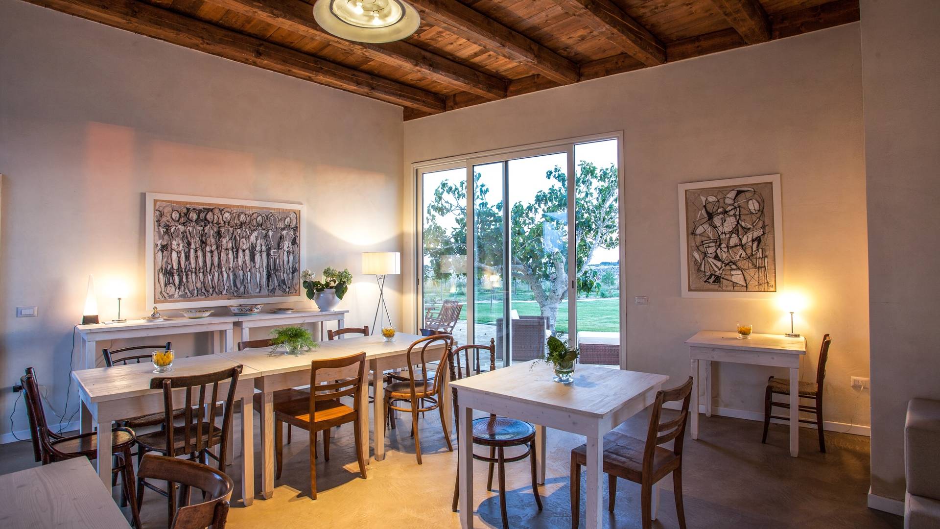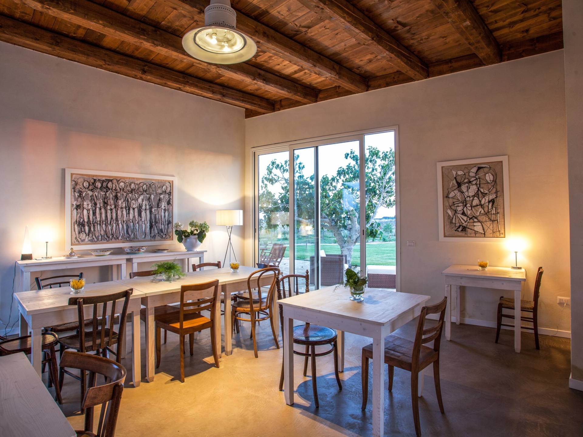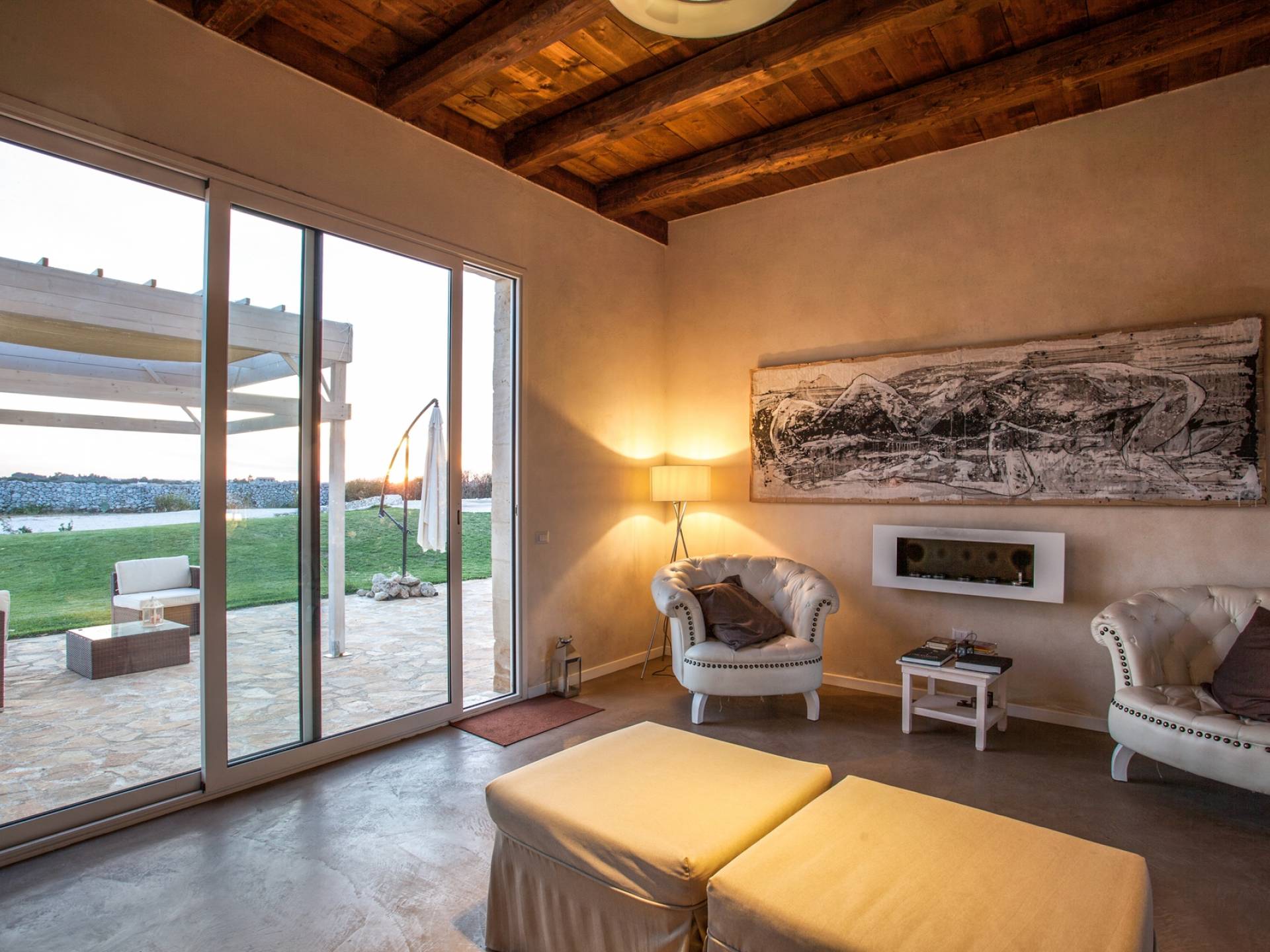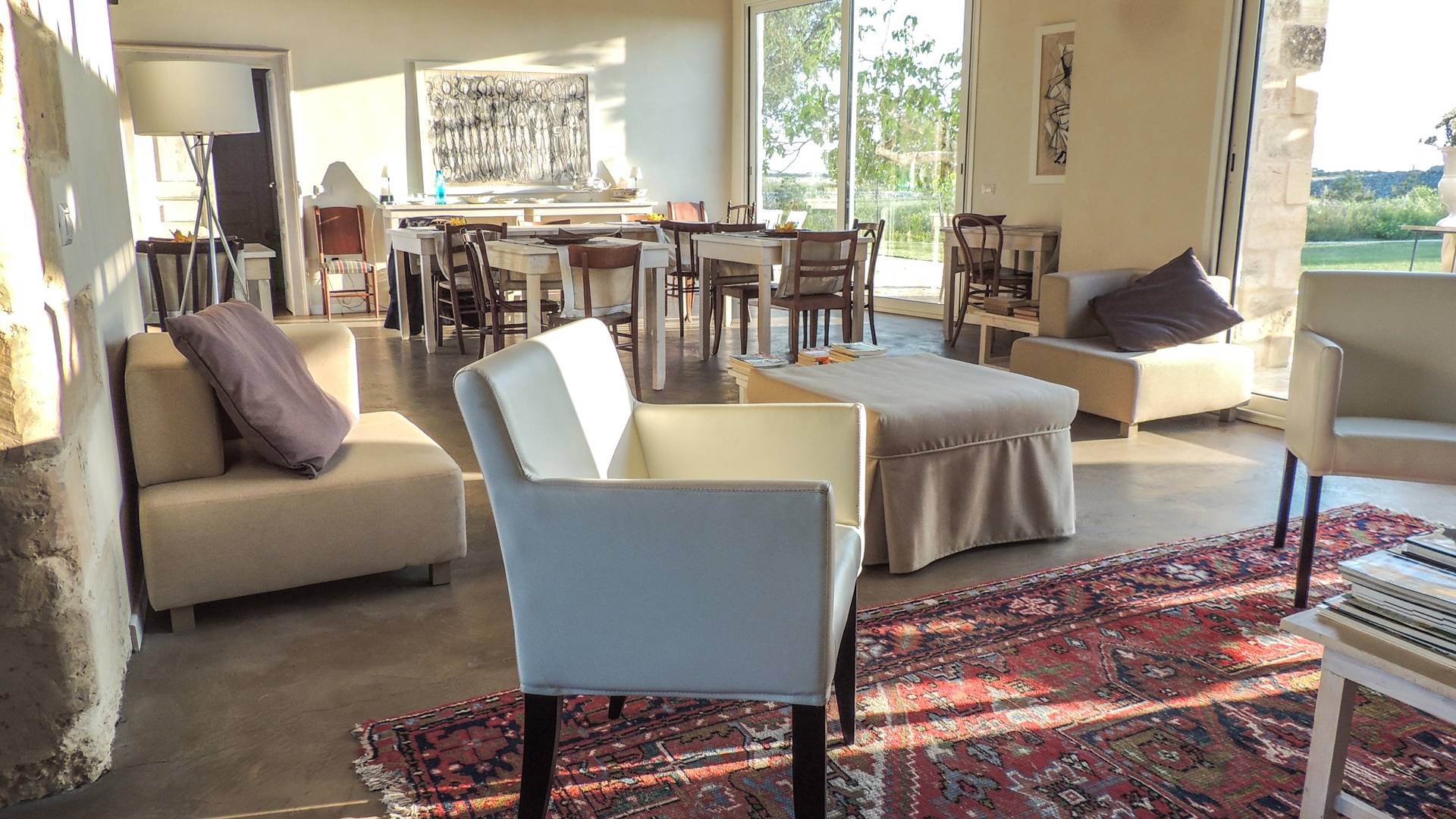 Μπορεί να φιλοξενήσει έως και 18 άτομα σε 6 δωμάτια με μπάνιο, η δομή είναι άνετη και πολύ φωτεινή. Τα μεγάλα παράθυρα που ανοίγουν στην εσωτερική αυλή θα σας επιτρέψουν να απολαύσετε τους πραγματικά απεριόριστους εσωτερικούς και εξωτερικούς χώρους. Θα έχετε στη διάθεσή σας ένα ευρύχωρο σαλόνι με τραπέζια και καρέκλες αλλά και ένα σαλόνι με καναπέδες και τηλεόραση έτοιμο να σας υποδεχτεί στο σπίτι. Από αυτό το δωμάτιο υπάρχει πρόσβαση σε μια ευρύχωρη πλήρως εξοπλισμένη κουζίνα.