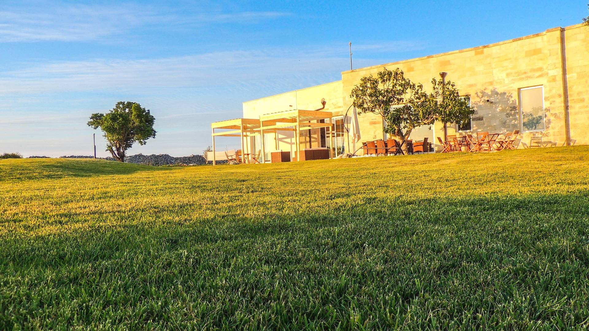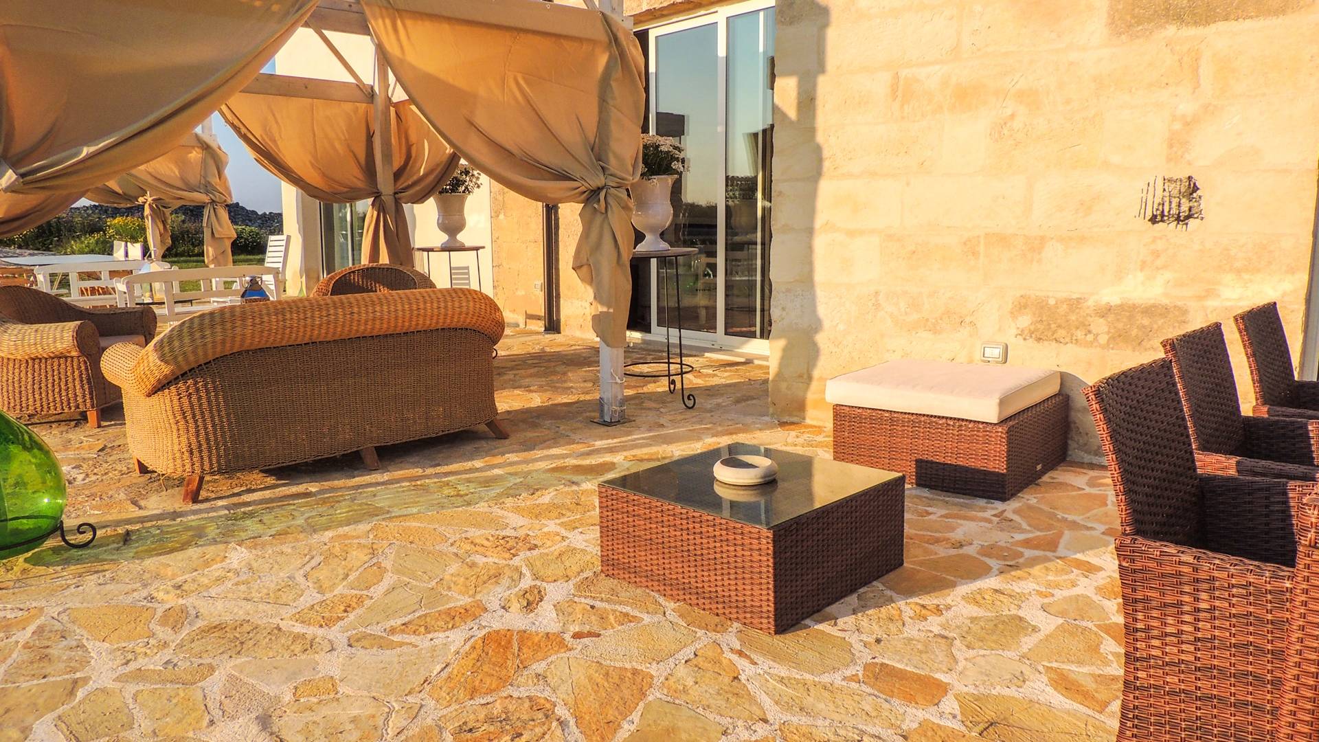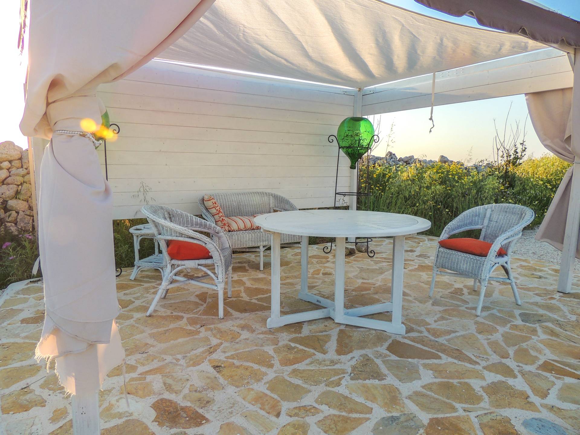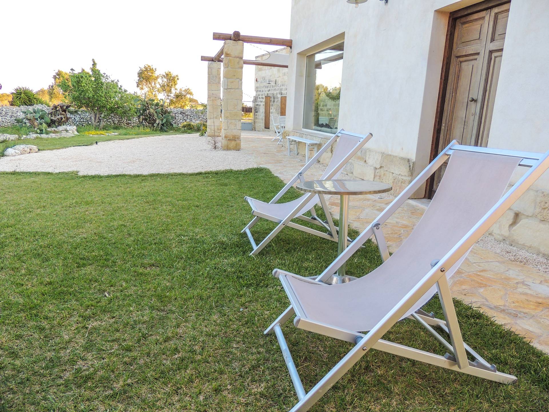 Ακόμη και οι εξωτερικοί χώροι της Villa Emma, μιας όασης γαλήνης και ομορφιάς, πρέπει να βιωθούν. Η Maseria περιφραγμένη από ξερολιθιές και ανοίγει σε μια εξοχή που θα κάνει την ιδιωτικότητά σας μοναδική και θα σας μαγέψει. Η πιρόγα ενός μικρού λόφου, η μεγάλη εξωτερική πισίνα θα μοιάζει με θαύμα στα μάτια σας, όπου μπορείτε να κάνετε ηλιοθεραπεία μεταξύ μιας βουτιάς και της άλλης, να πιείτε ένα ποτό ή ένα κοκτέιλ. Καθίστε στο μεγάλο σολάριουμ, εξοπλισμένο με καρέκλες και ξαπλώστρες, απολαύστε ένα εξαιρετικό μπάρμπεκιου στον ευρύχωρο χώρο μπάρμπεκιου σε σχήμα αμφιθεάτρου ή χαλαρώστε κάτω από ένα από τα μεγάλα κιόσκια. Η κατασκευή γεννήθηκε με μια πράσινη τάση, καθώς σχεδιάστηκε εξ ολοκλήρου με γυαλί χαμηλών εκπομπών, για να την απομονώνει από τη θερμότητα, τα πάνελ και τις ανεμογεννήτριες για ενέργεια.